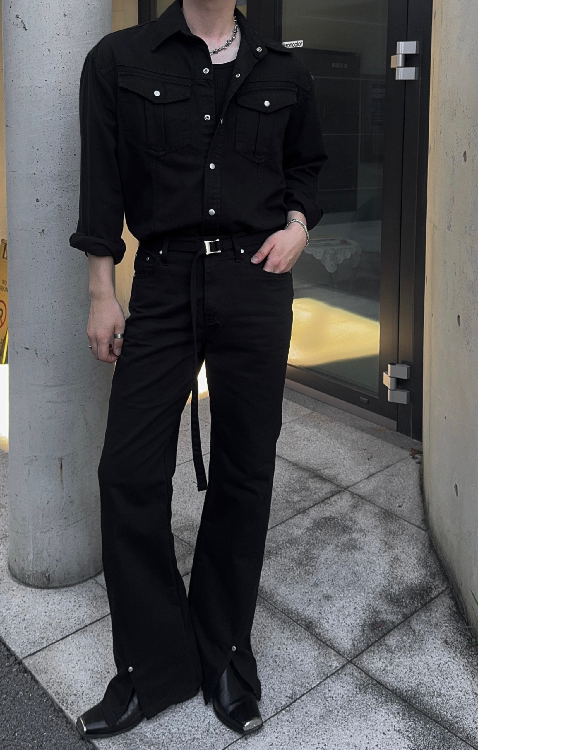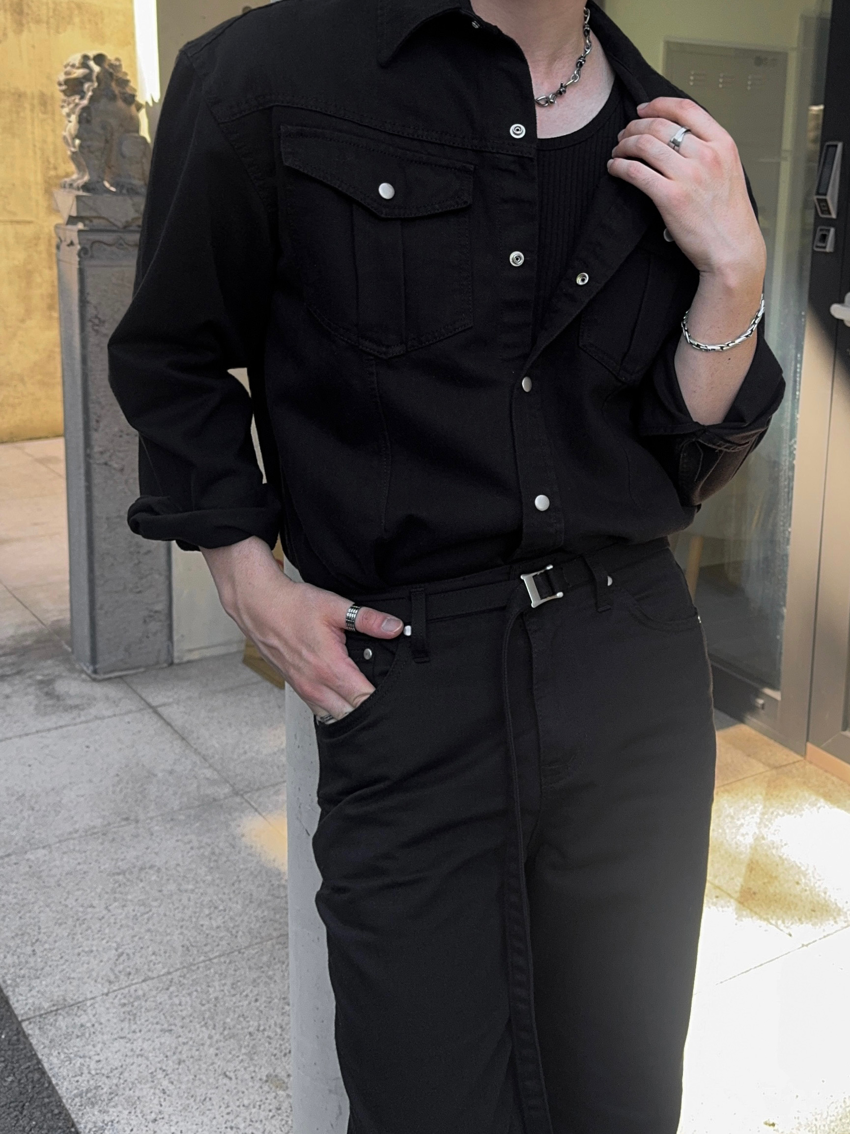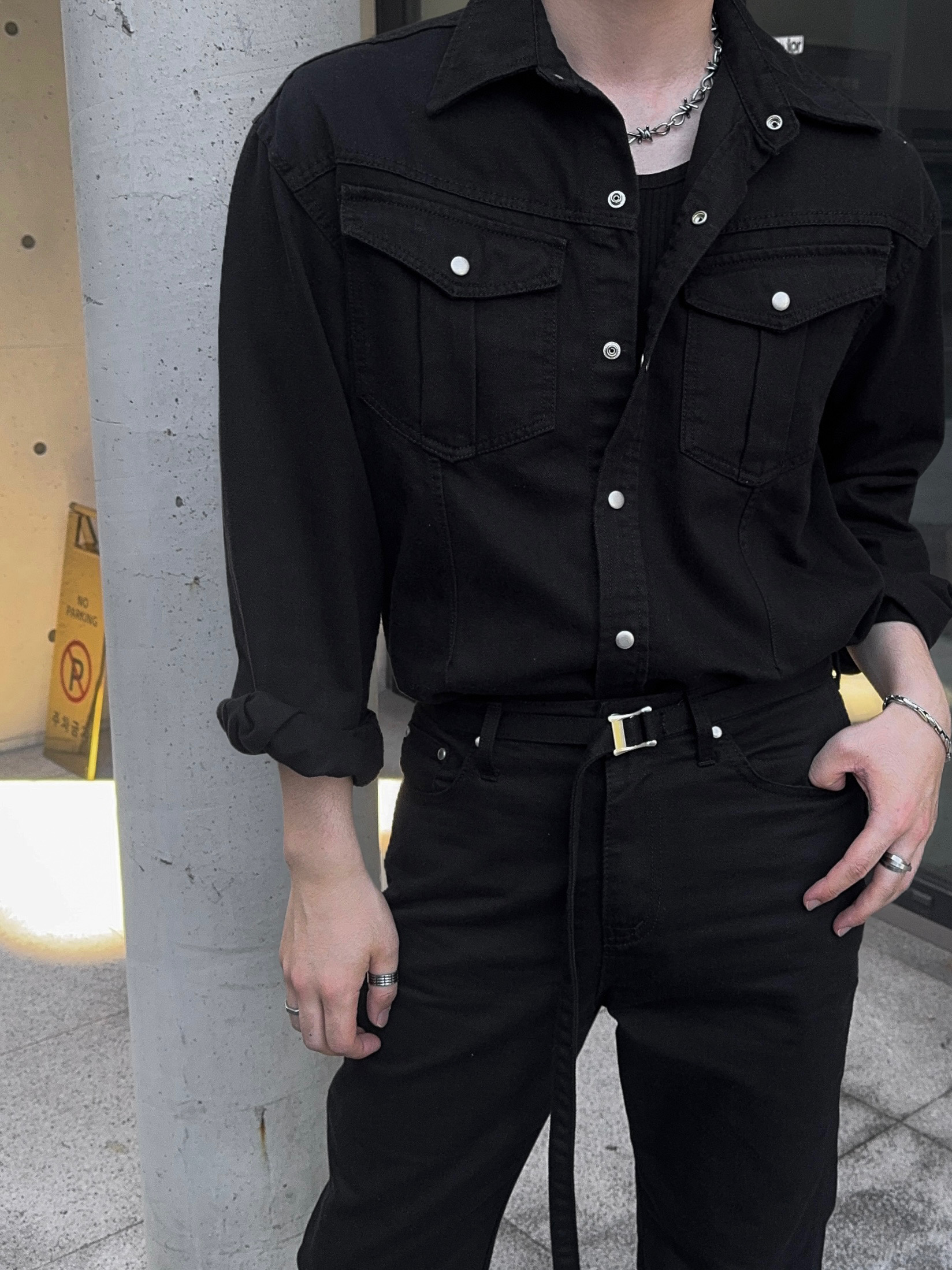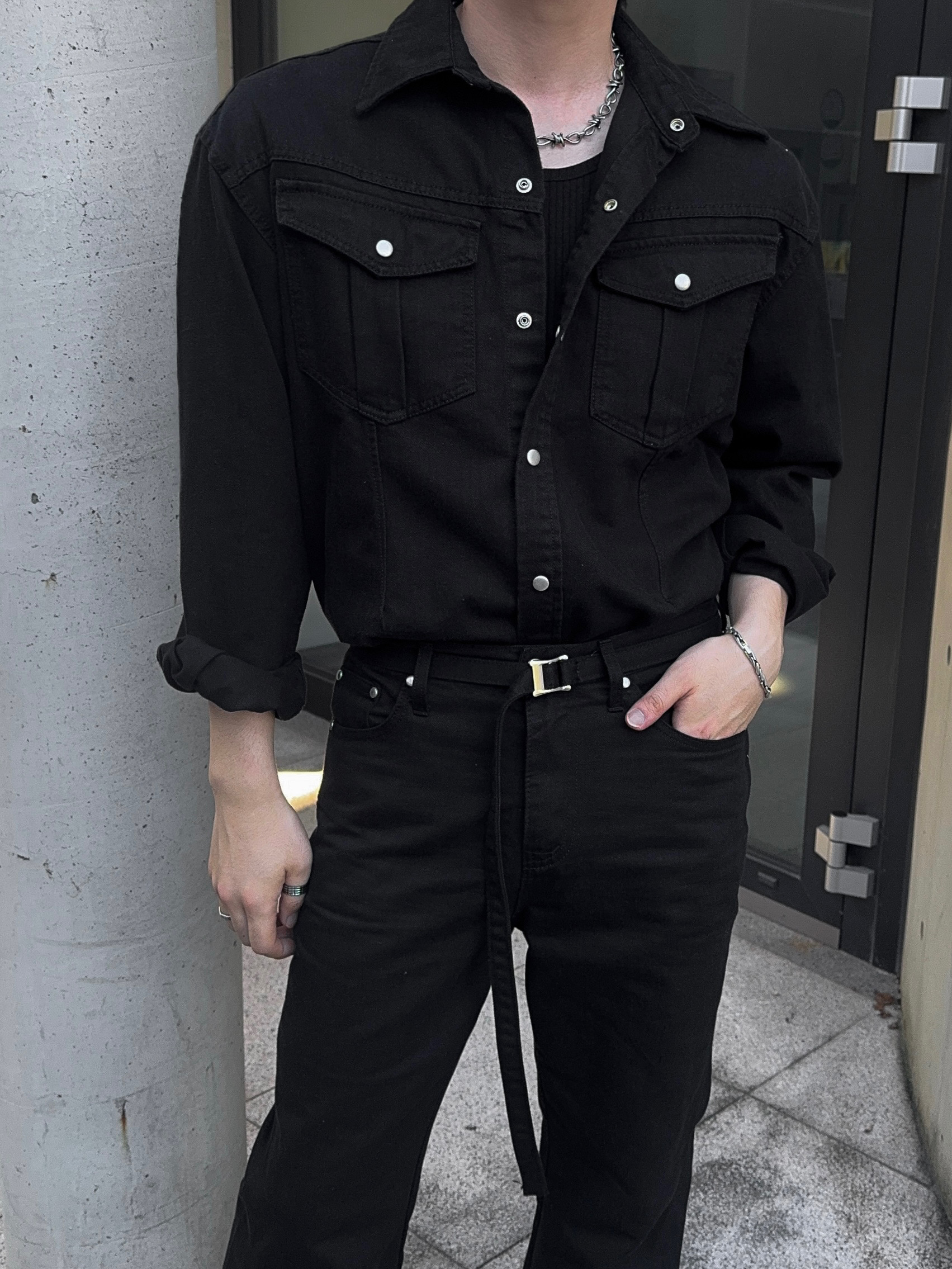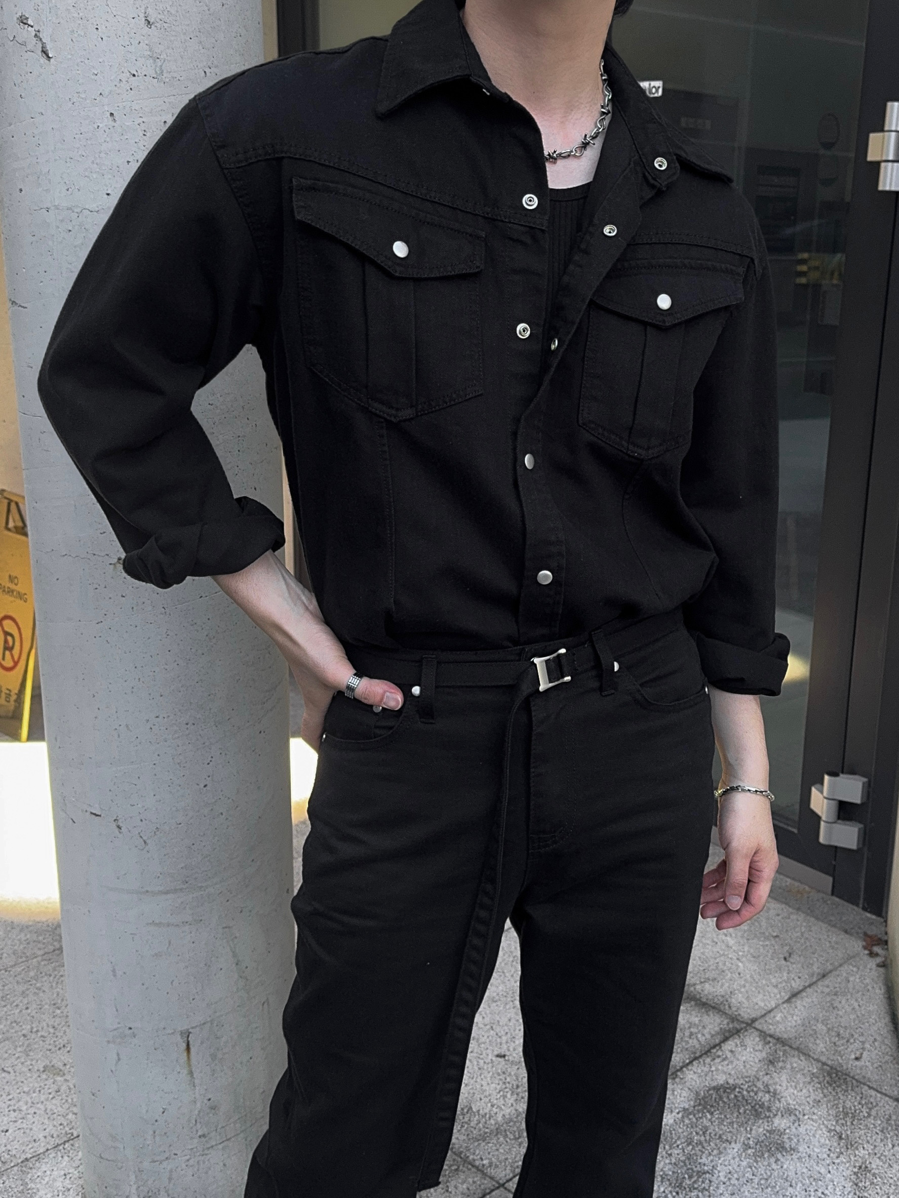 -탄탄한 데님 원단으로 제작된 셔츠