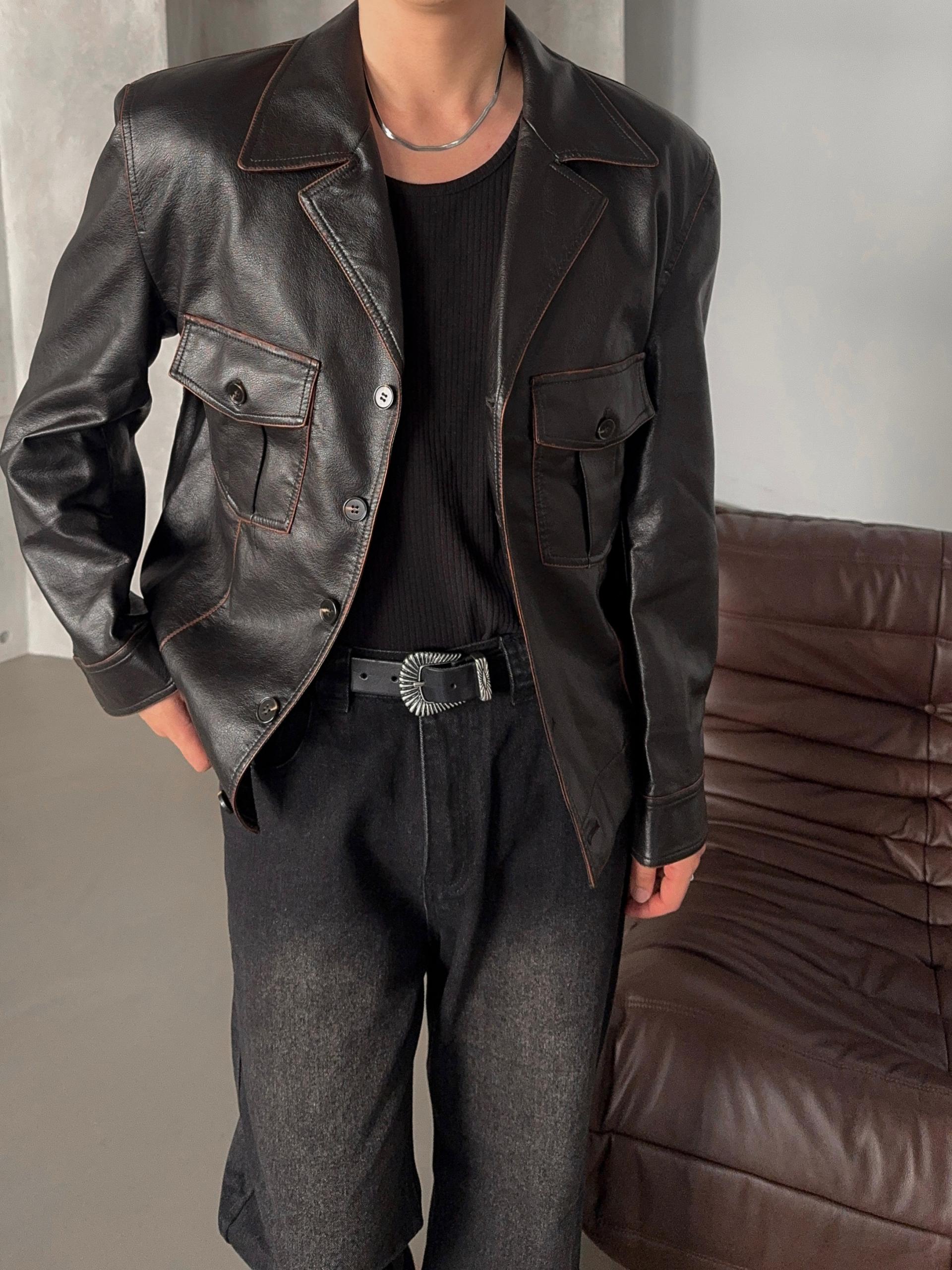 -프리미엄 레더 소재로 제작된 자켓