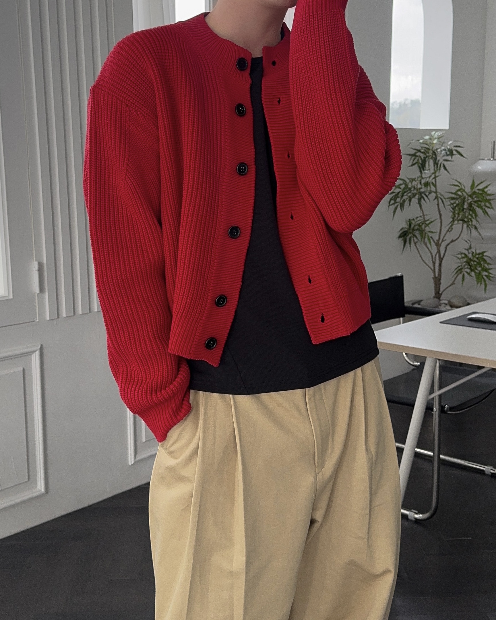 -촘촘한 하찌 니트 짜임으로 제작된 크롭 가디건