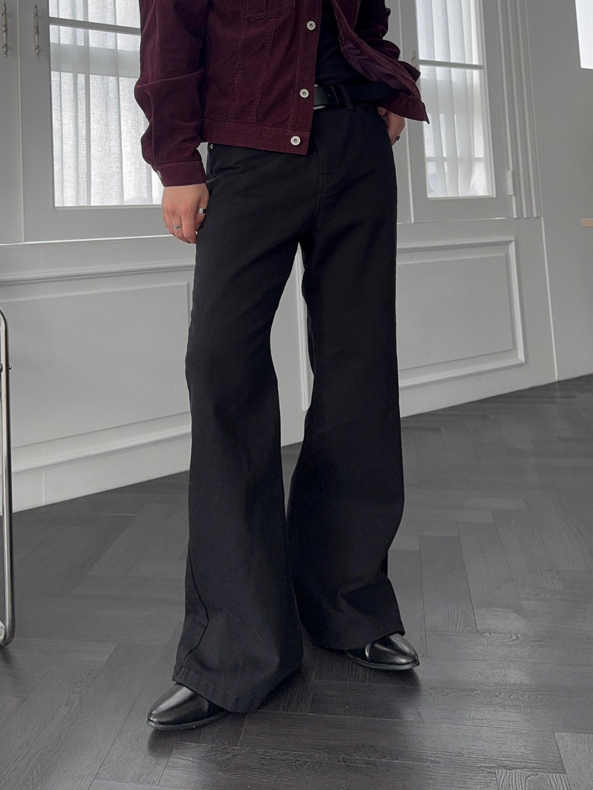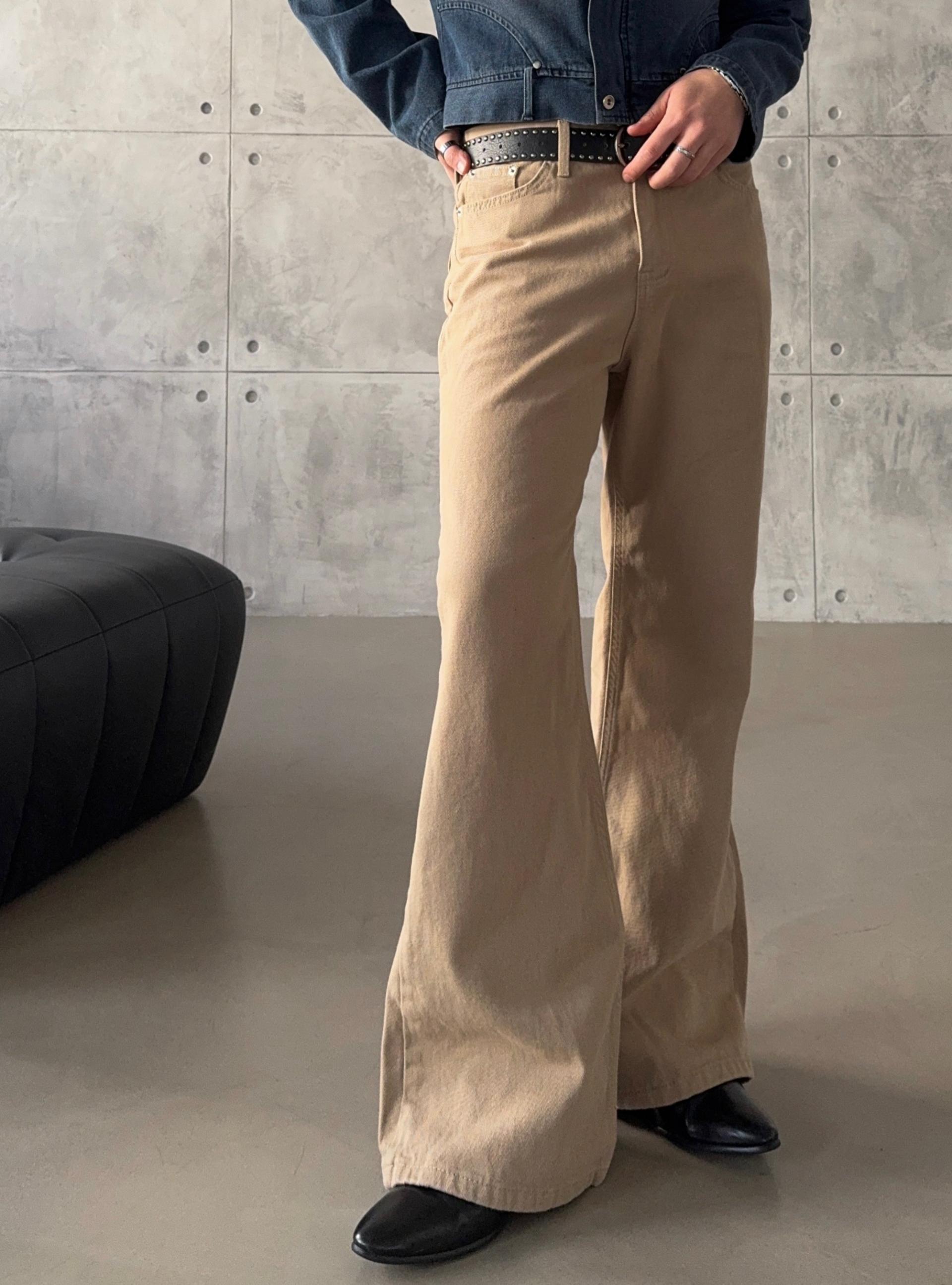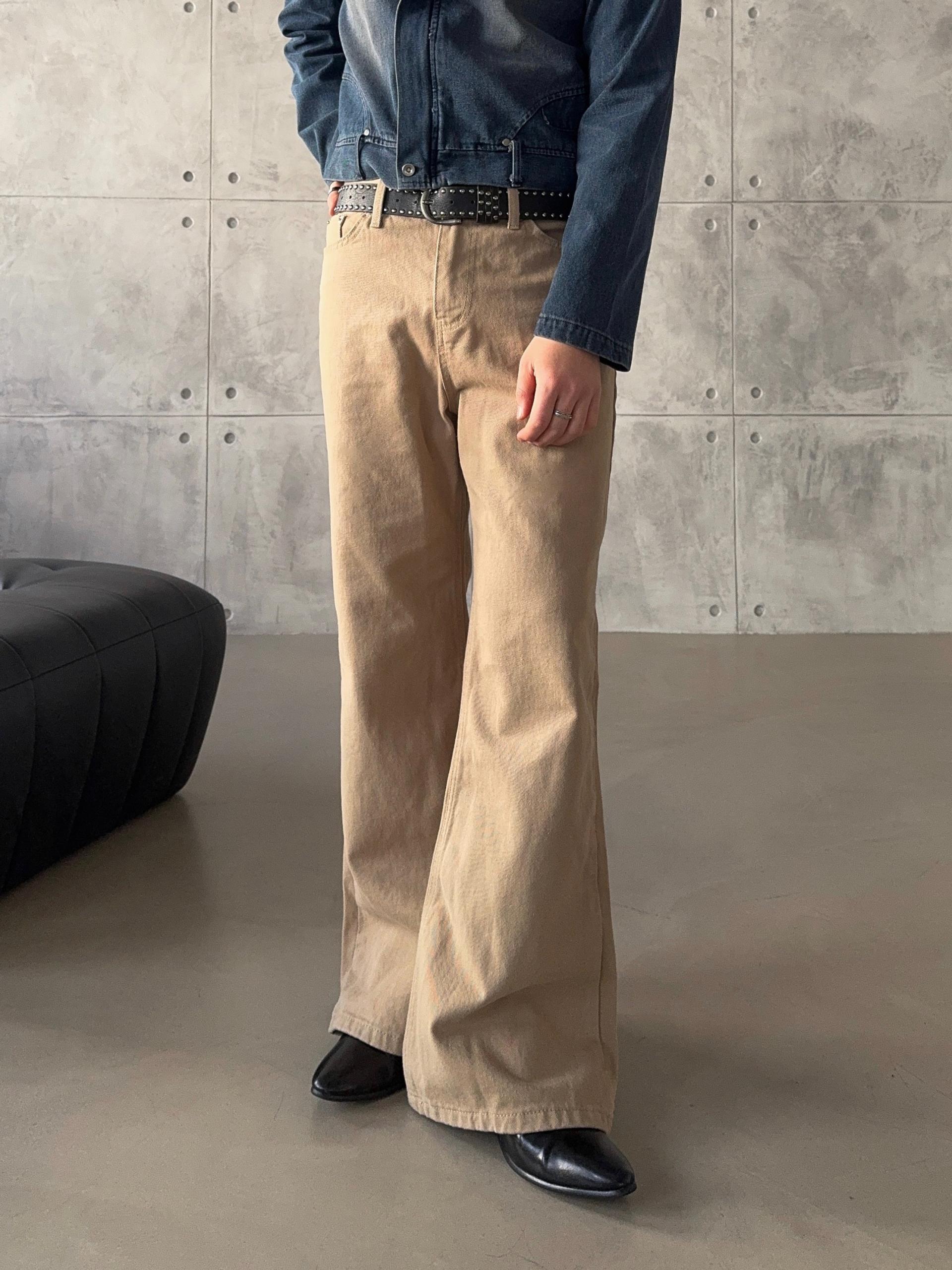 -탄탄한 면 원단으로 제작된 플레어 팬츠