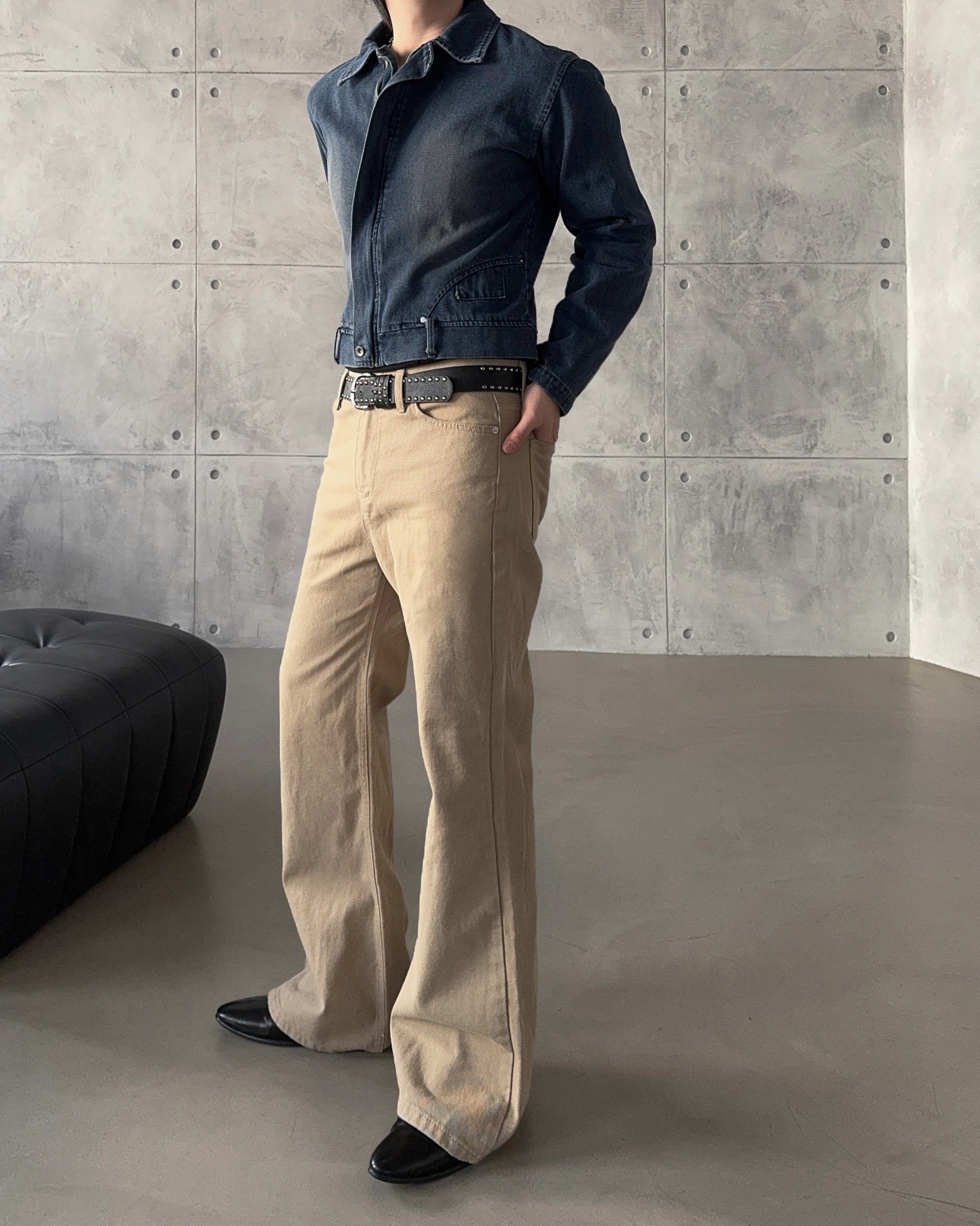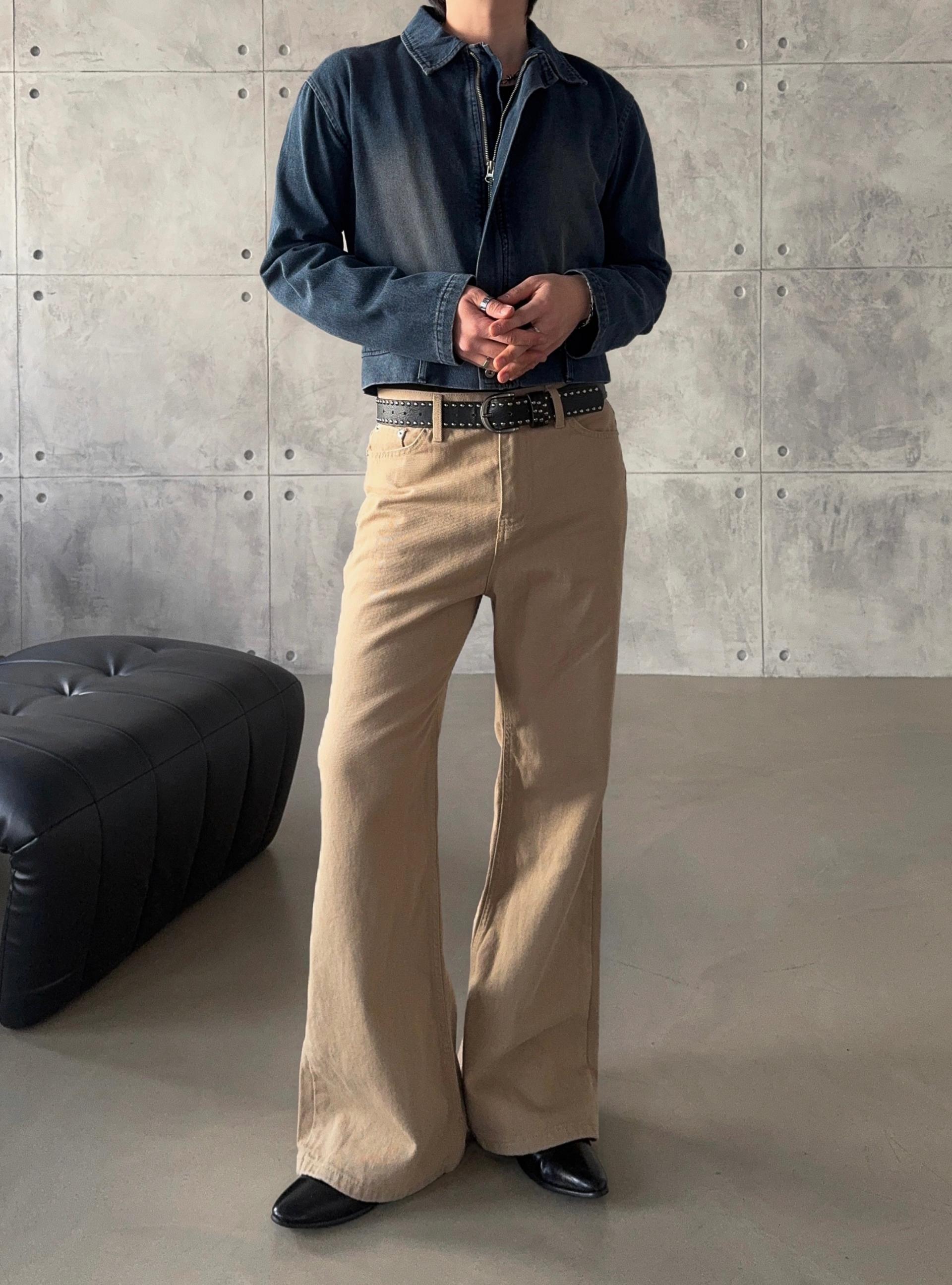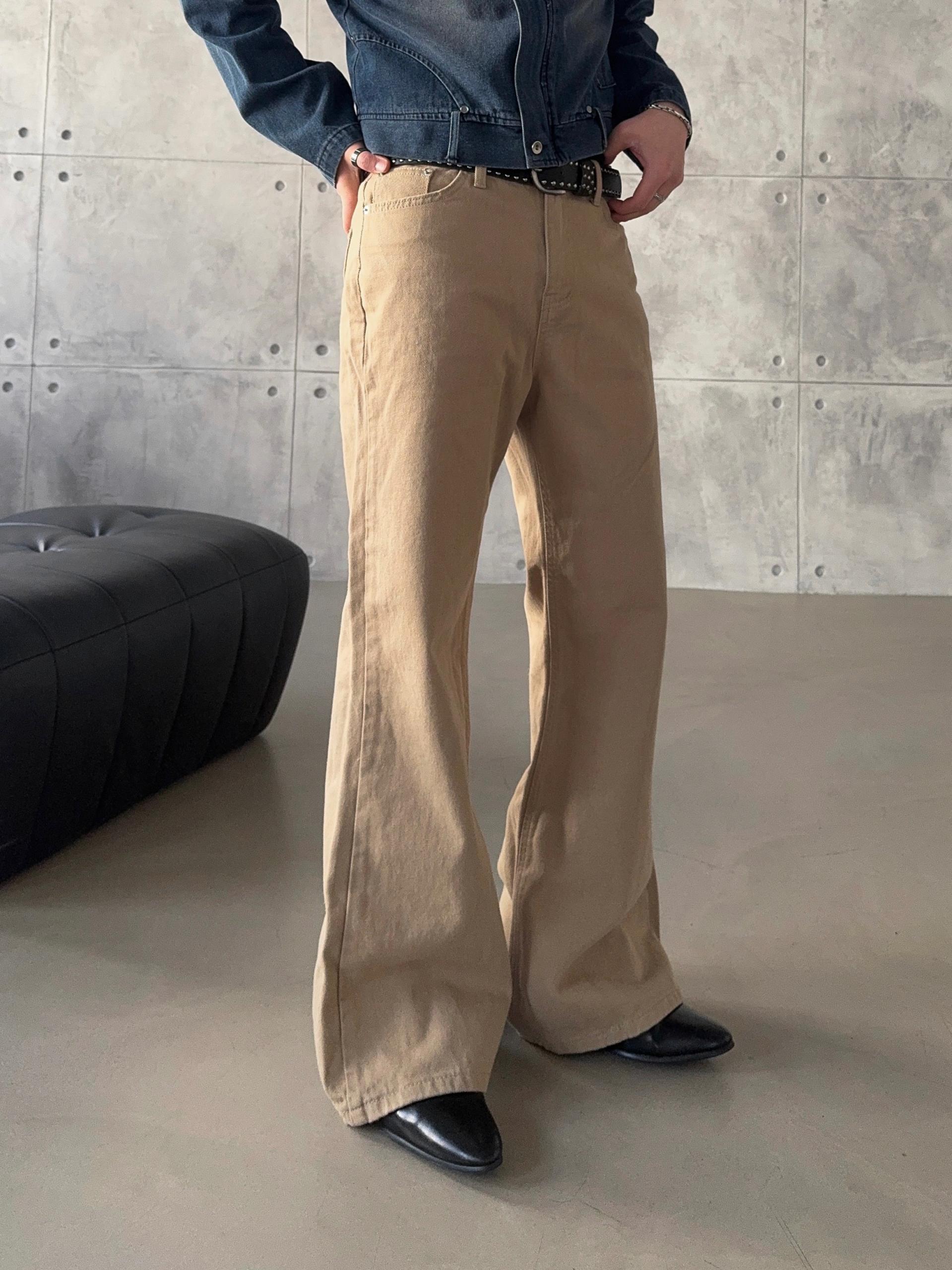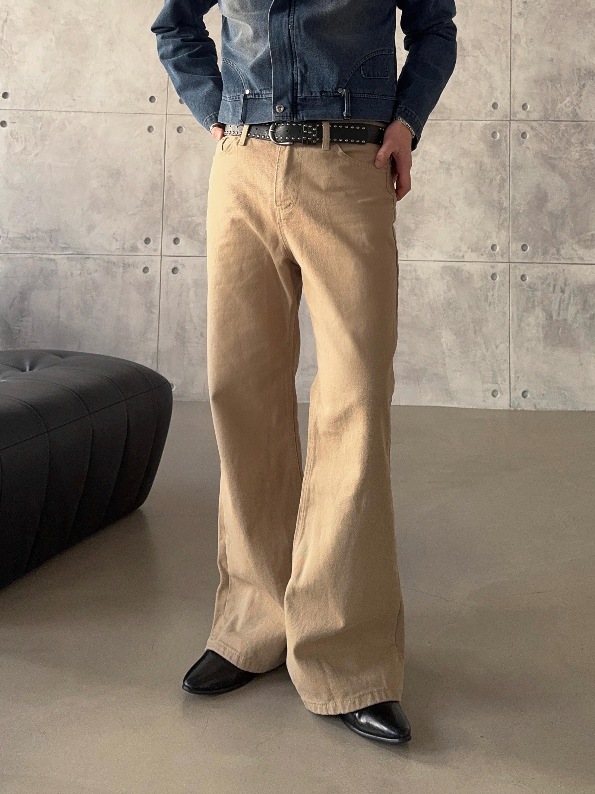 -탄탄한 면 원단으로 제작된 플레어 팬츠