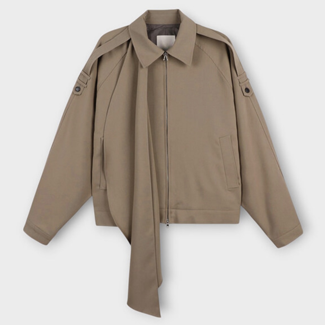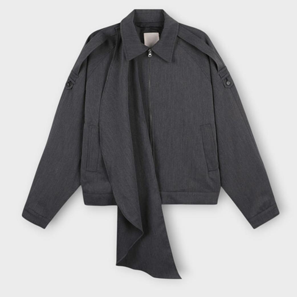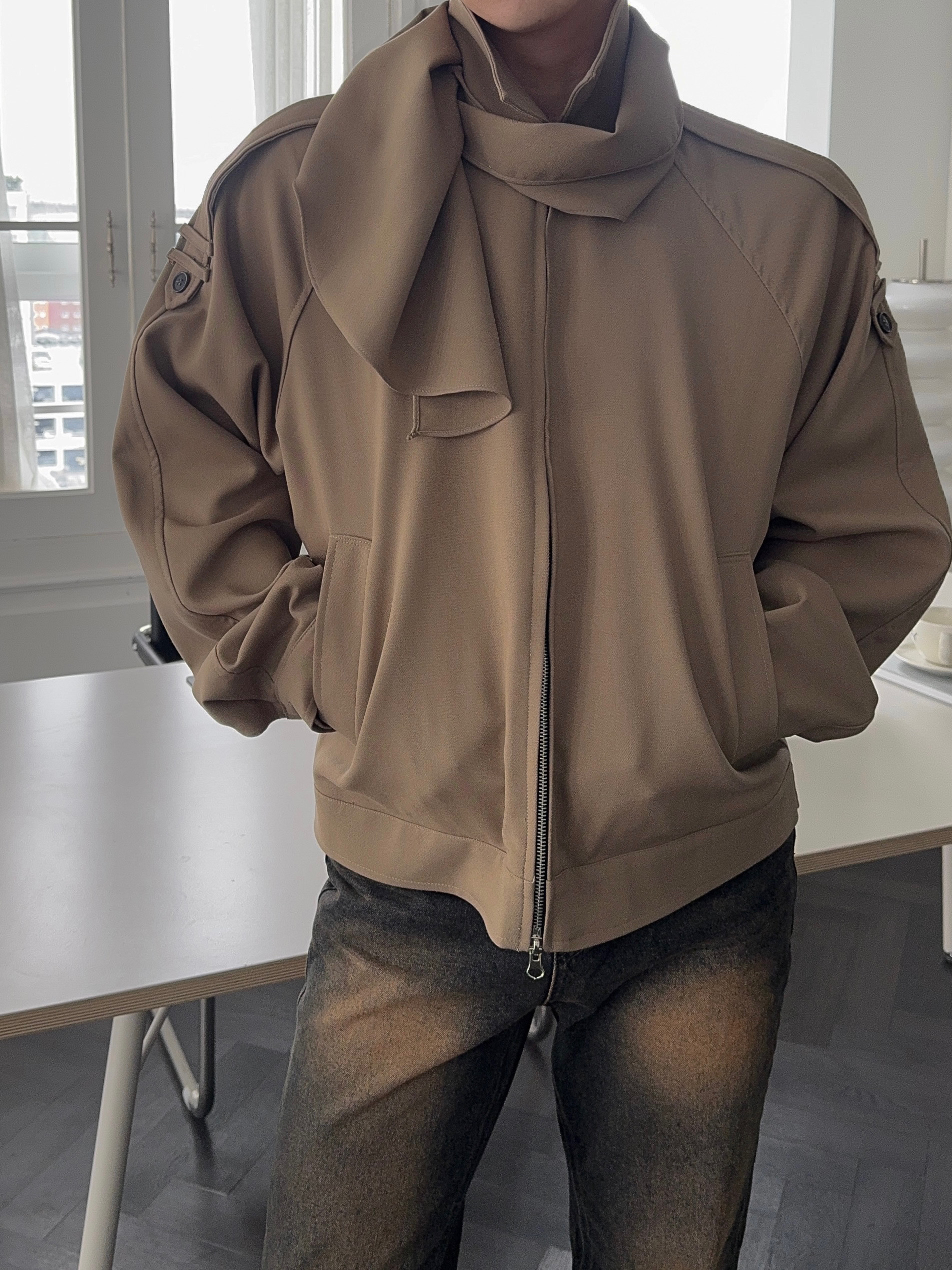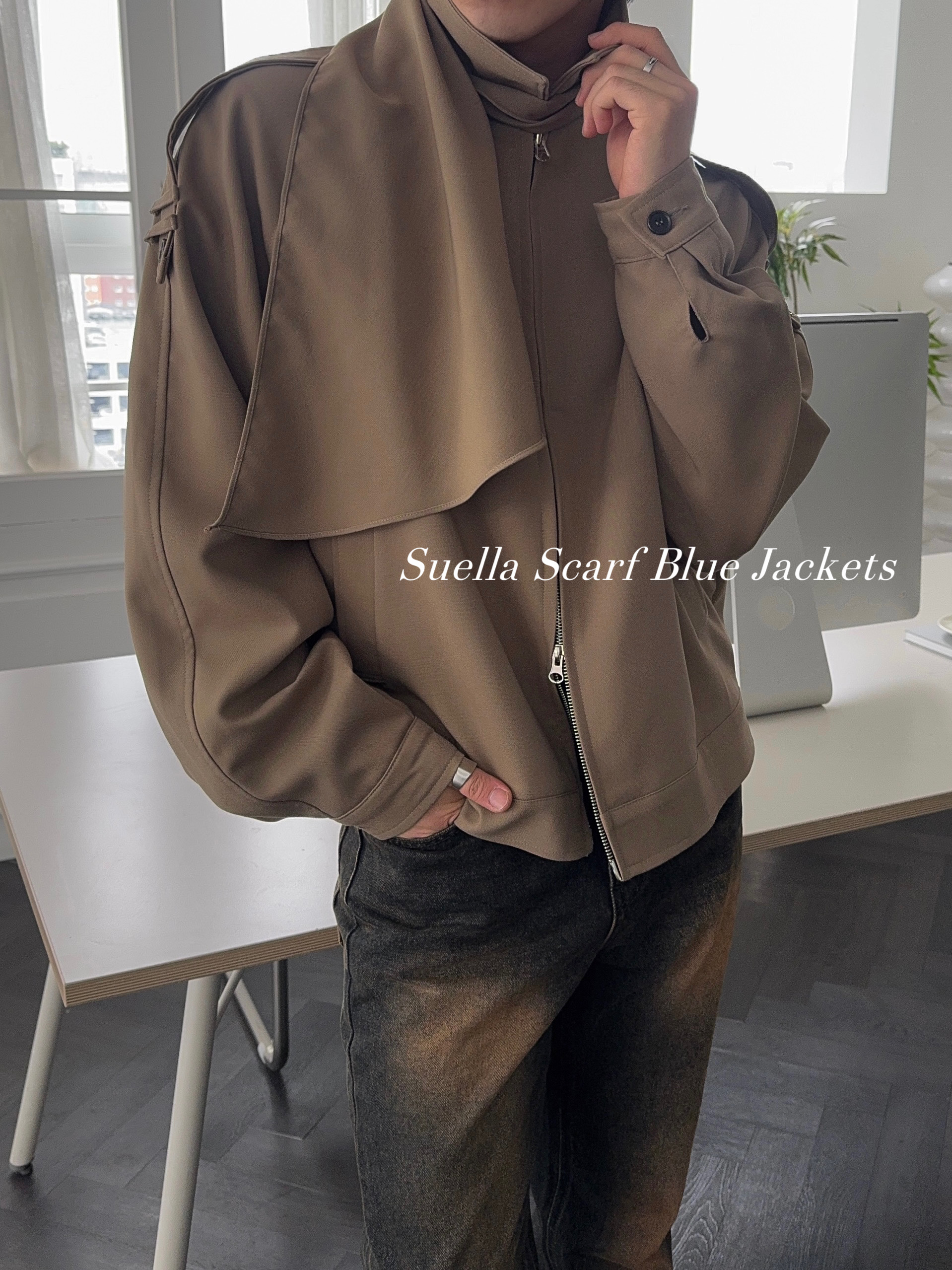 -자켓에 탈부착이 가능한 스카프 디자인으로 유니크한 블루종 자켓