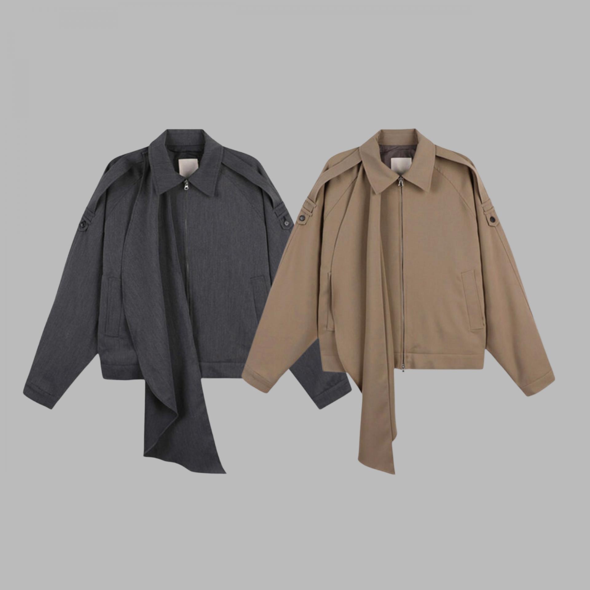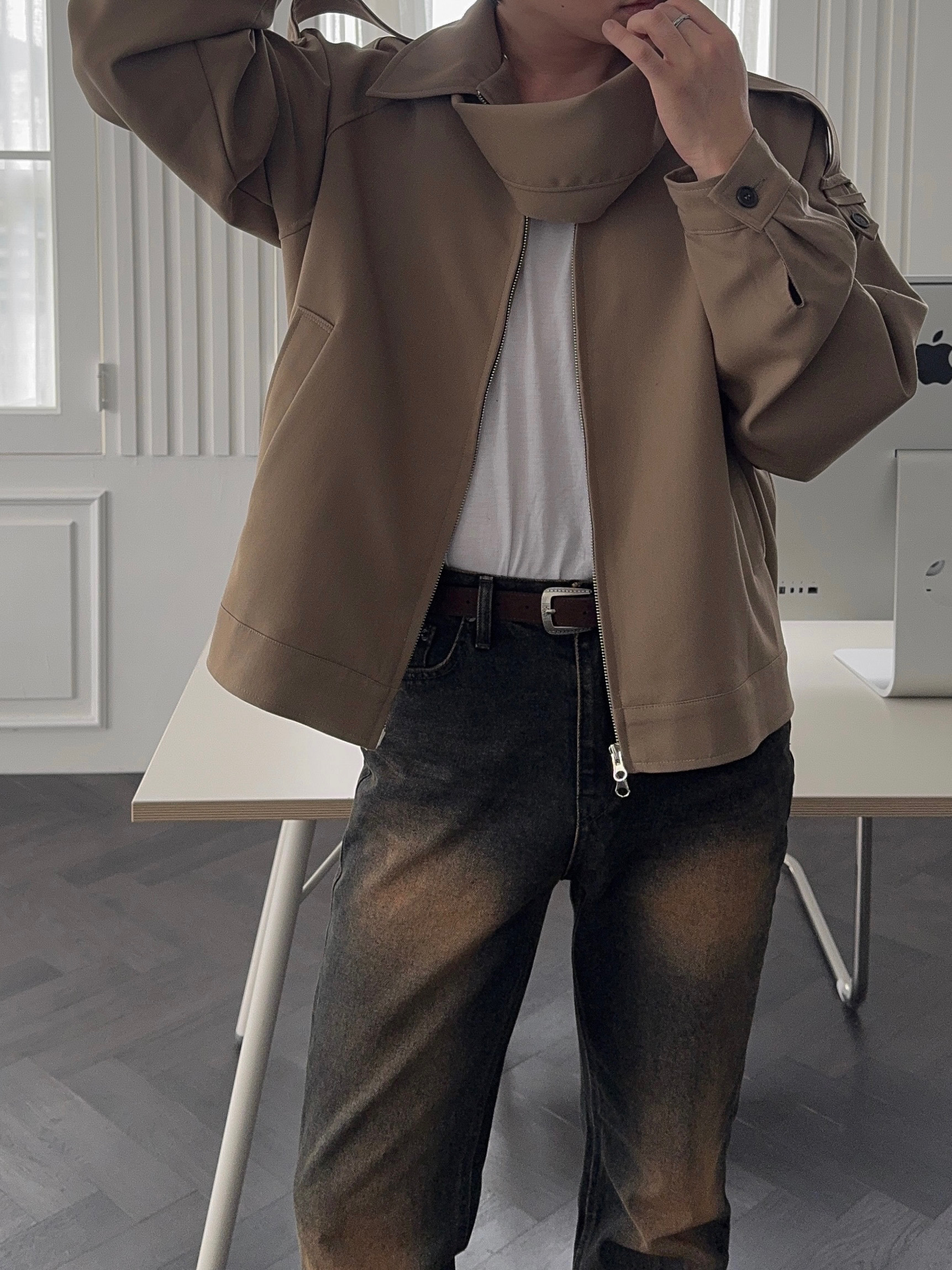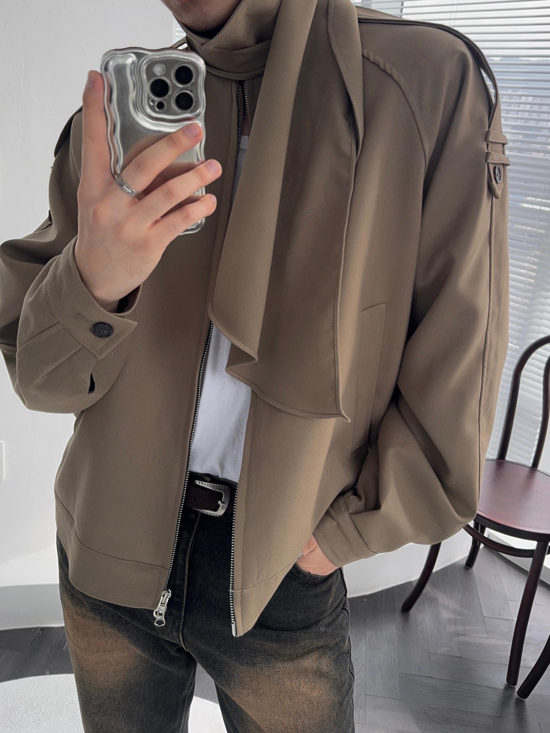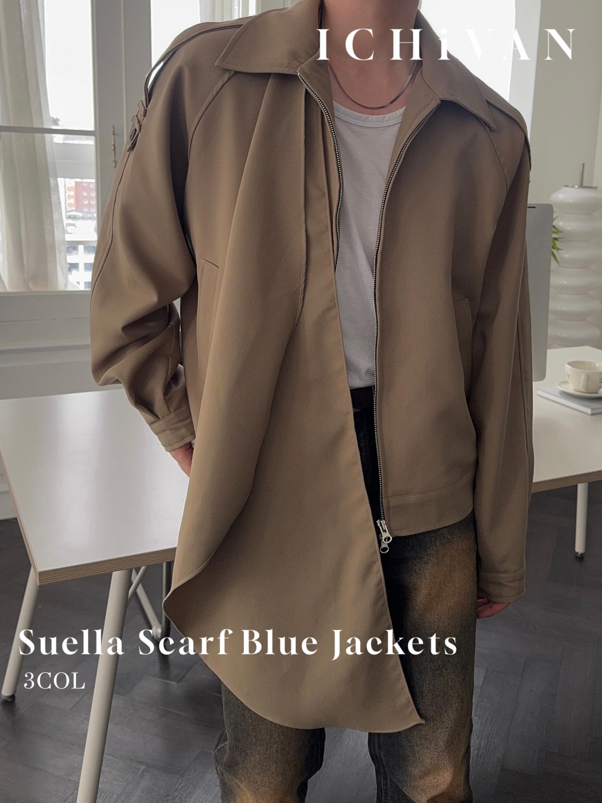 -자켓에 탈부착이 가능한 스카프 디자인으로 유니크한 블루종 자켓