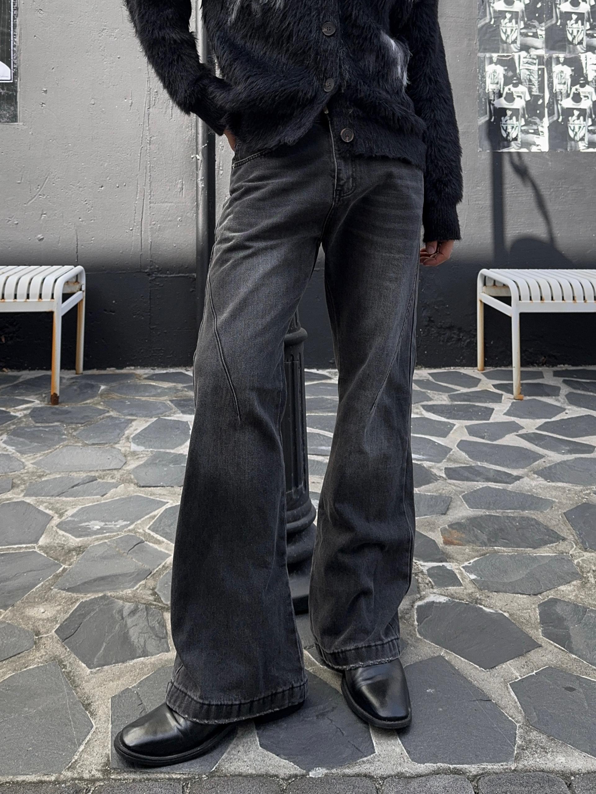 -탄탄한 데님 소재로 제작된 플레어 팬츠