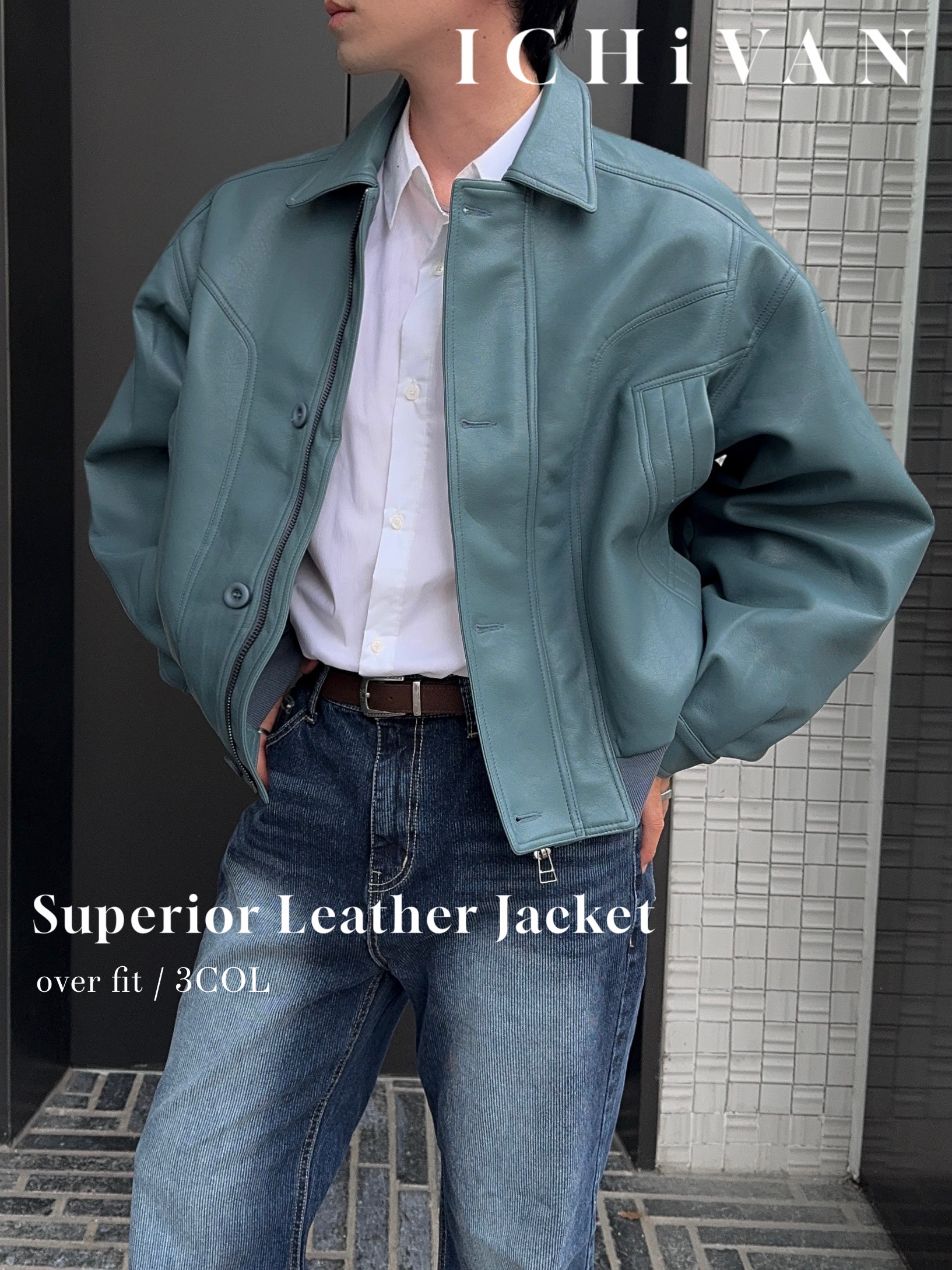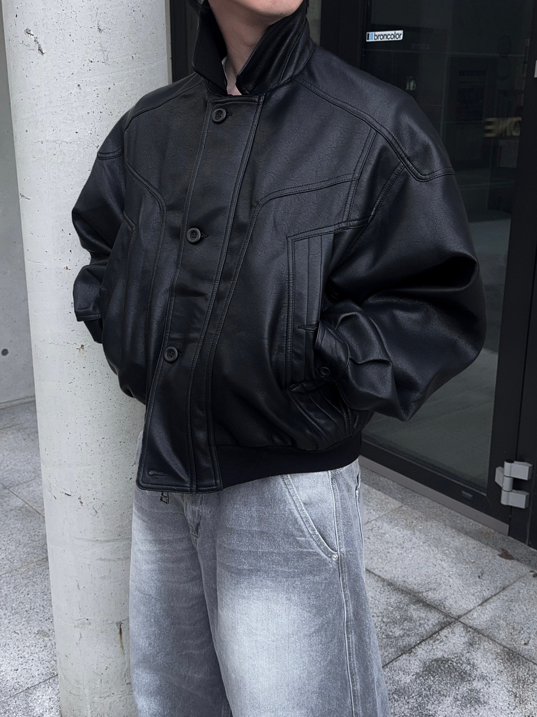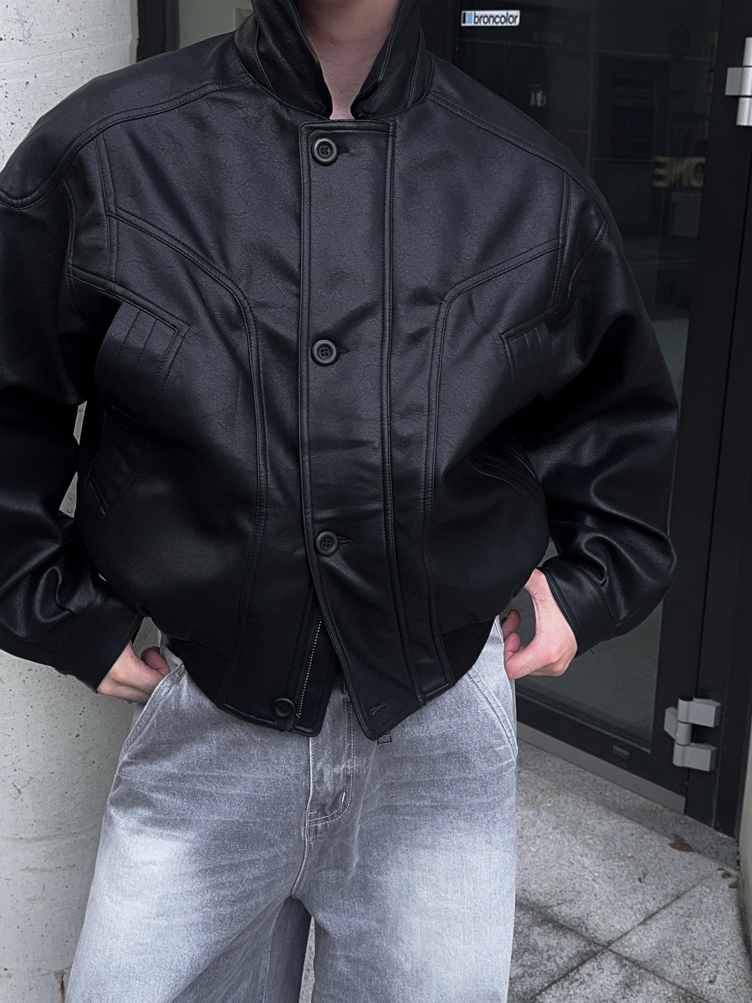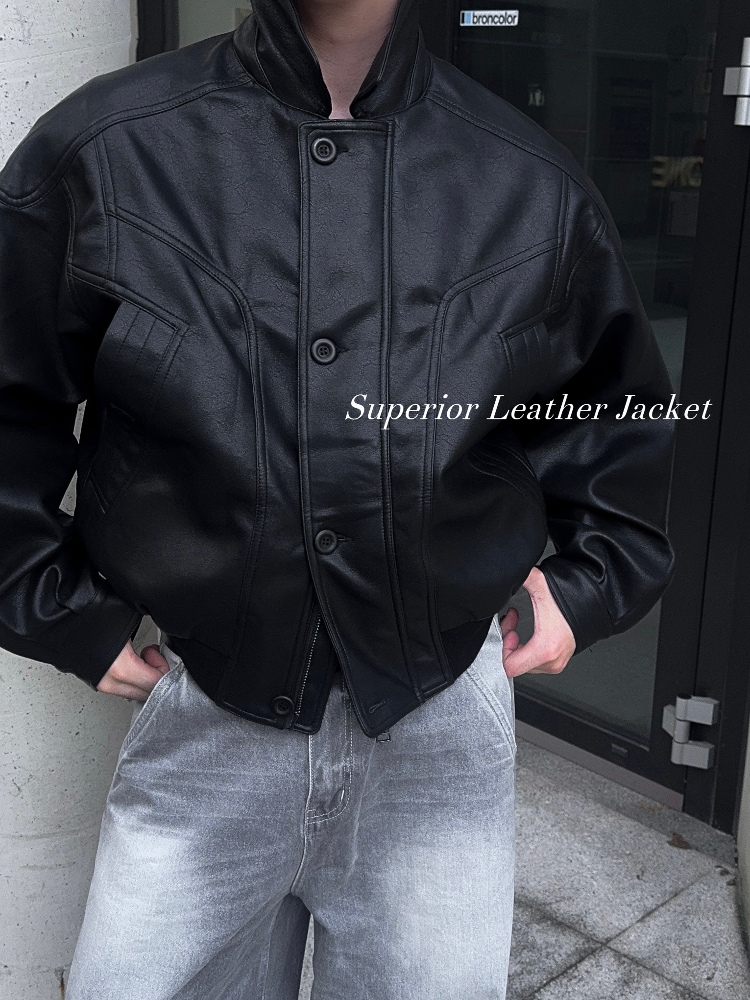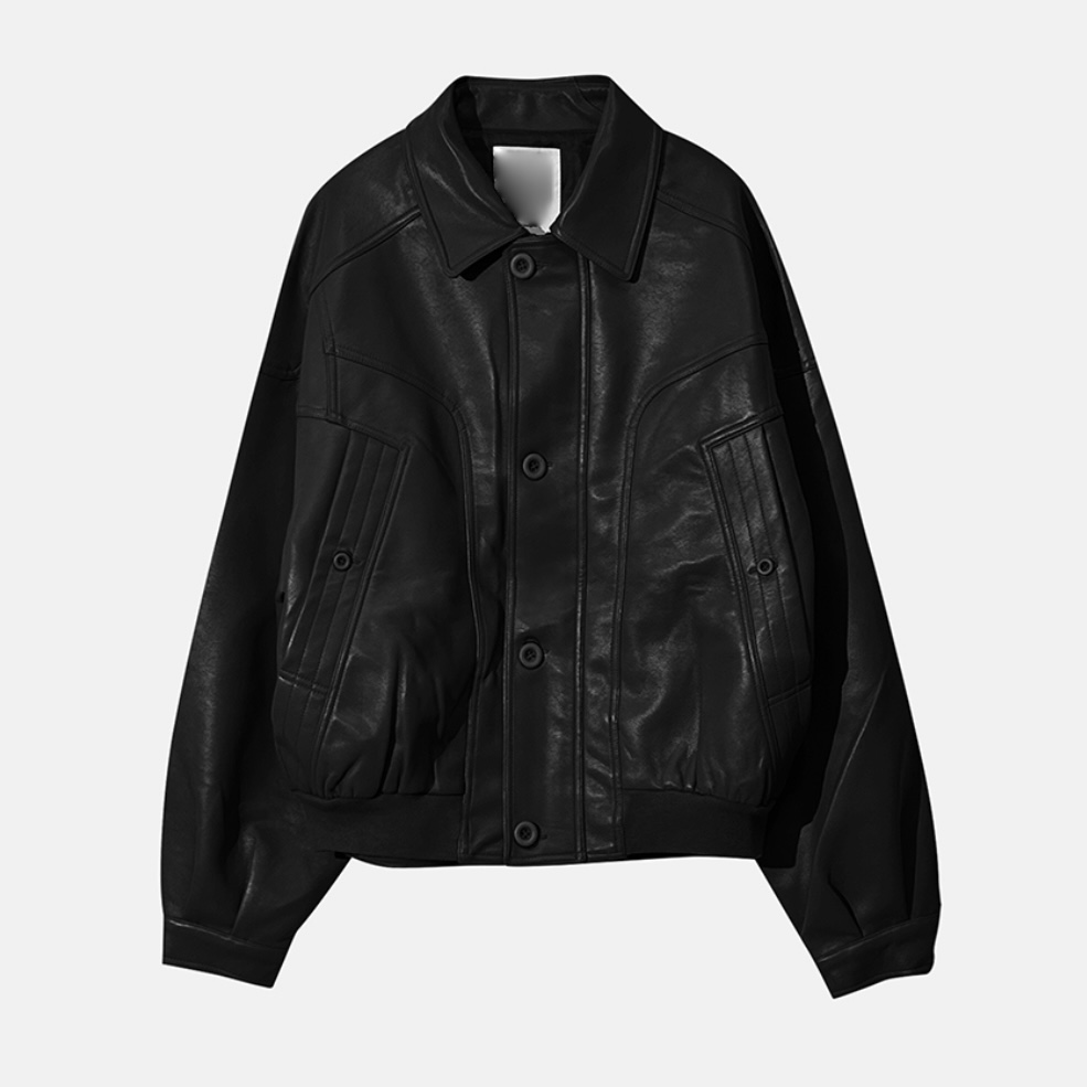 -프리미엄 레더 소재로 제작된 오버 레더 자켓