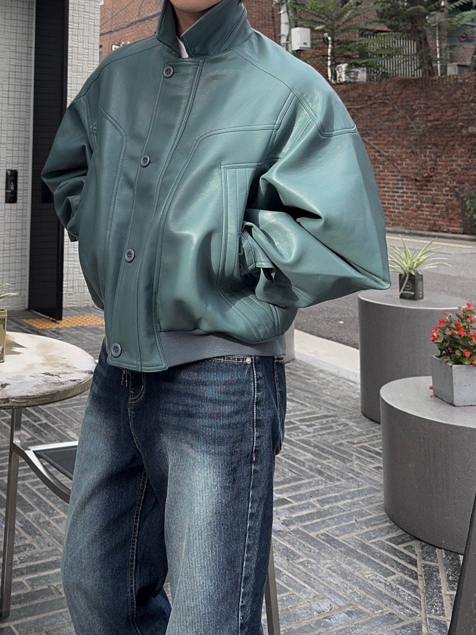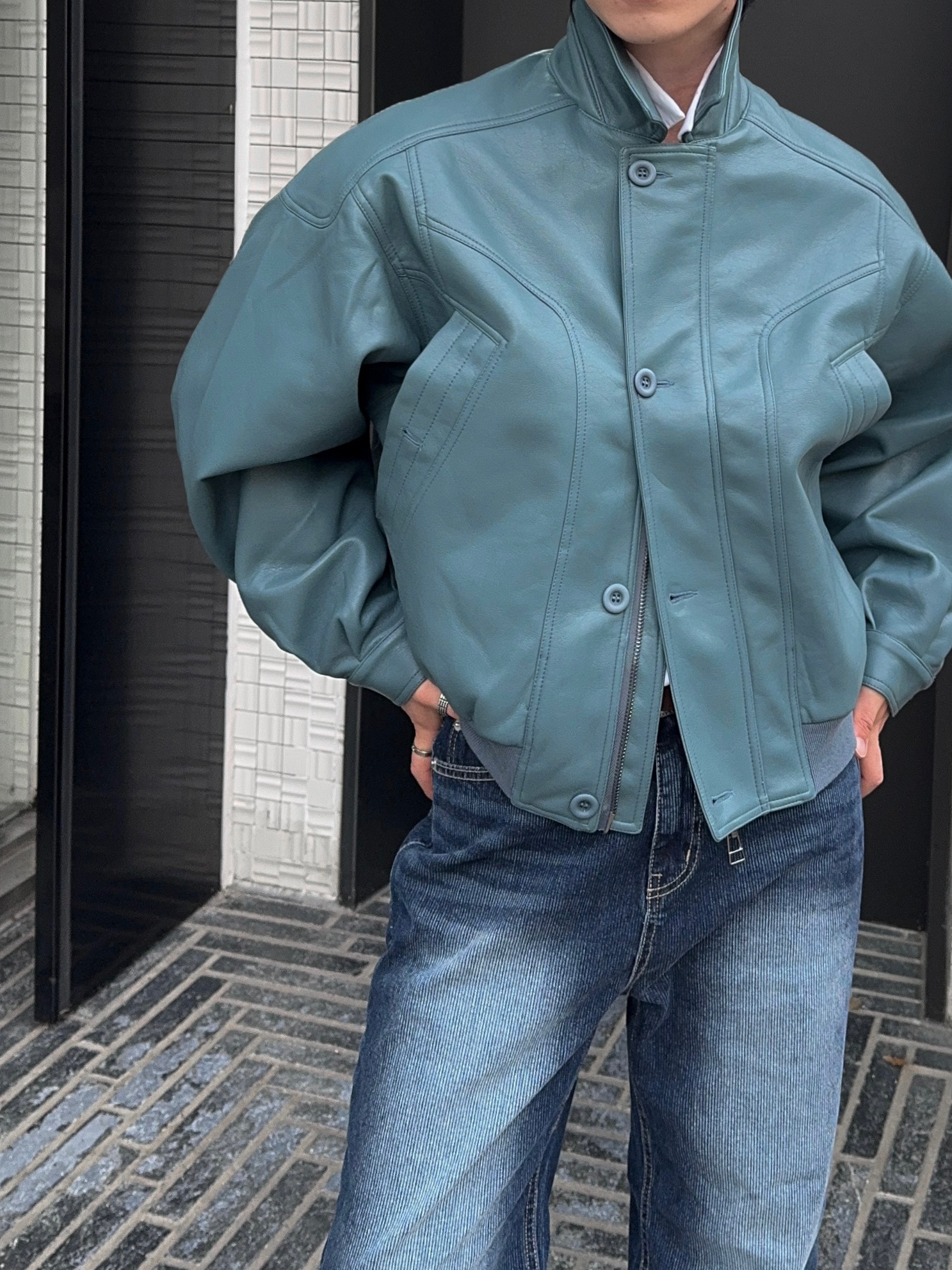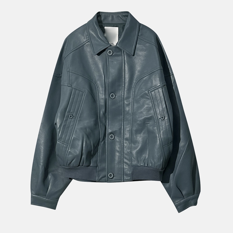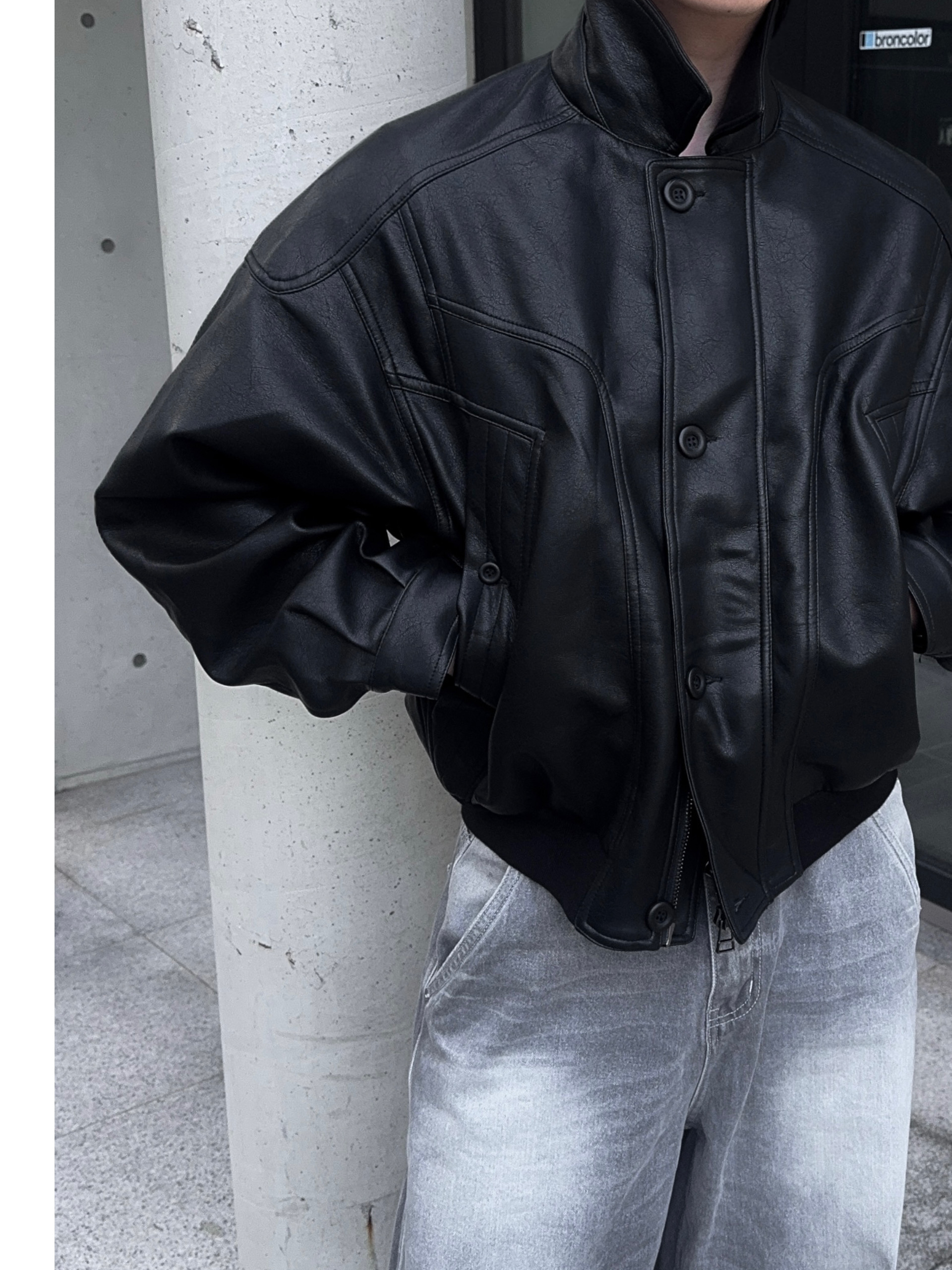 -프리미엄 레더 소재로 제작된 오버 레더 자켓