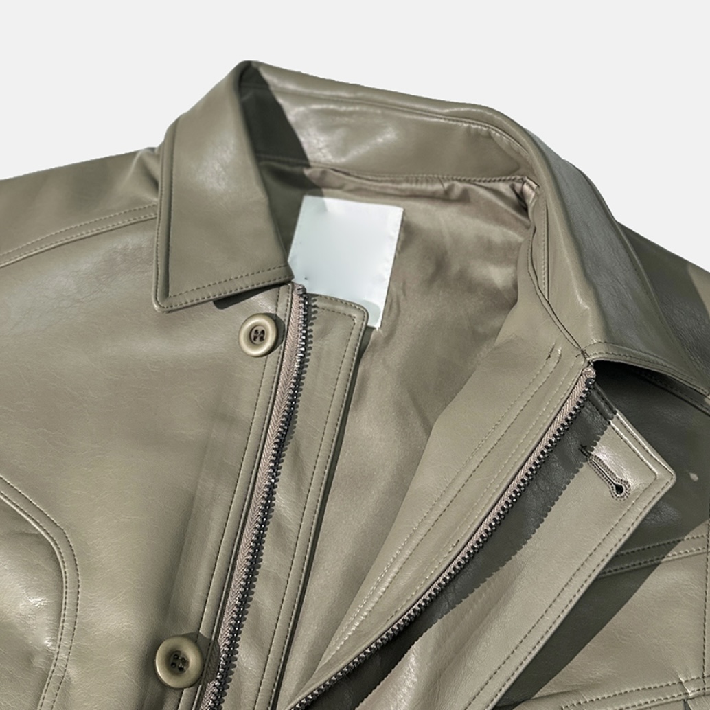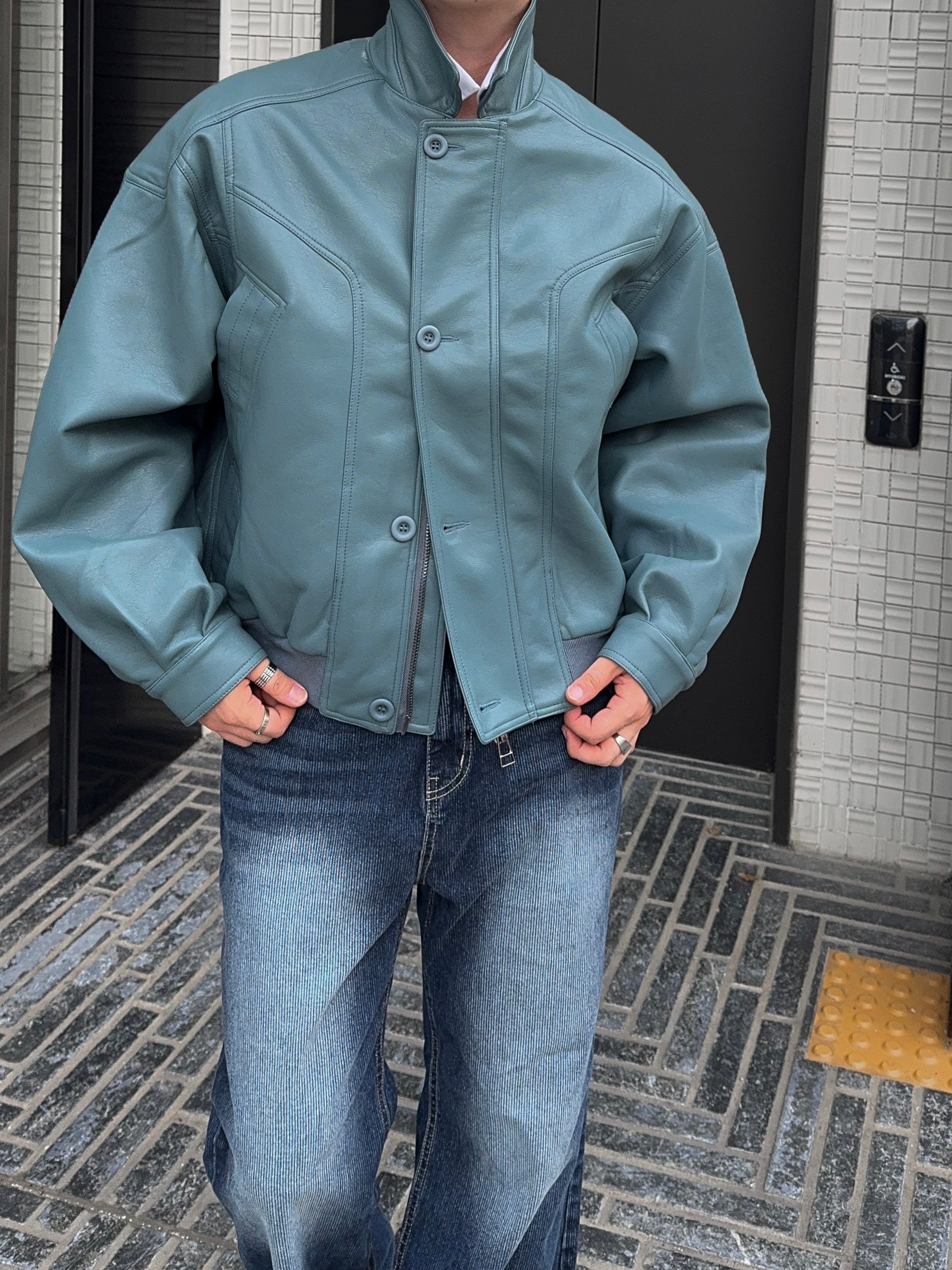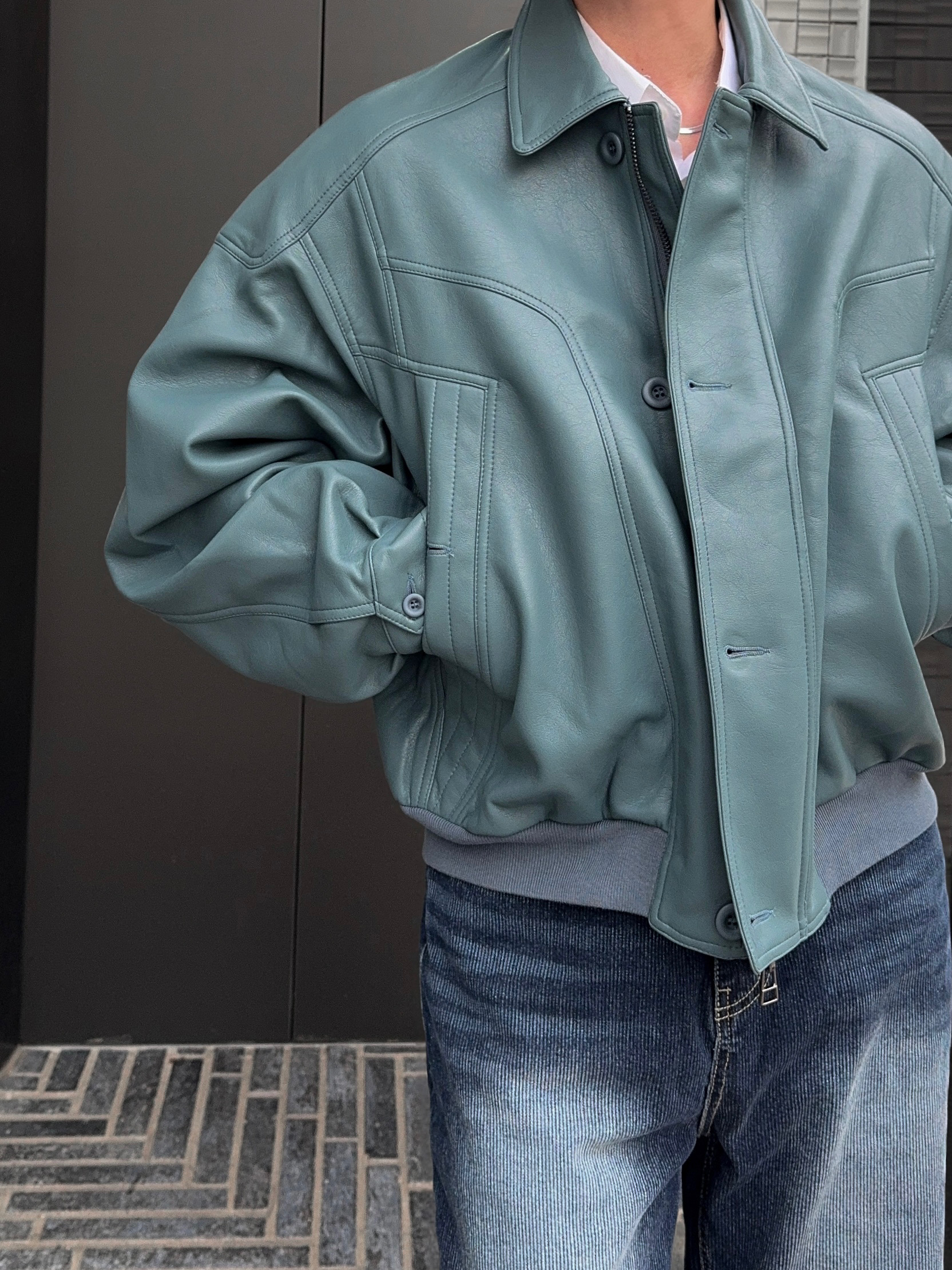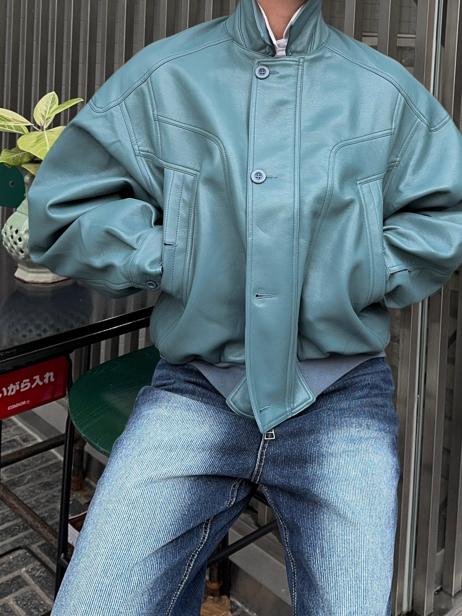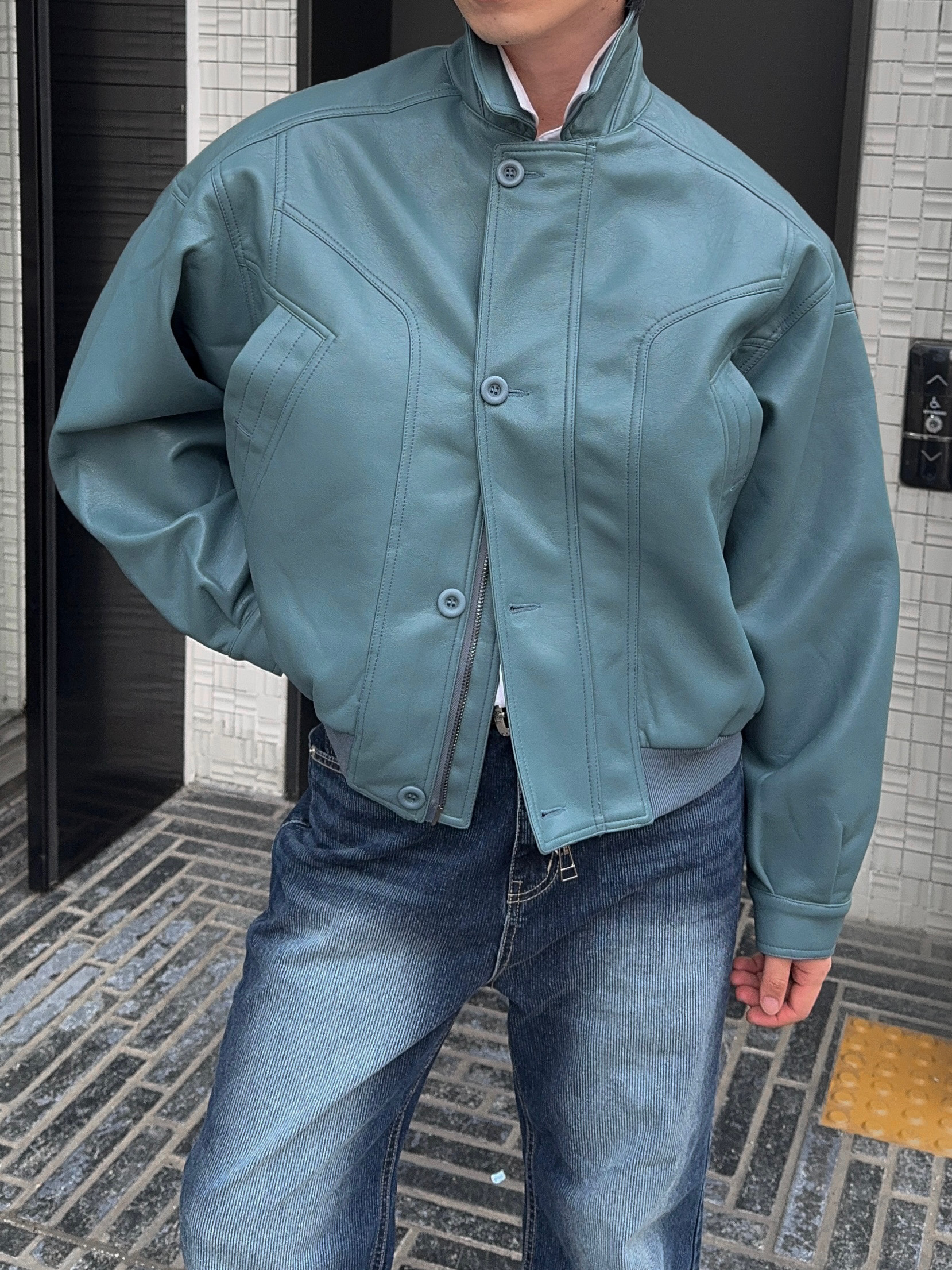 -프리미엄 레더 소재로 제작된 오버 레더 자켓