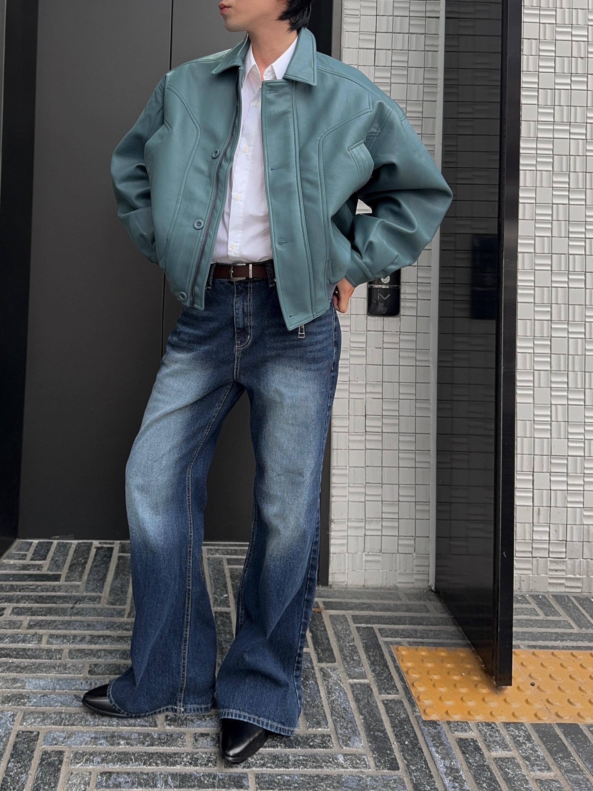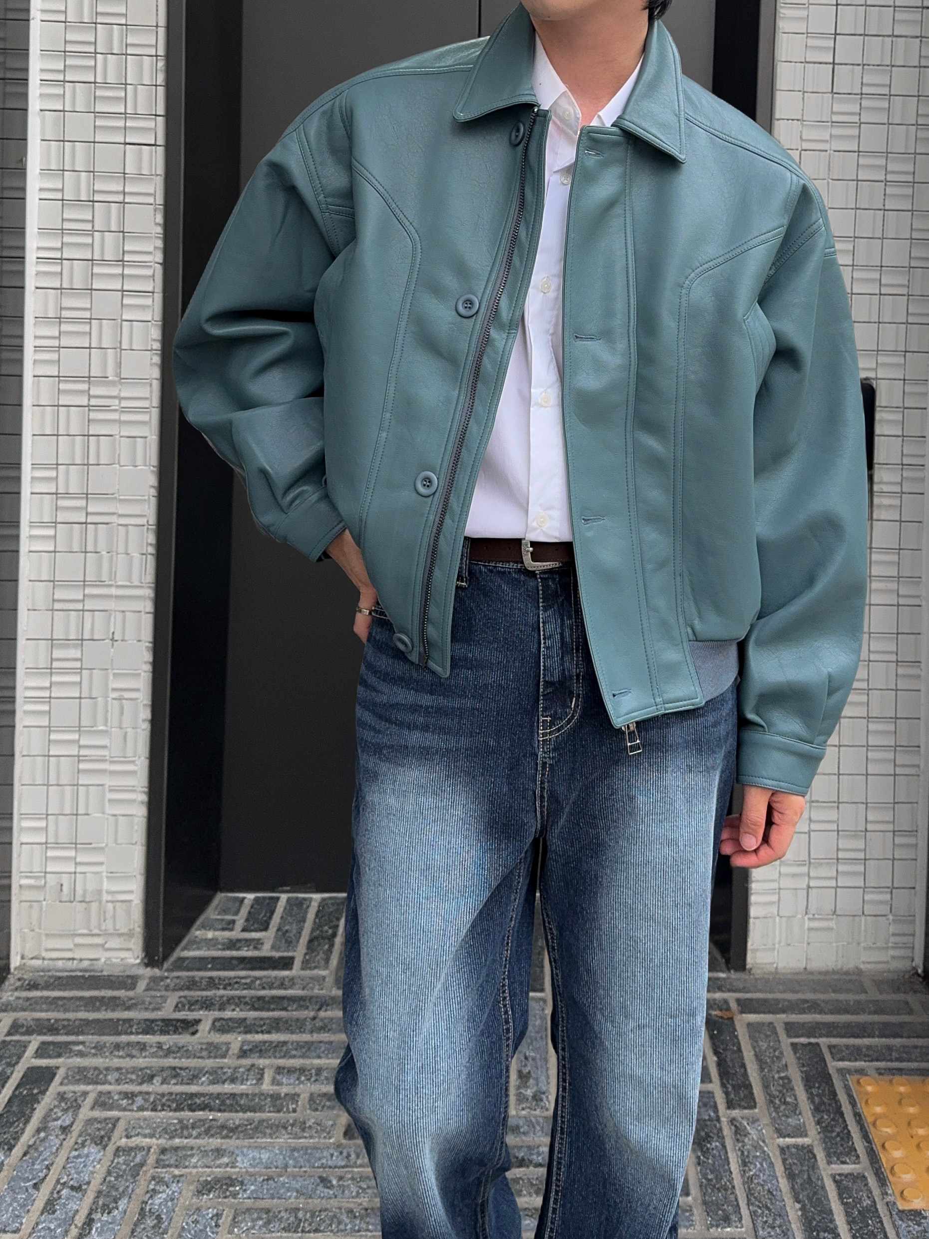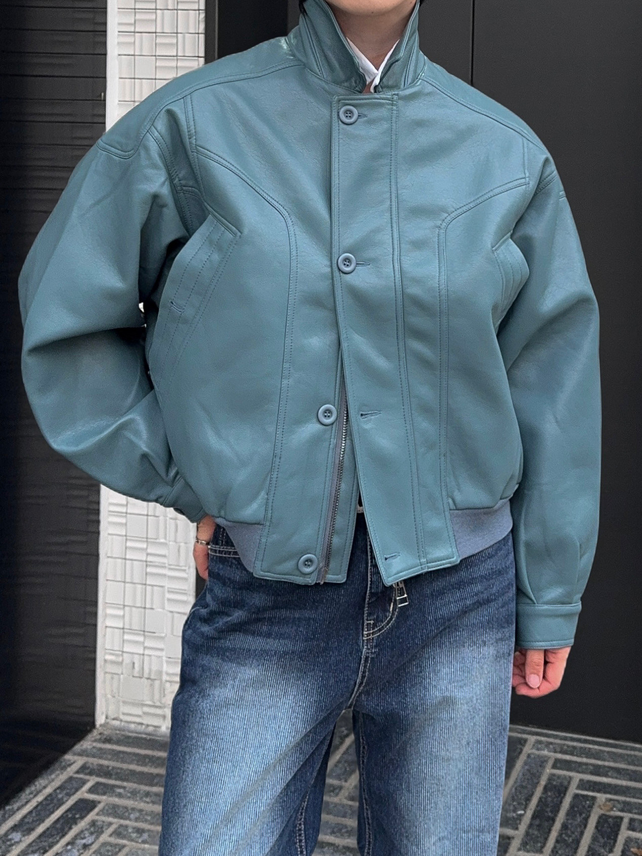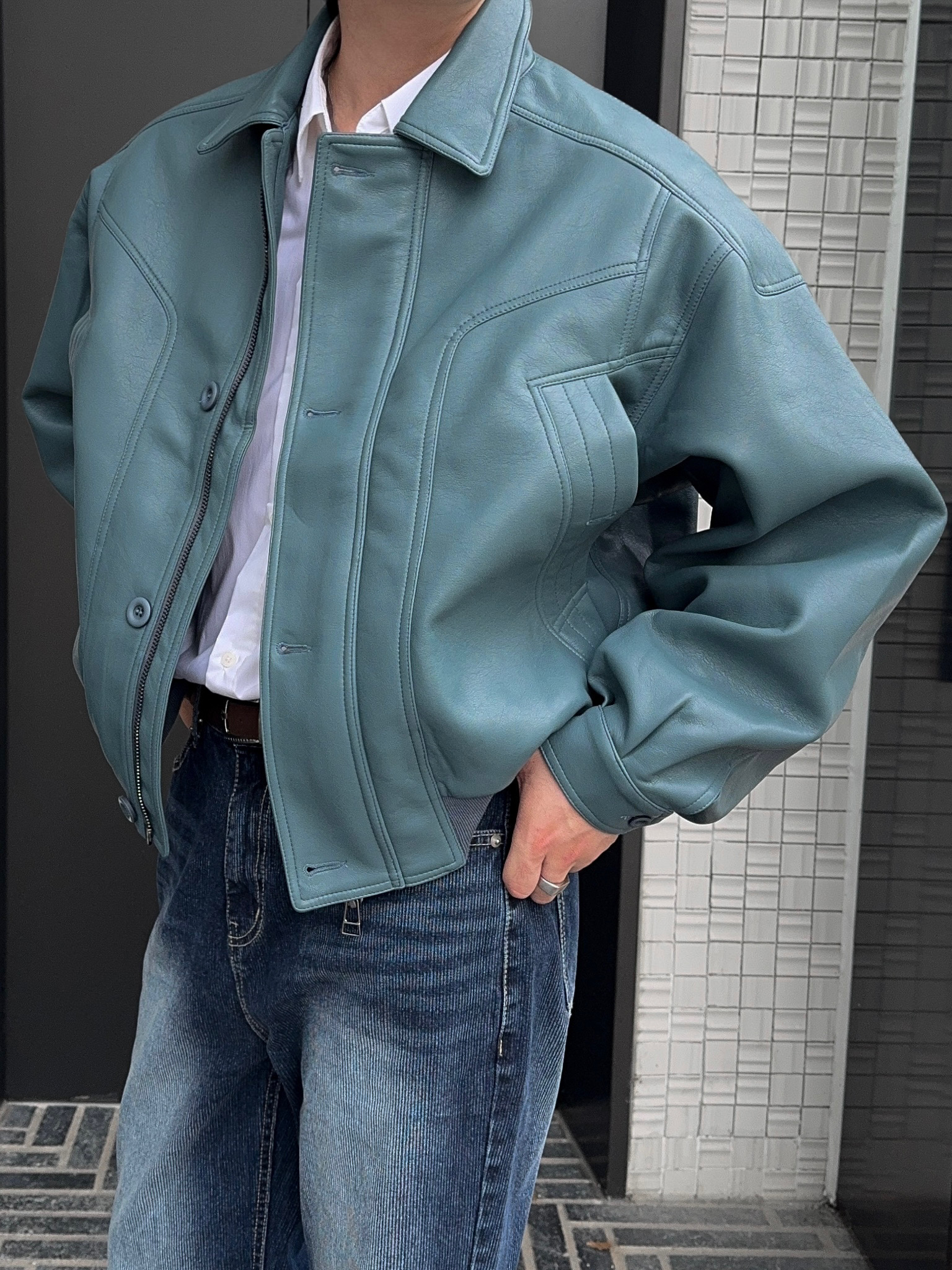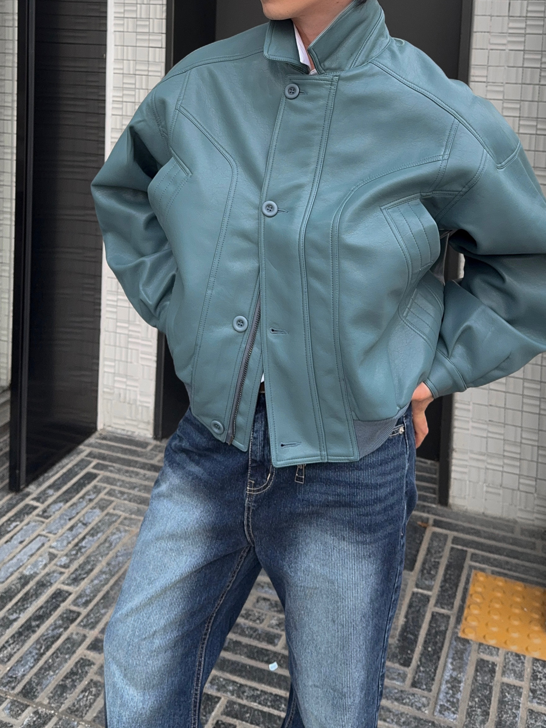-프리미엄 레더 소재로 제작된 오버 레더 자켓