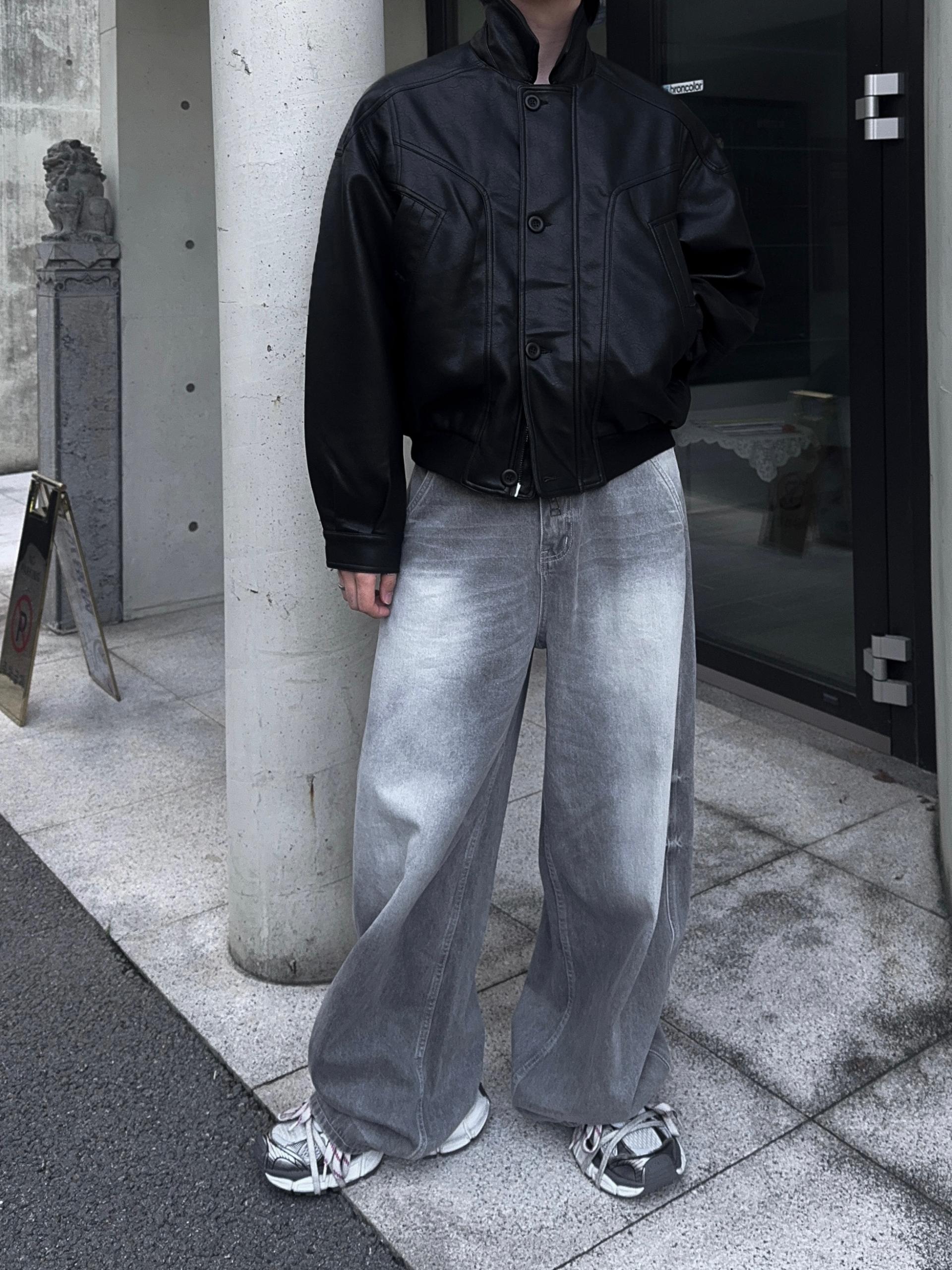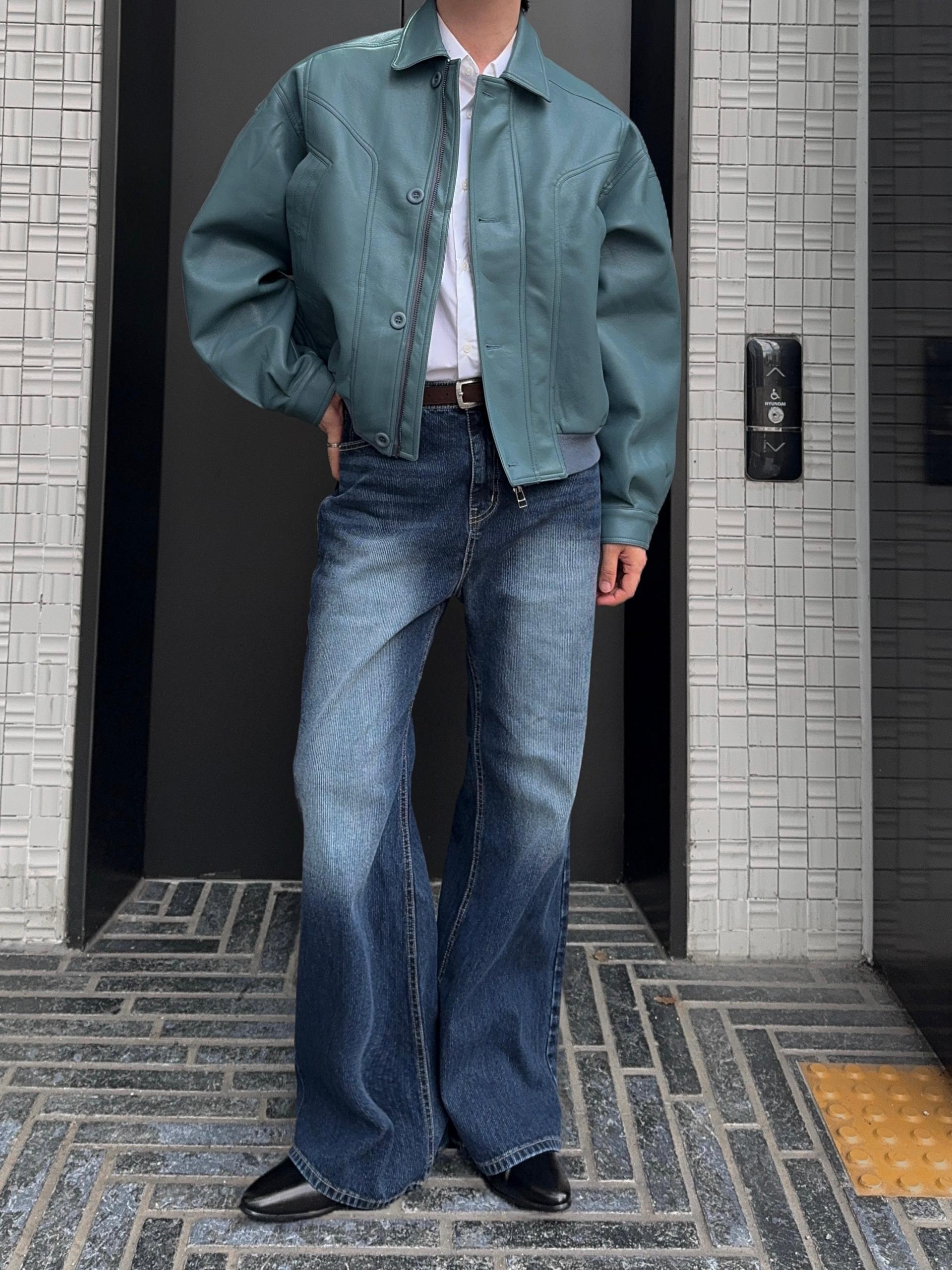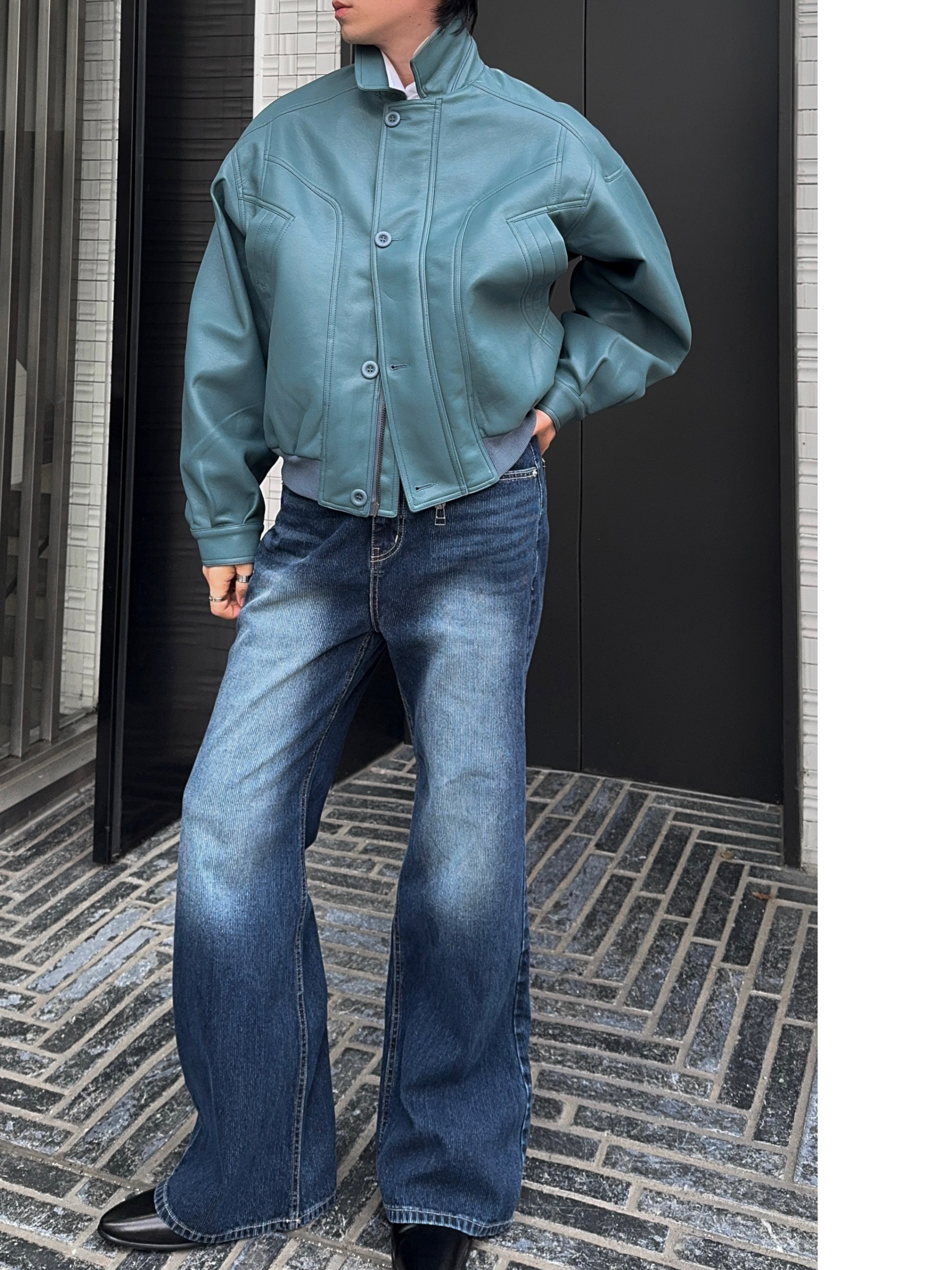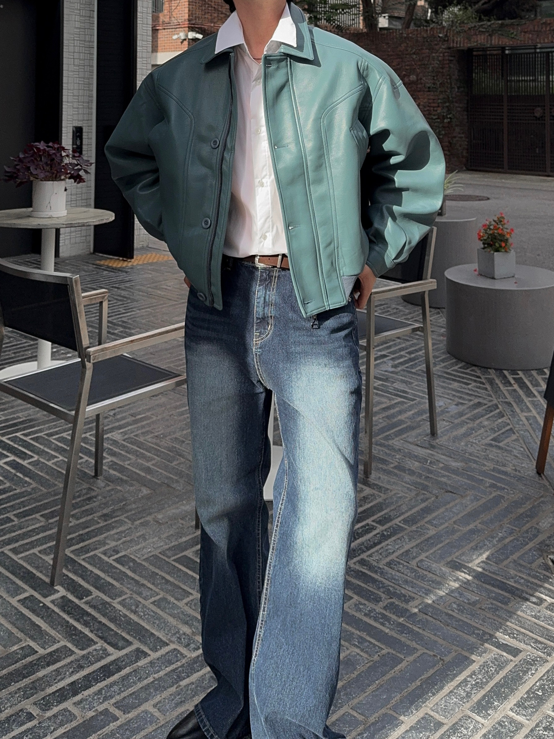 -프리미엄 레더 소재로 제작된 오버 레더 자켓