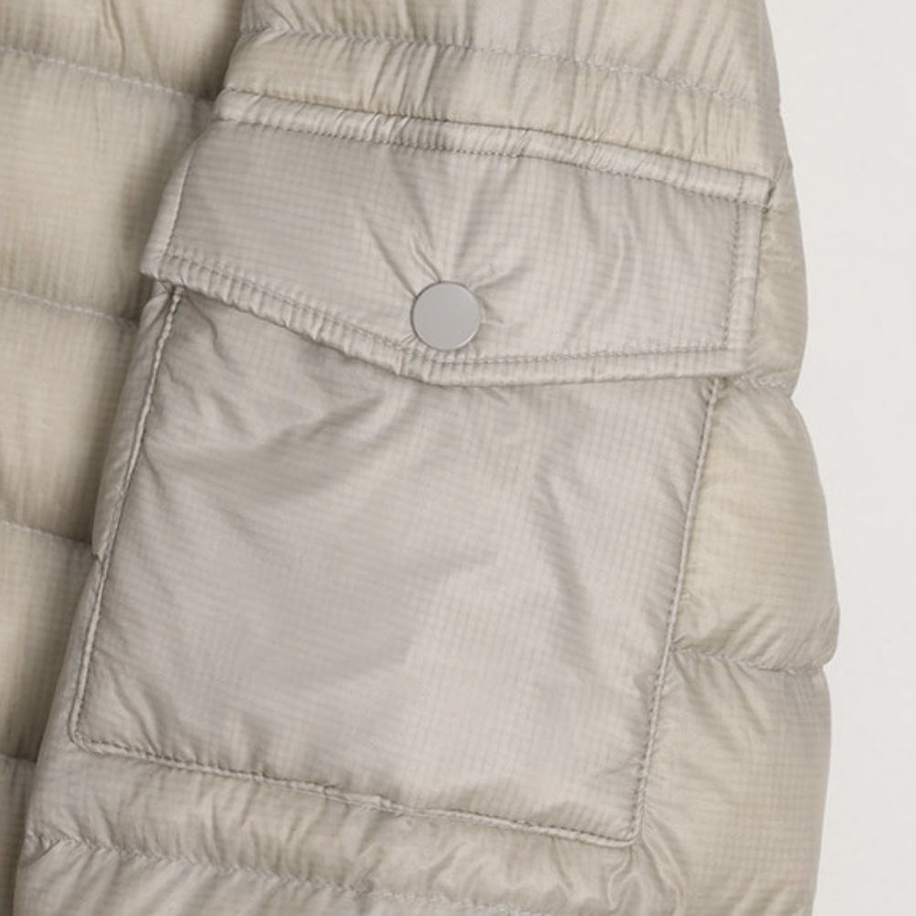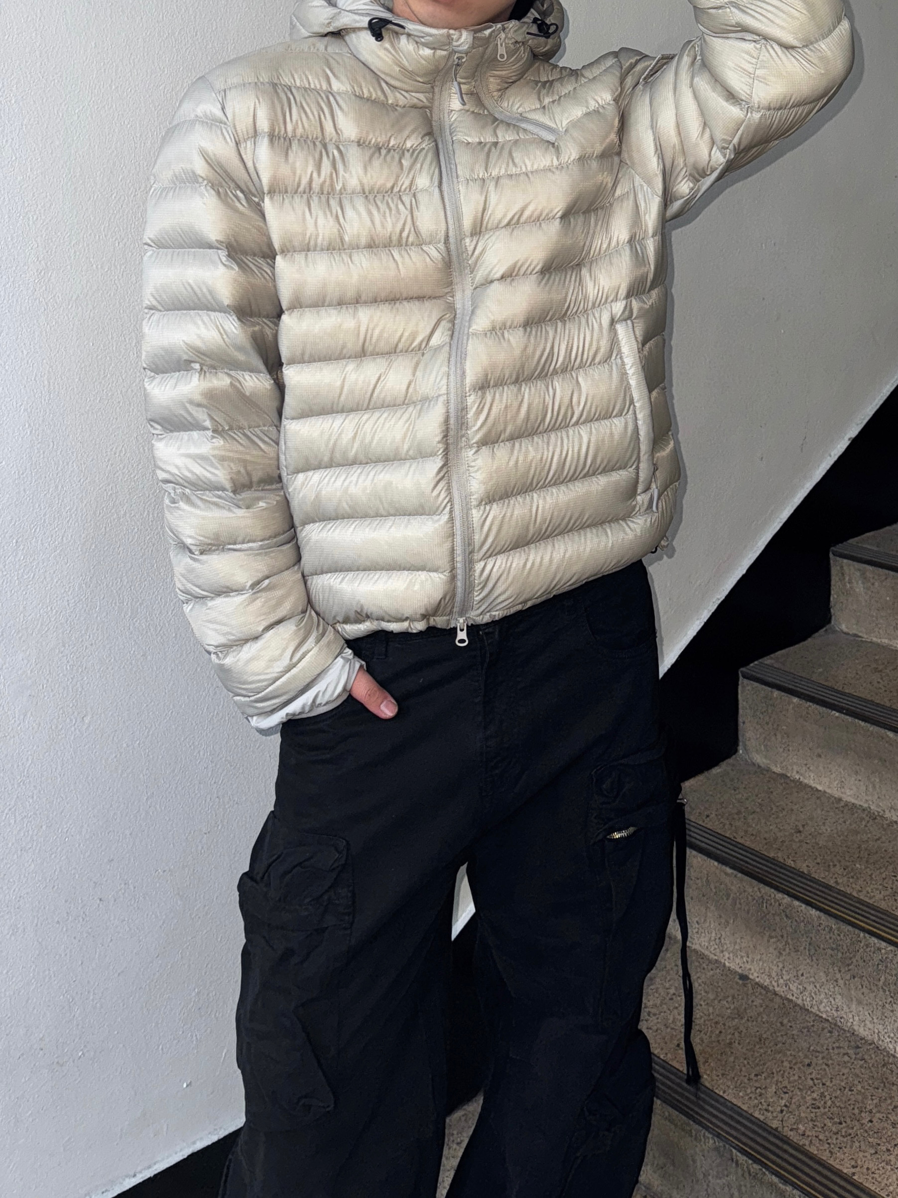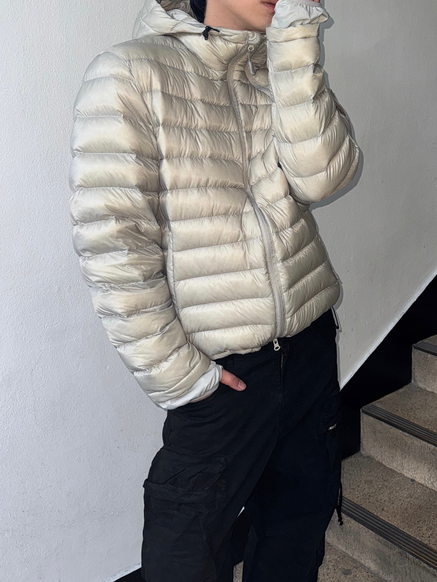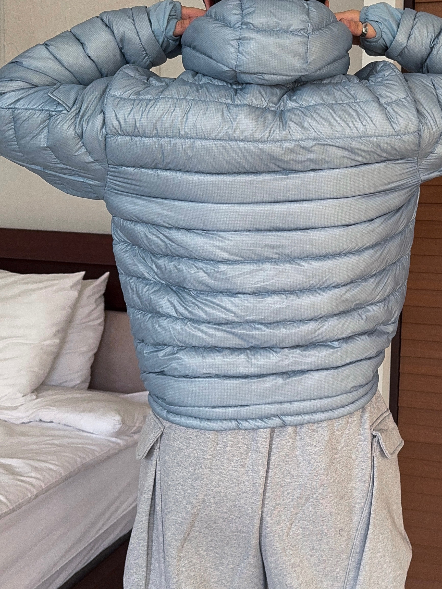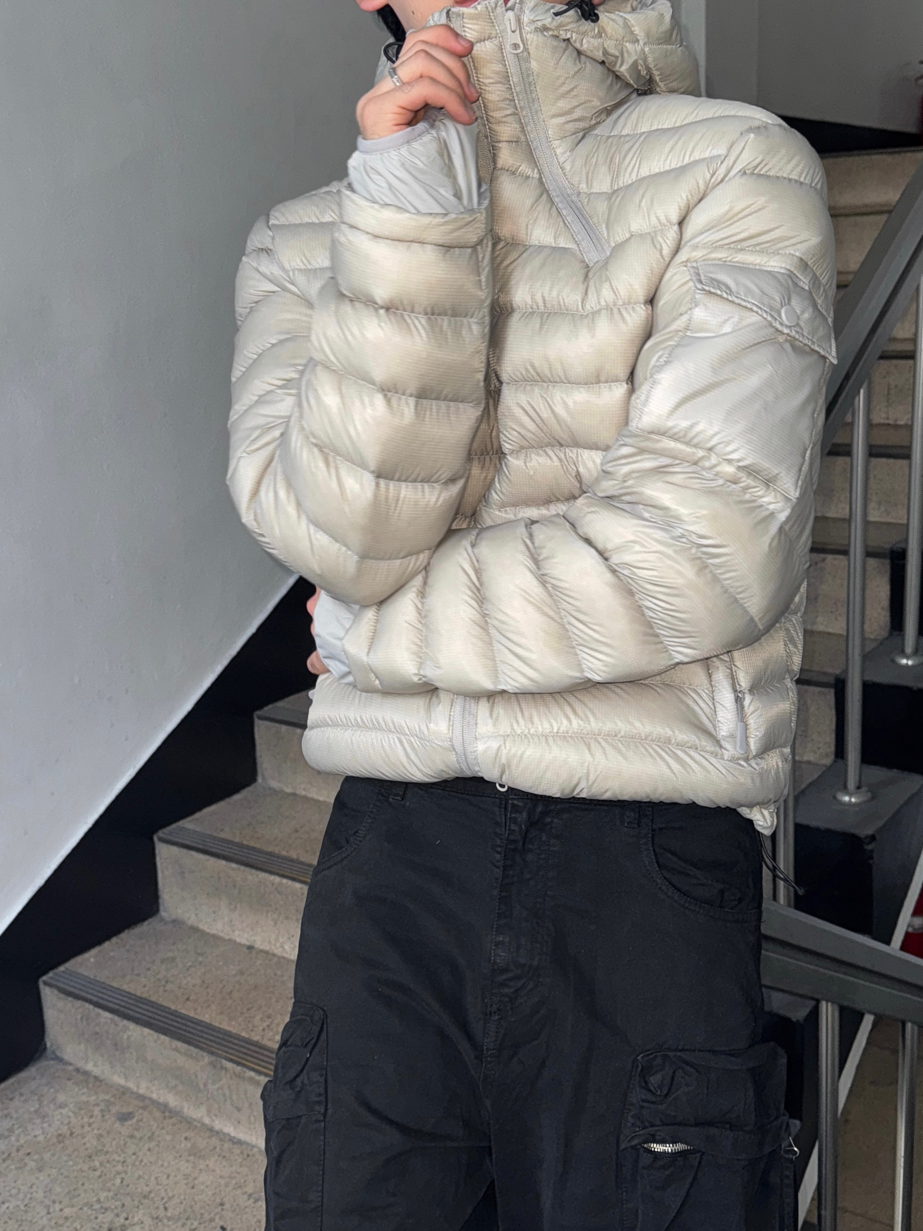 -오리털이 보이는 다운푸르프 베이비 립 원단으로 제작된 경량 패딩