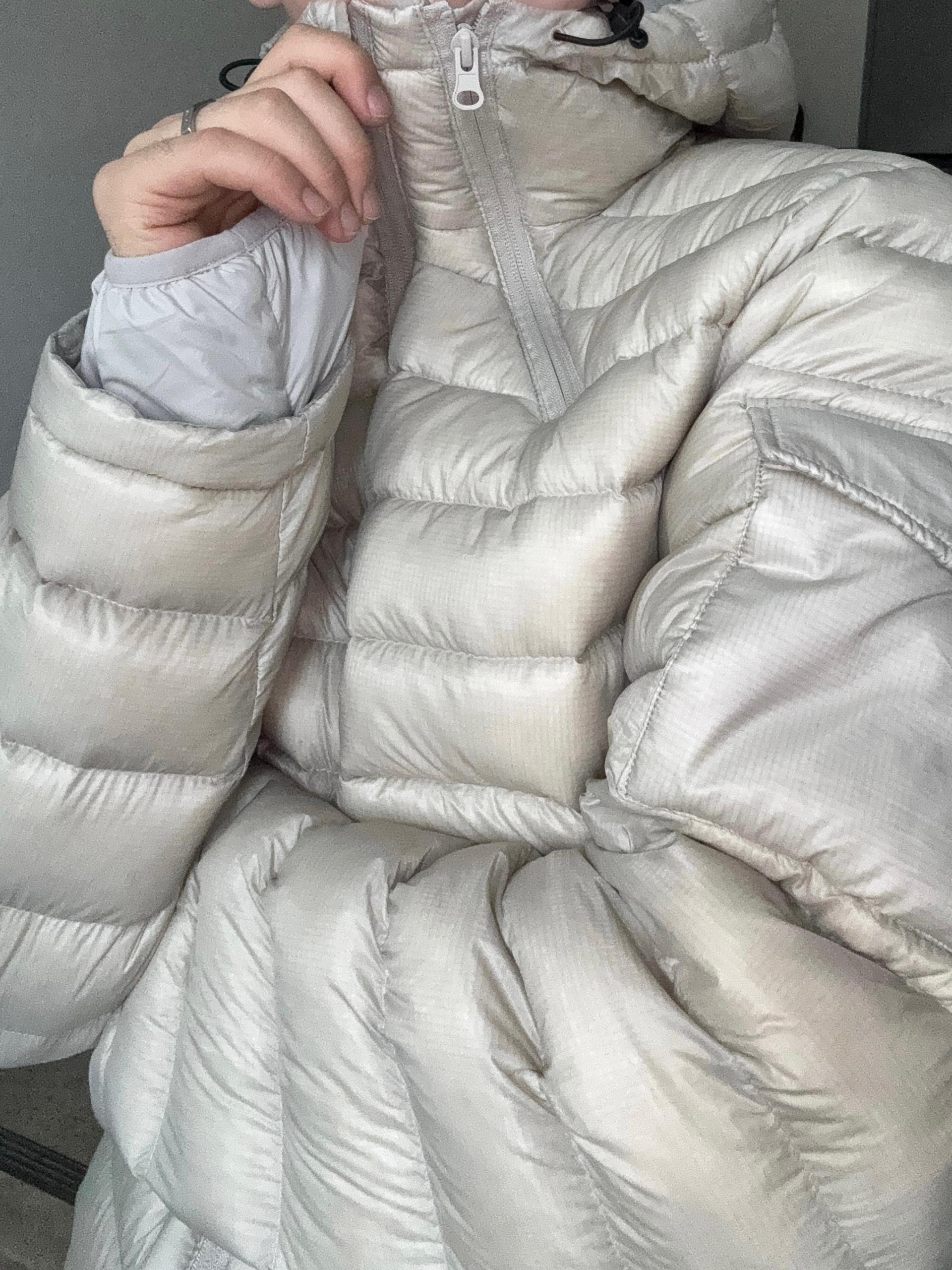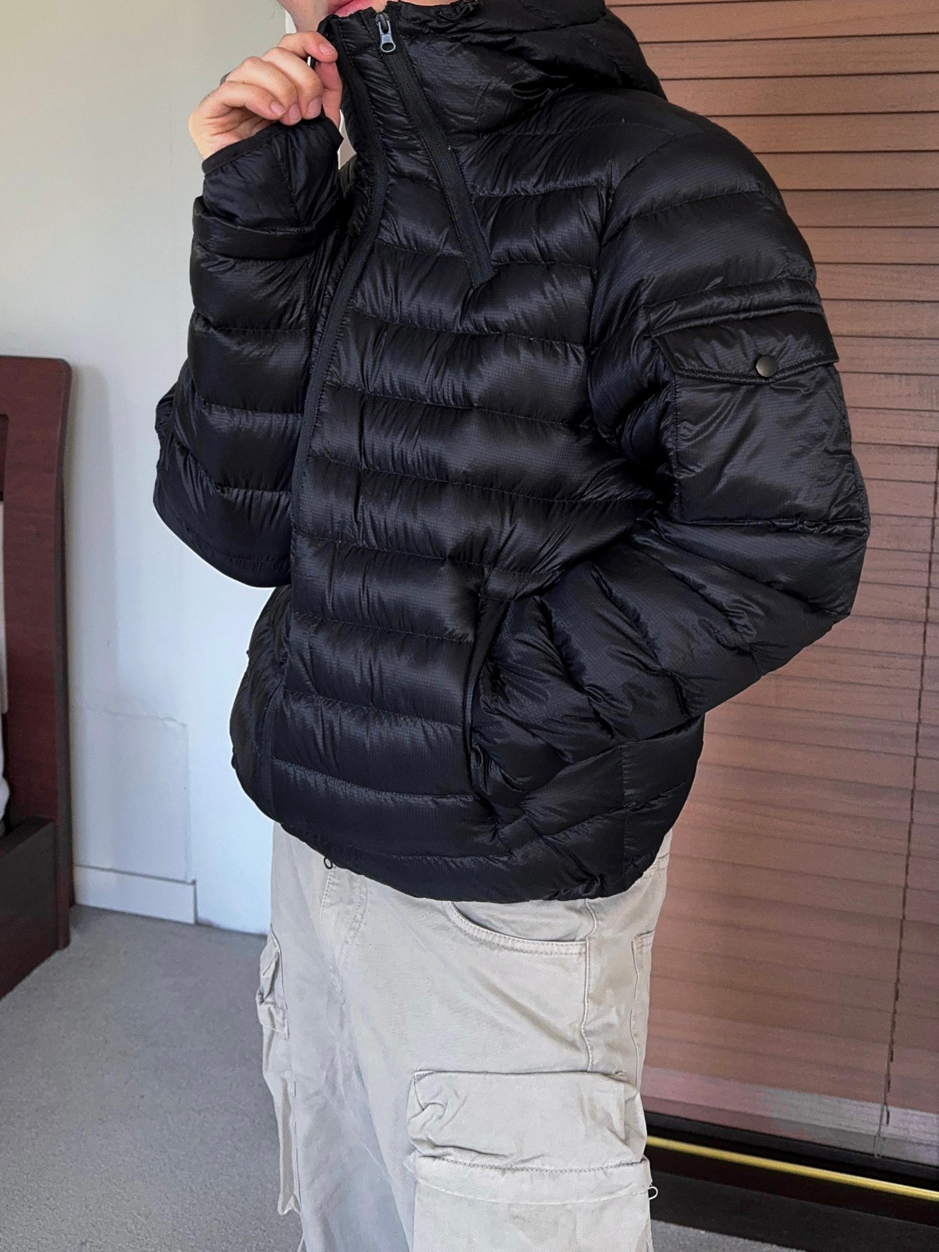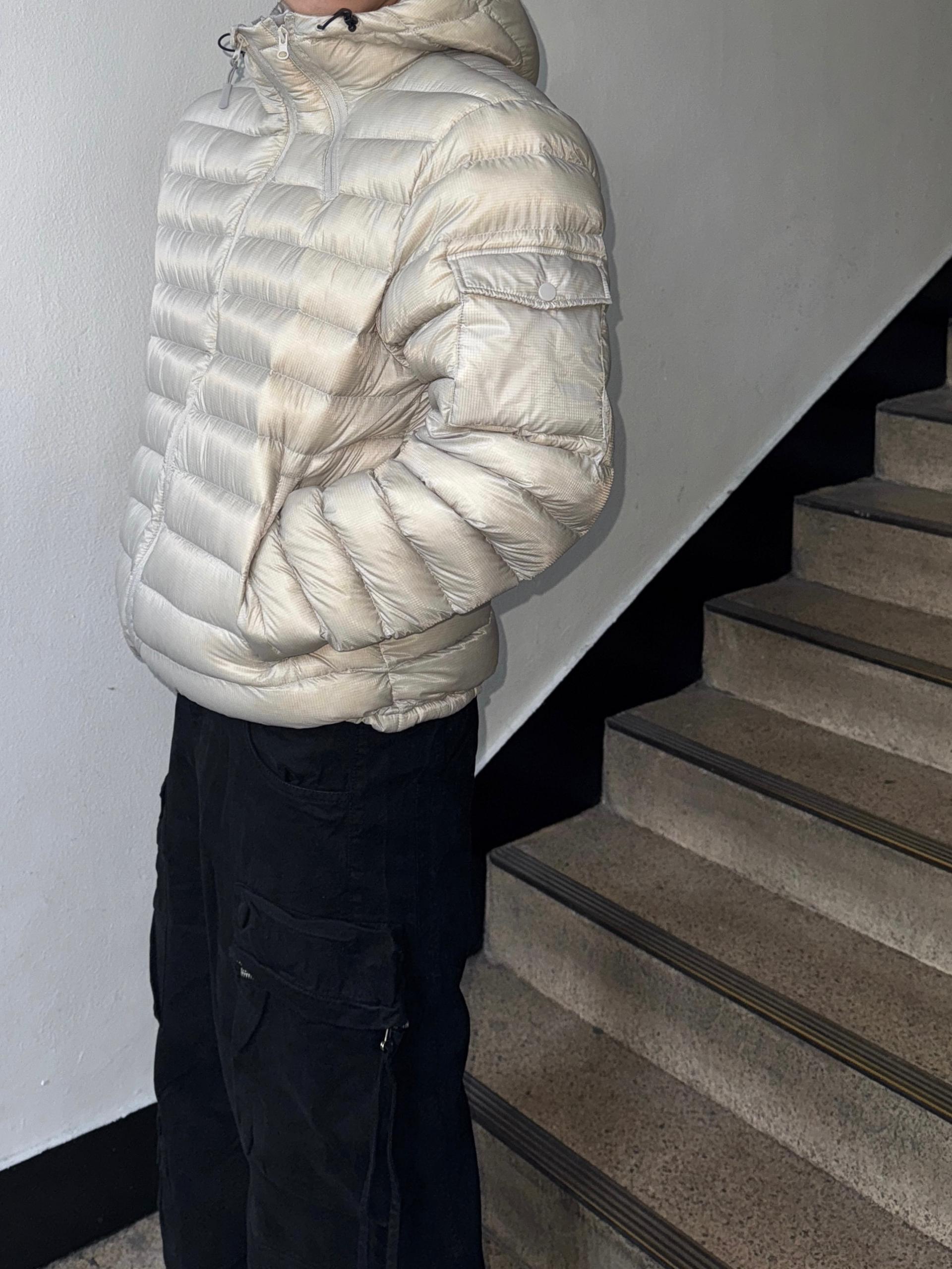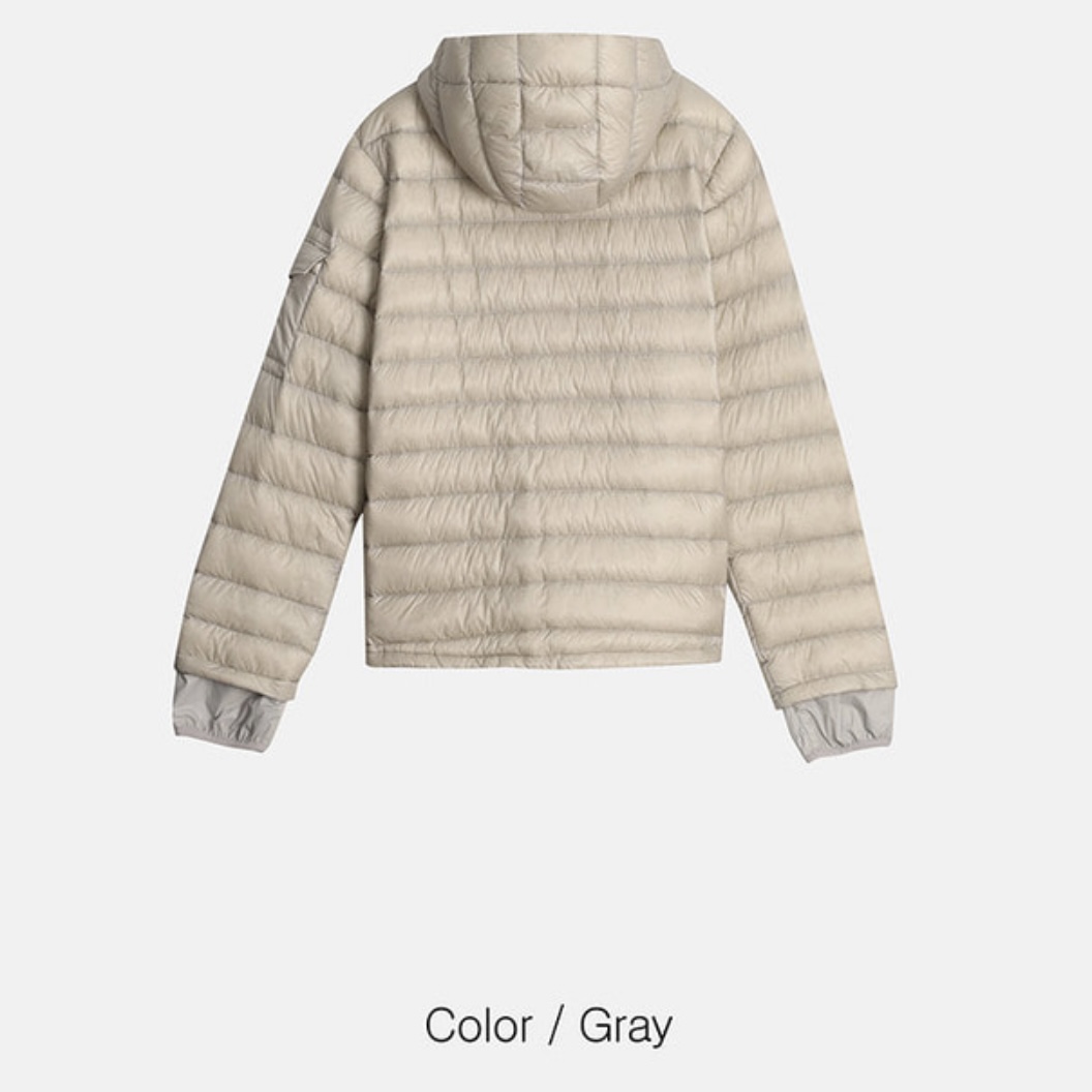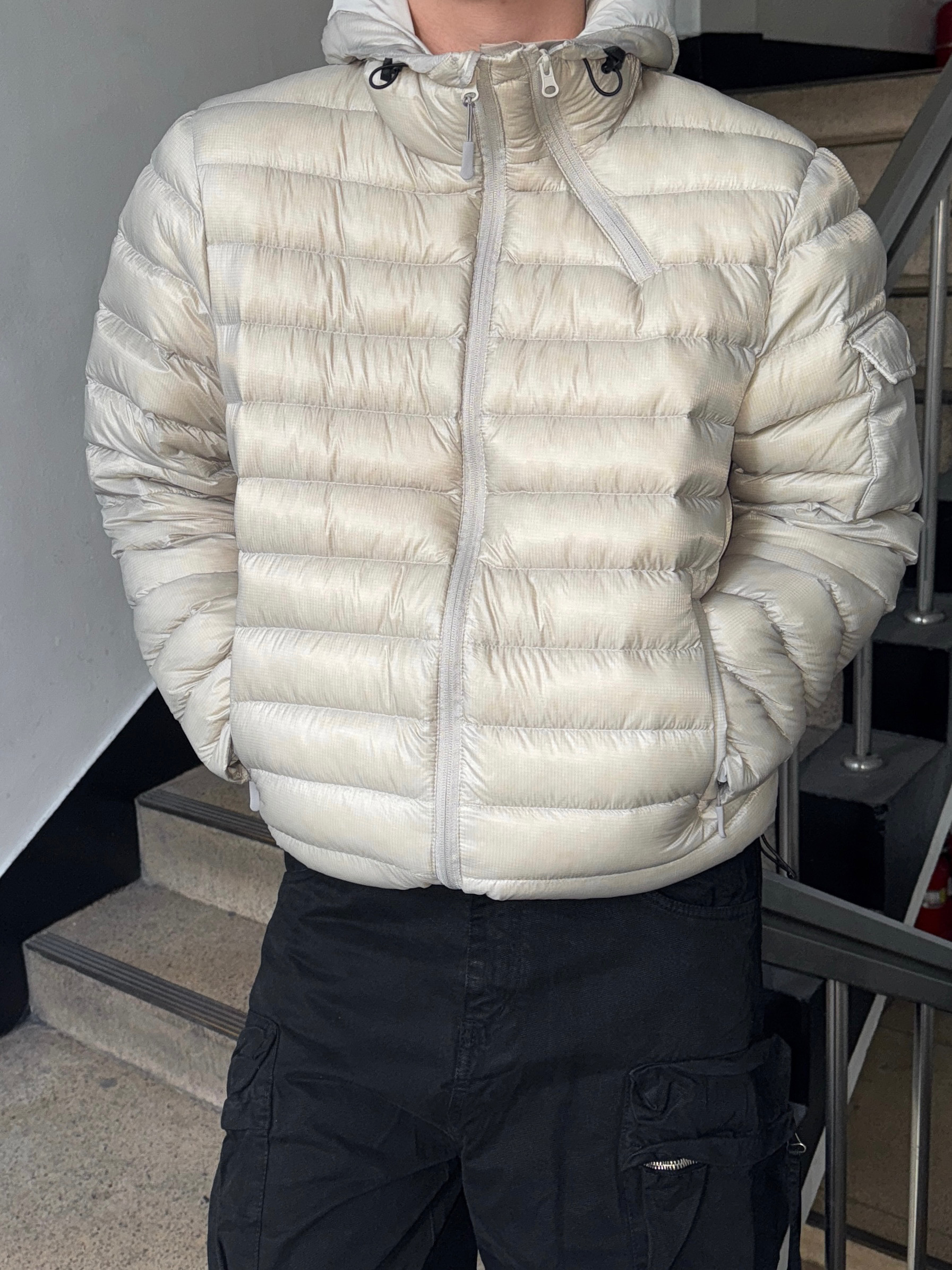 -오리털이 보이는 다운푸르프 베이비 립 원단으로 제작된 경량 패딩