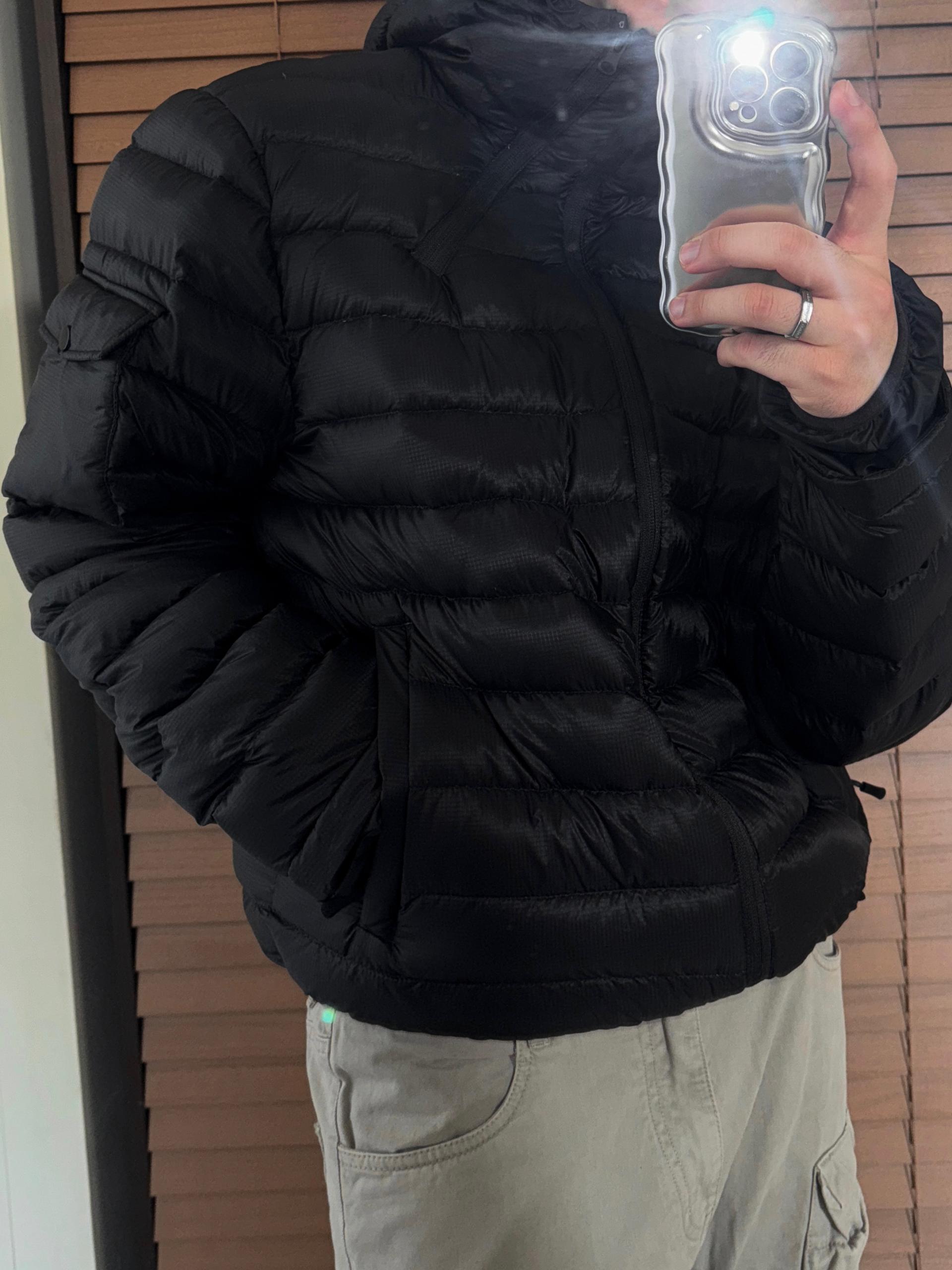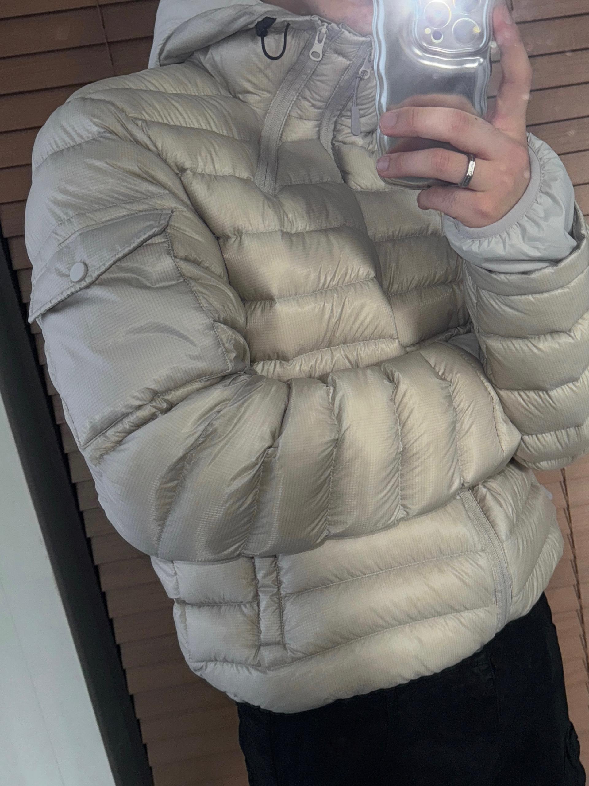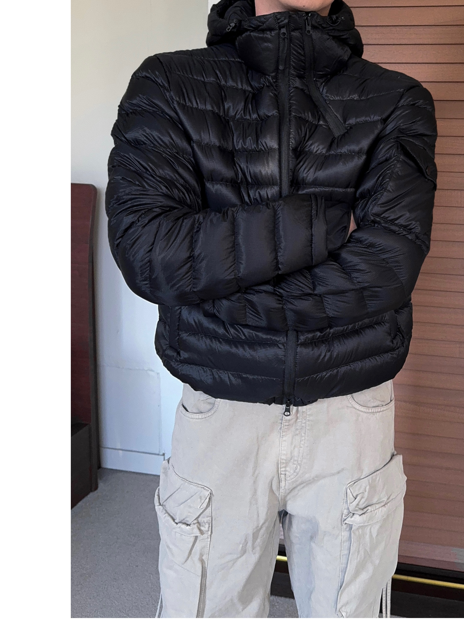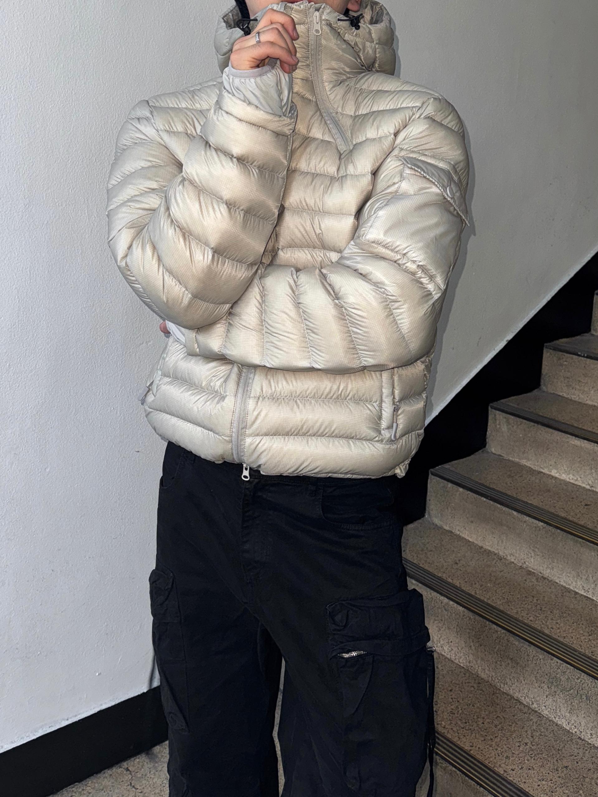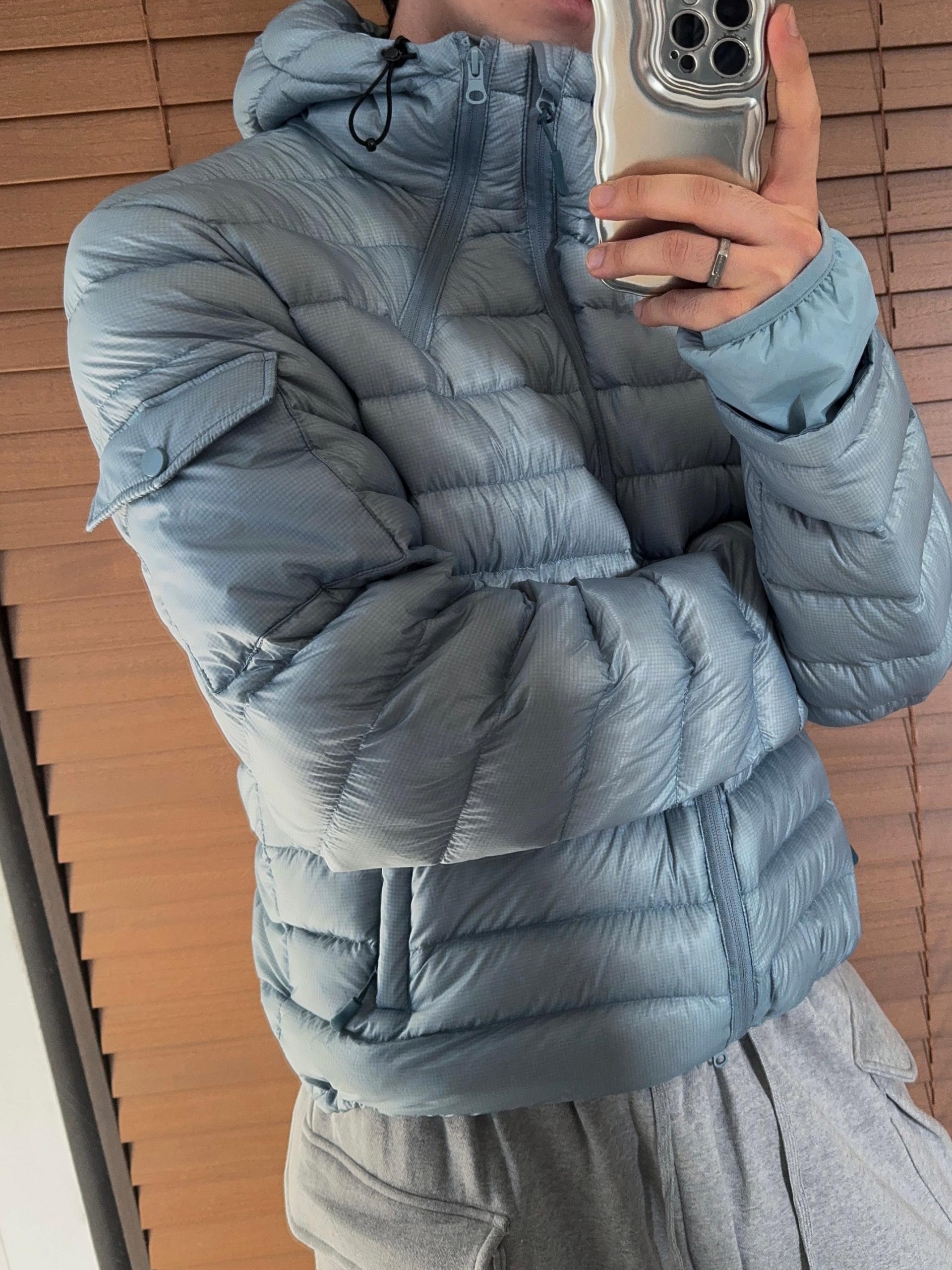 -오리털이 보이는 다운푸르프 베이비 립 원단으로 제작된 경량 패딩