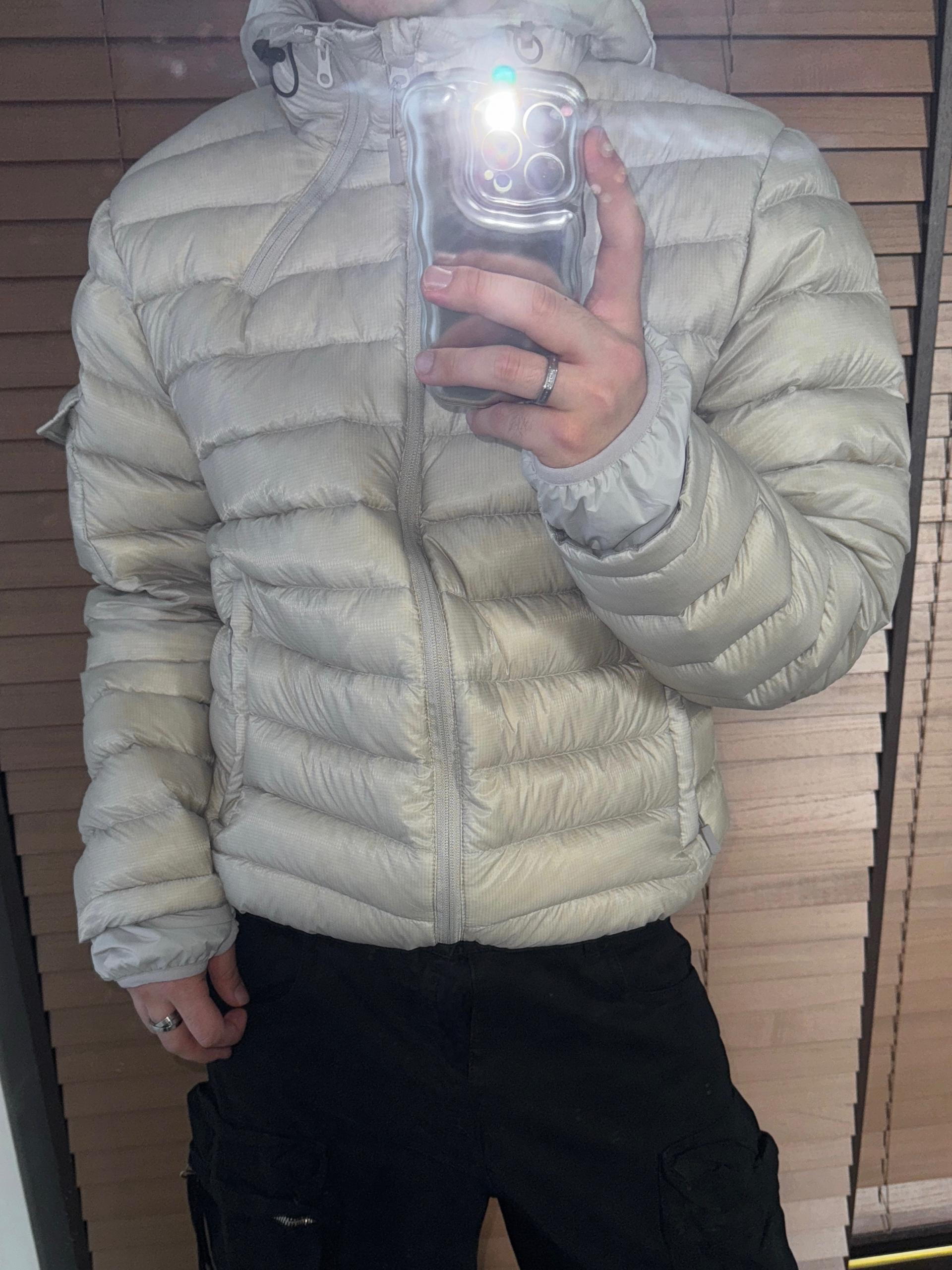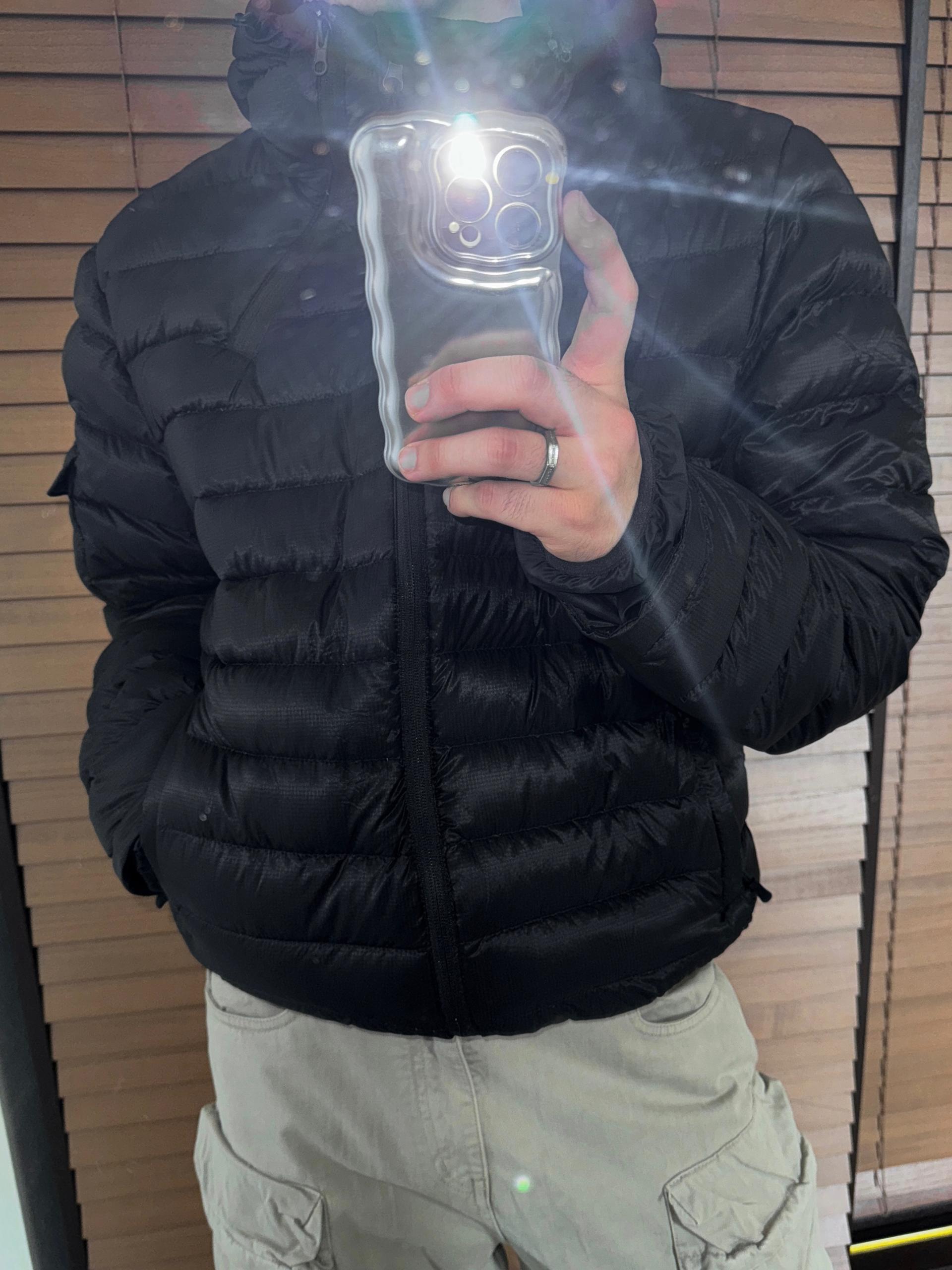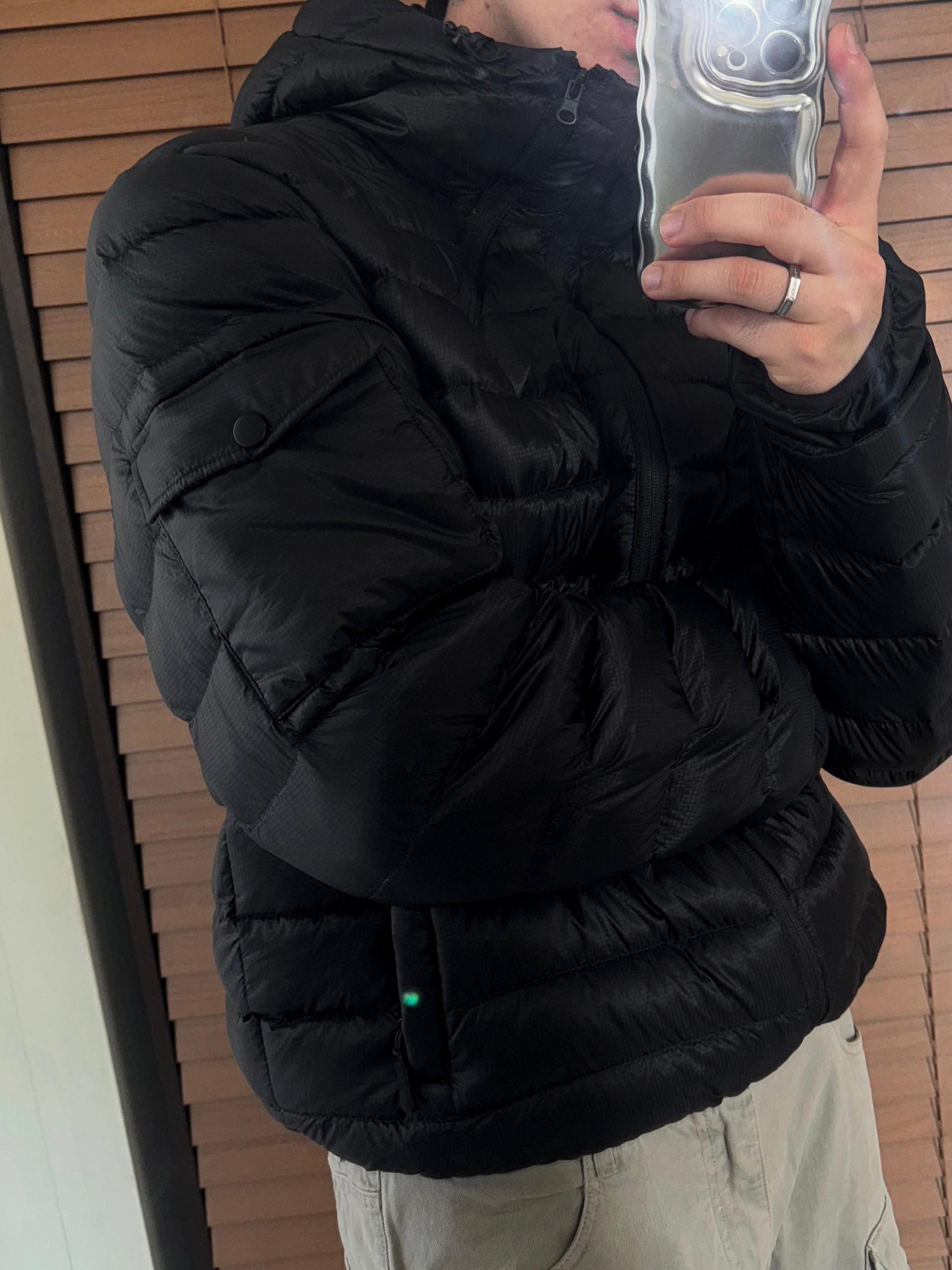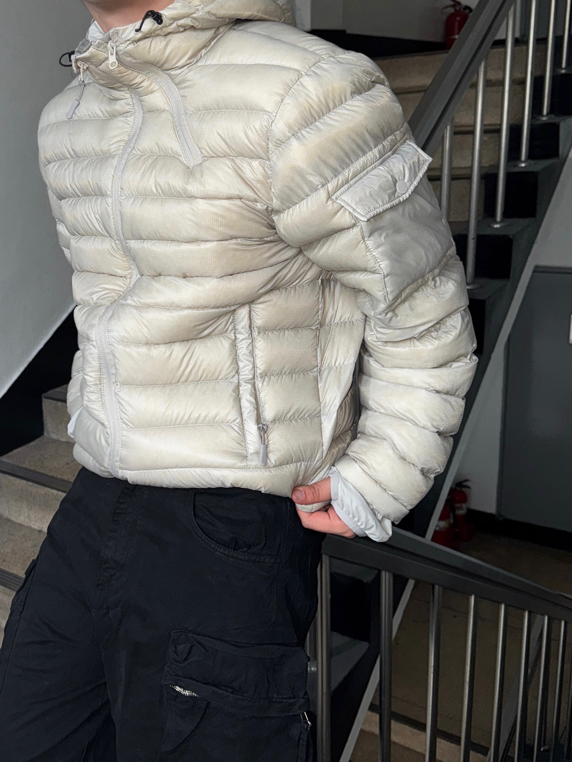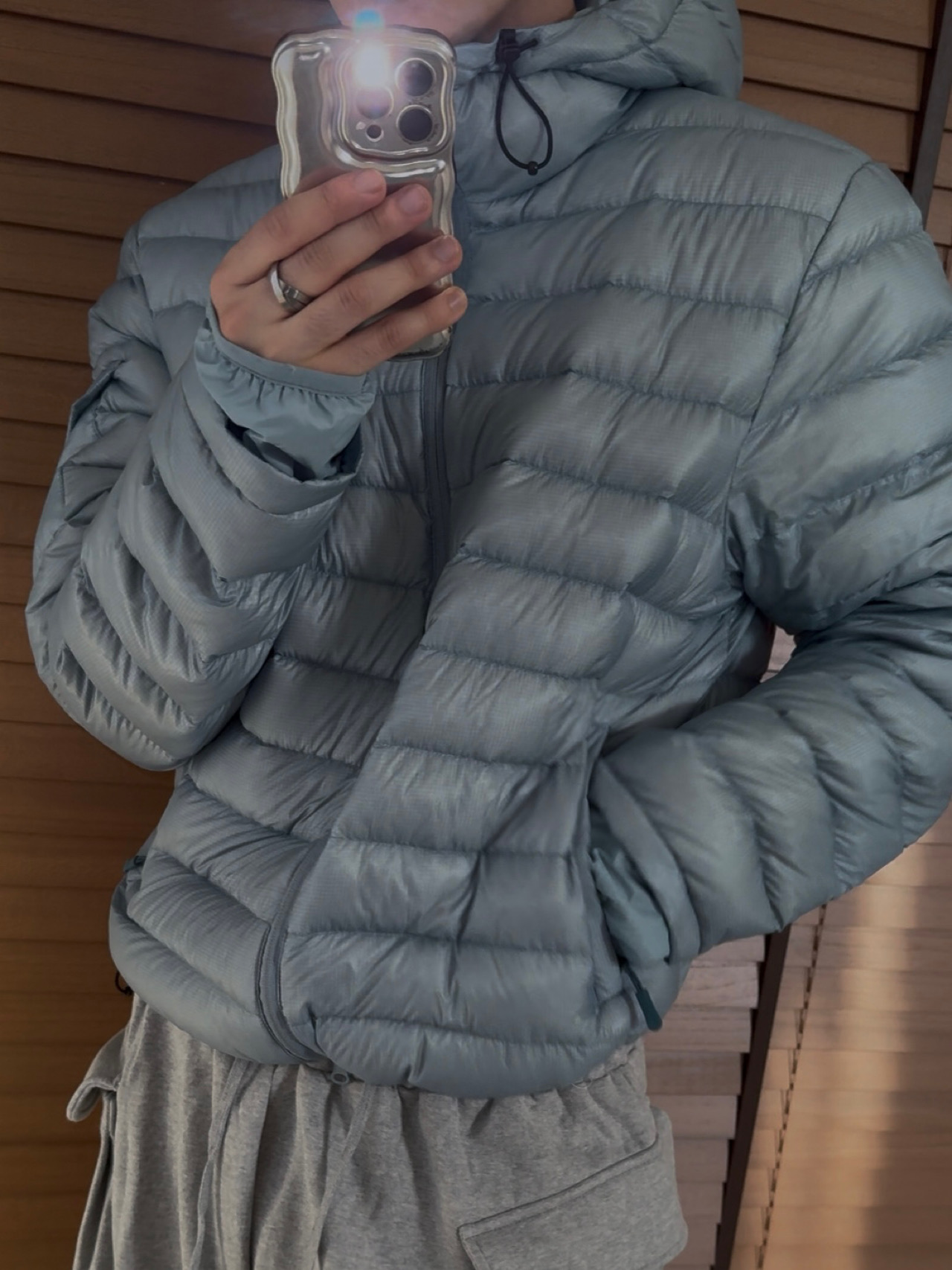 -오리털이 보이는 다운푸르프 베이비 립 원단으로 제작된 경량 패딩