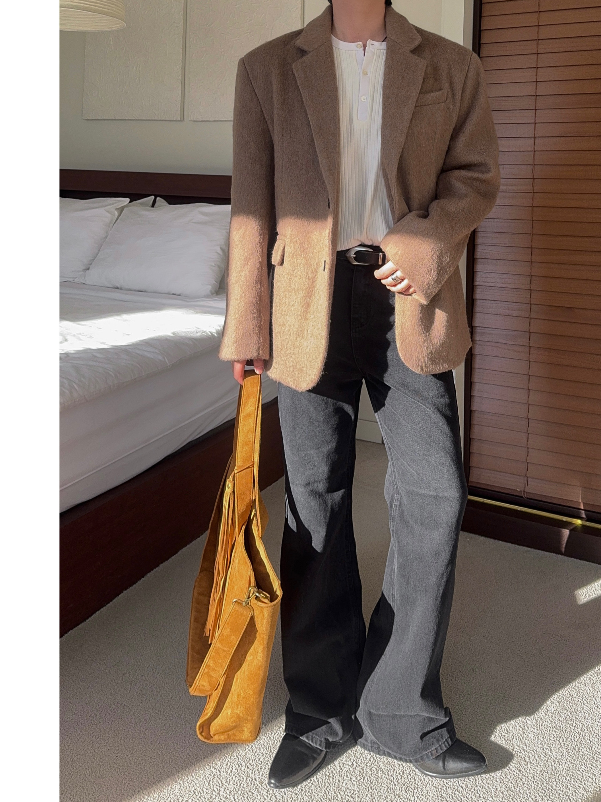 -겨울무드가 잘 묻어나오는 고급 울 헤어리 소재감