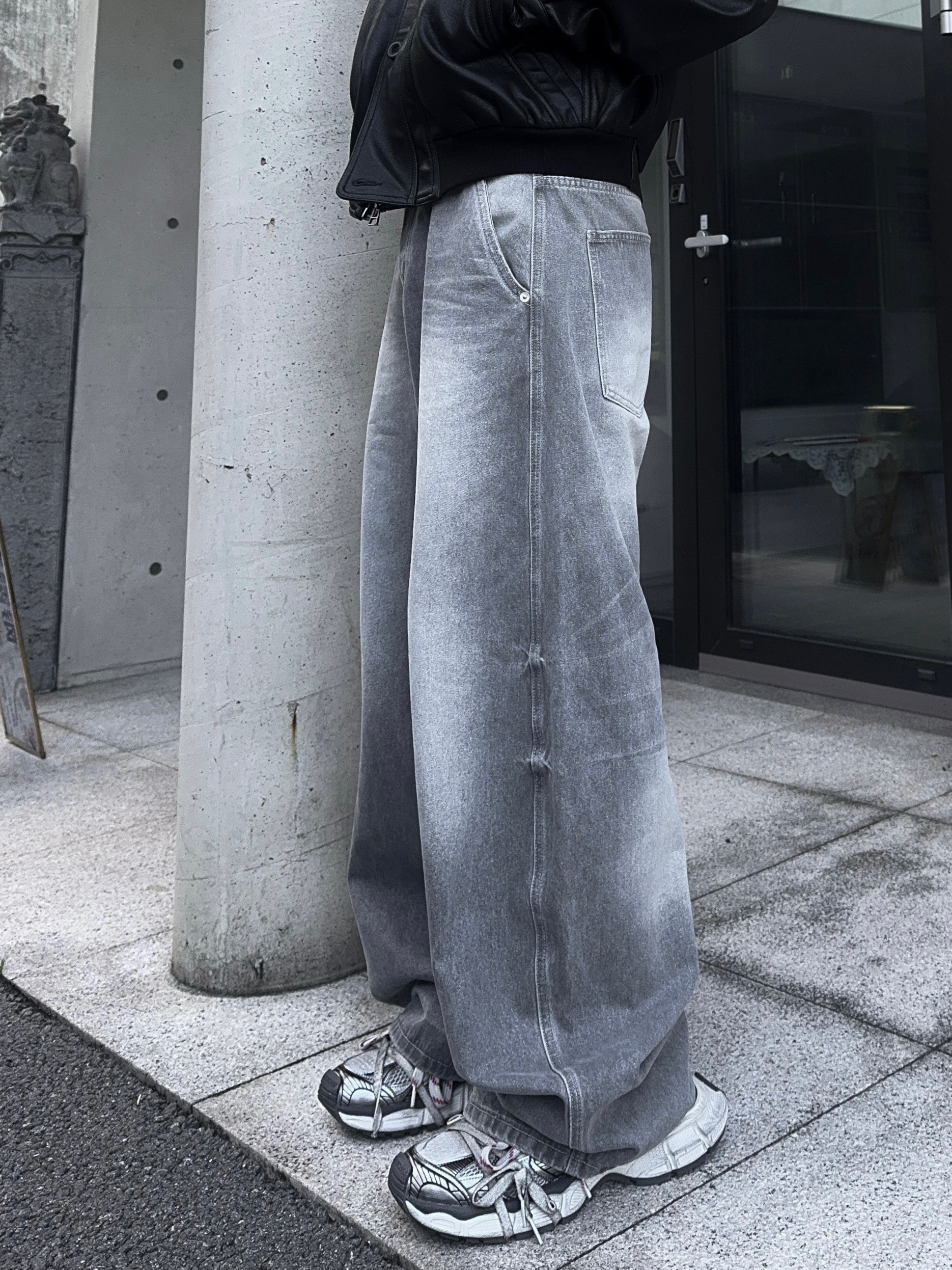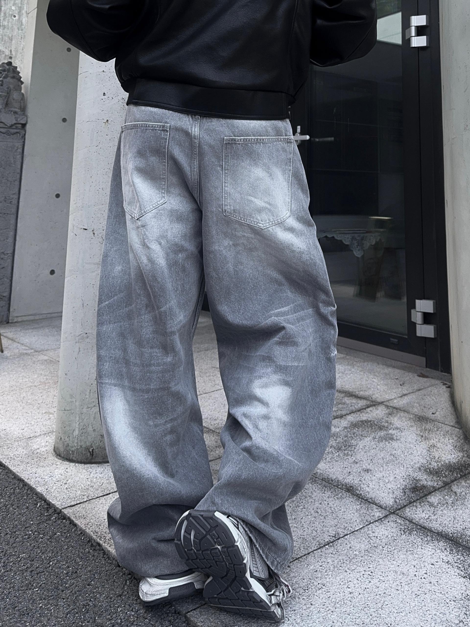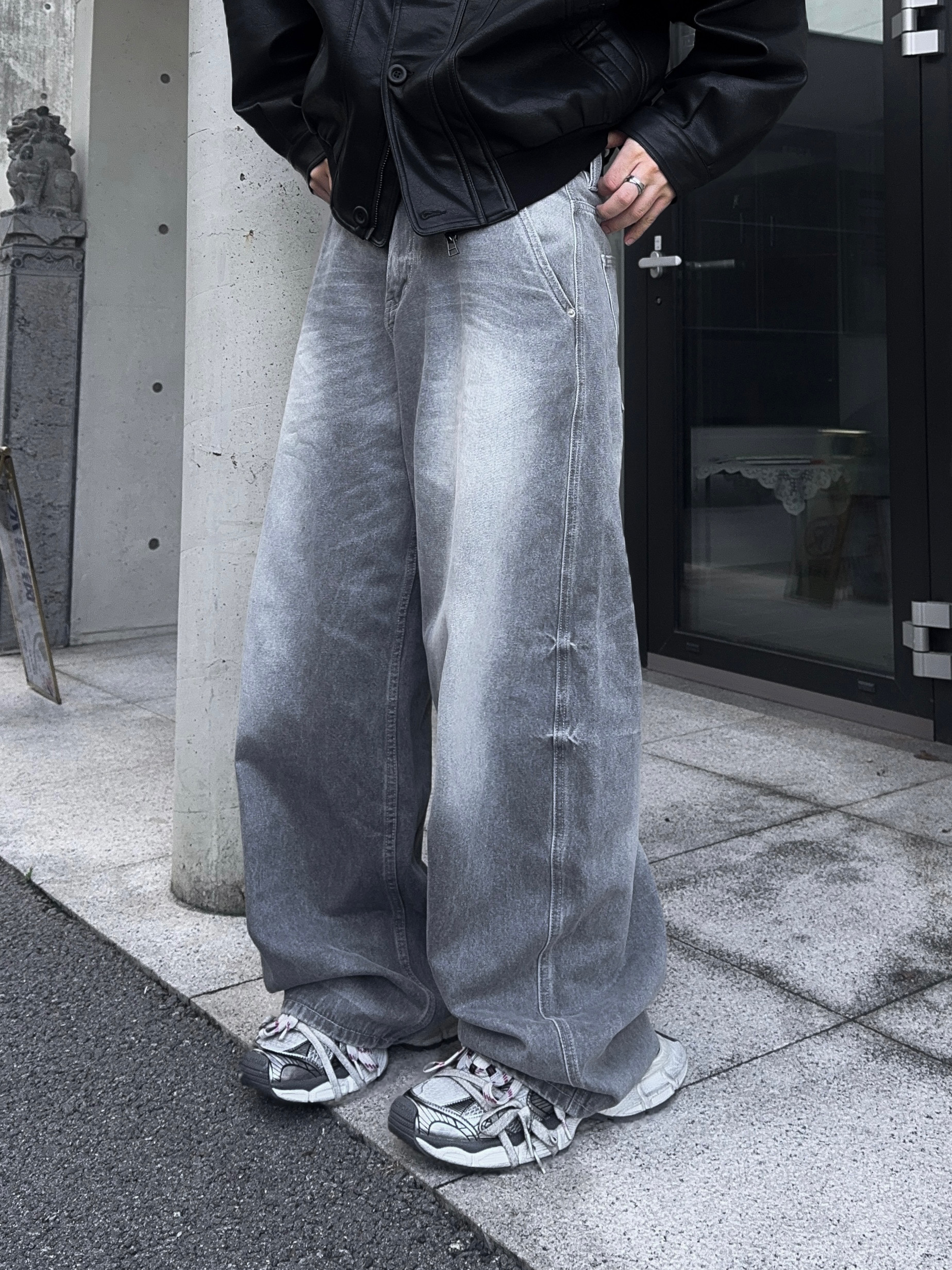 -탄탄한 데님 원단으로 제작된 커브드 팬츠