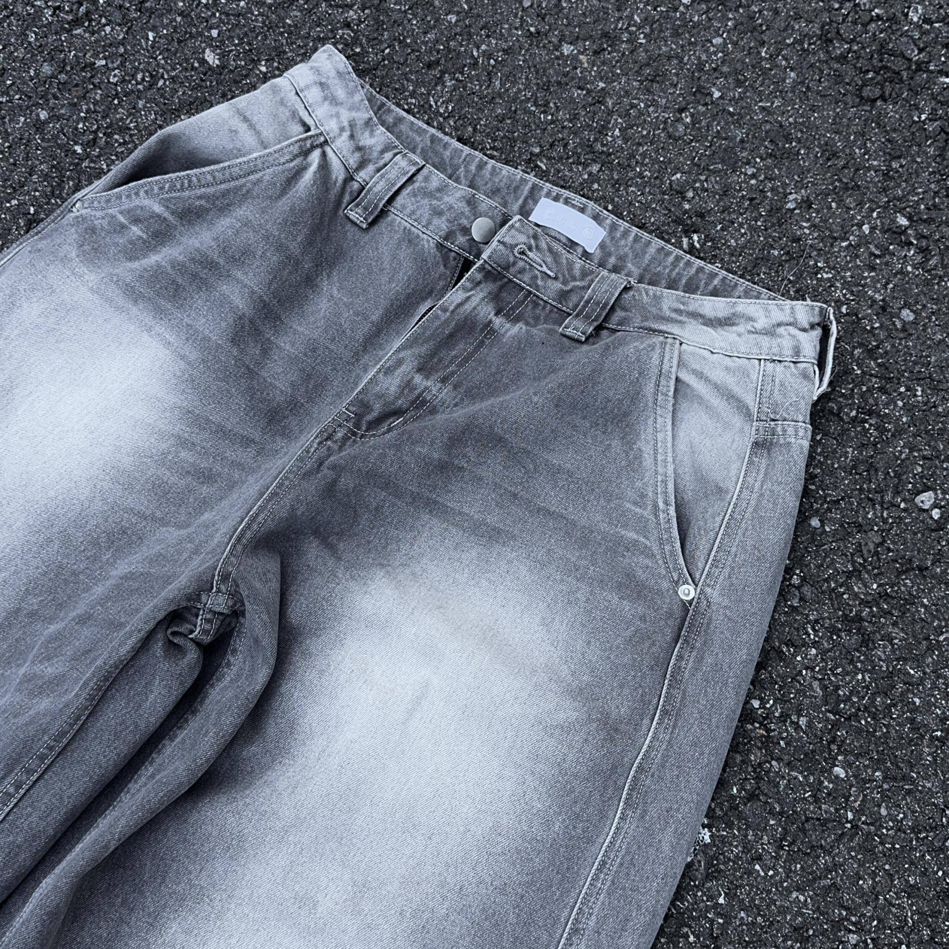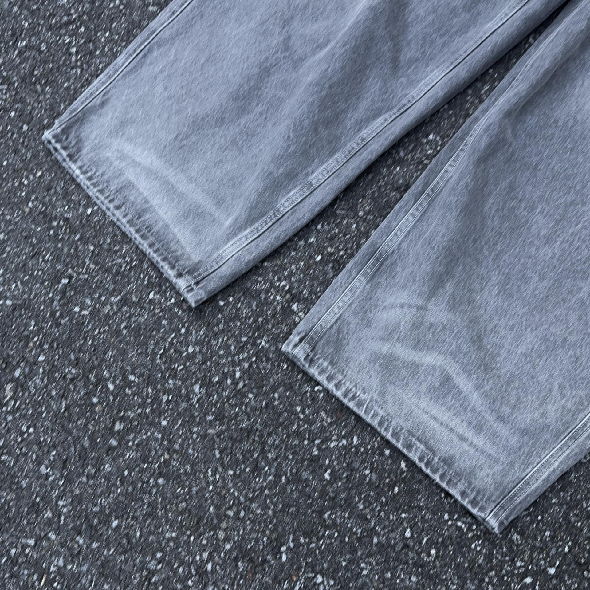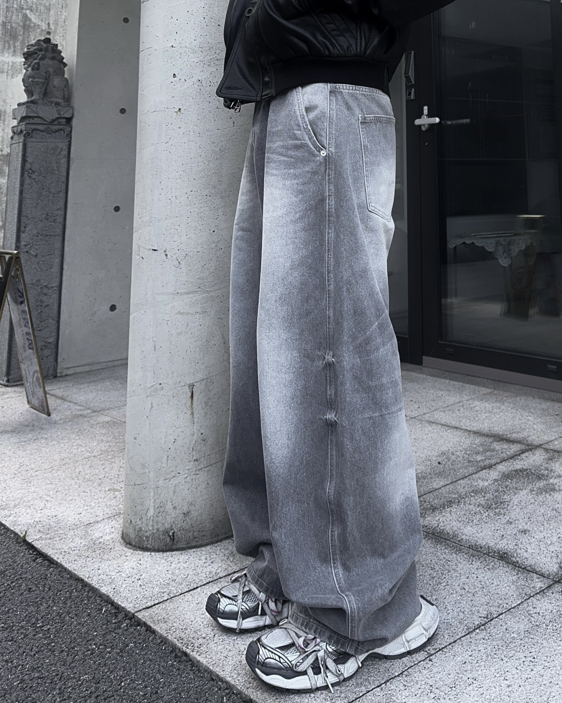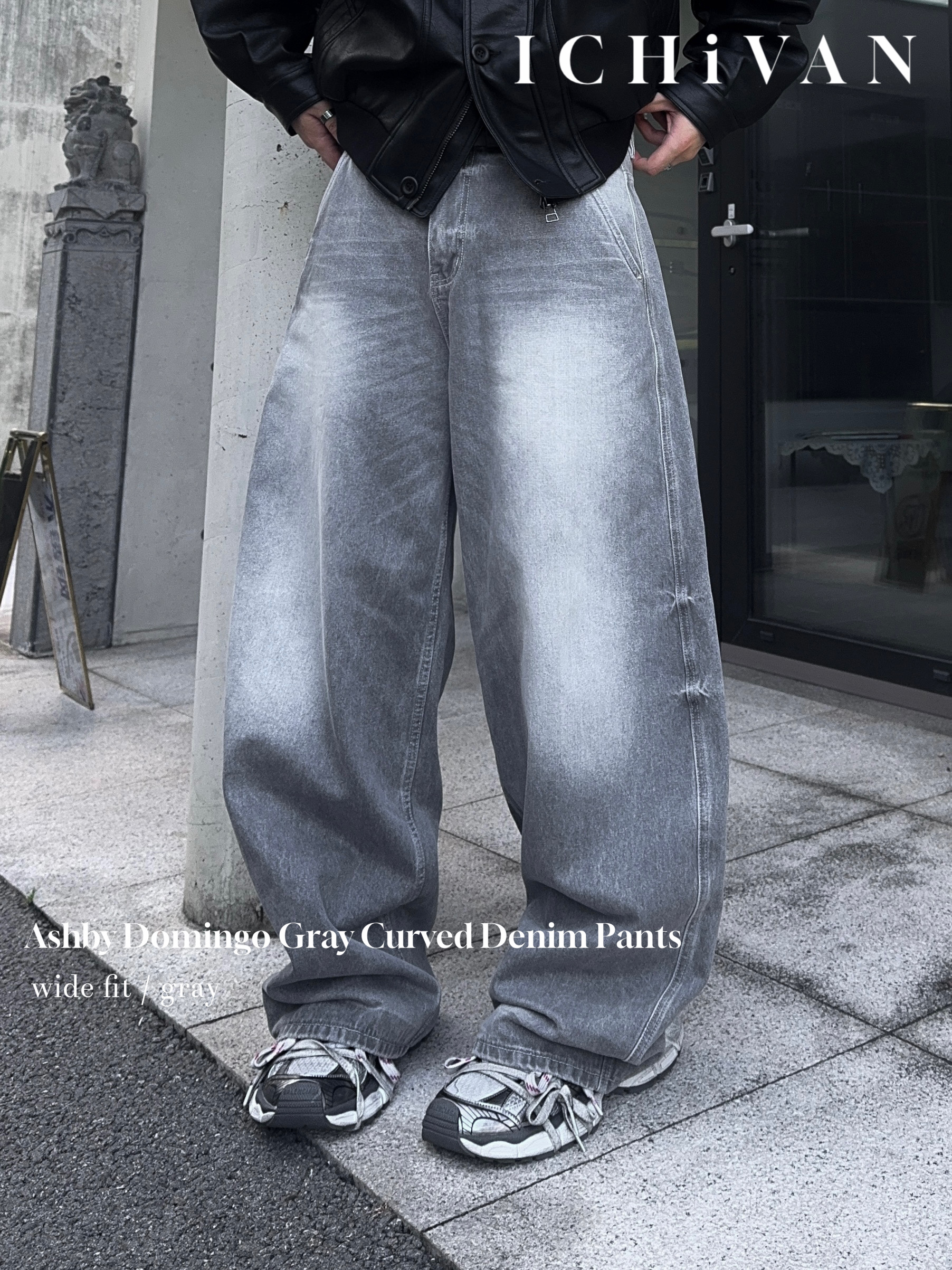 -탄탄한 데님 원단으로 제작된 커브드 팬츠