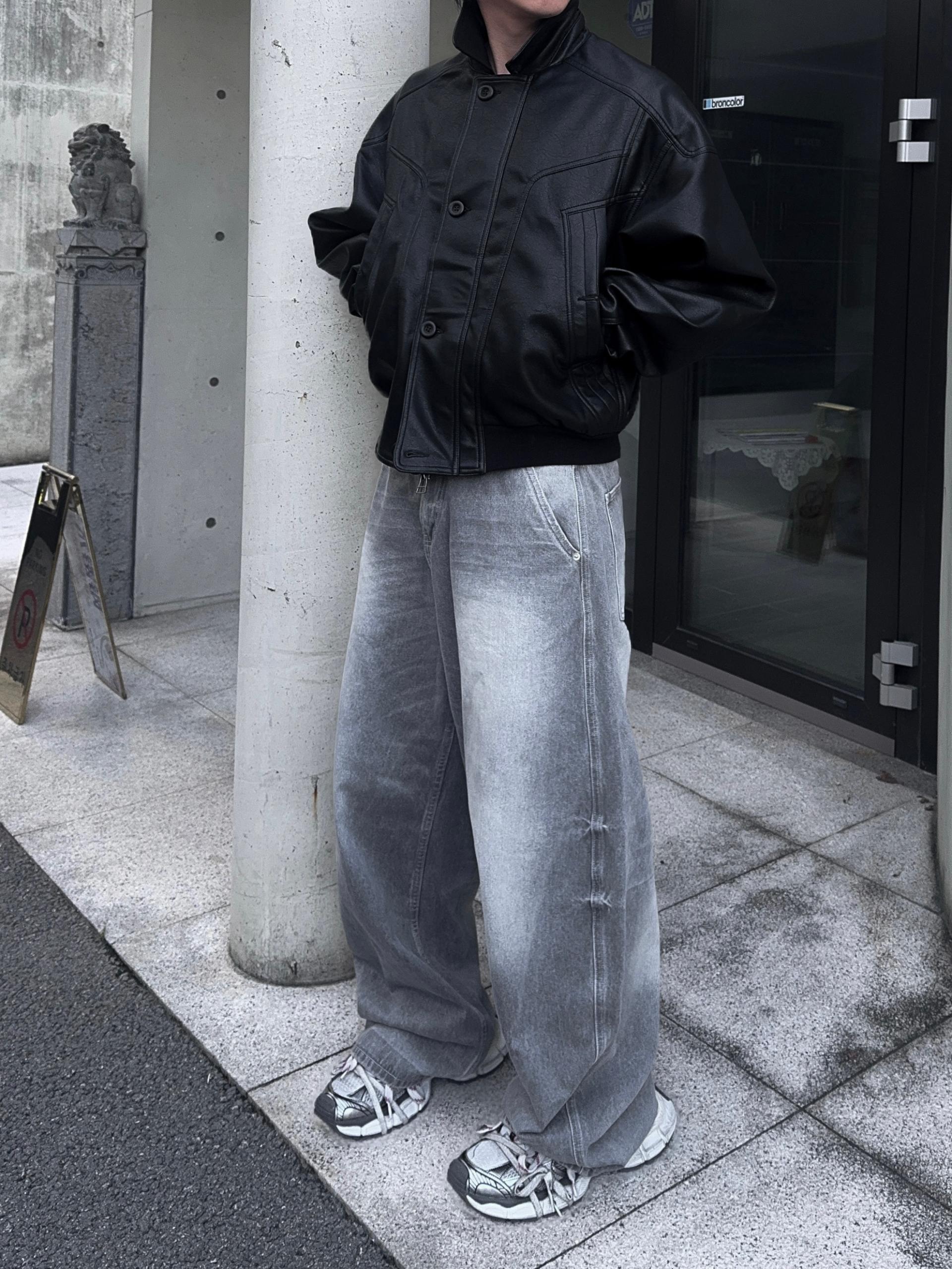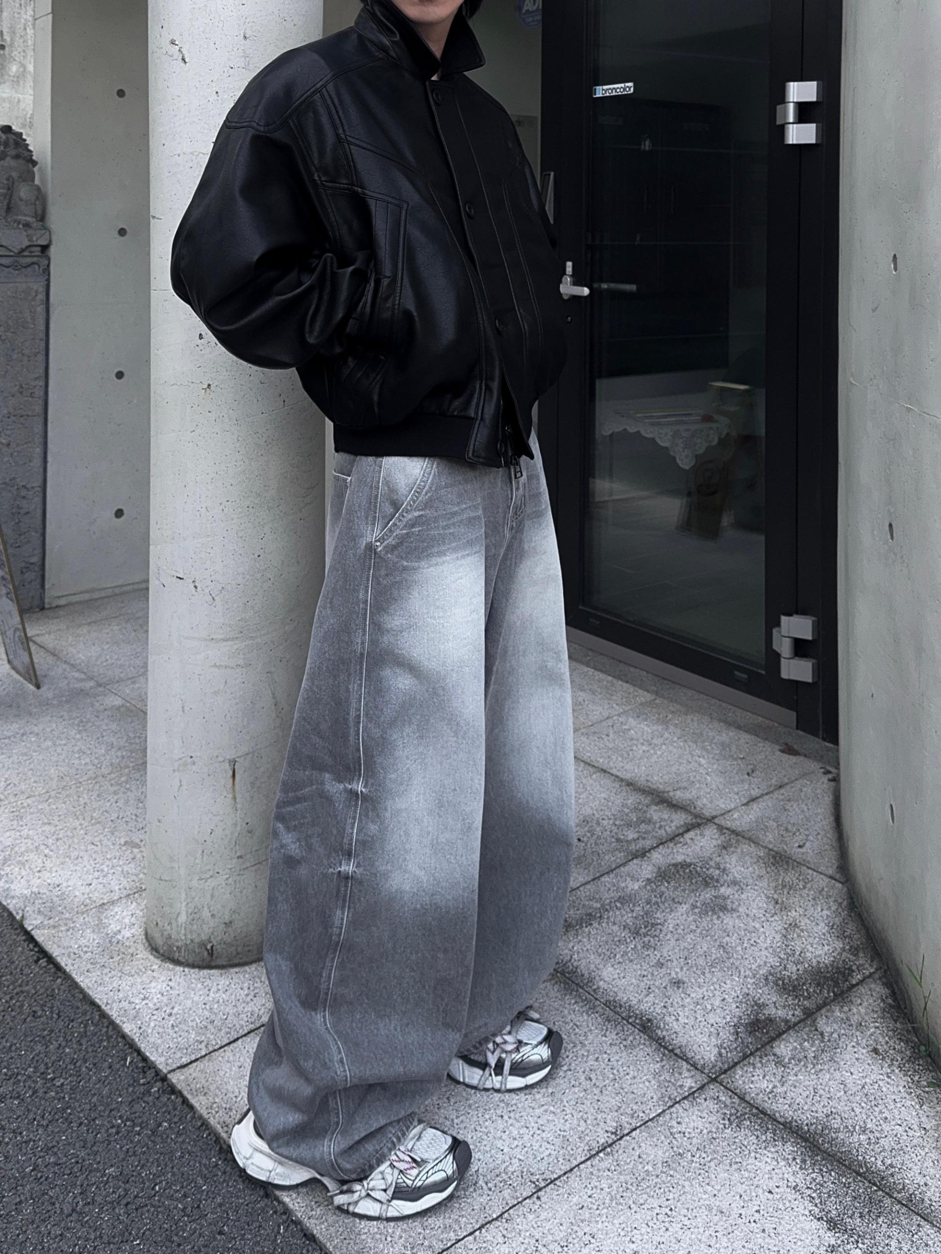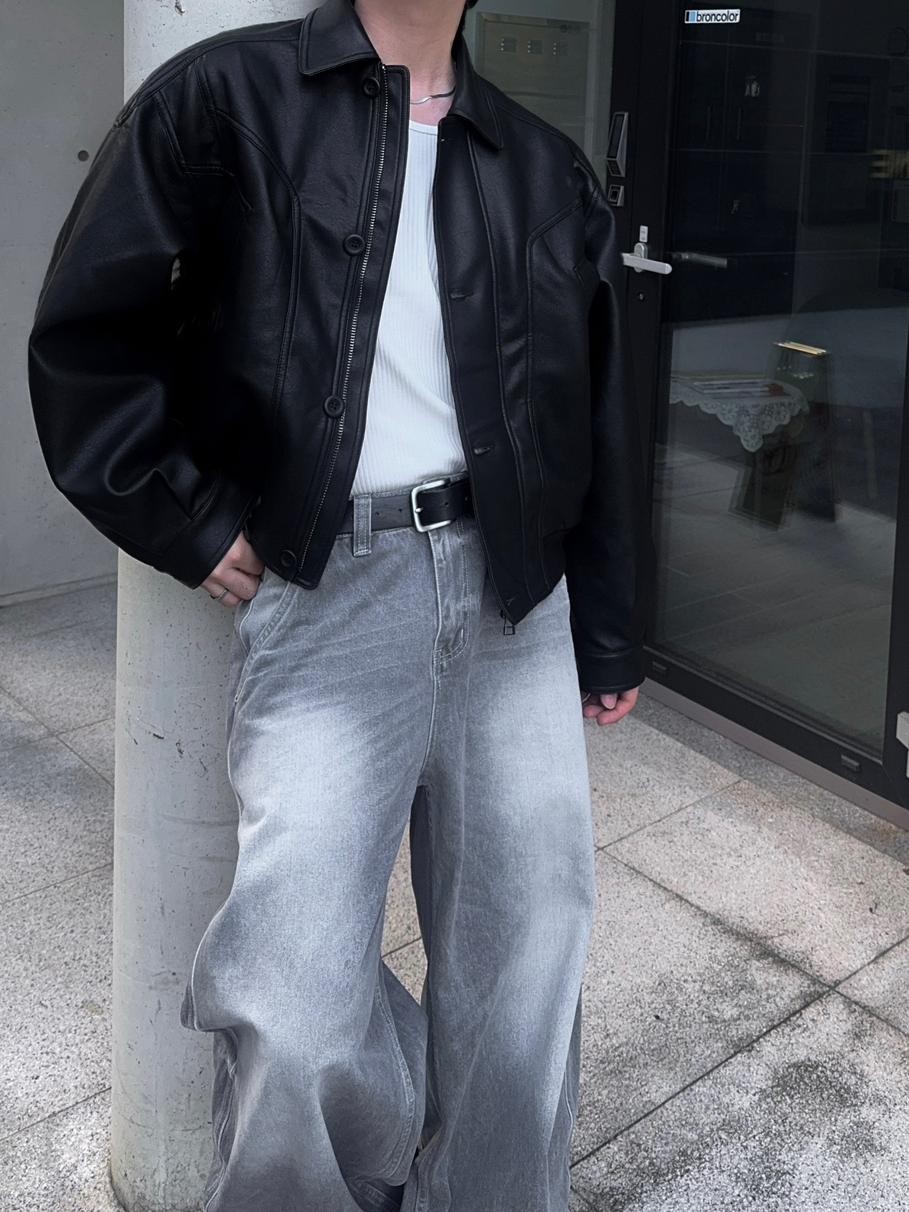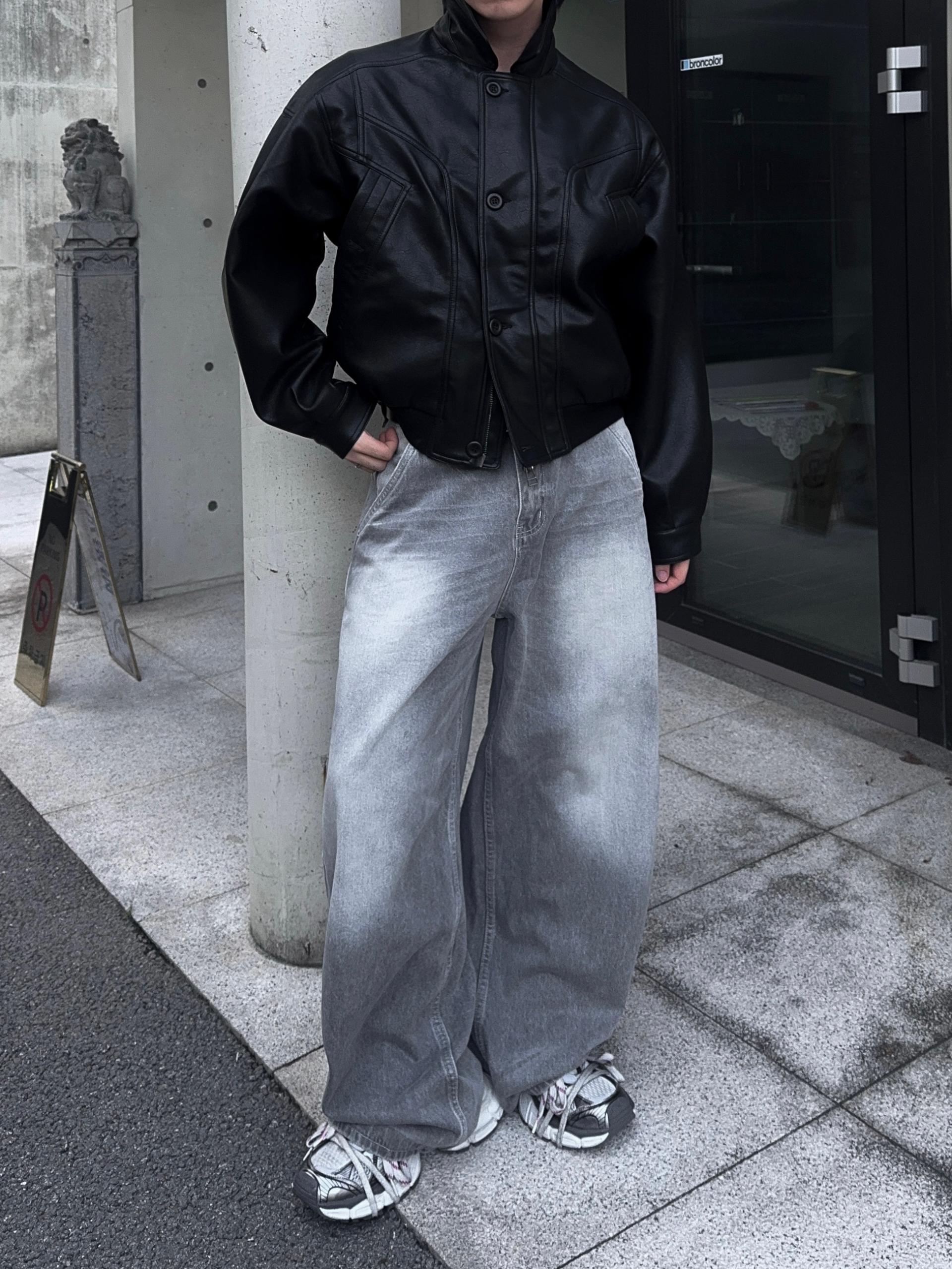 -와이드한 실루엣으로 크롭 기장감 탑,아우터와 어울러지는 아웃핏
