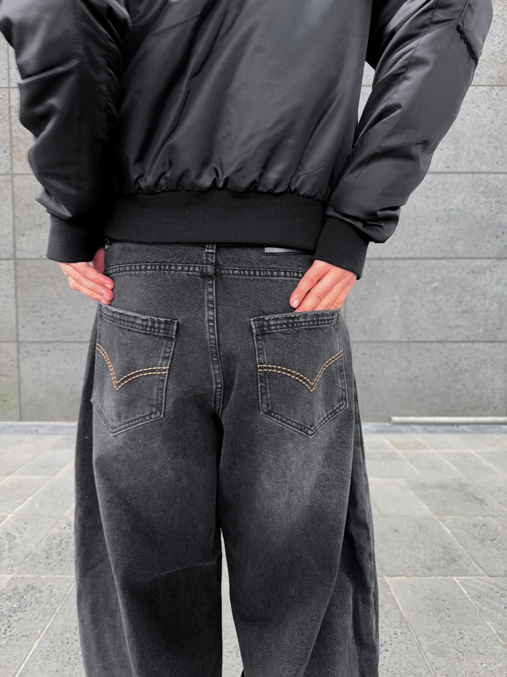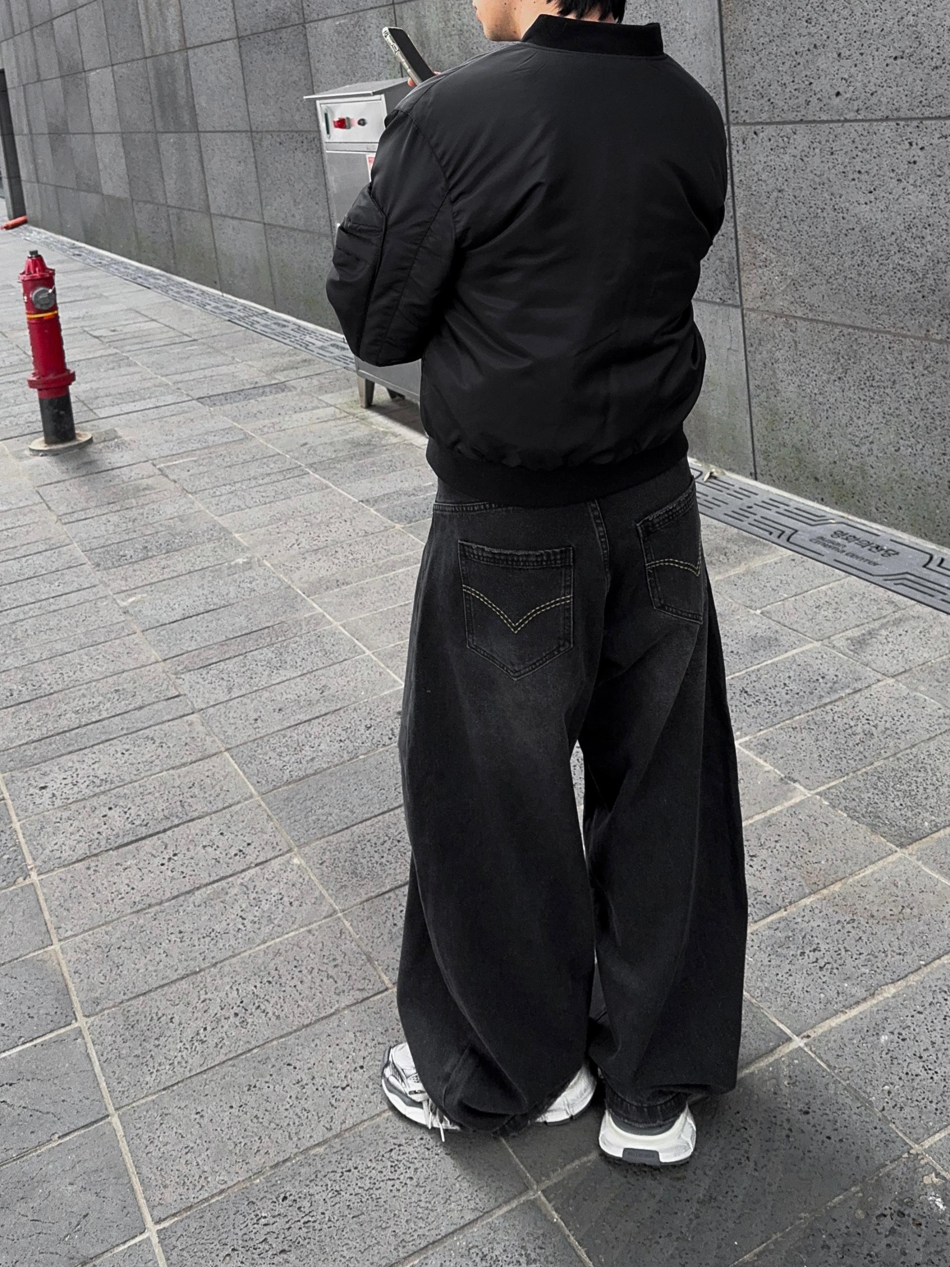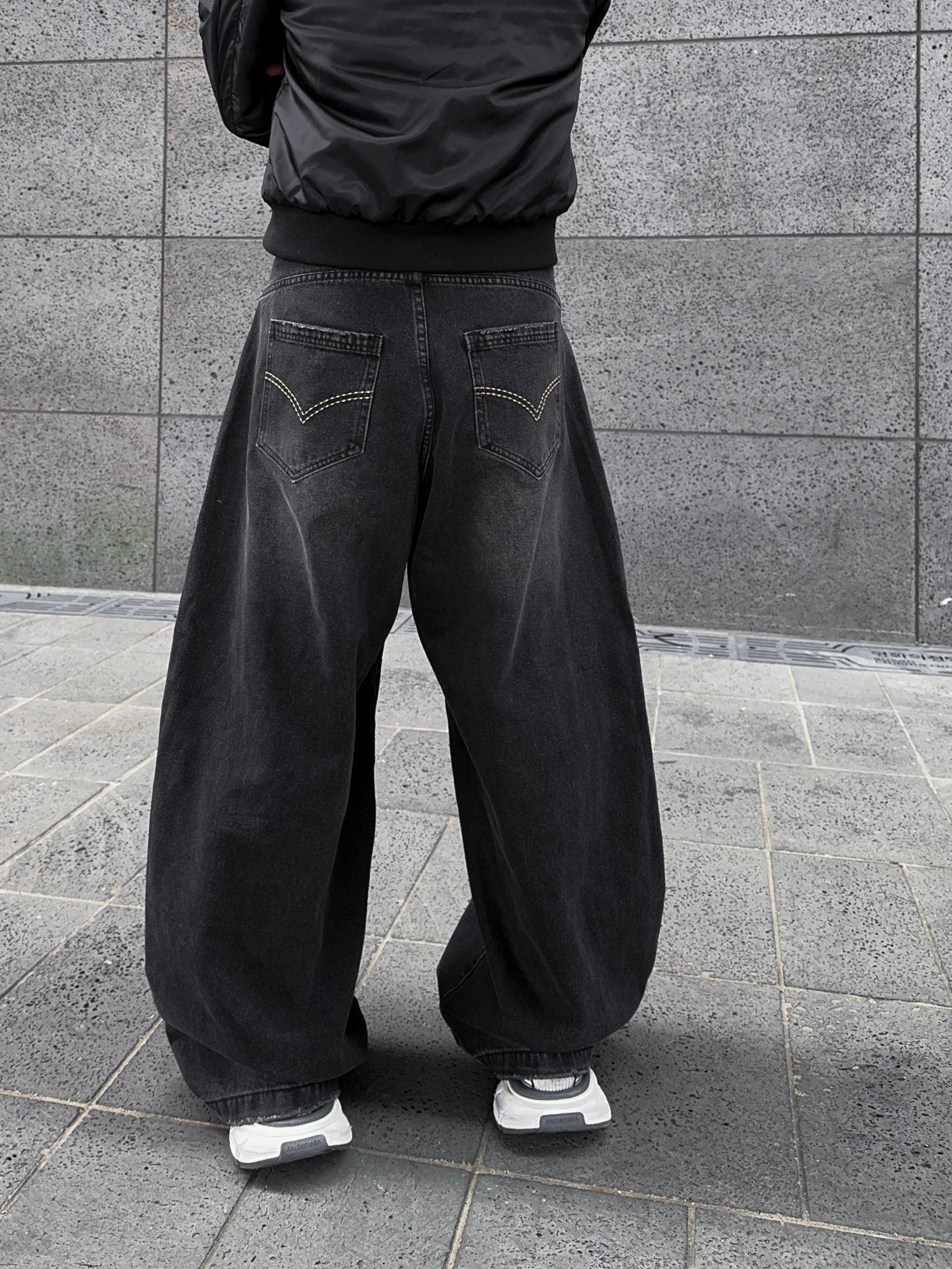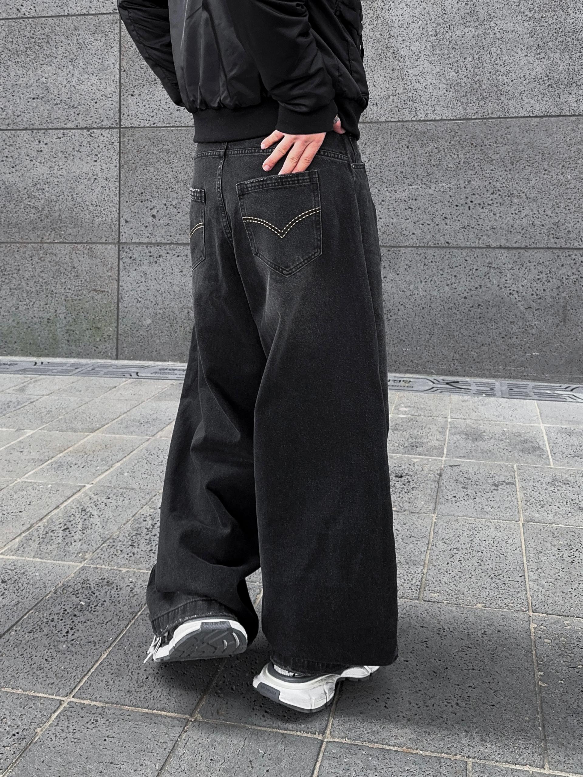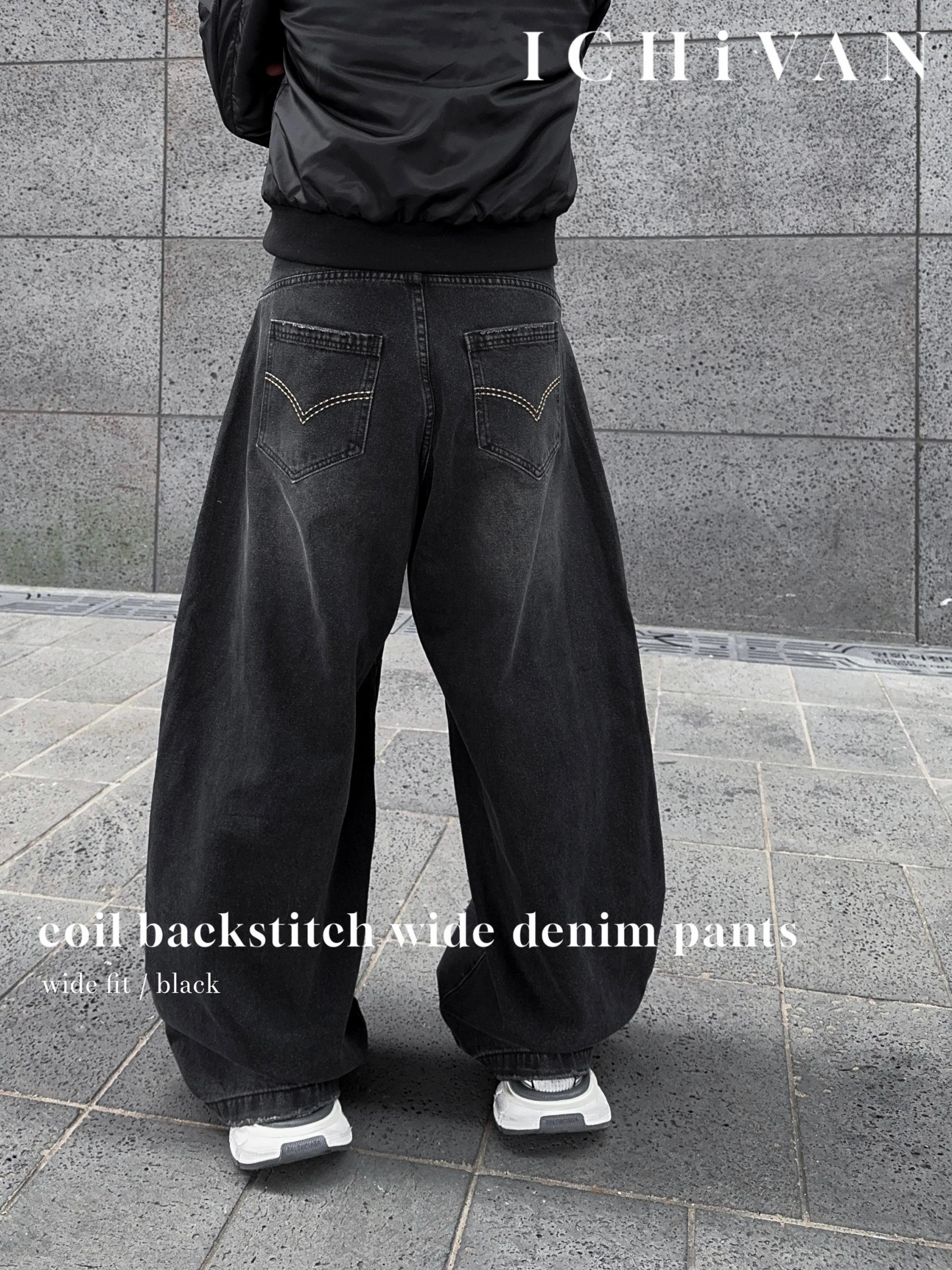 -탄탄한 데님 원단으로 제작된 와이드 팬츠