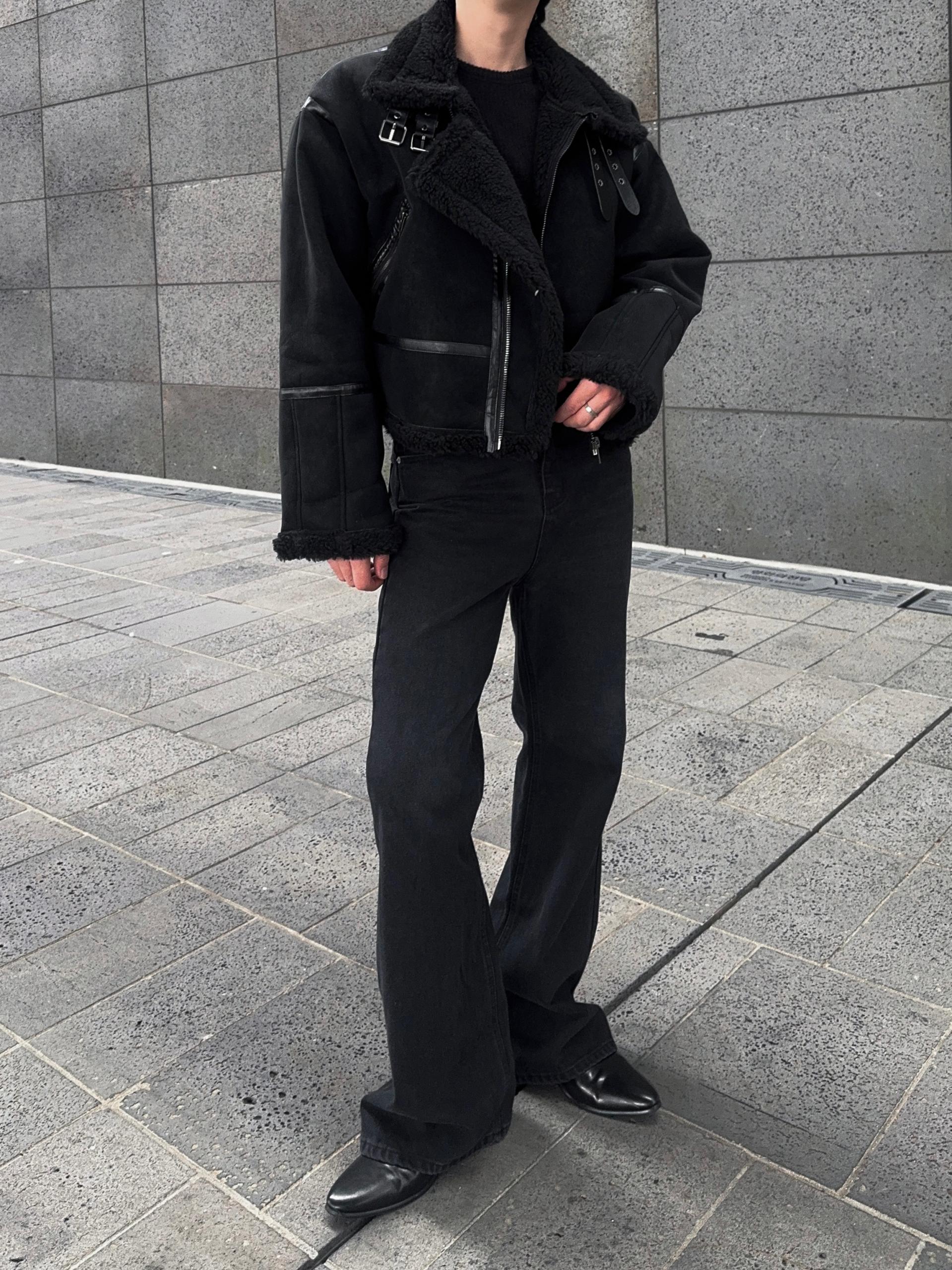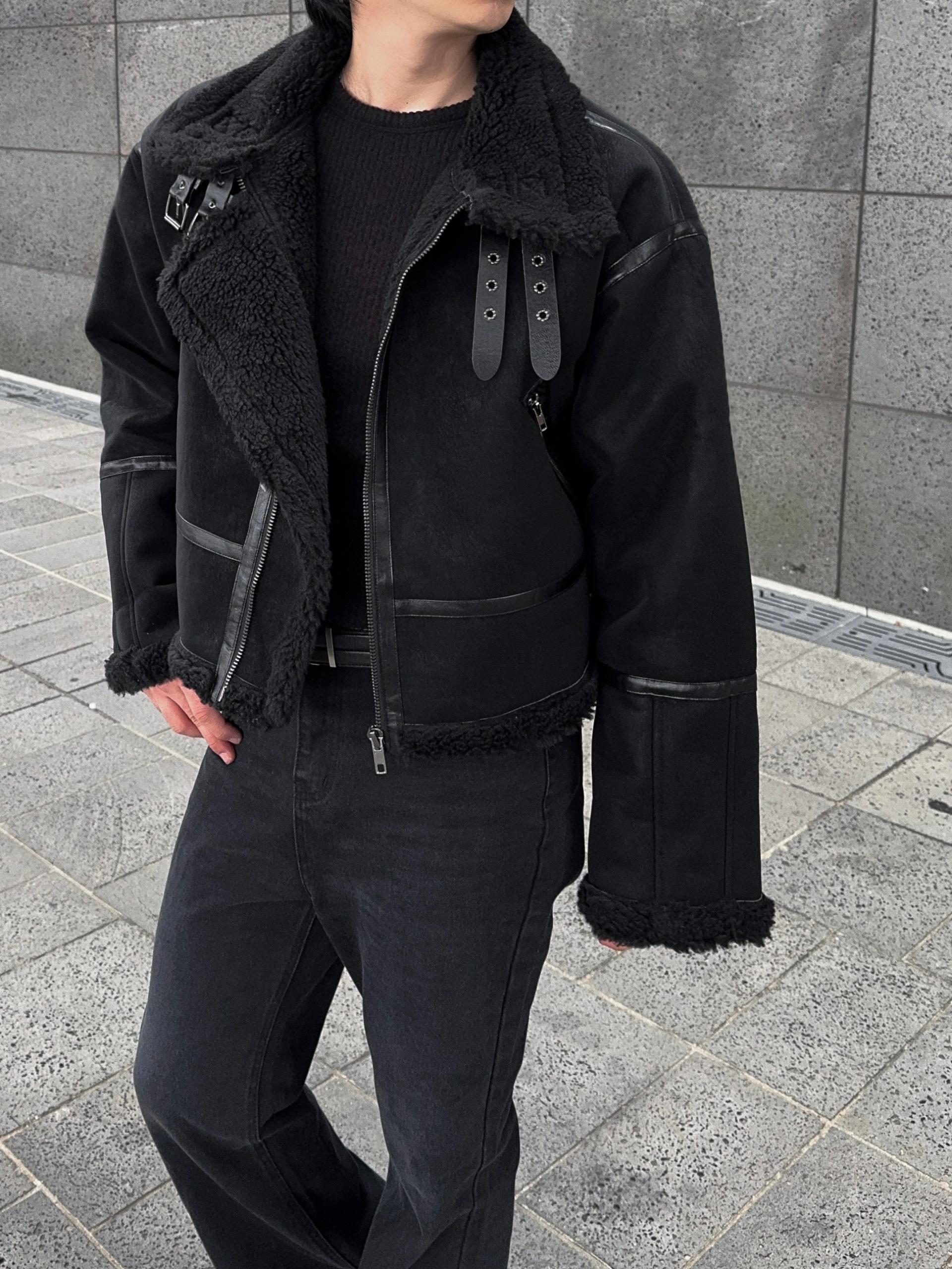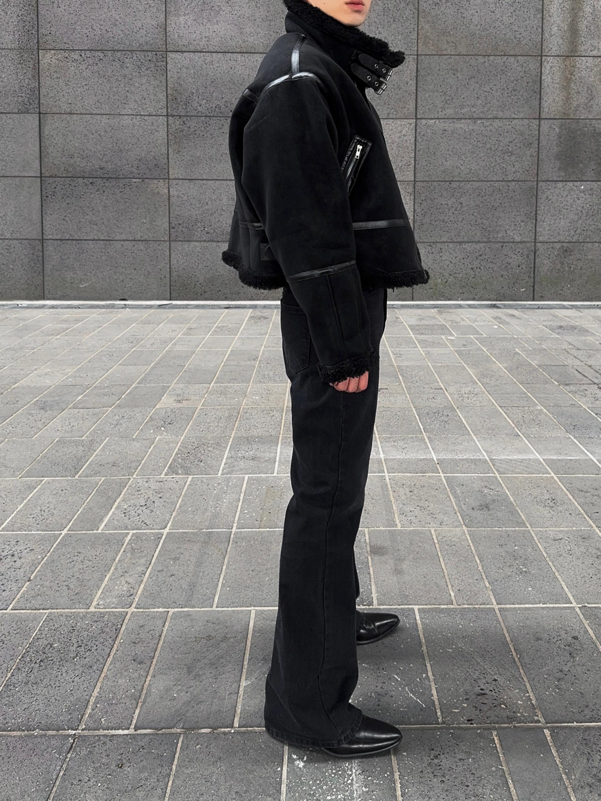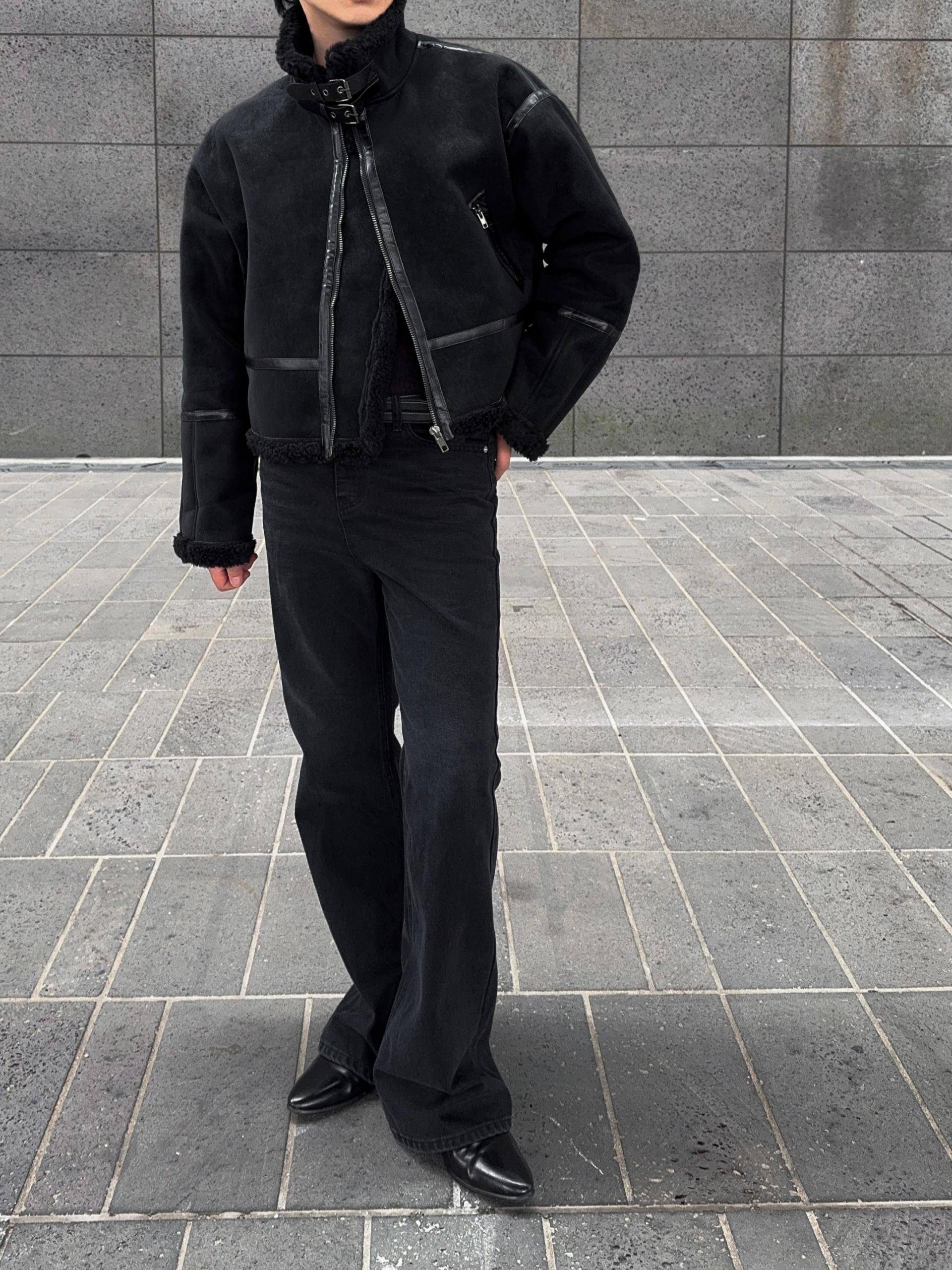 -매트한 스웨이드 소재로 제작된 무스탕