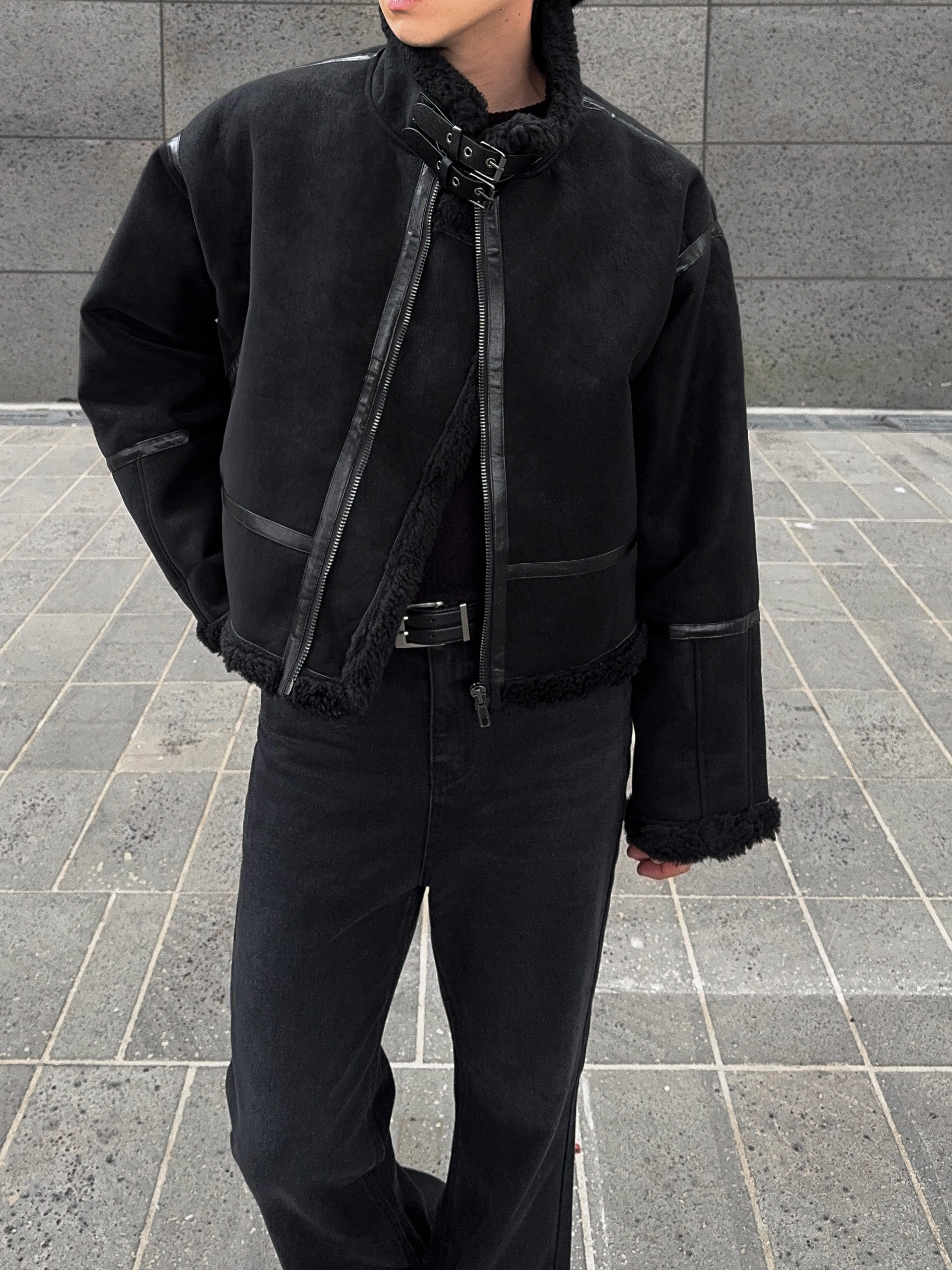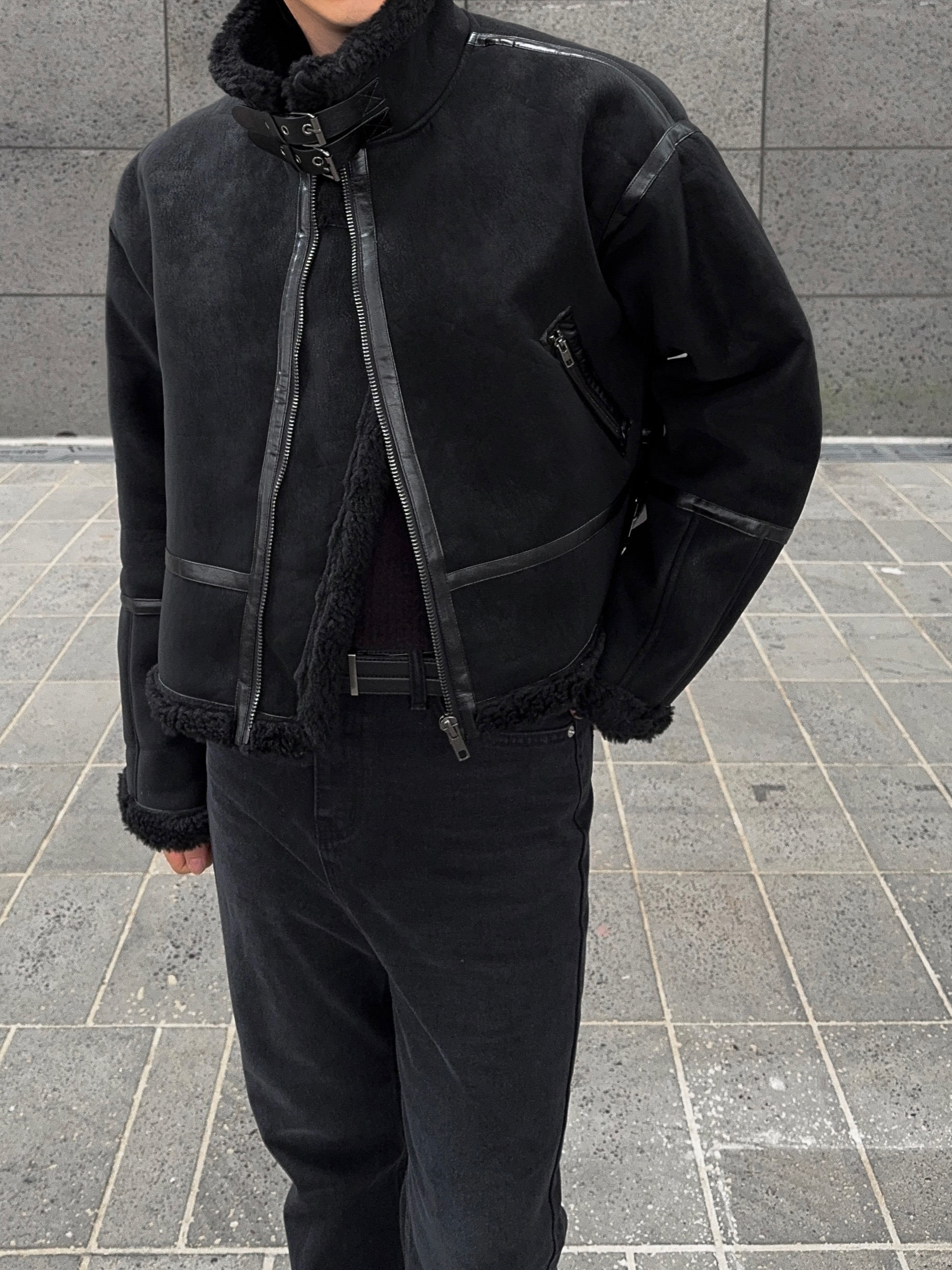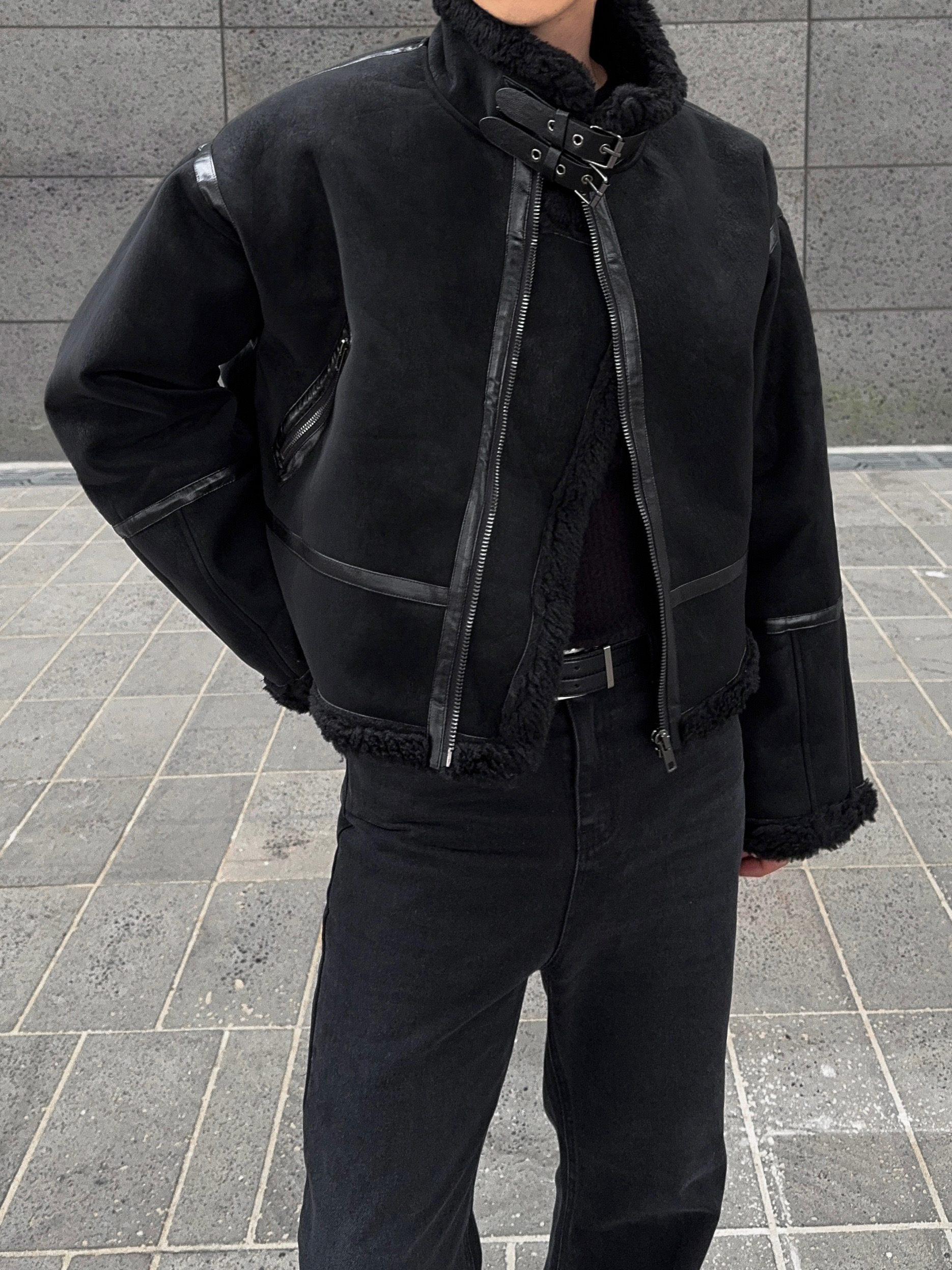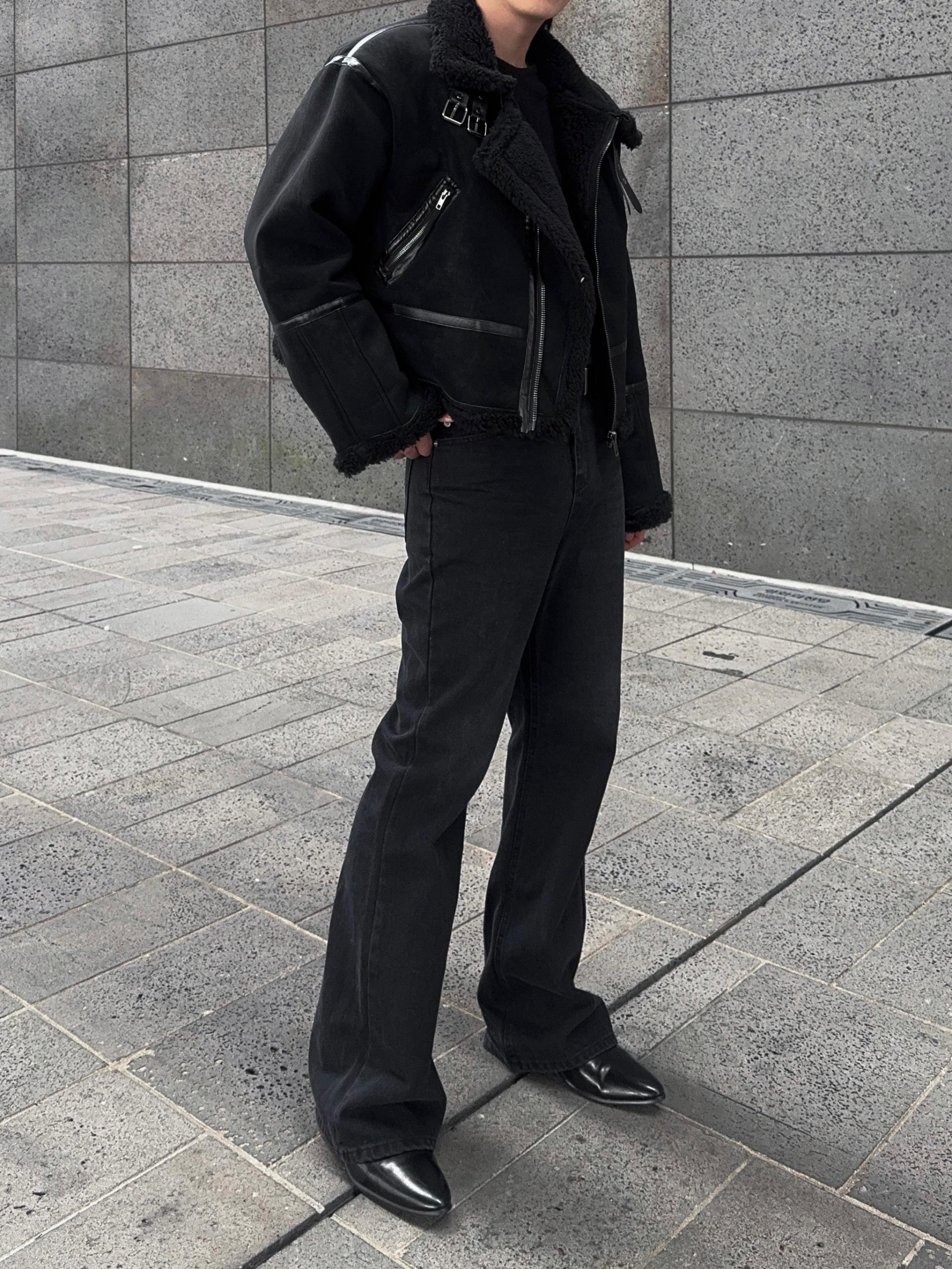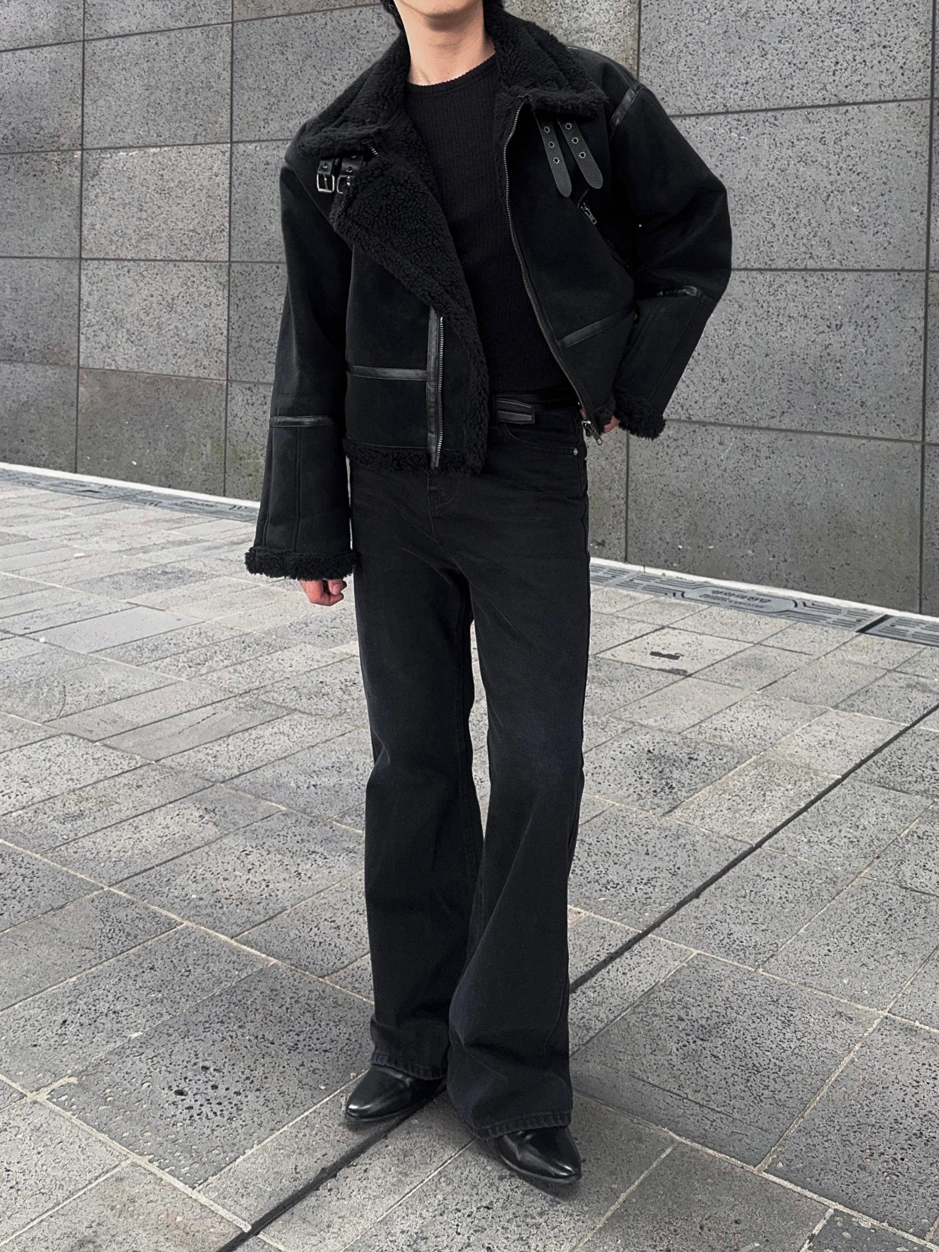 -매트한 스웨이드 소재로 제작된 무스탕