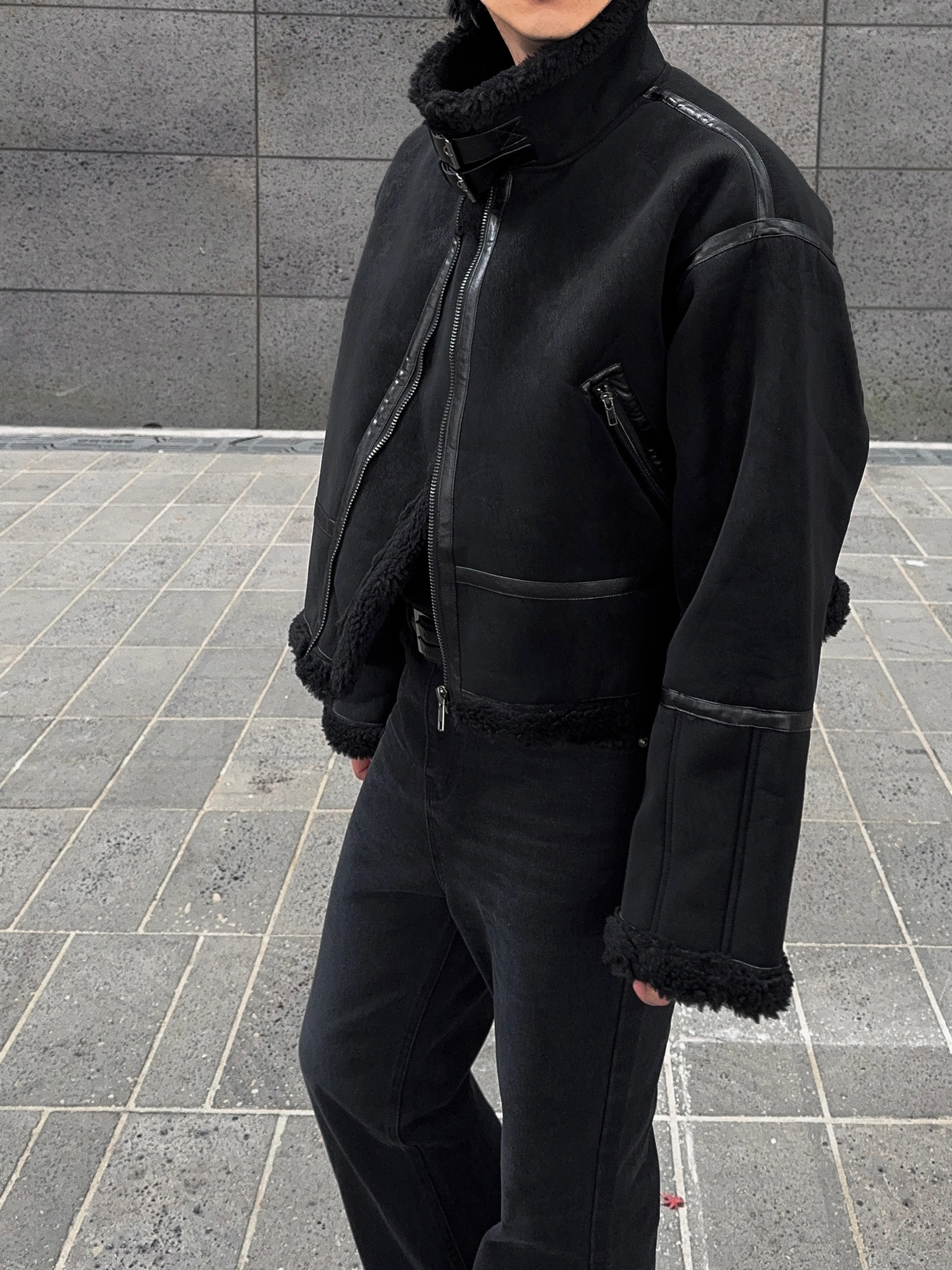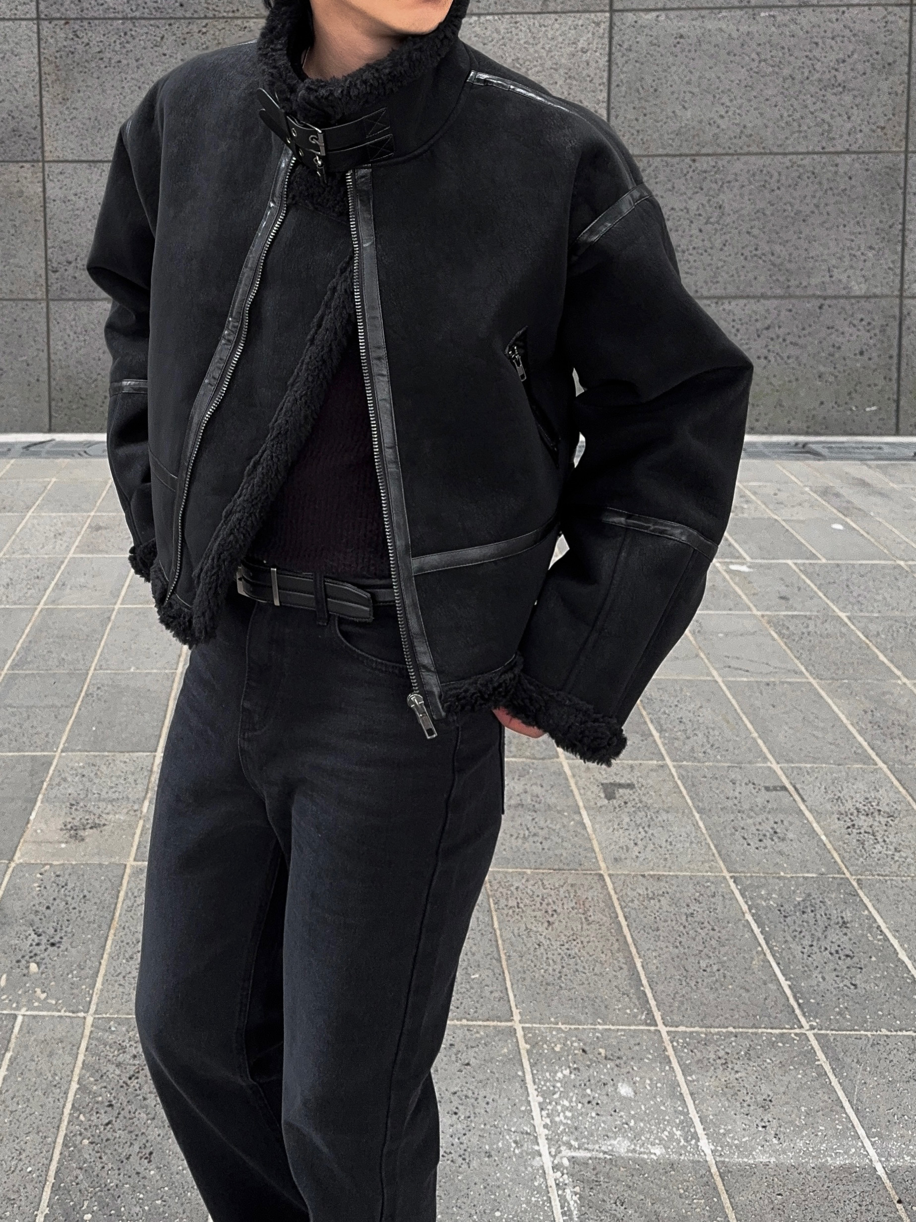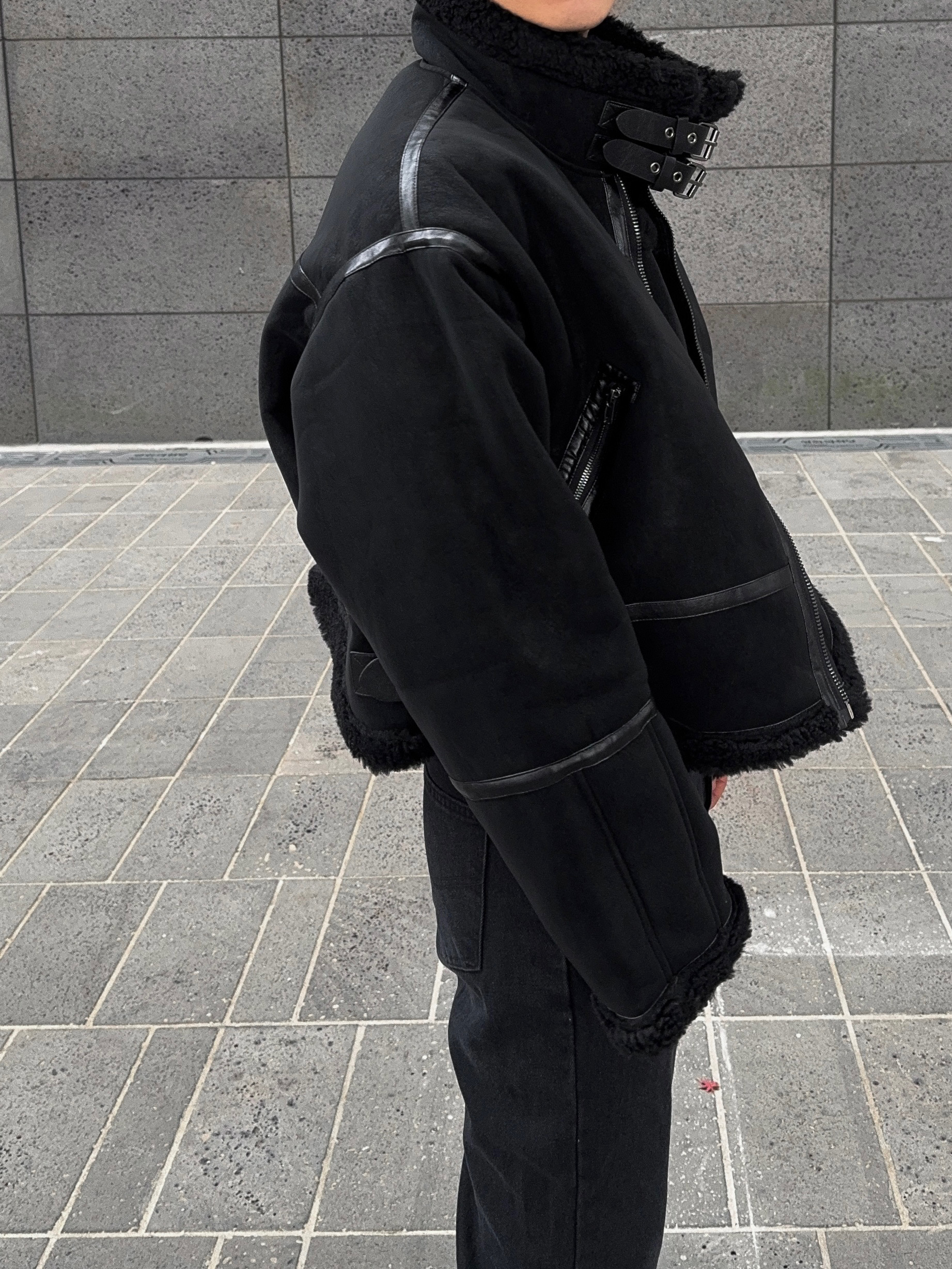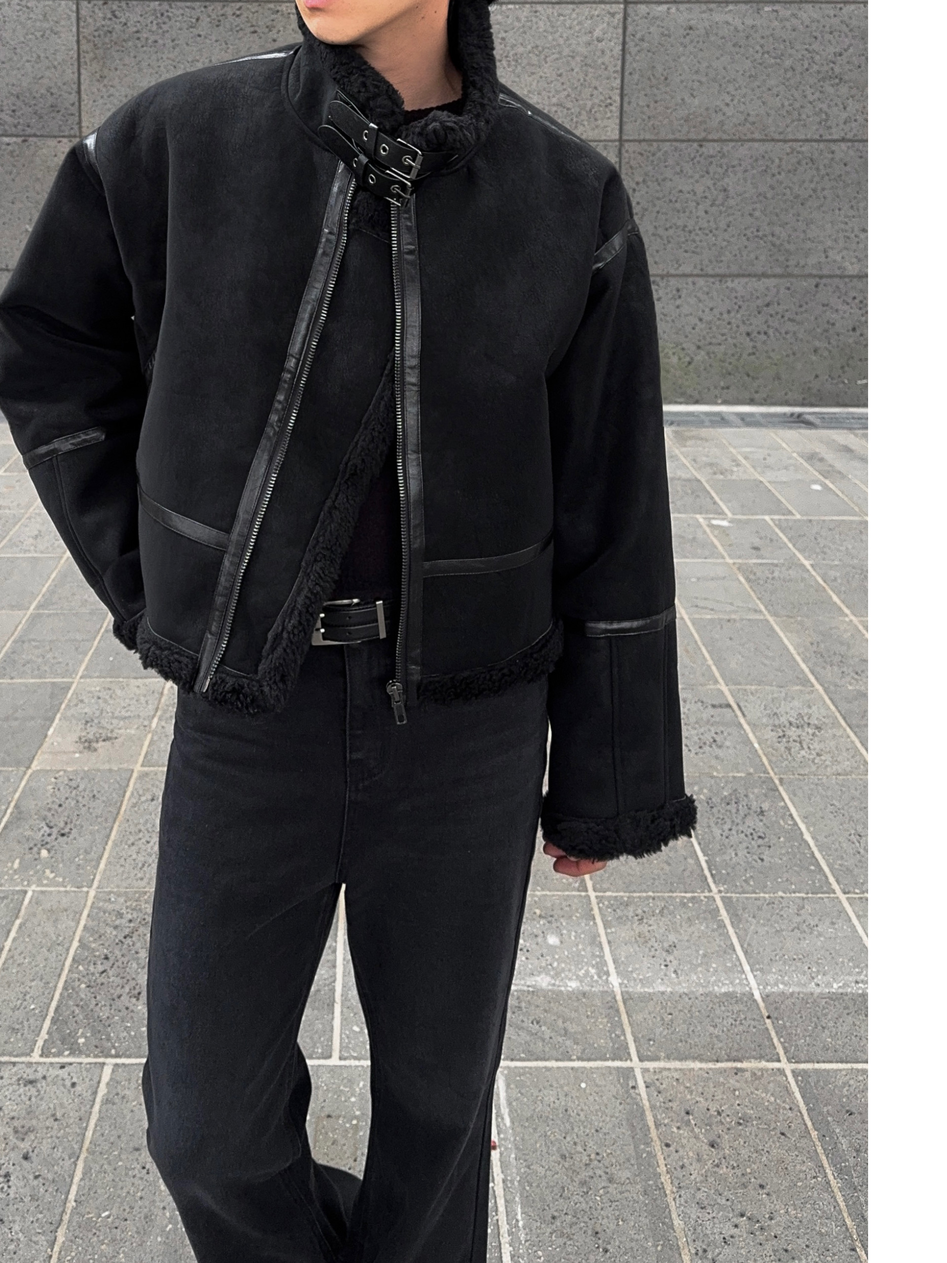 -매트한 스웨이드 소재로 제작된 무스탕