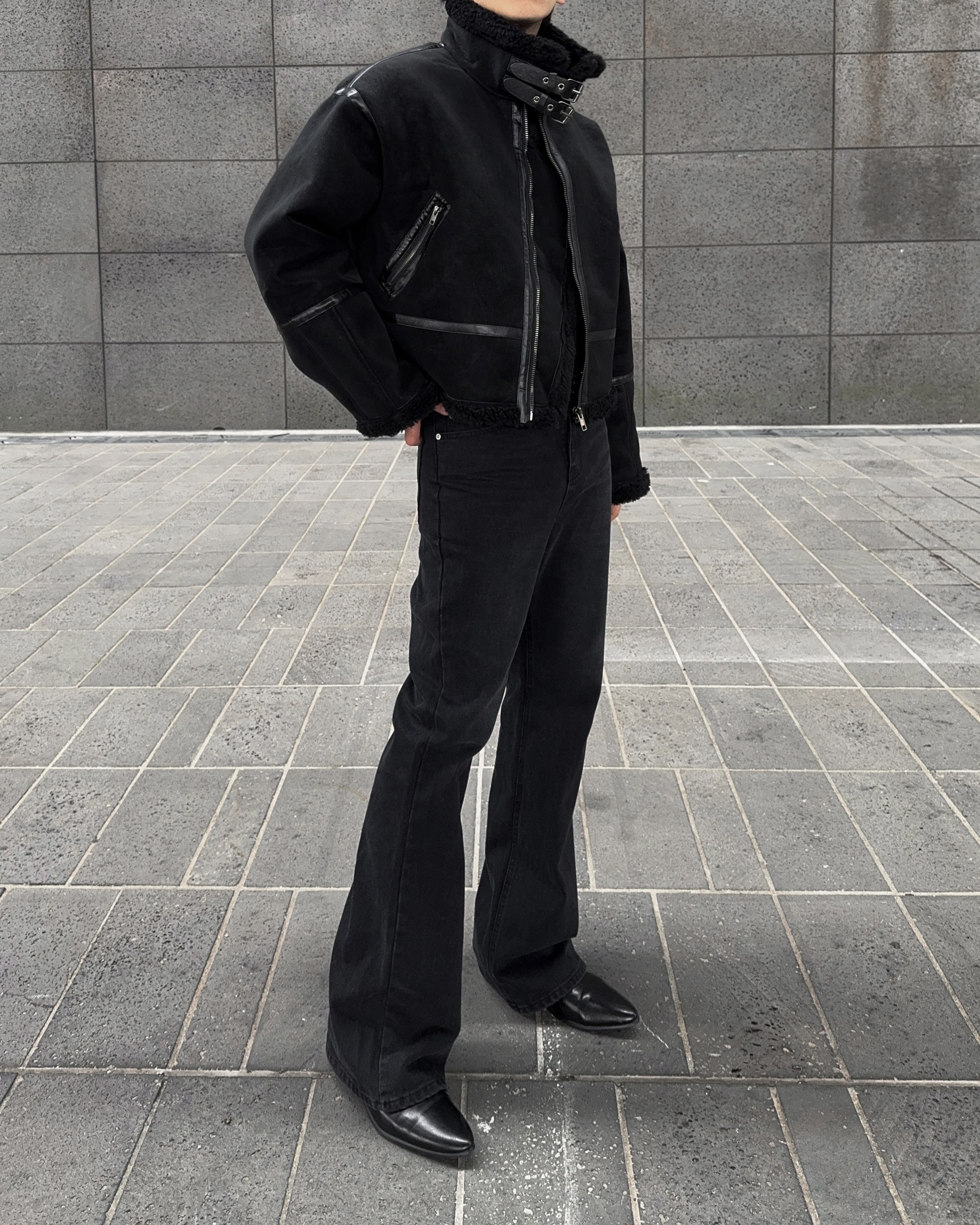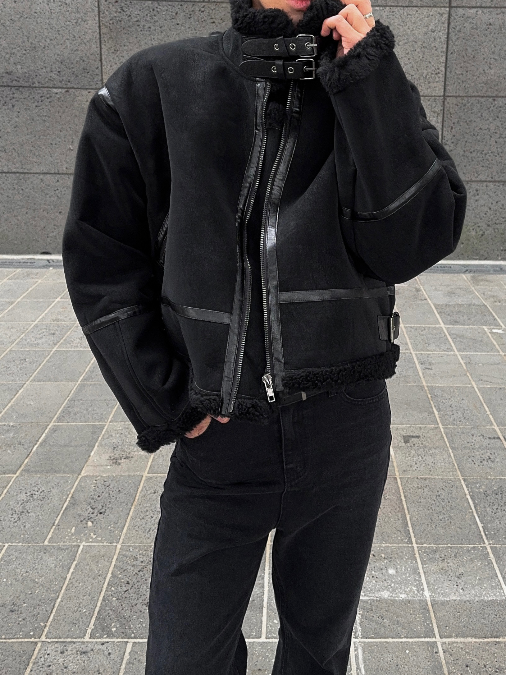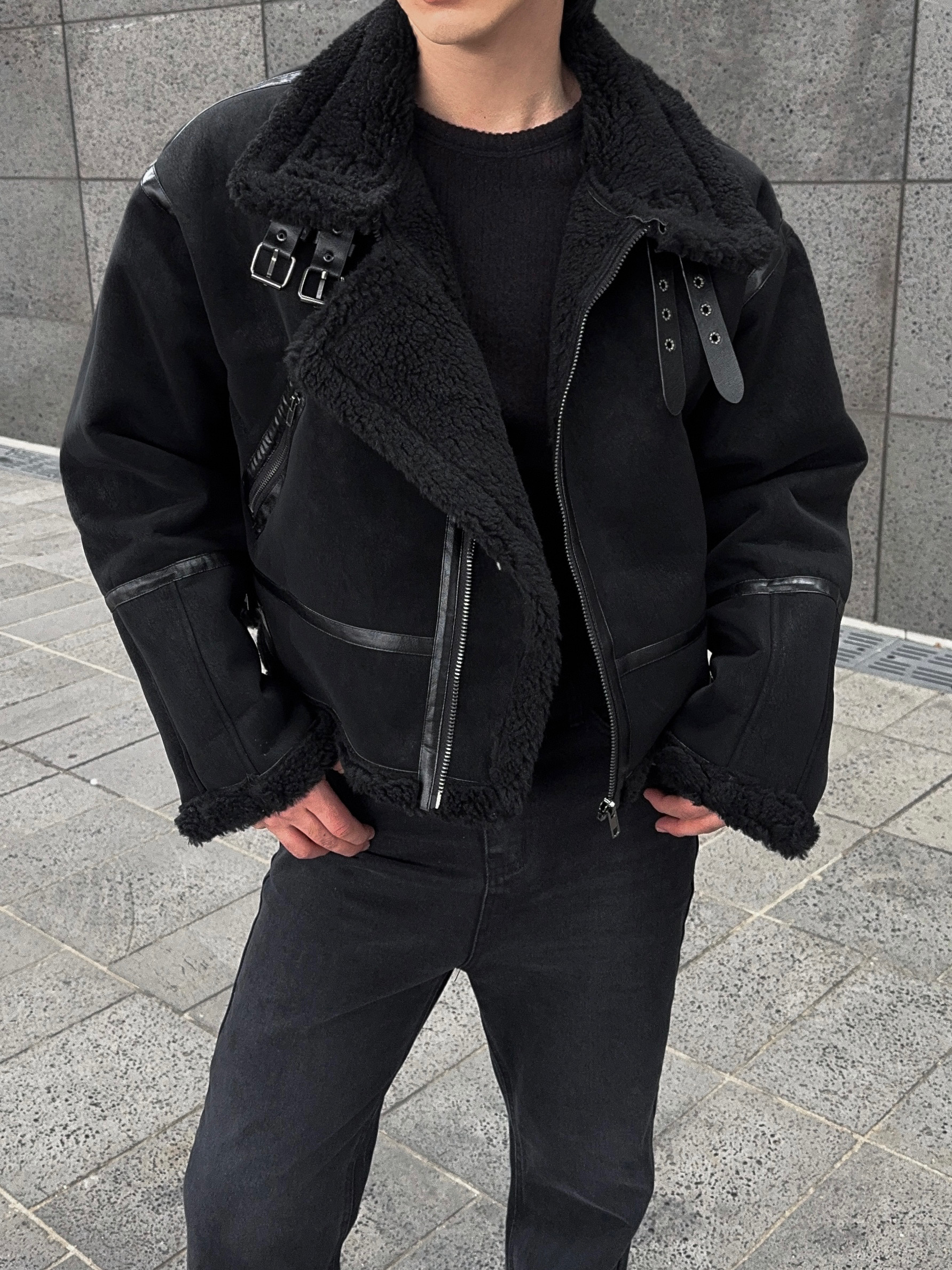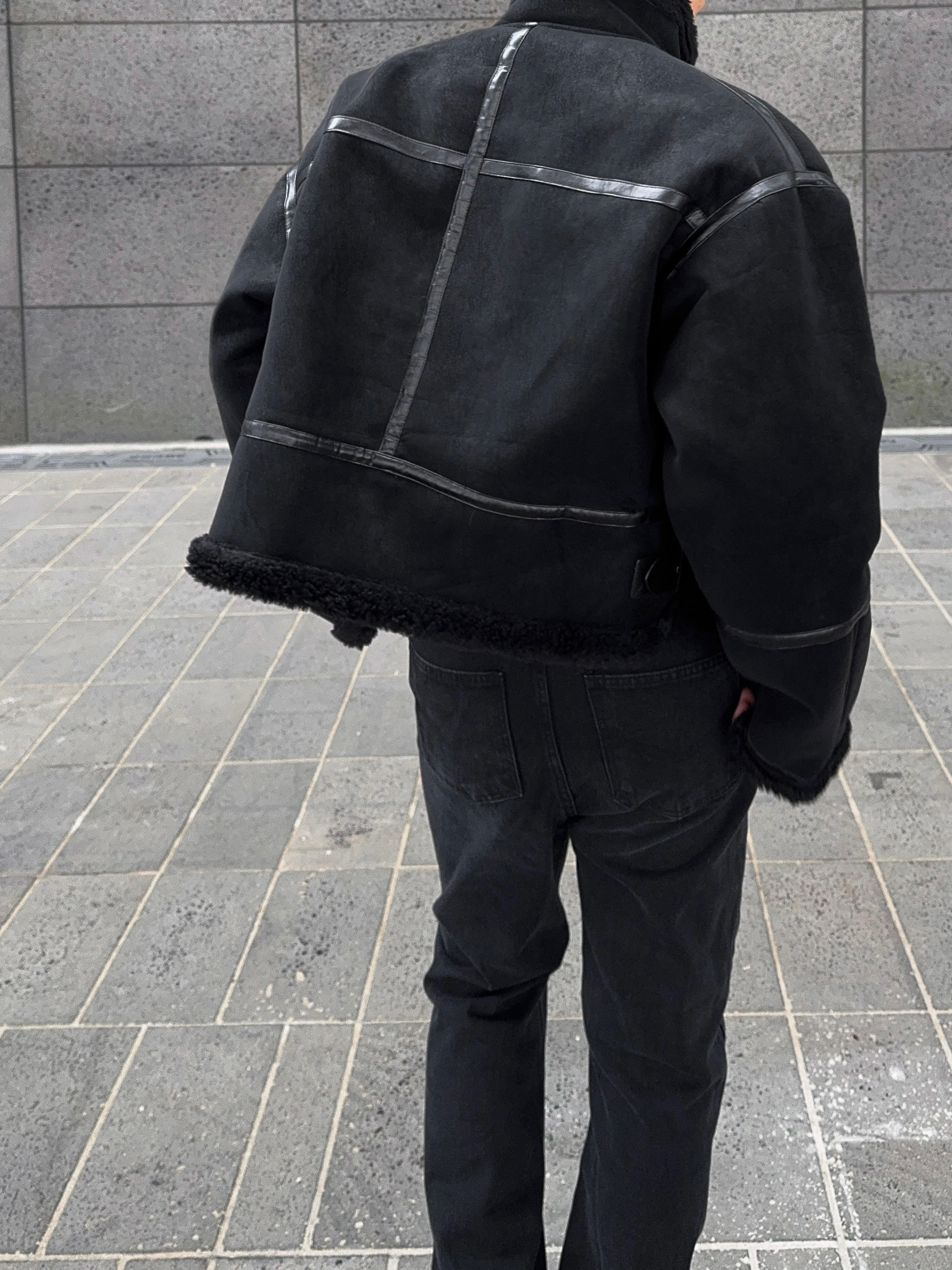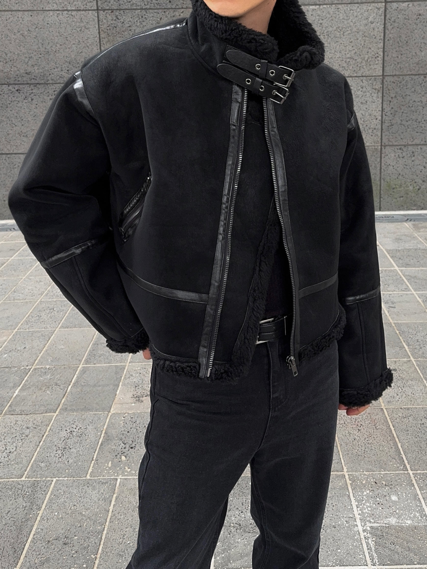 -매트한 스웨이드 소재로 제작된 무스탕