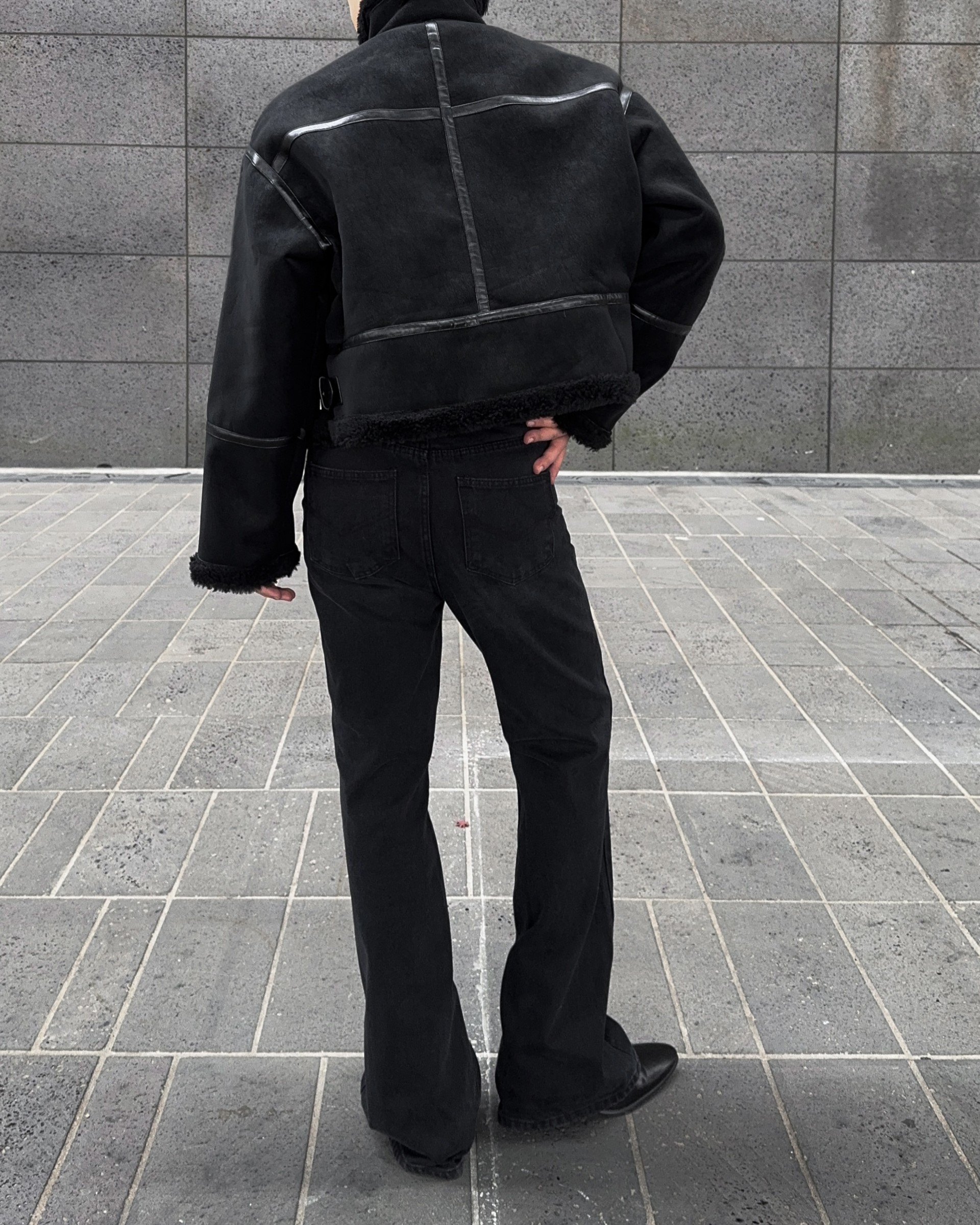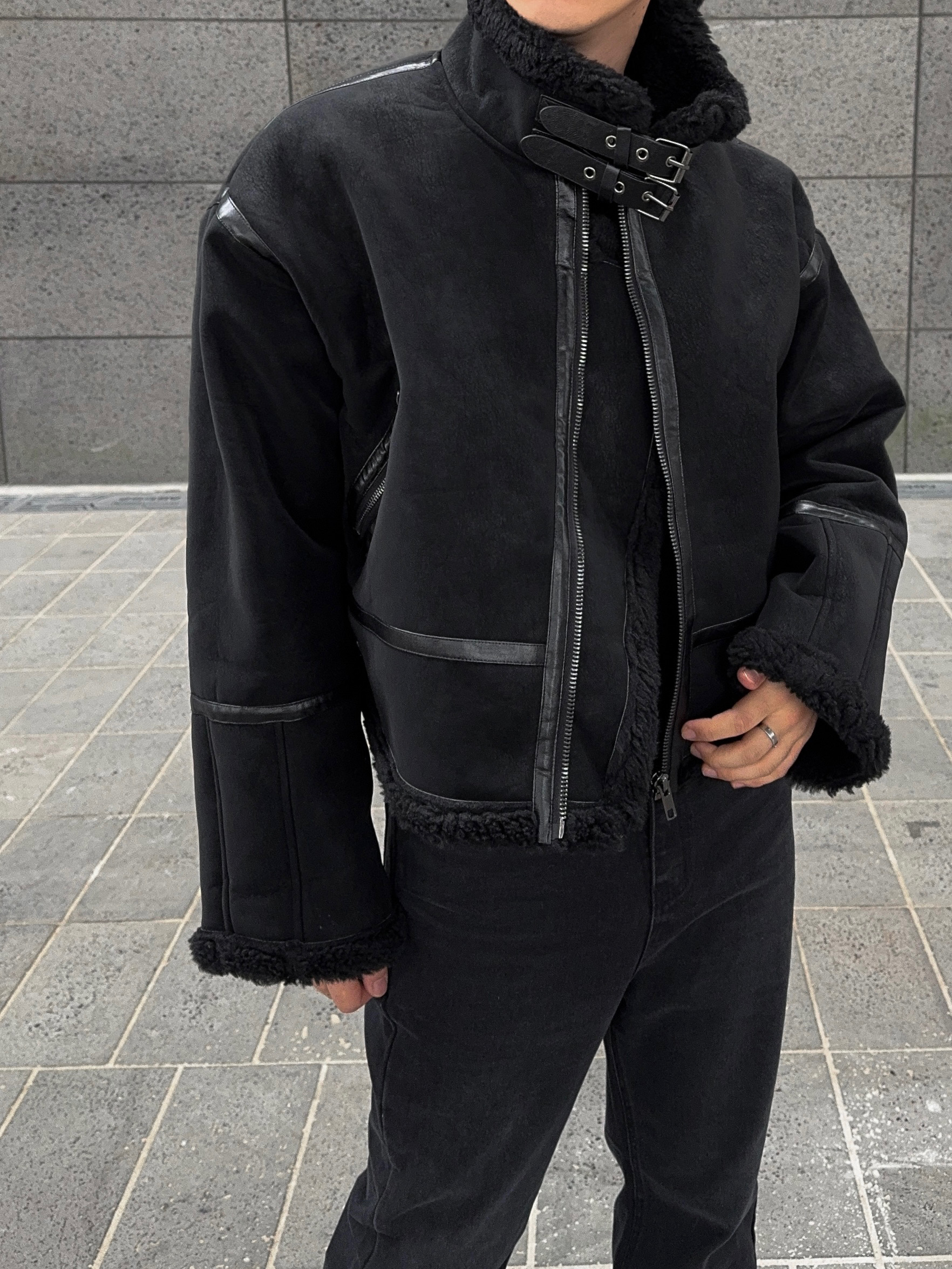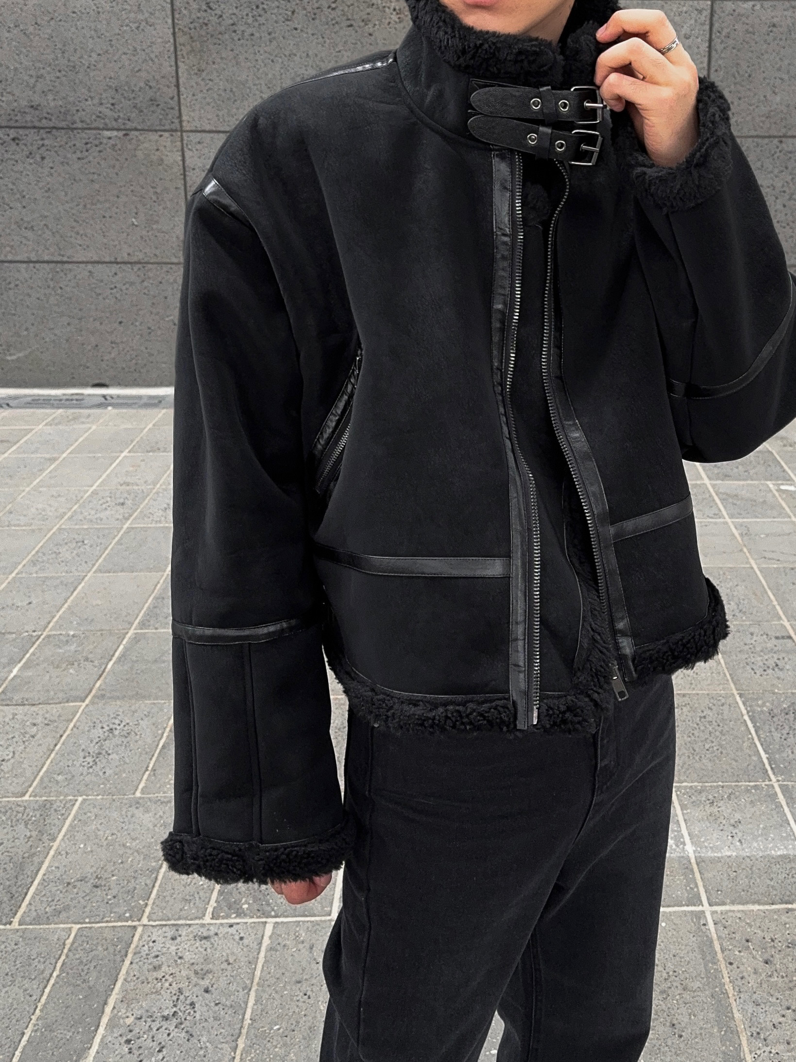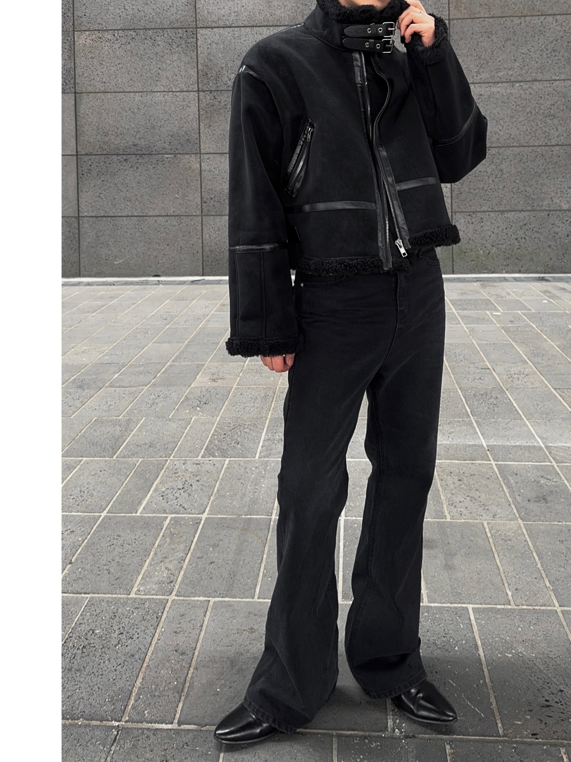 -매트한 스웨이드 소재로 제작된 무스탕