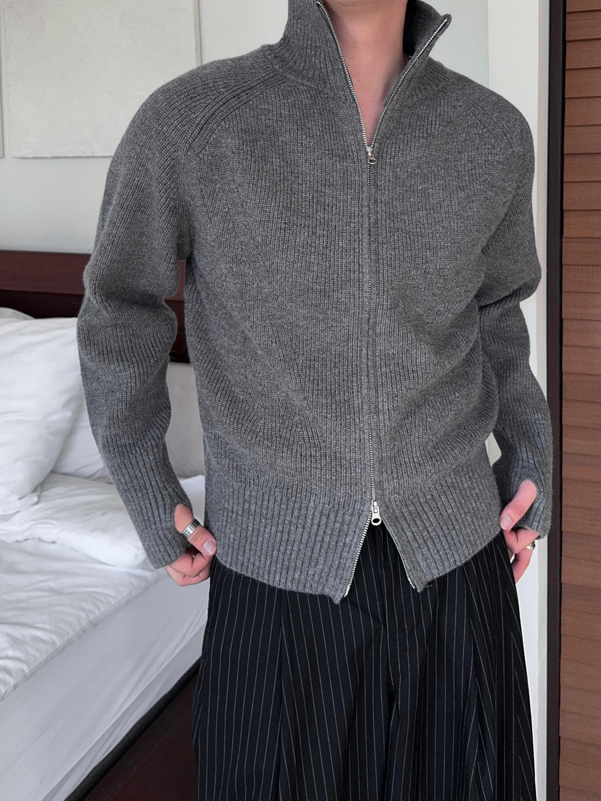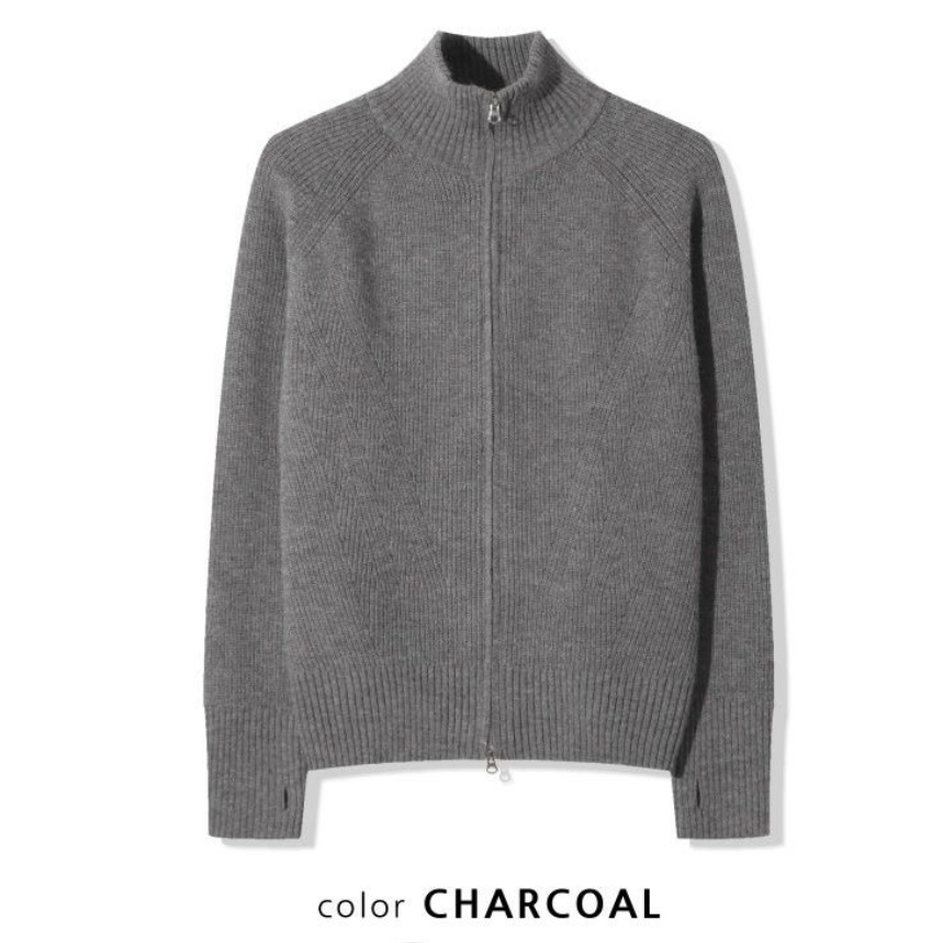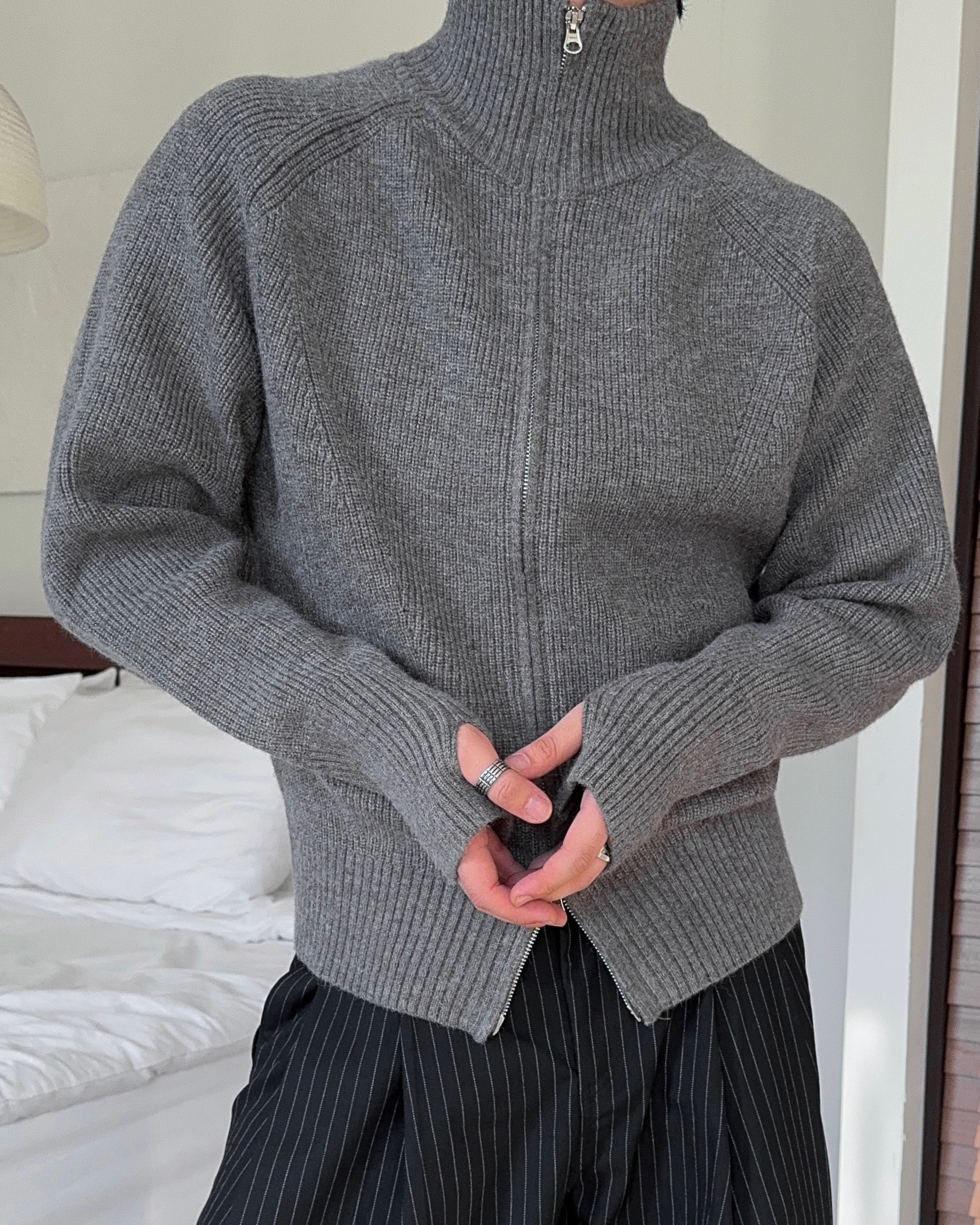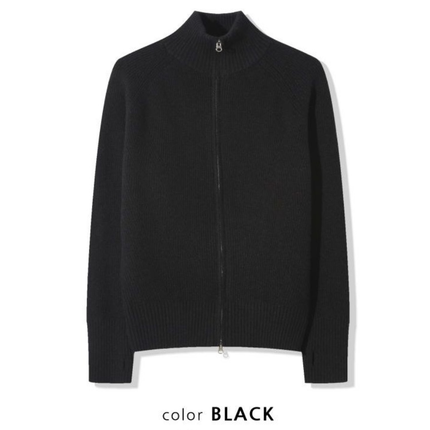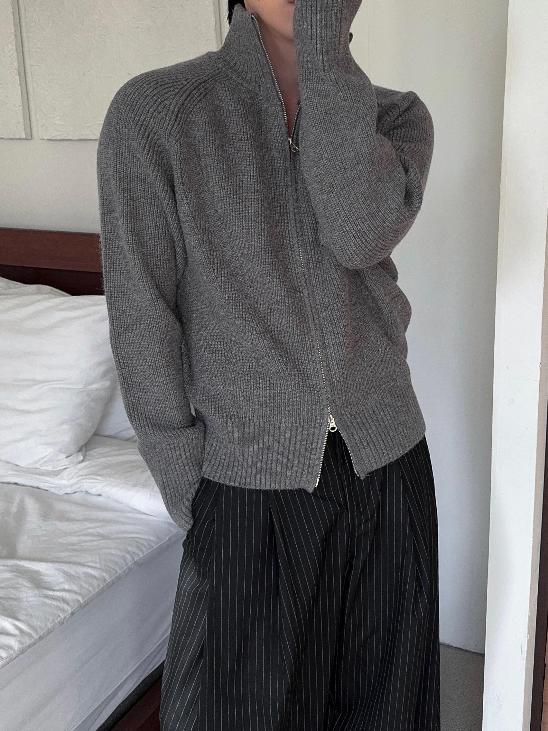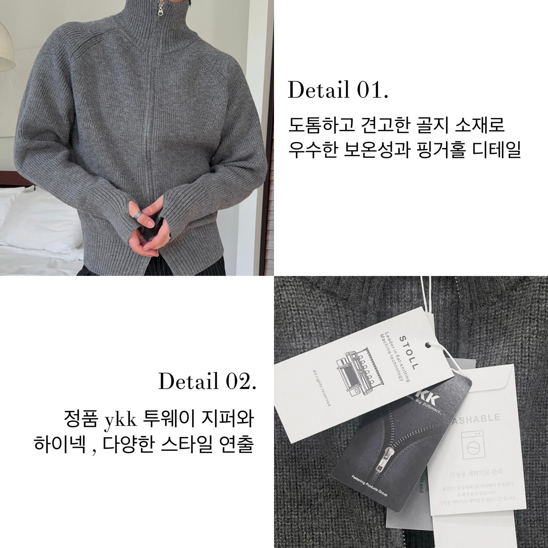 -도톰하고 탄탄한 고밀도 니트 짜임으로 제작된 하이넥 집업