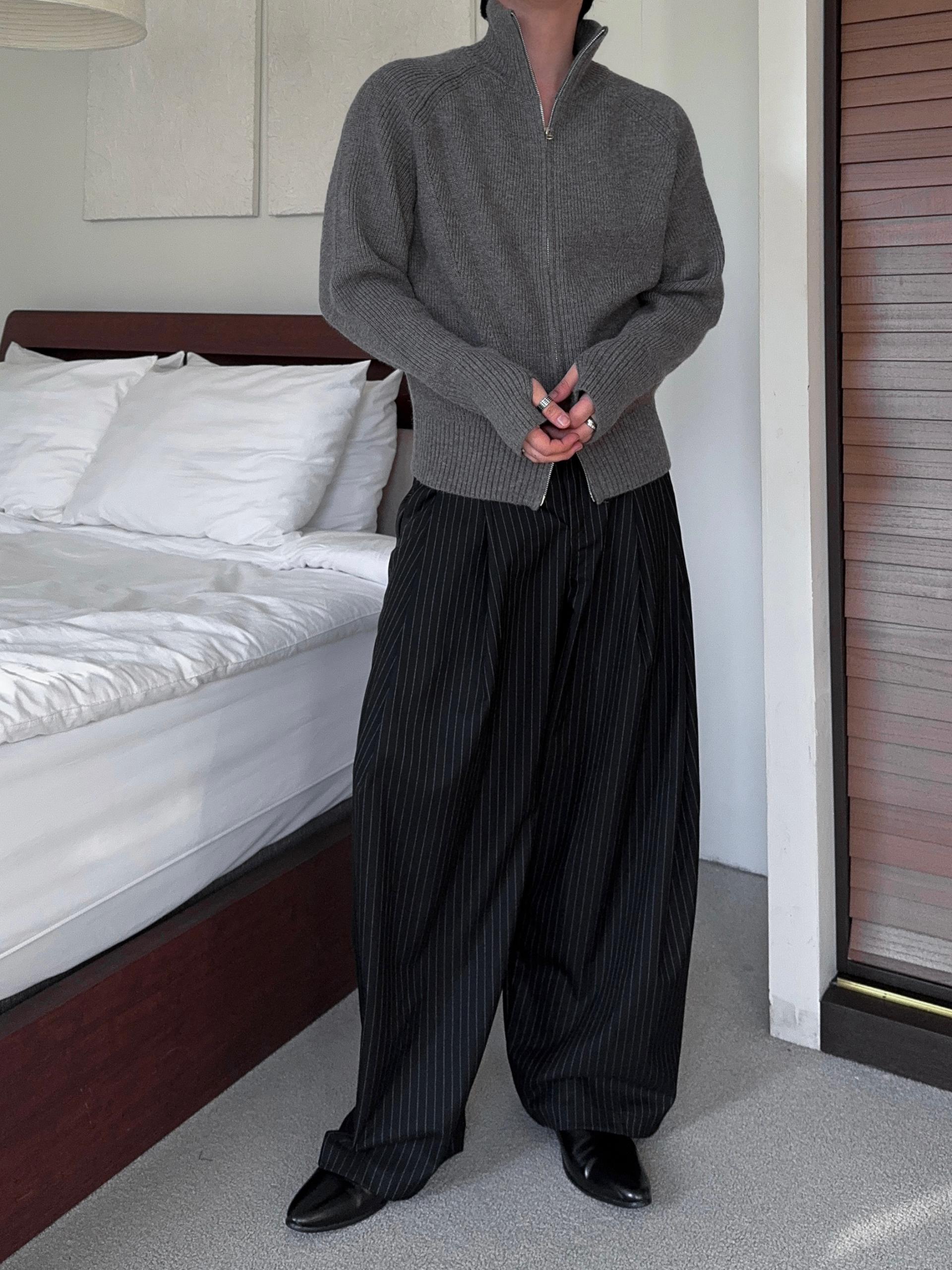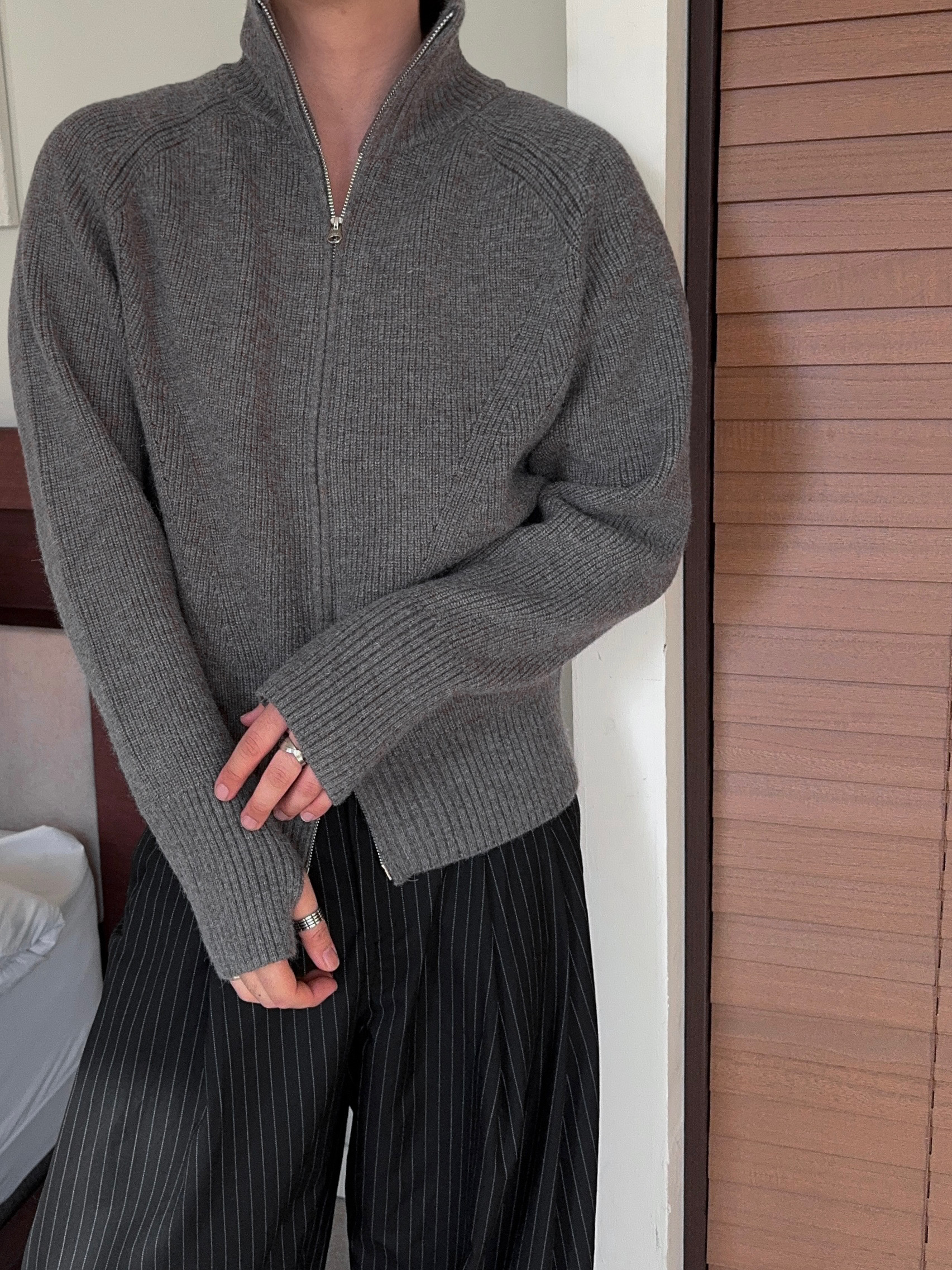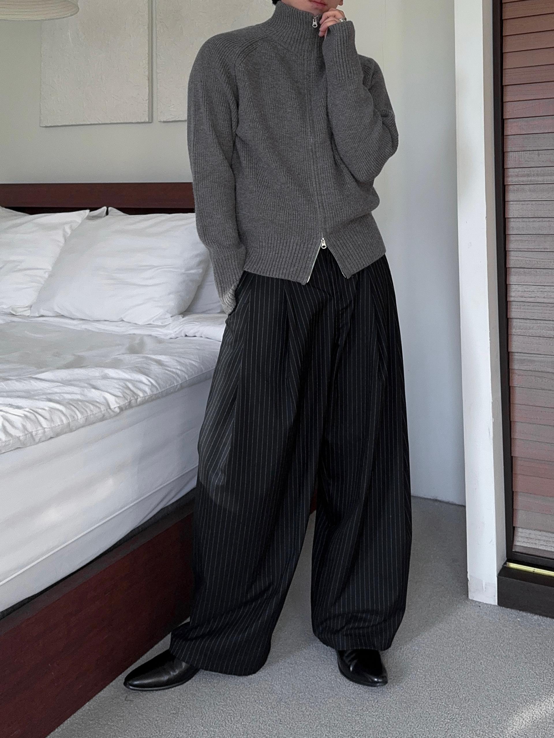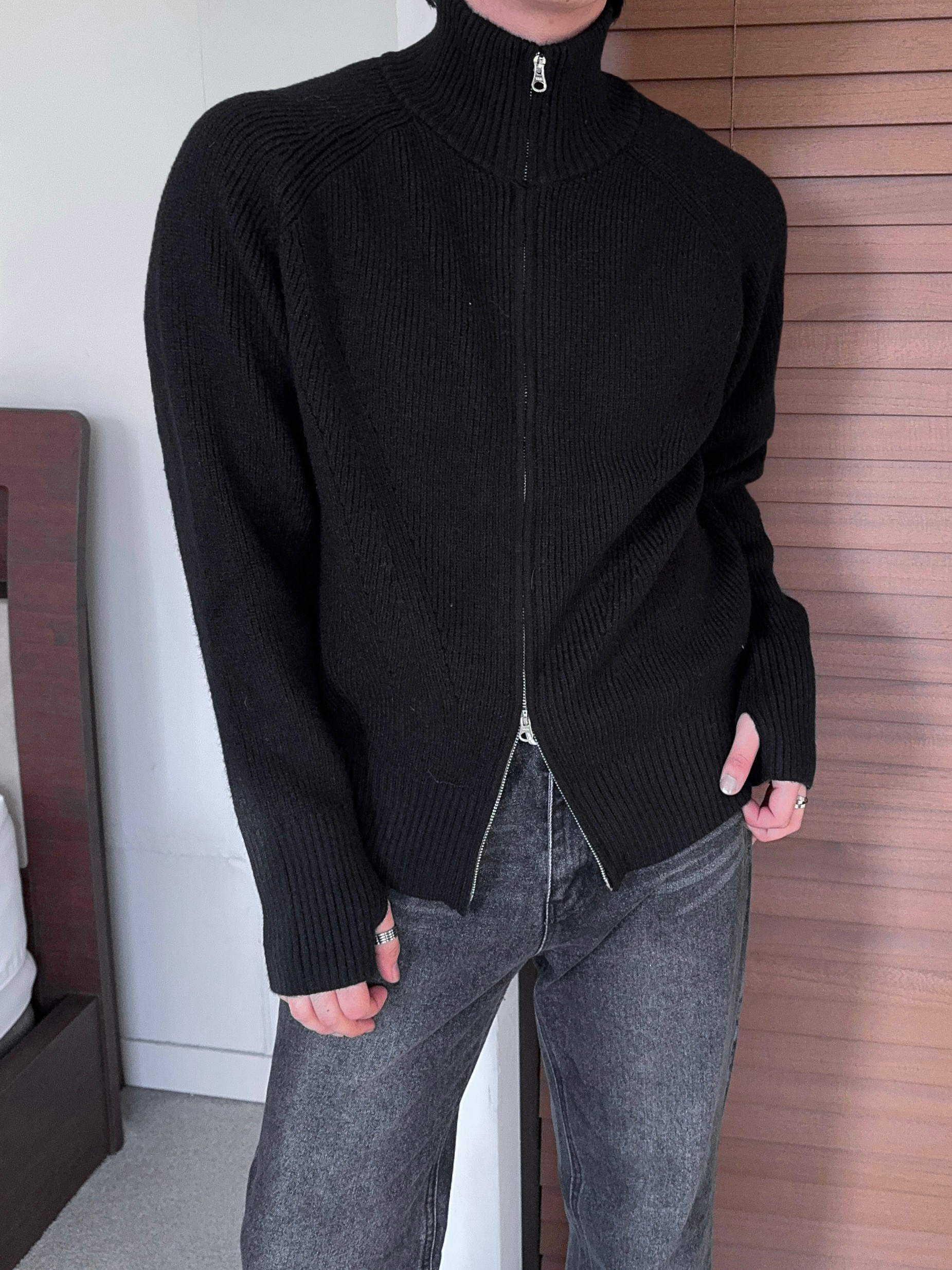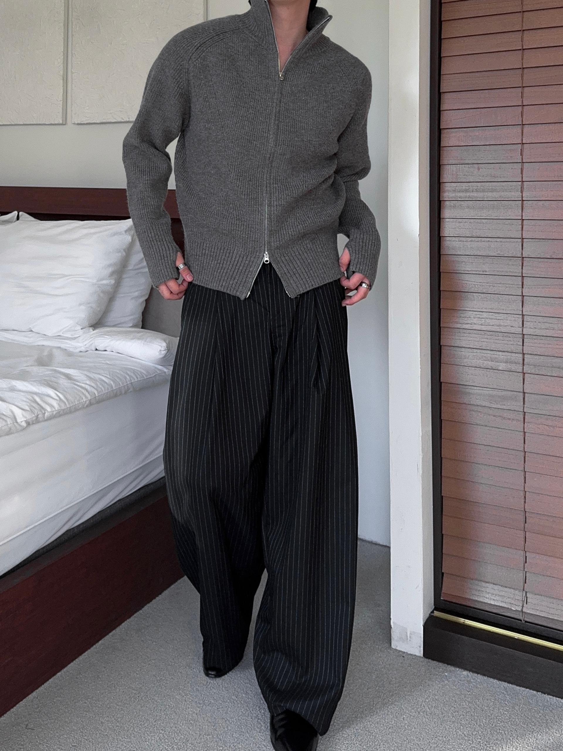 -도톰하고 탄탄한 고밀도 니트 짜임으로 제작된 하이넥 집업