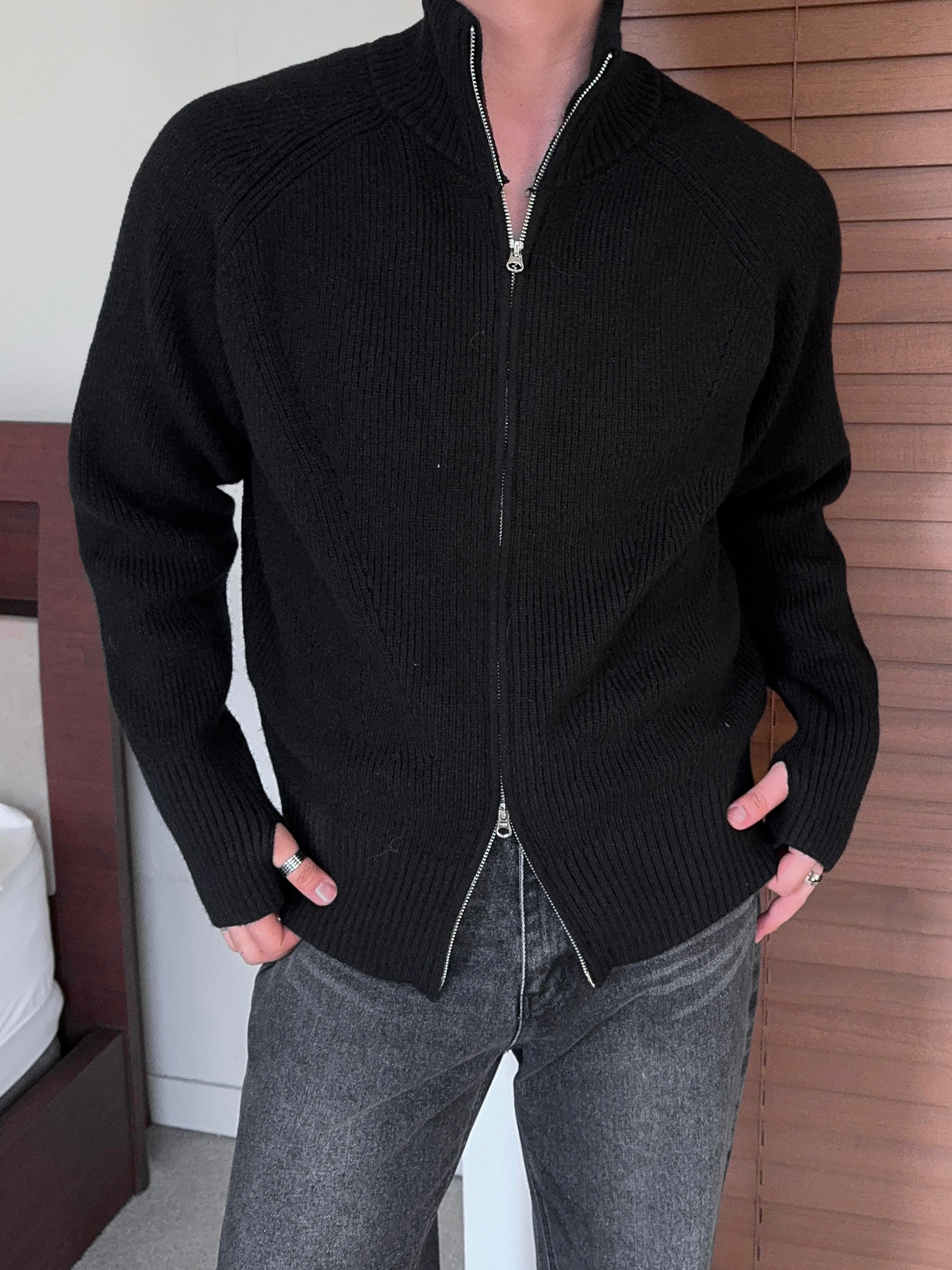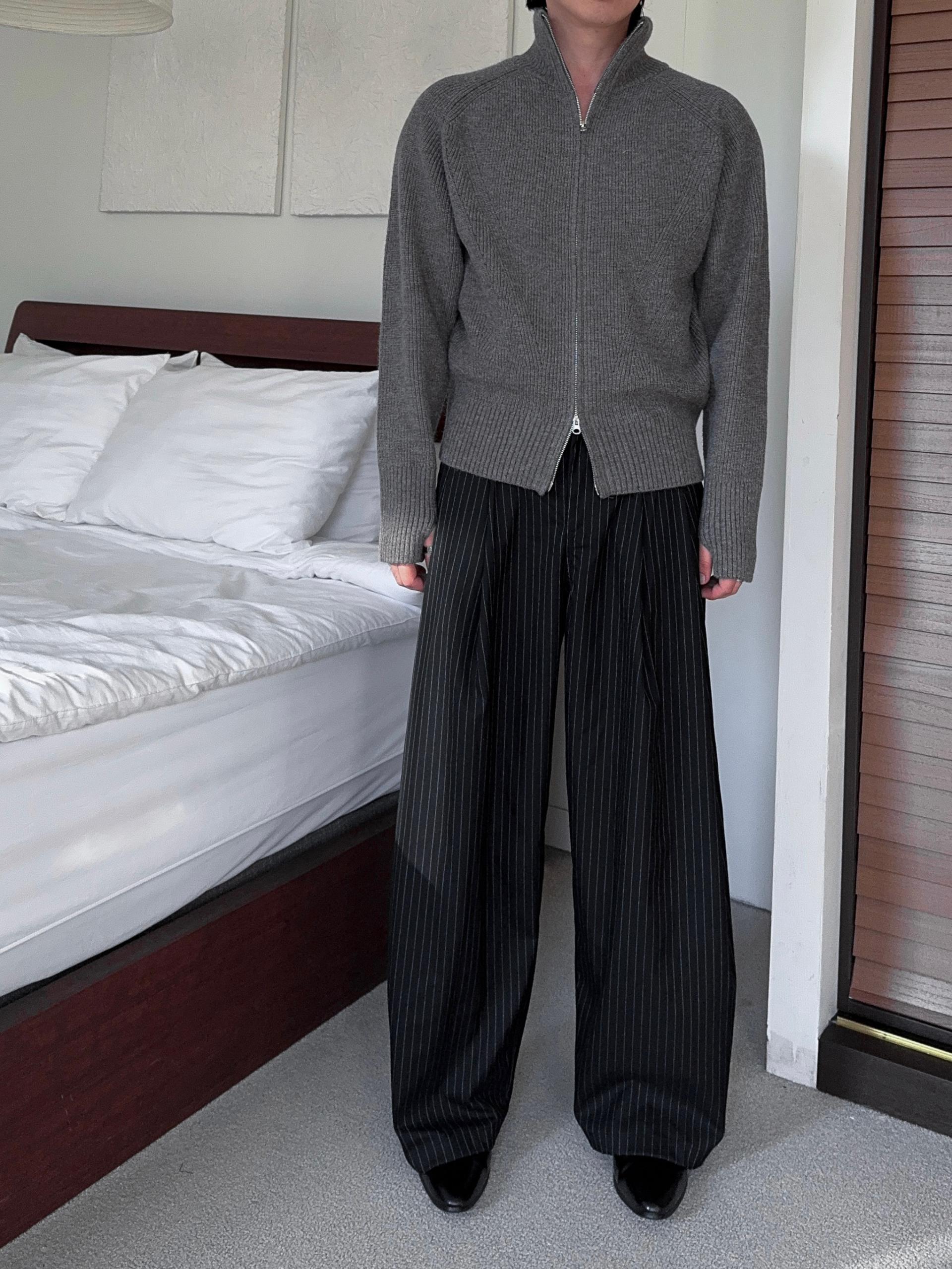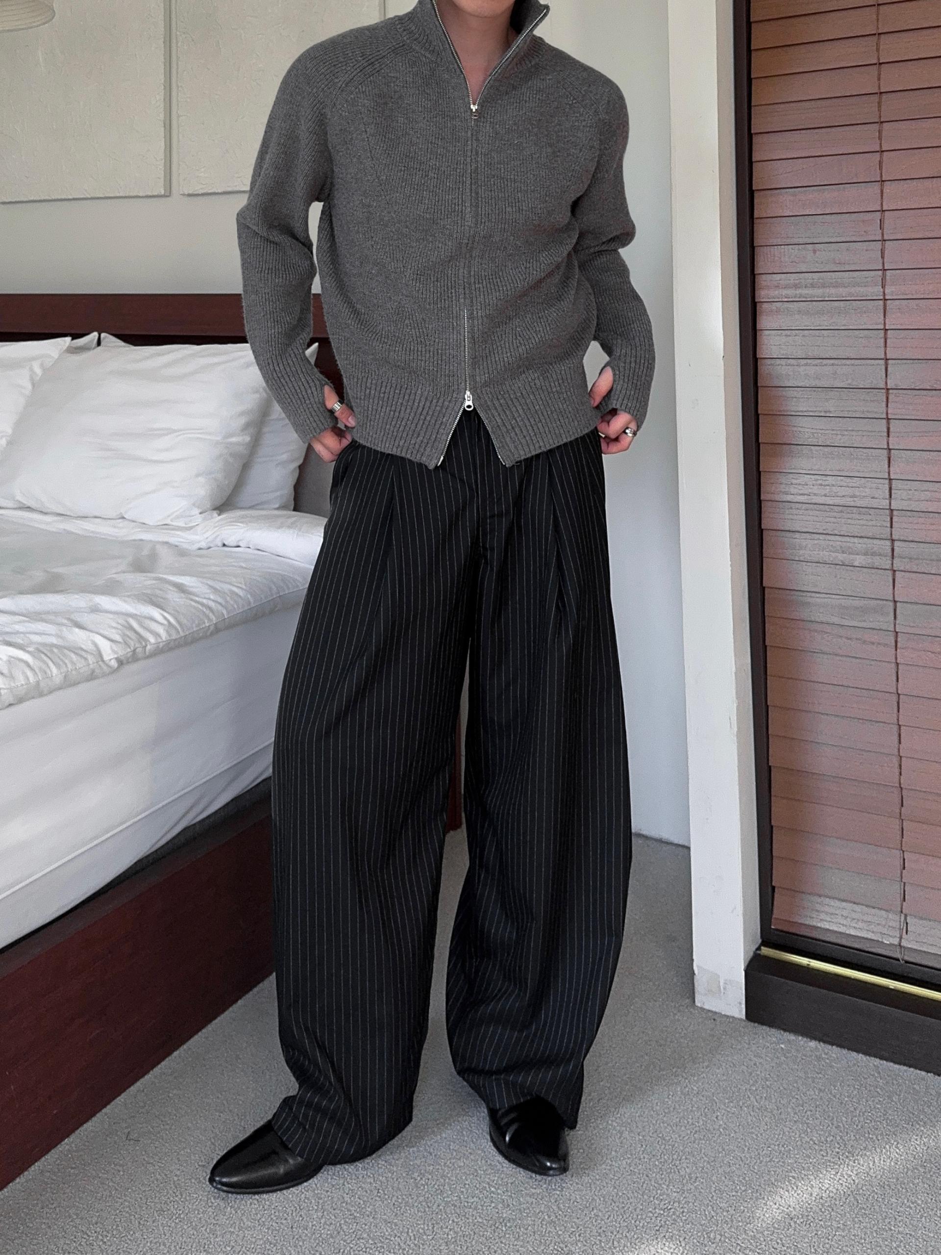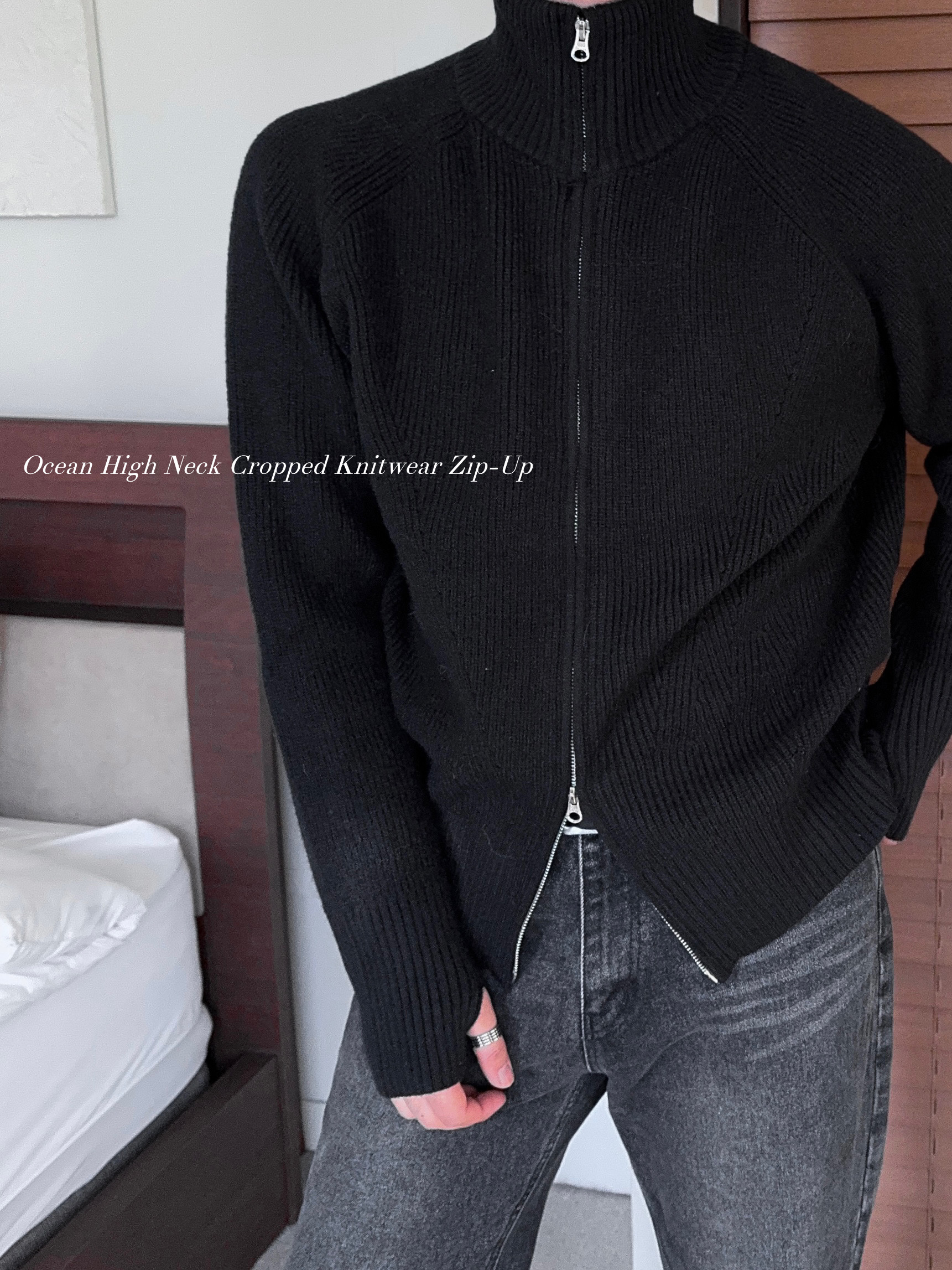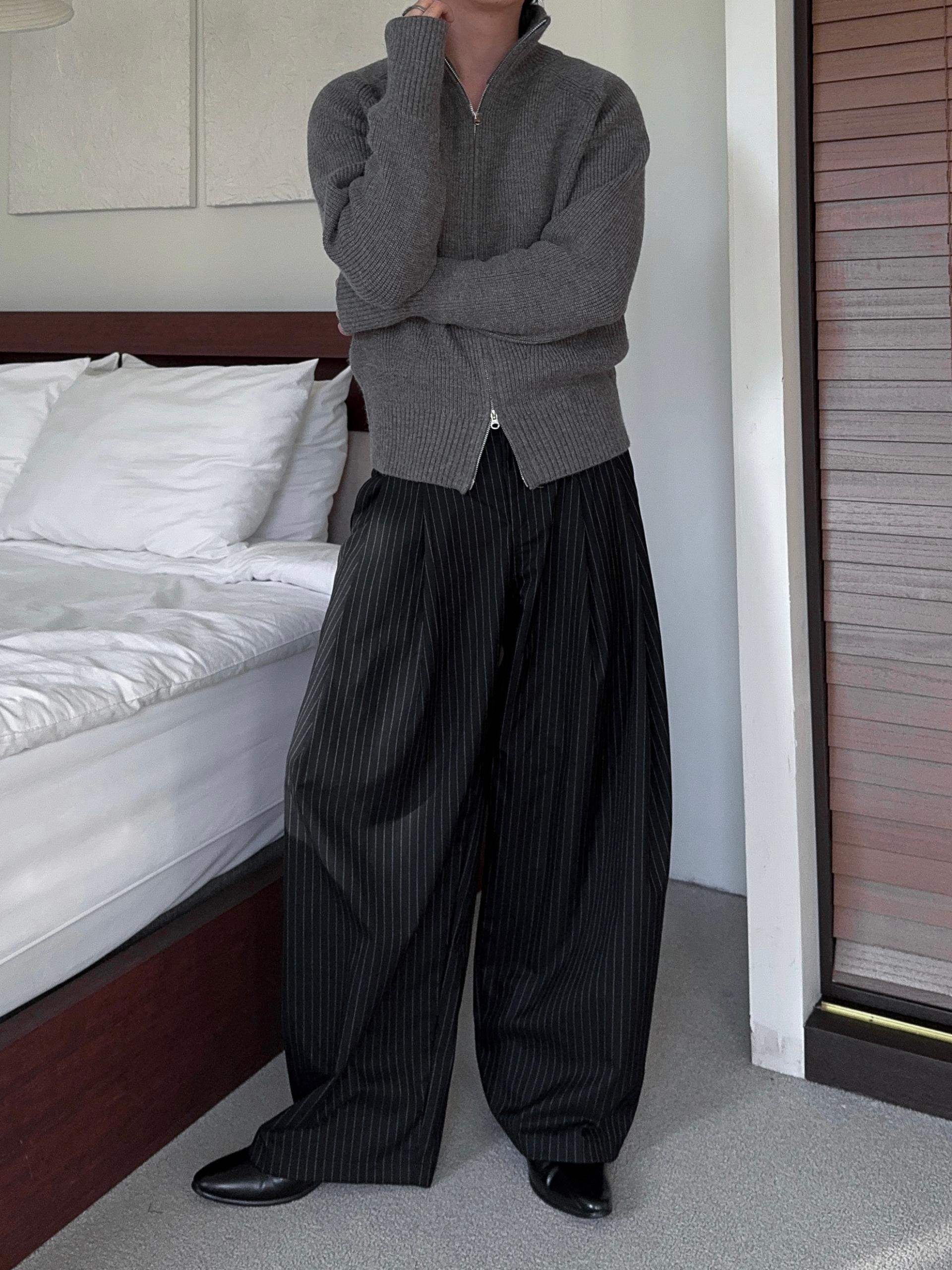 -도톰하고 탄탄한 고밀도 니트 짜임으로 제작된 하이넥 집업