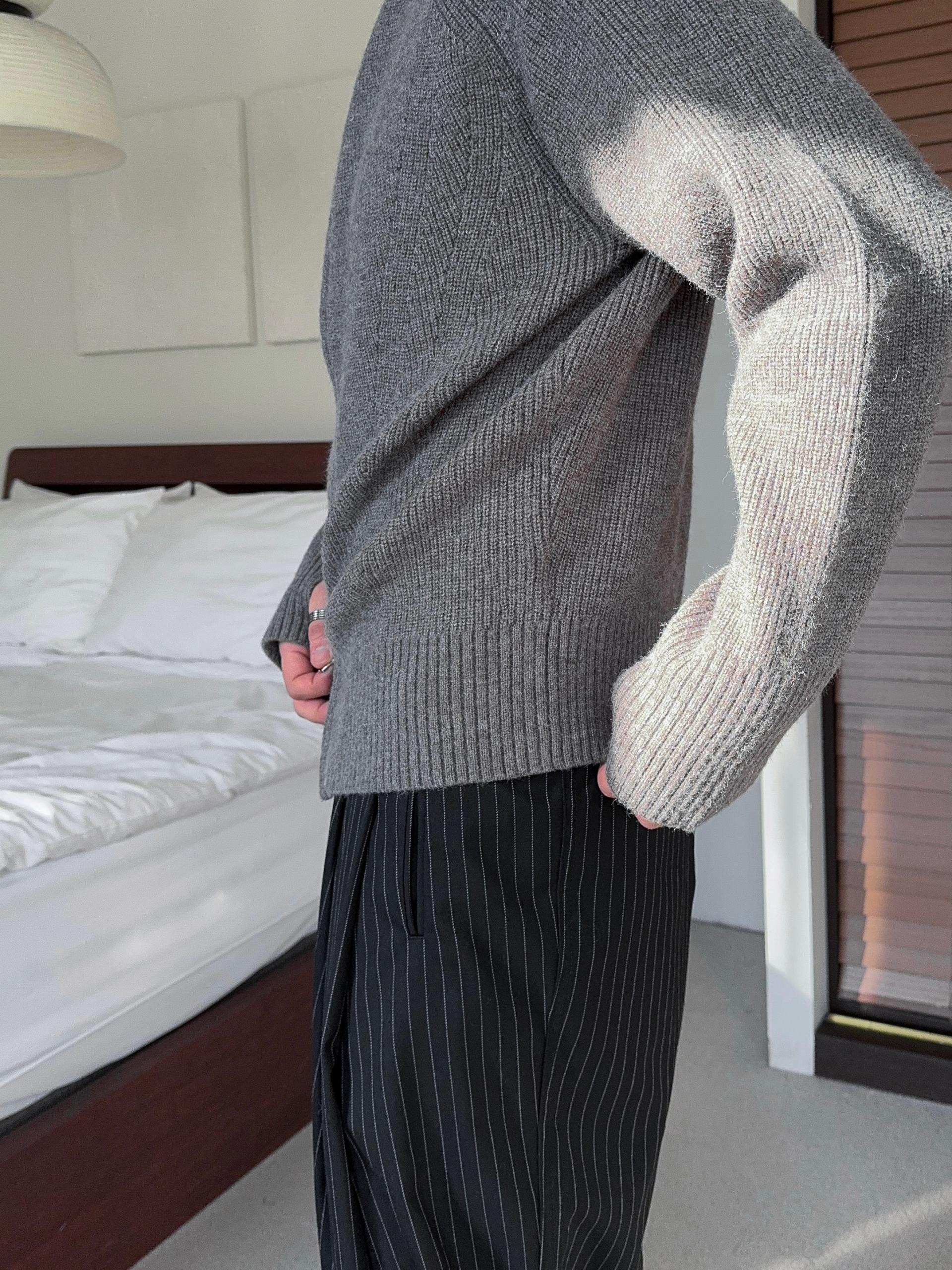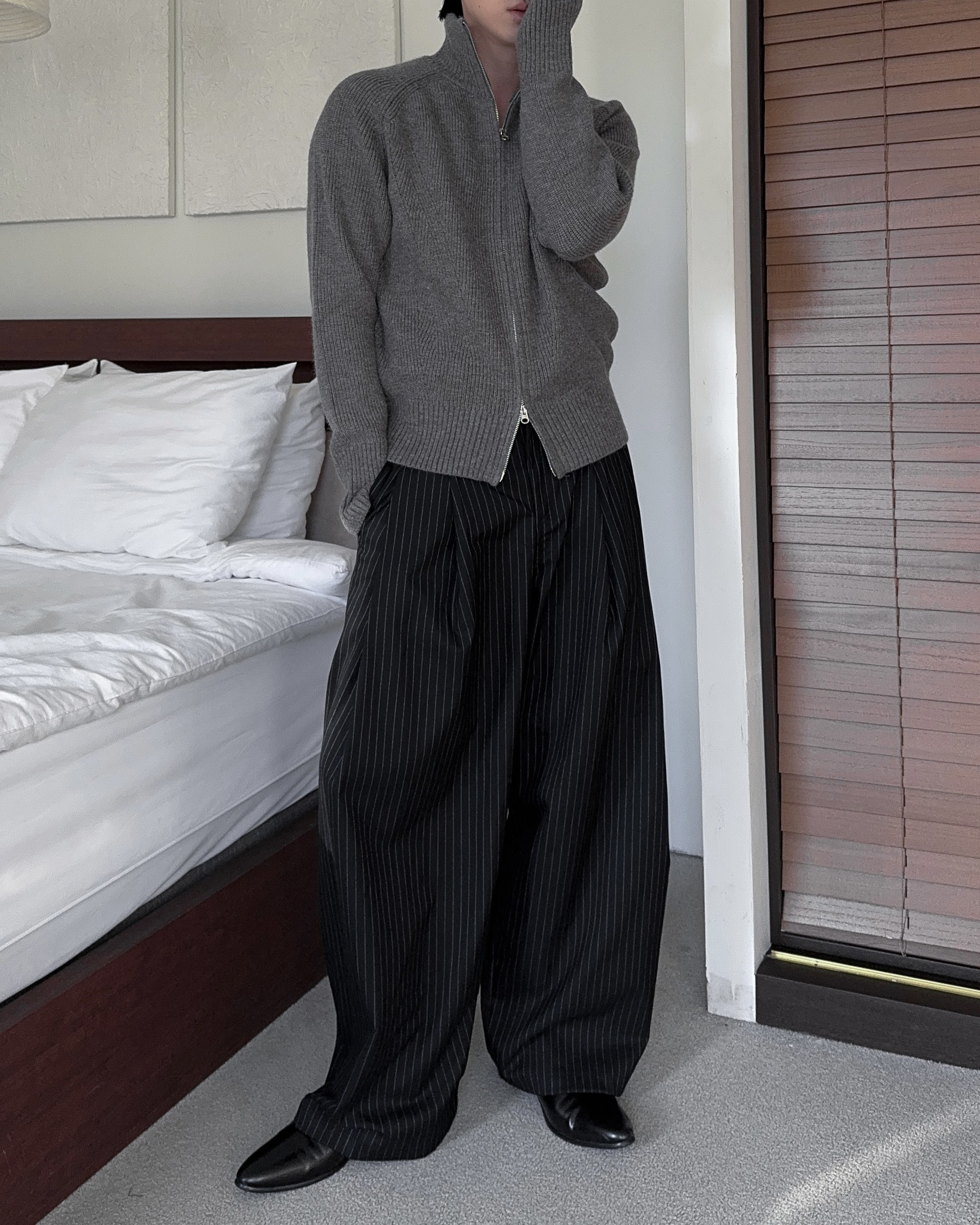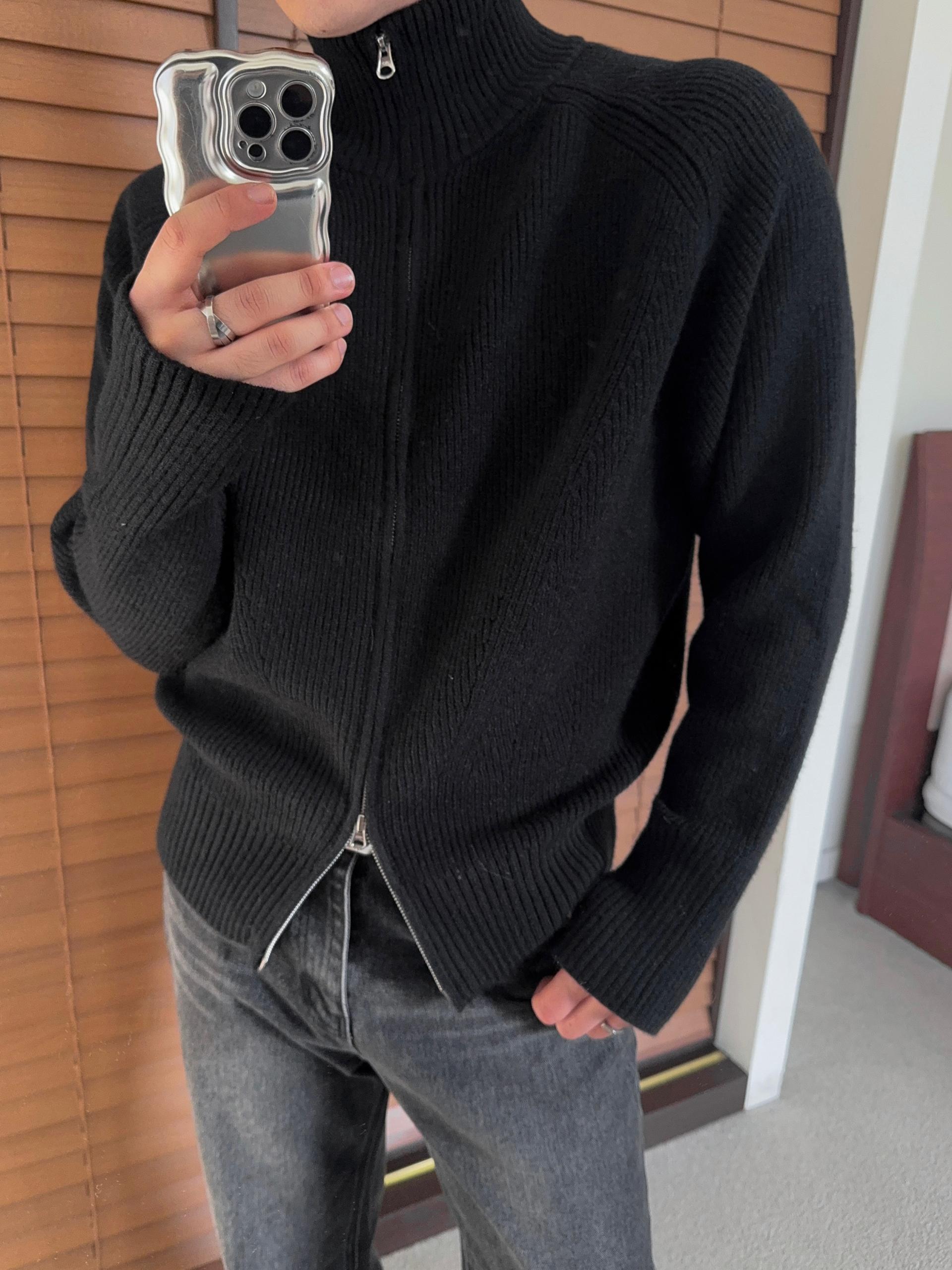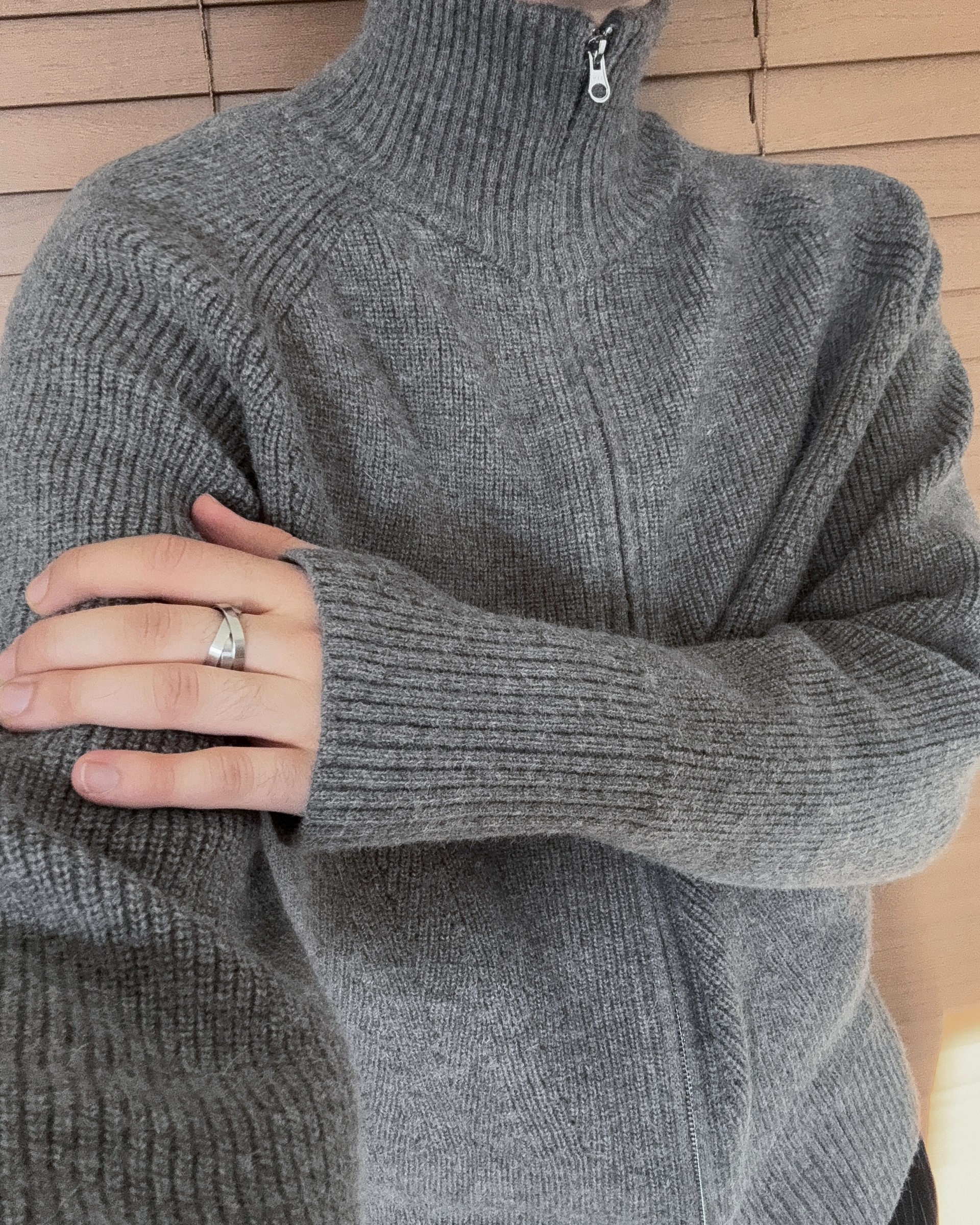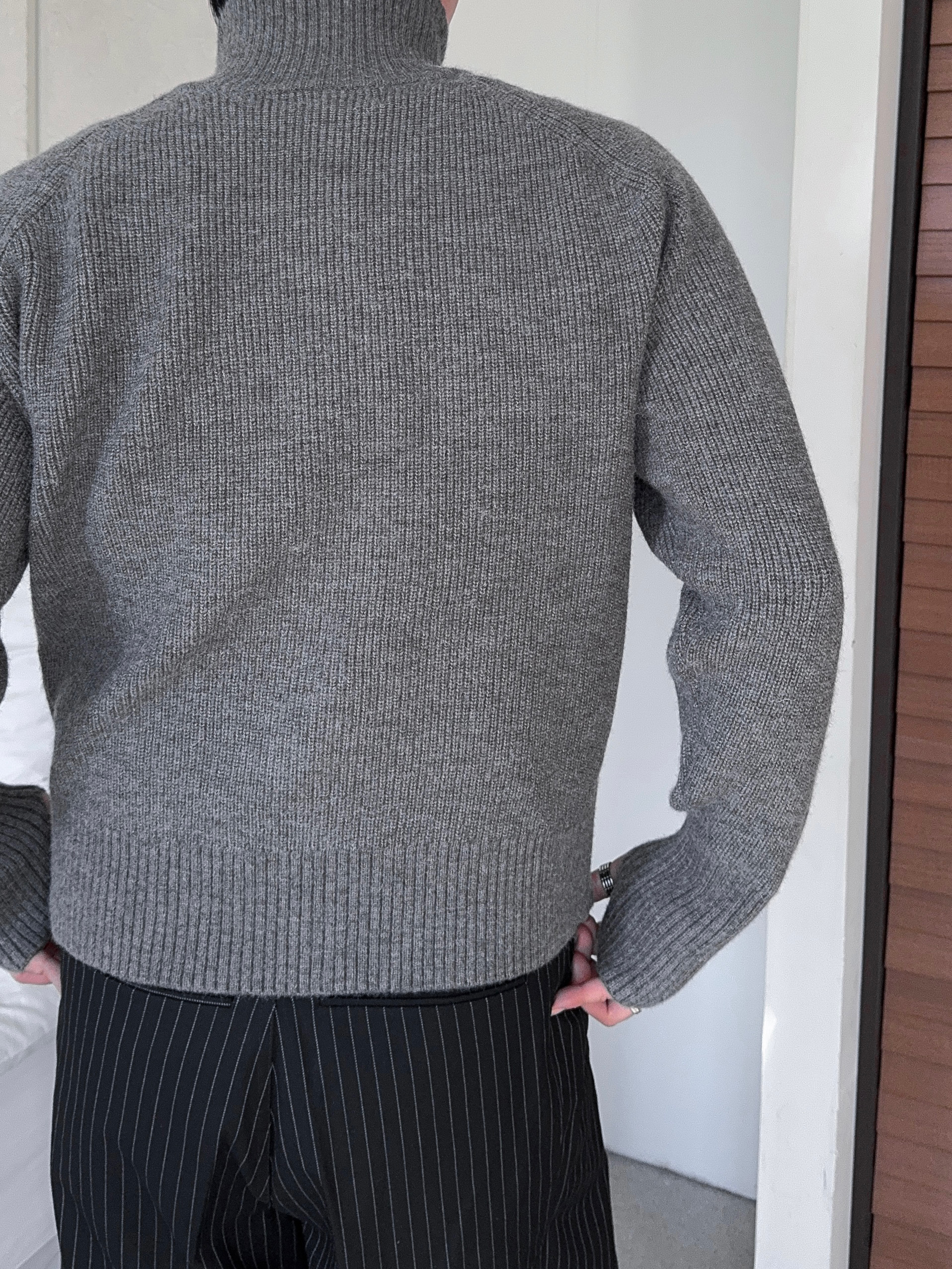 -도톰하고 탄탄한 고밀도 니트 짜임으로 제작된 하이넥 집업