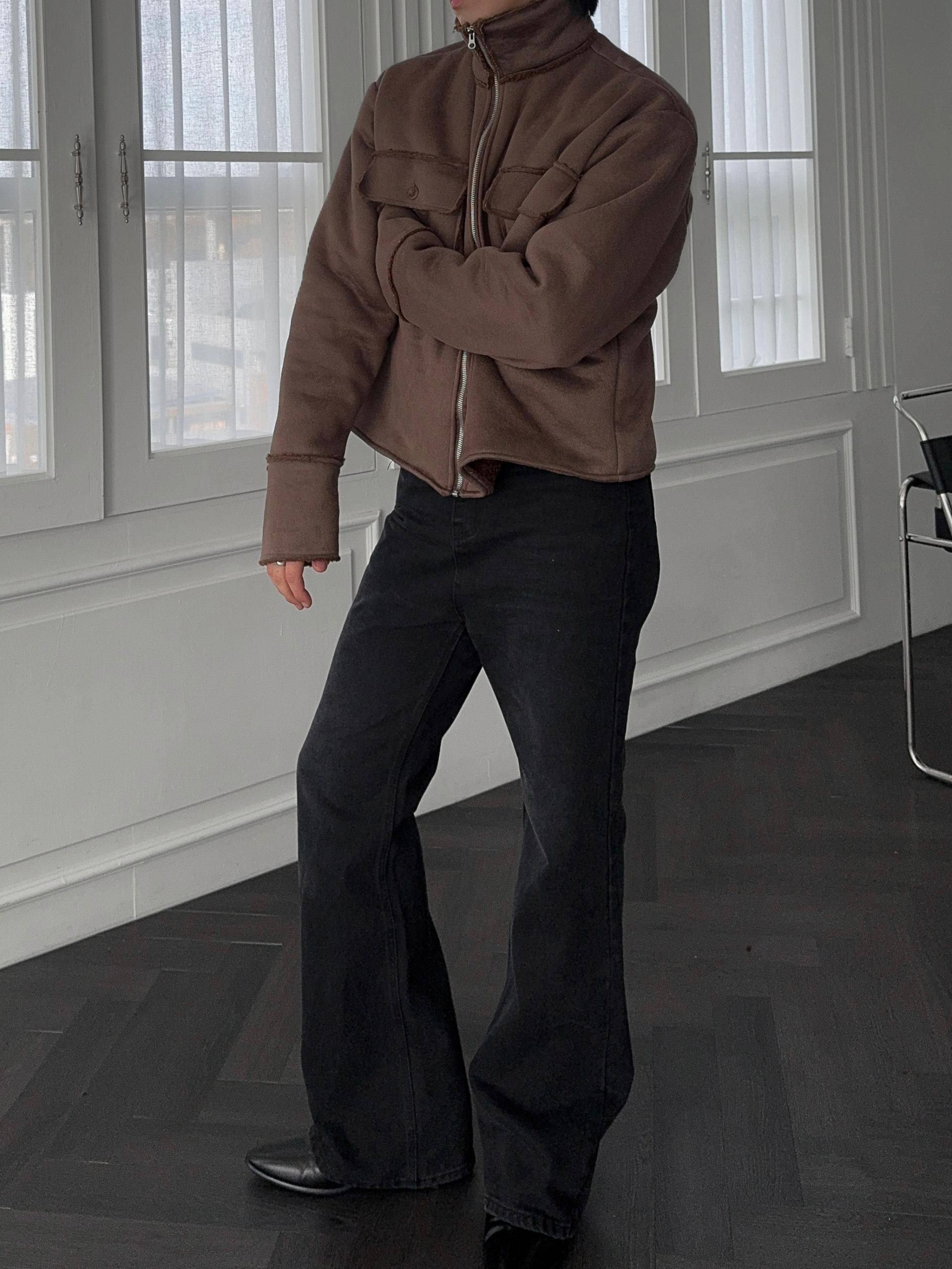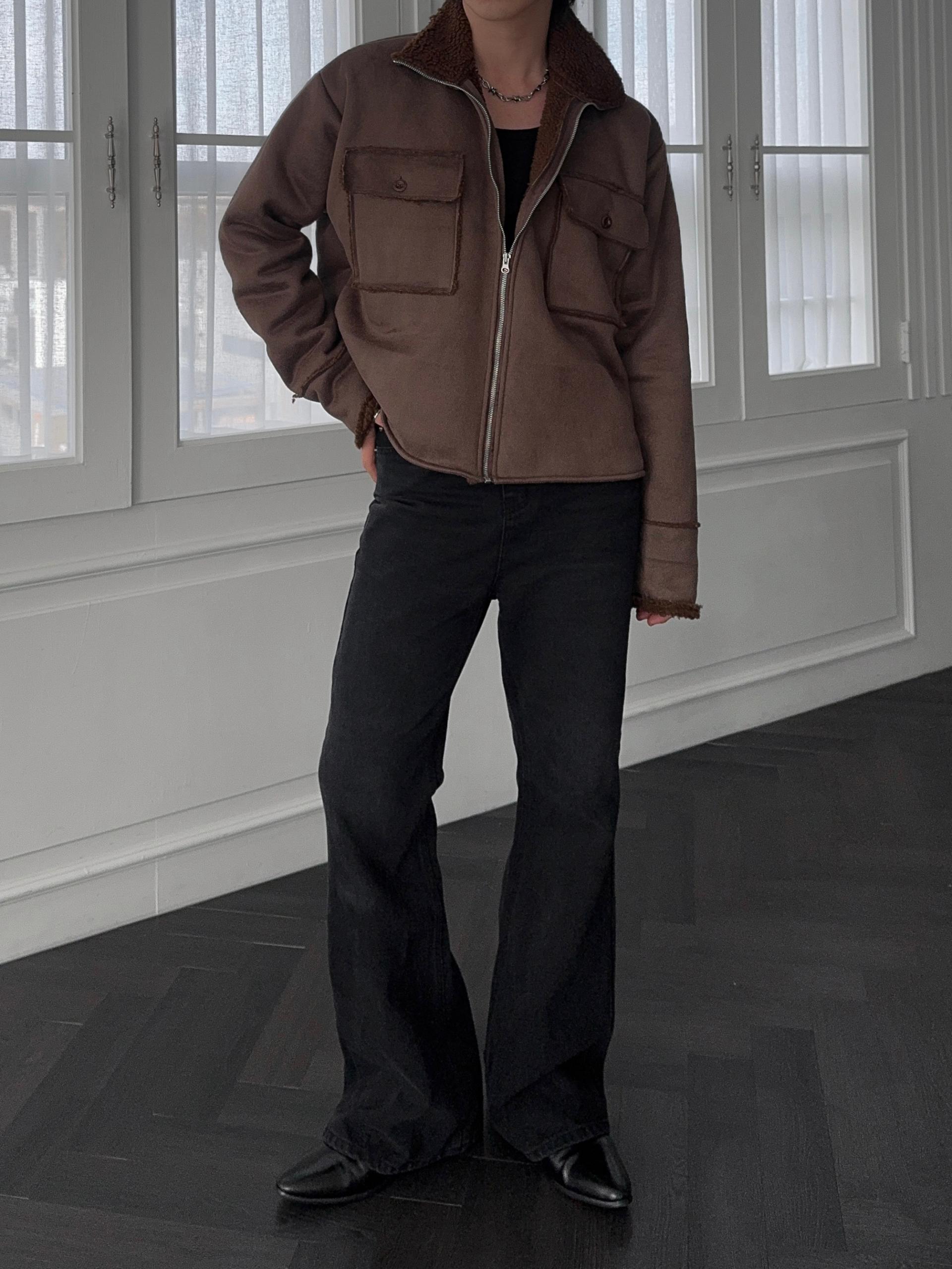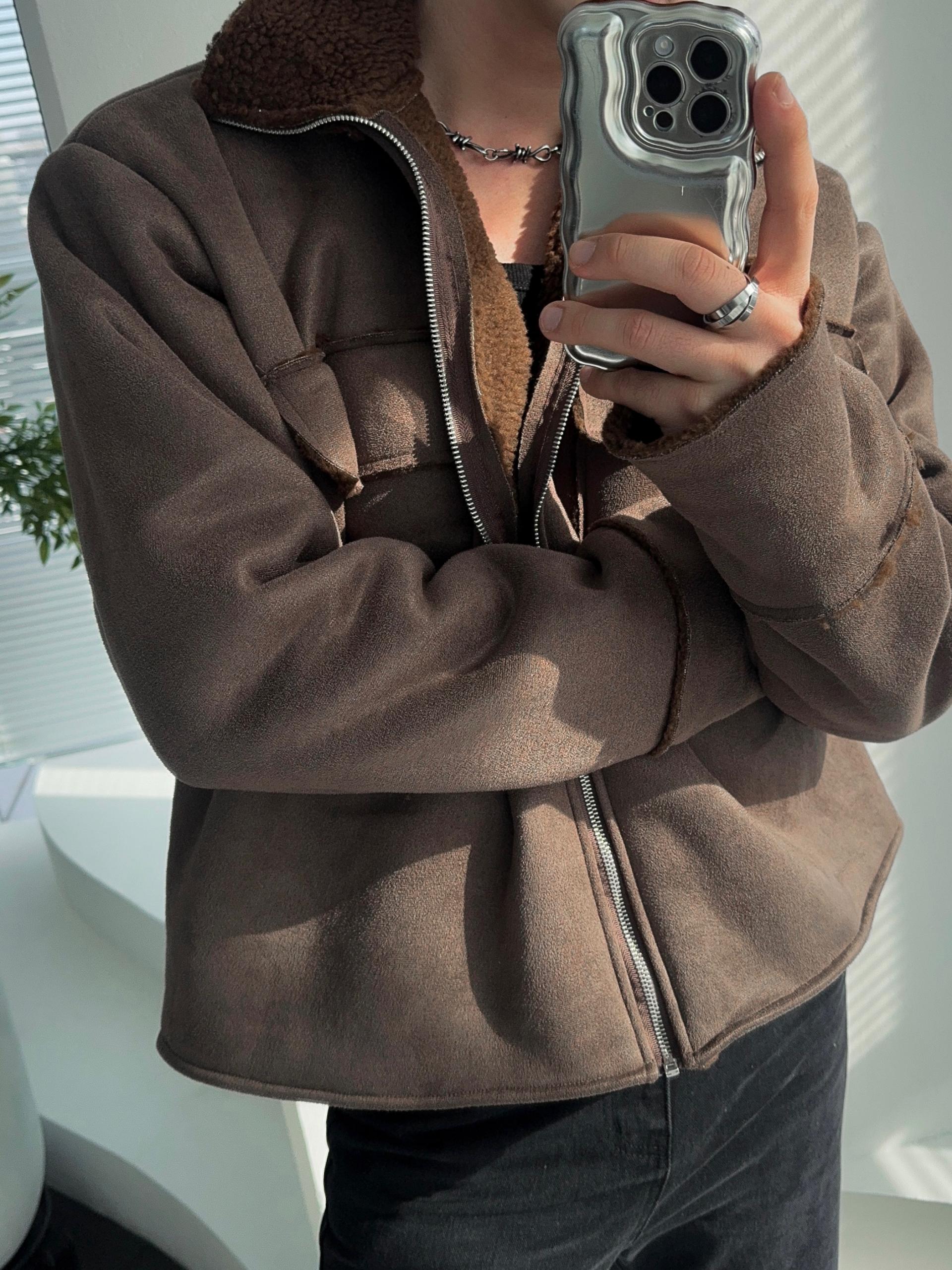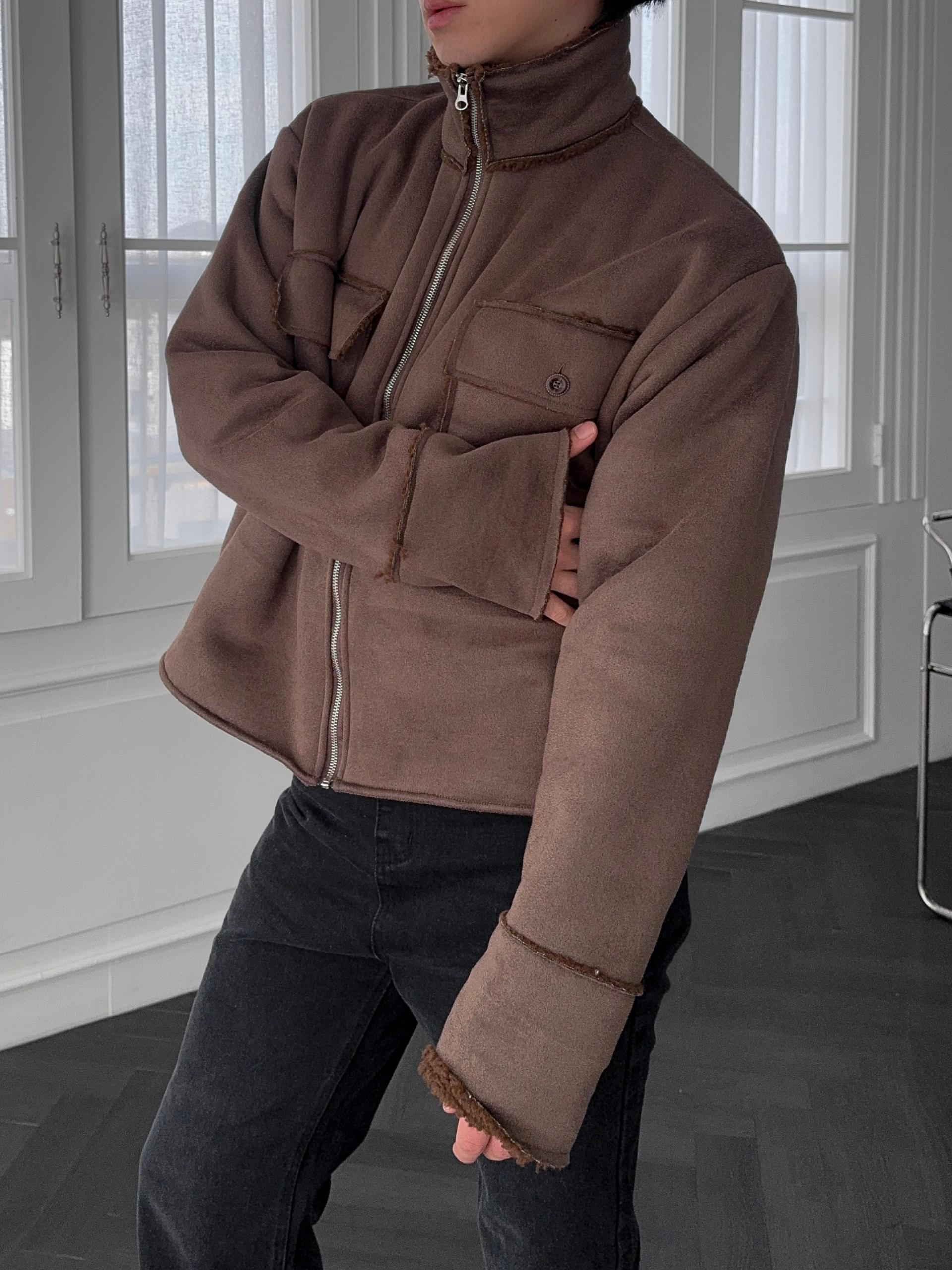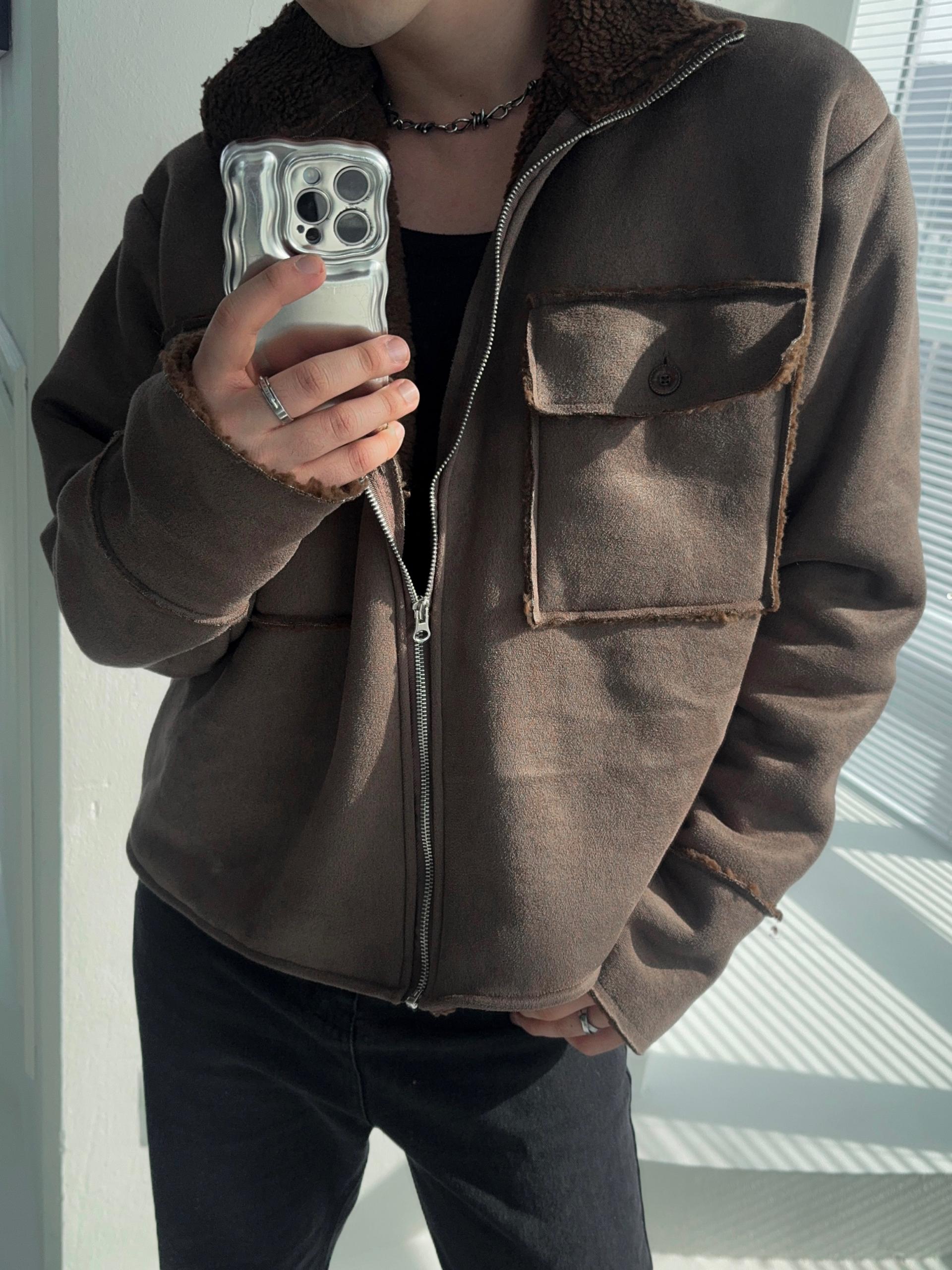 -부드러운 스웨이드 소재로 제작된 무스탕 자켓