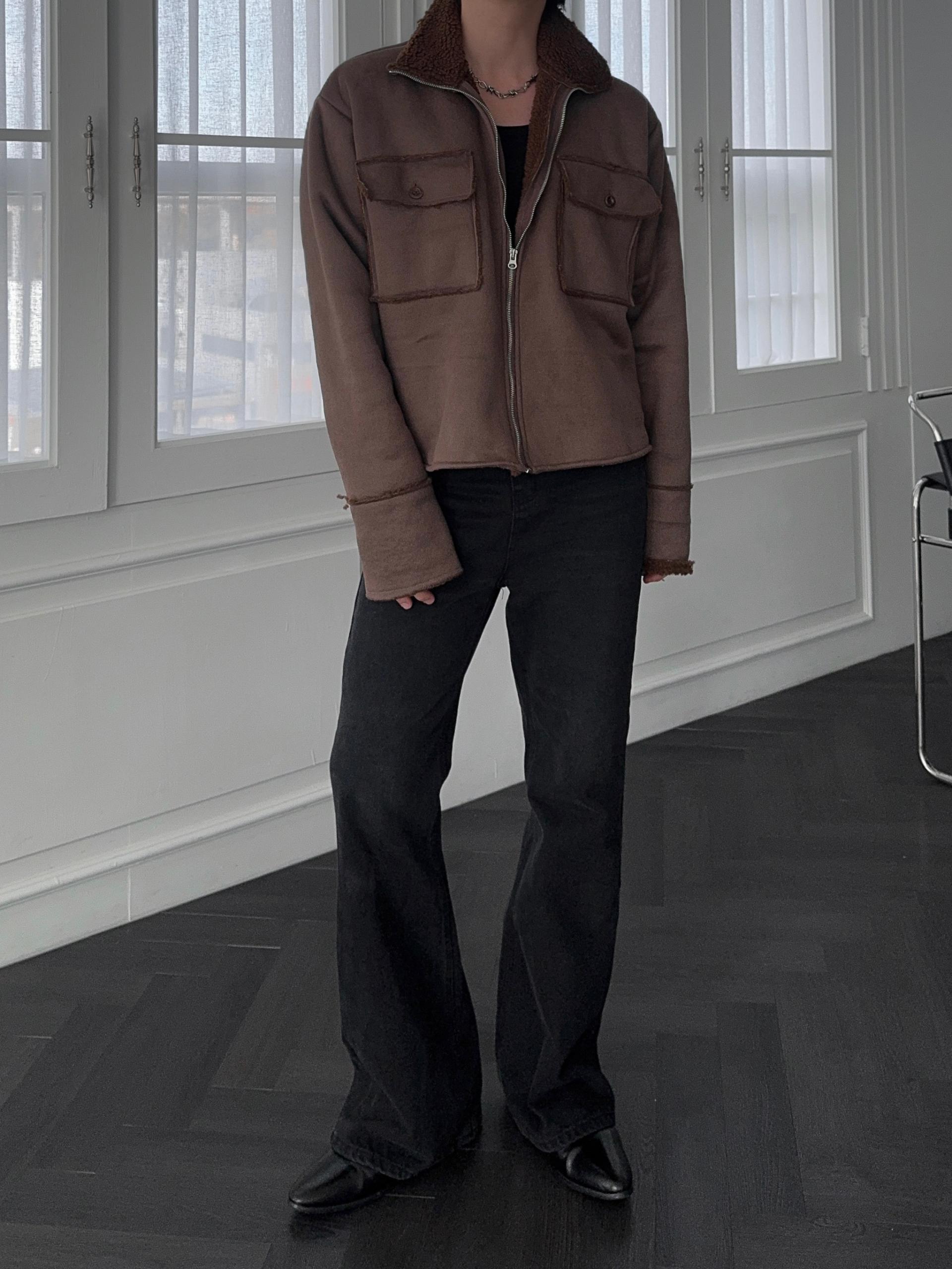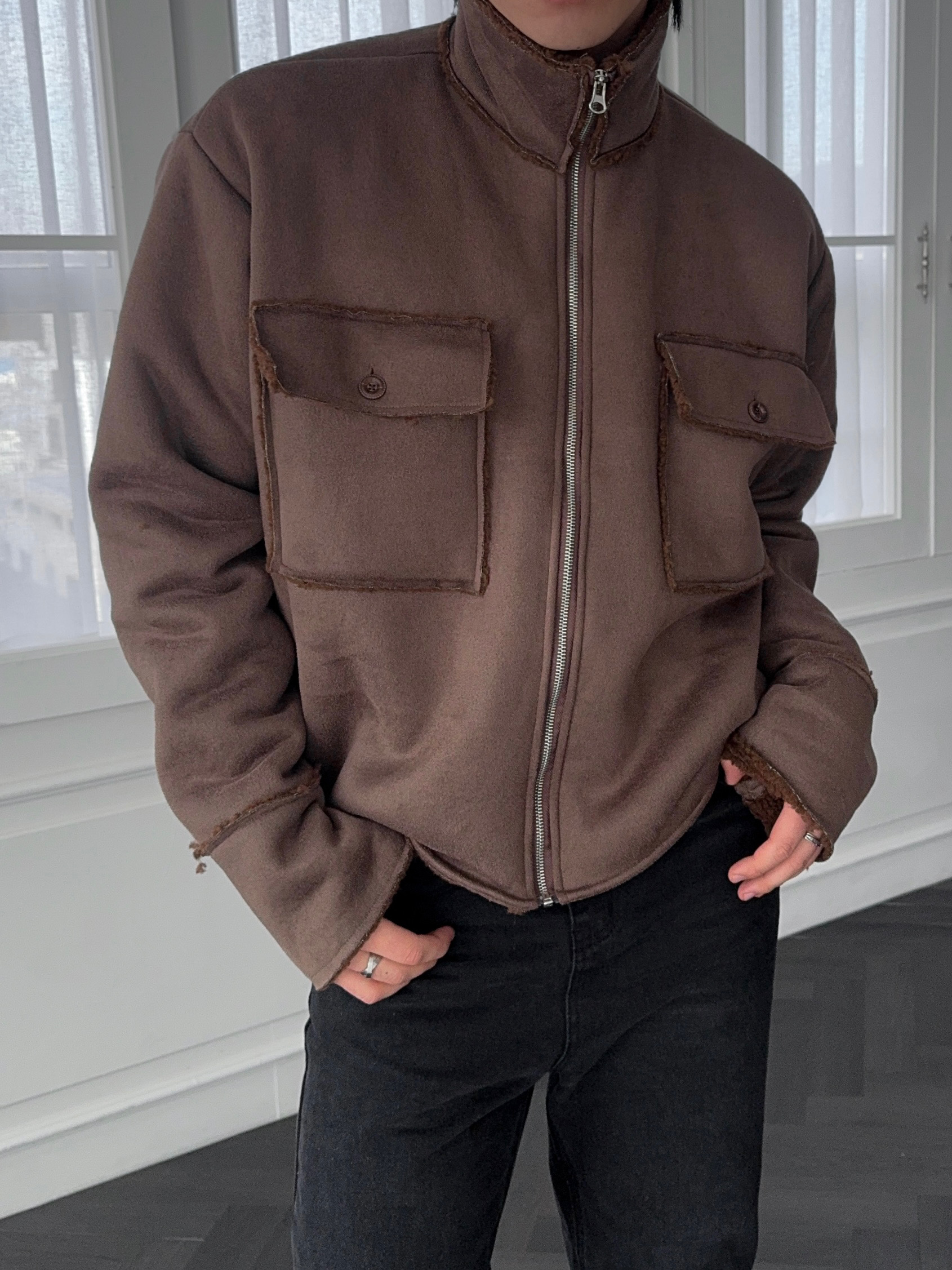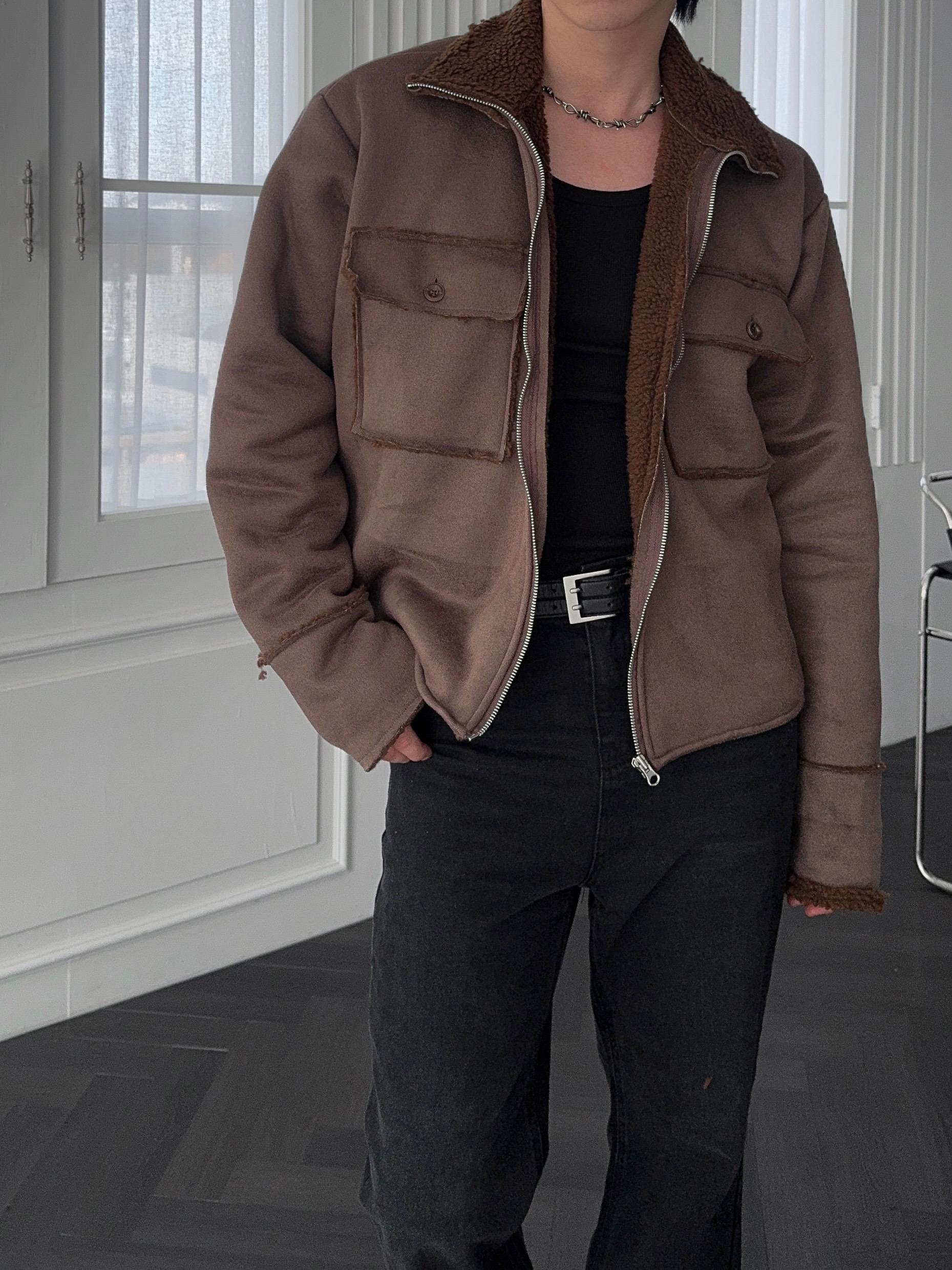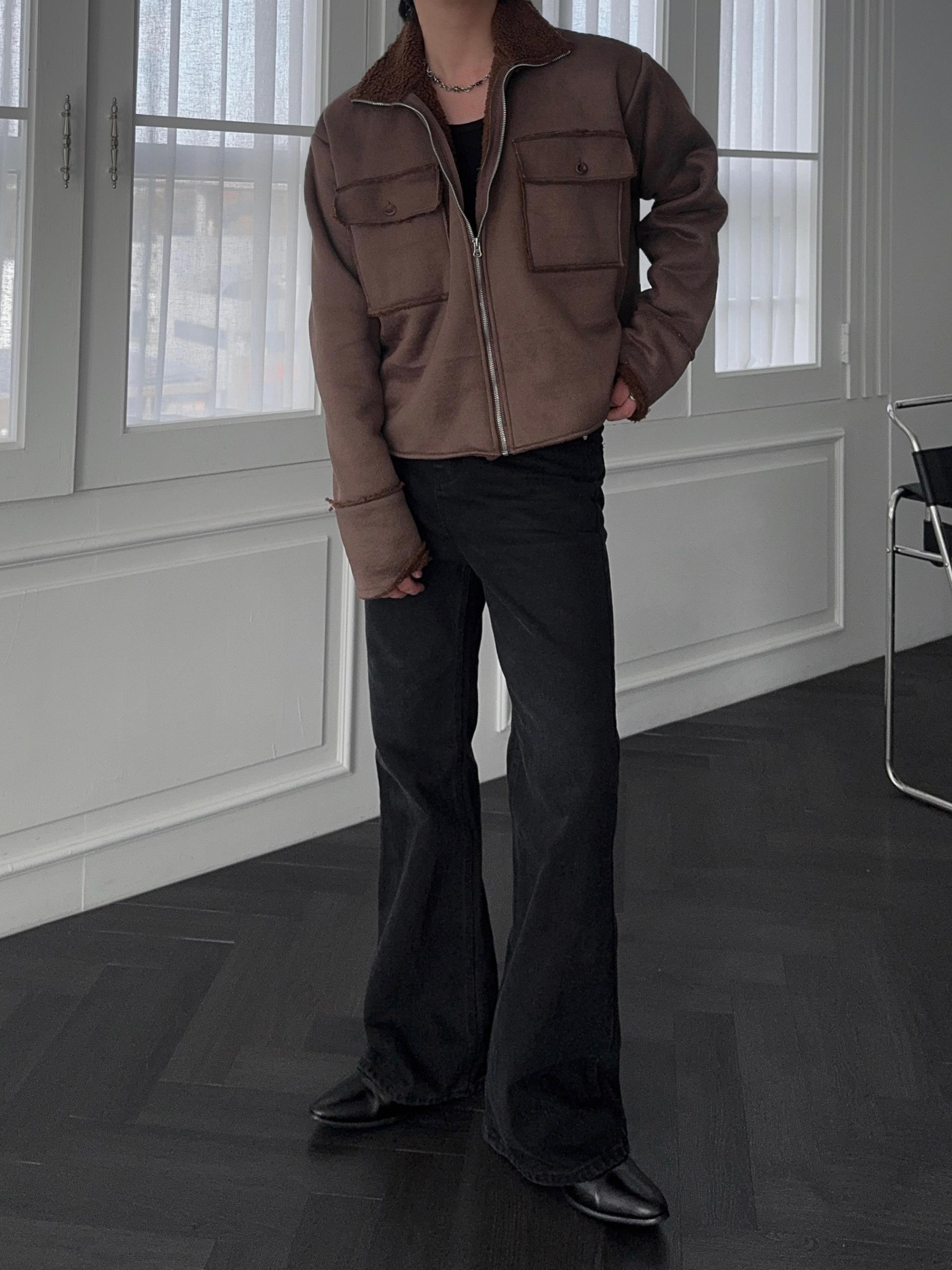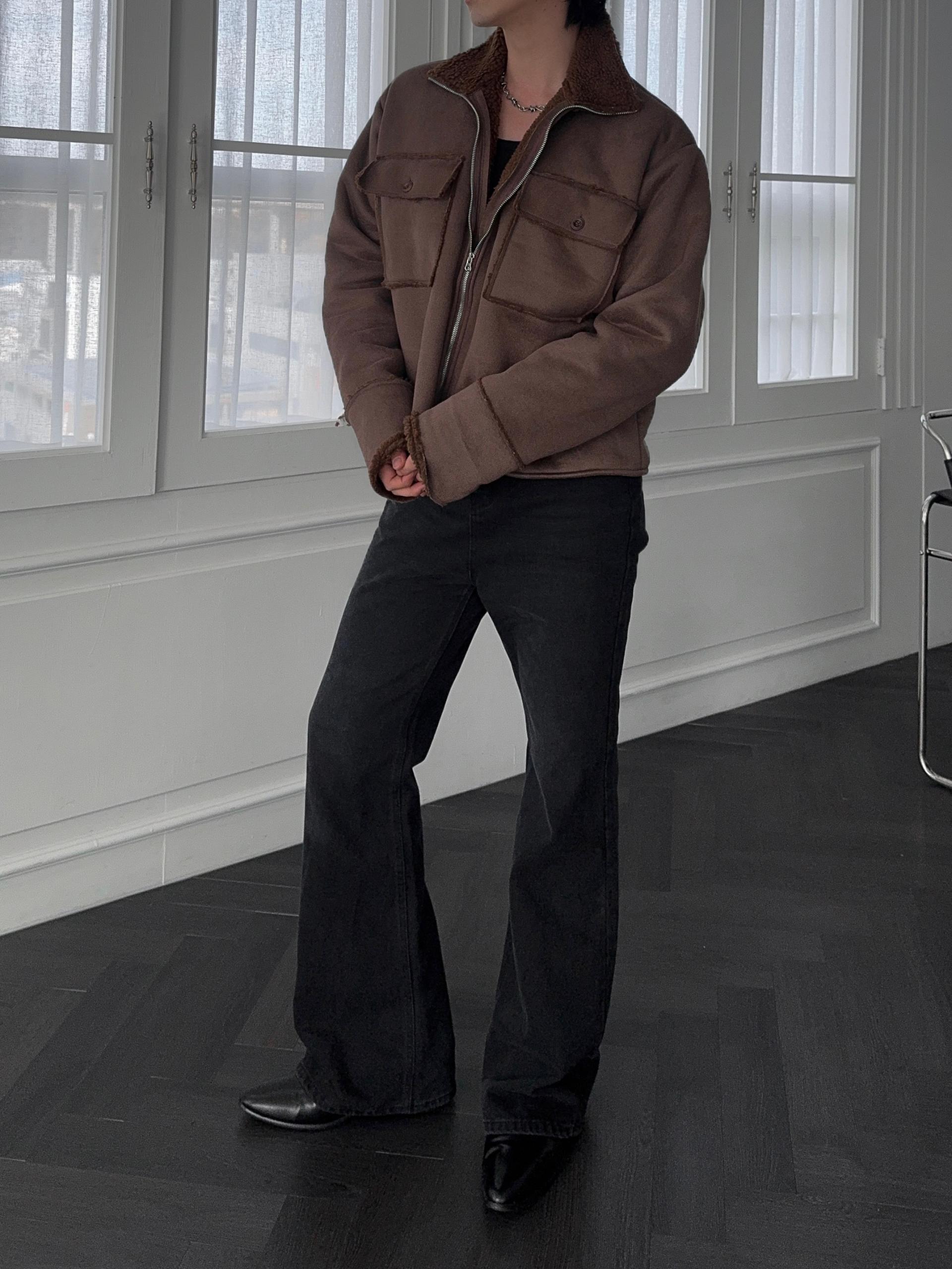-부드러운 스웨이드 소재로 제작된 무스탕 자켓