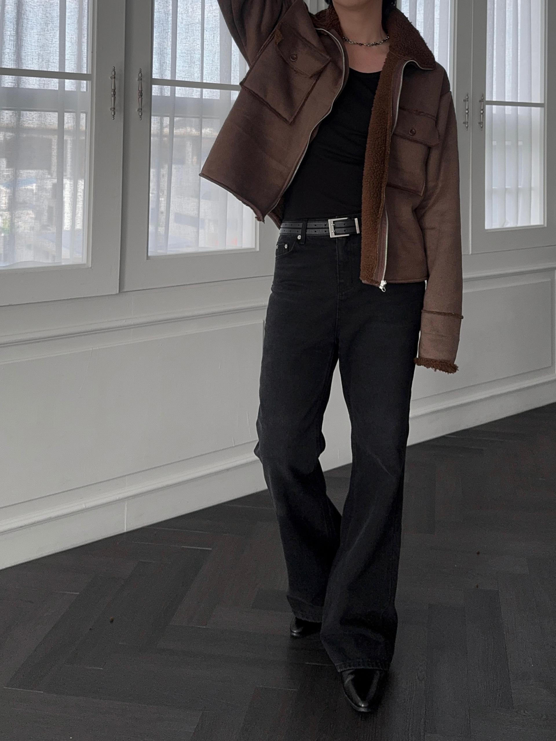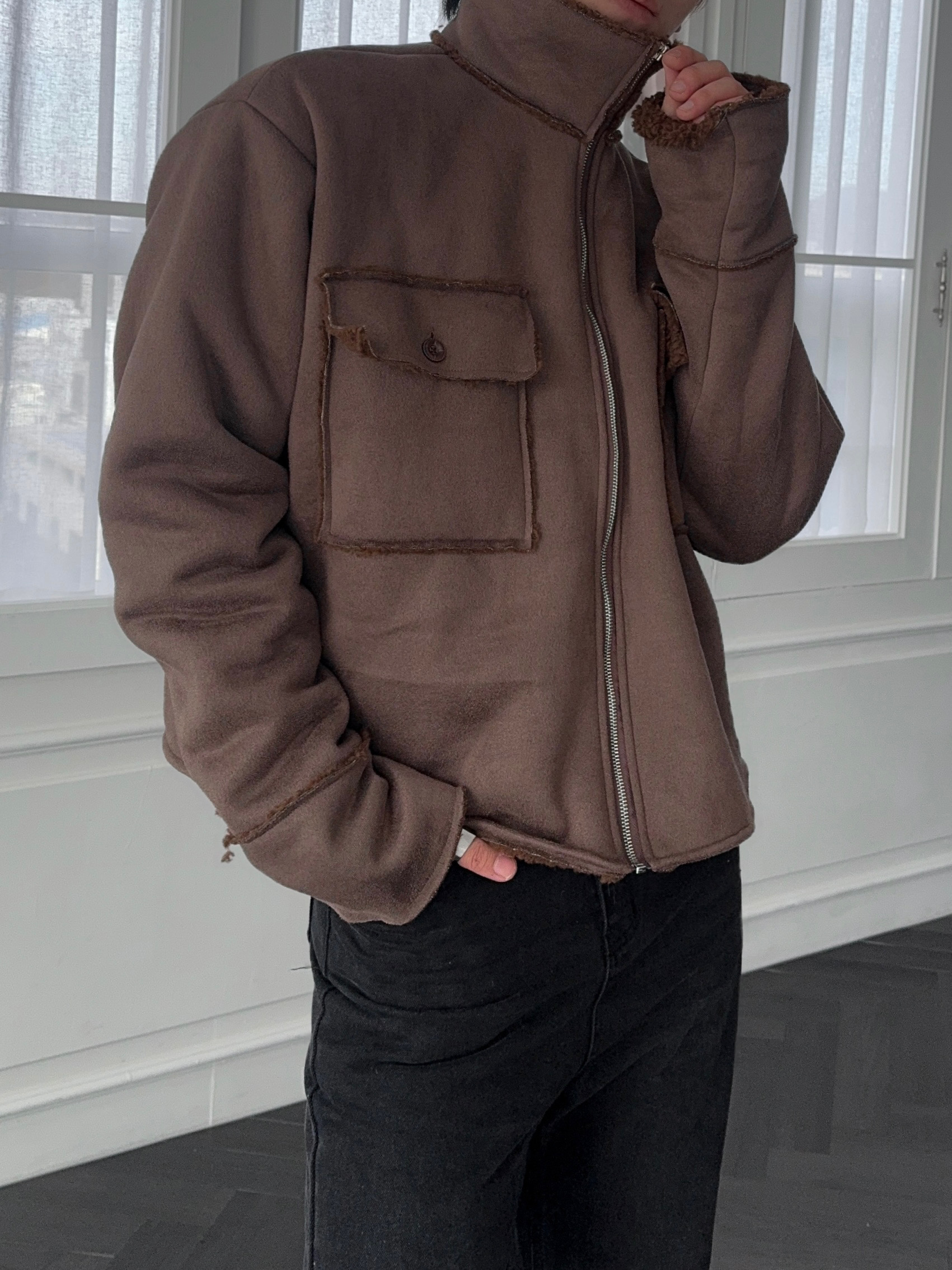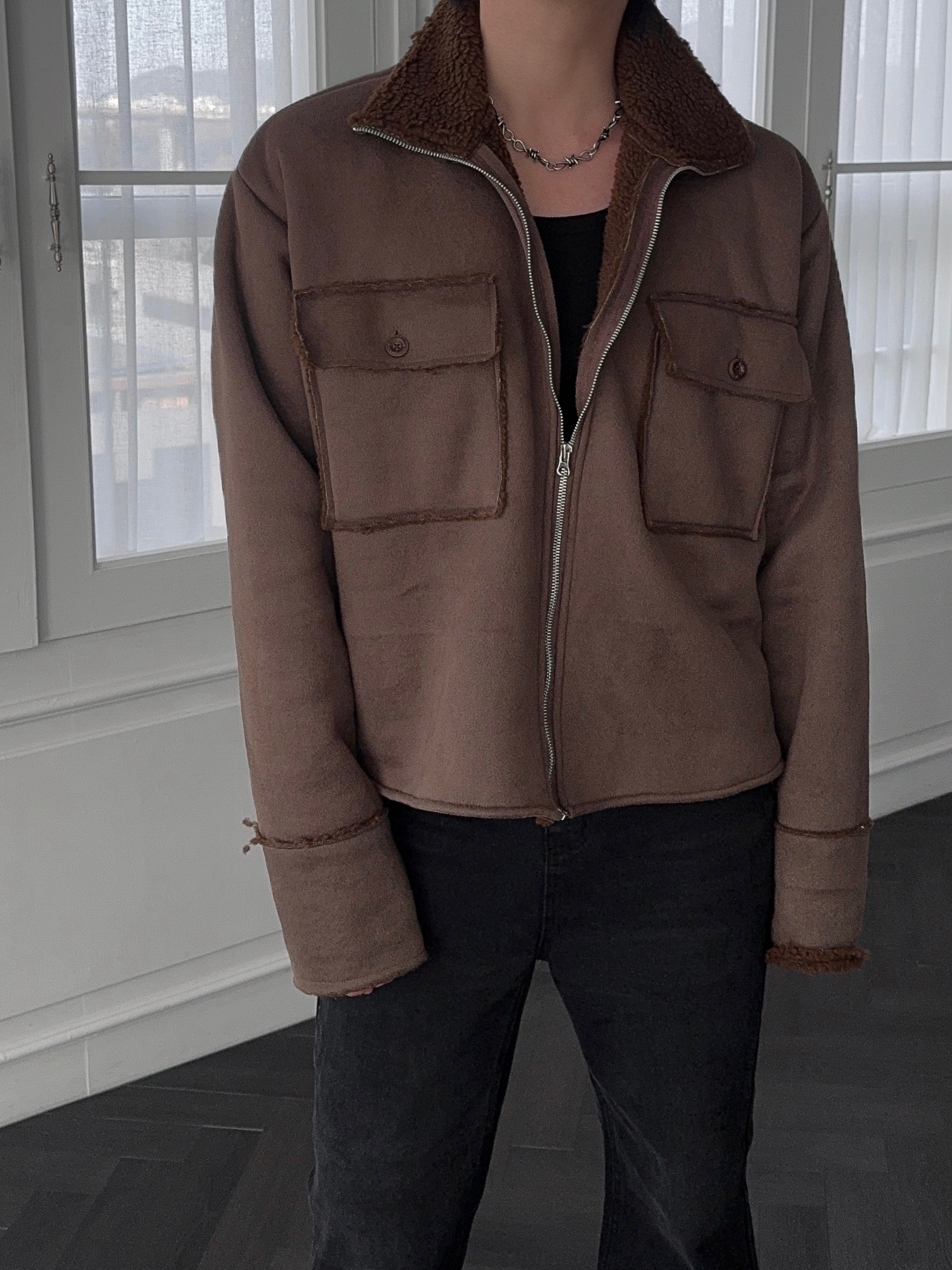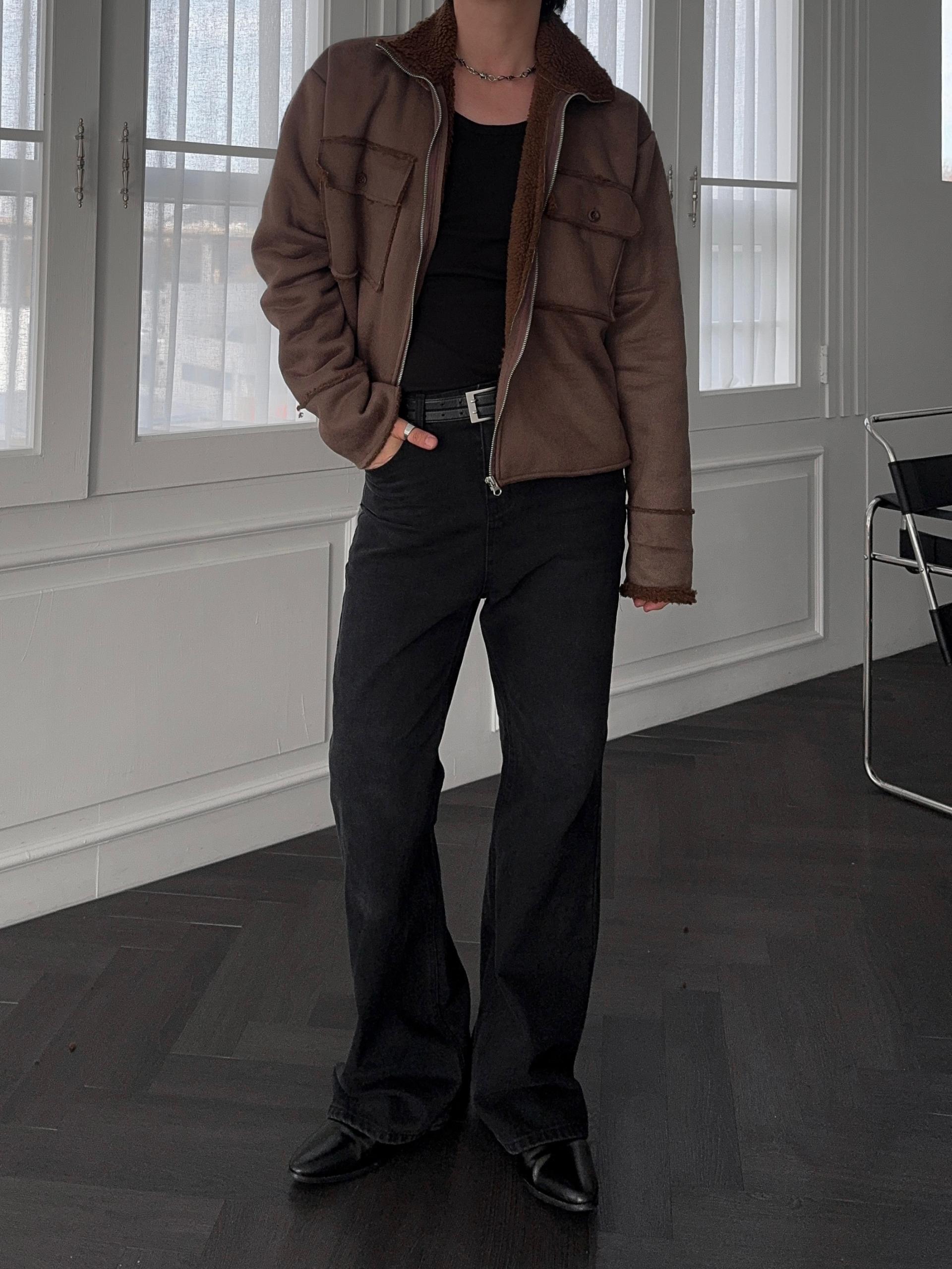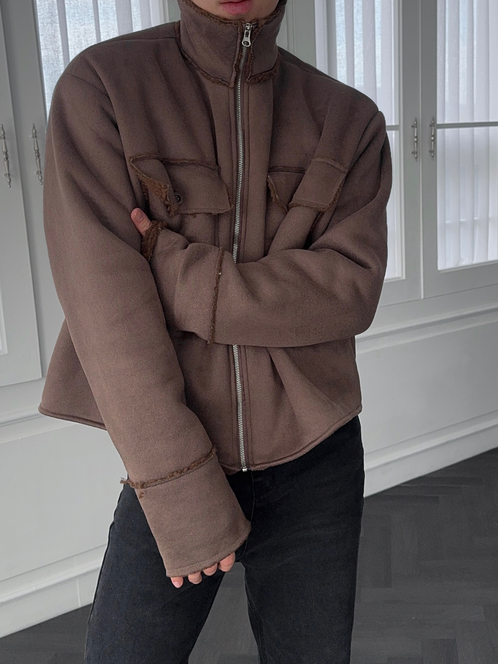 -부드러운 스웨이드 소재로 제작된 무스탕 자켓
