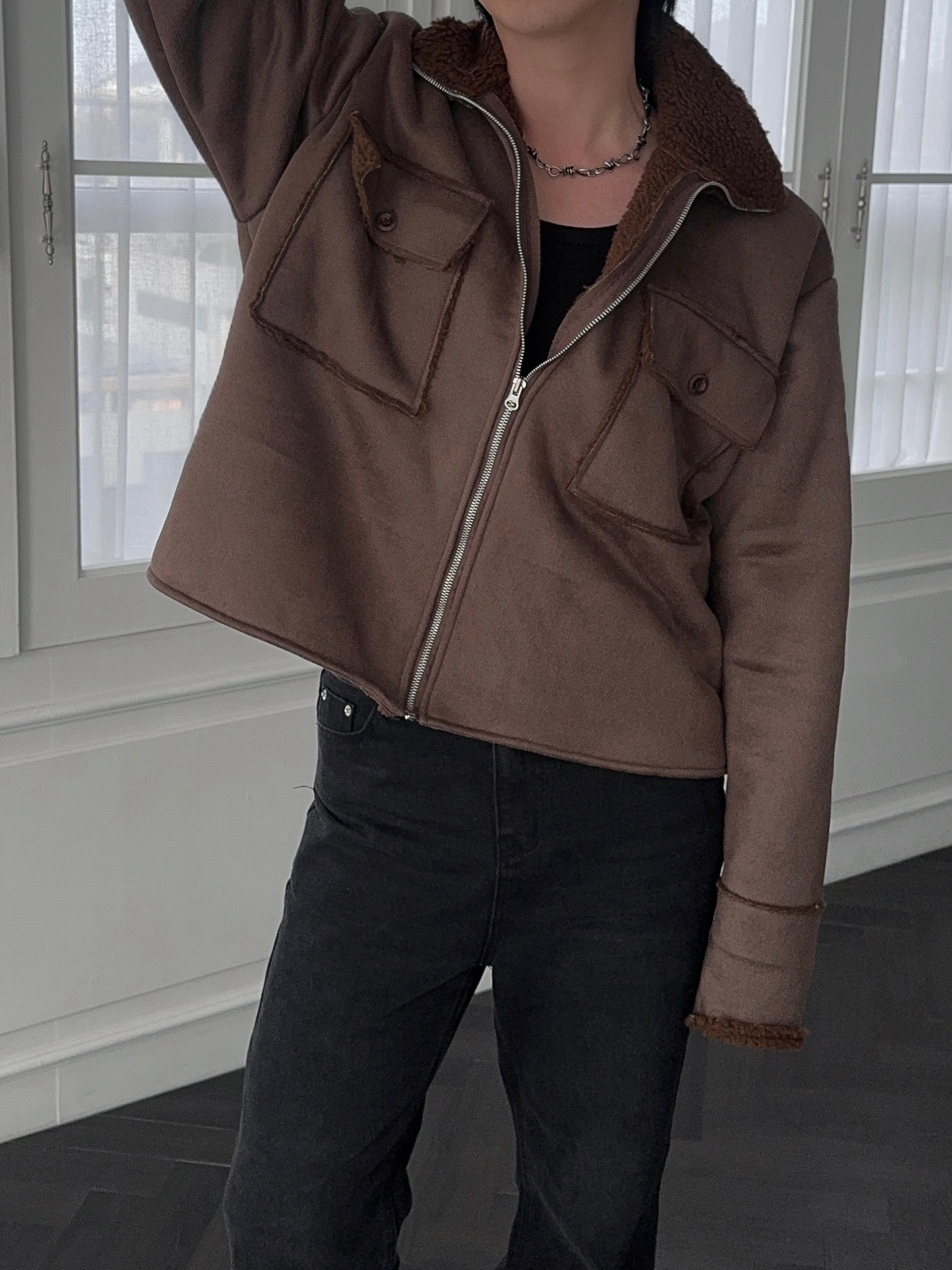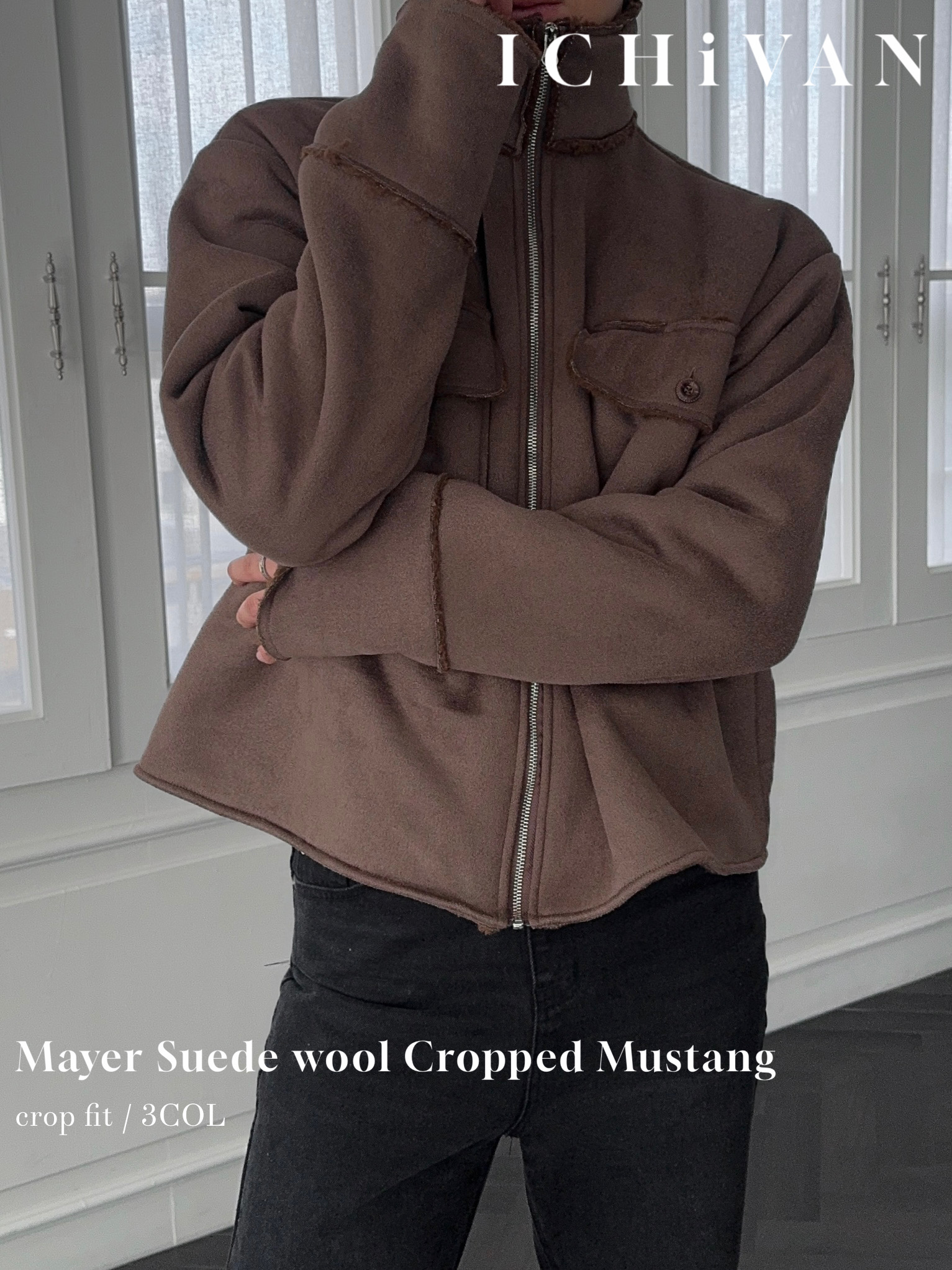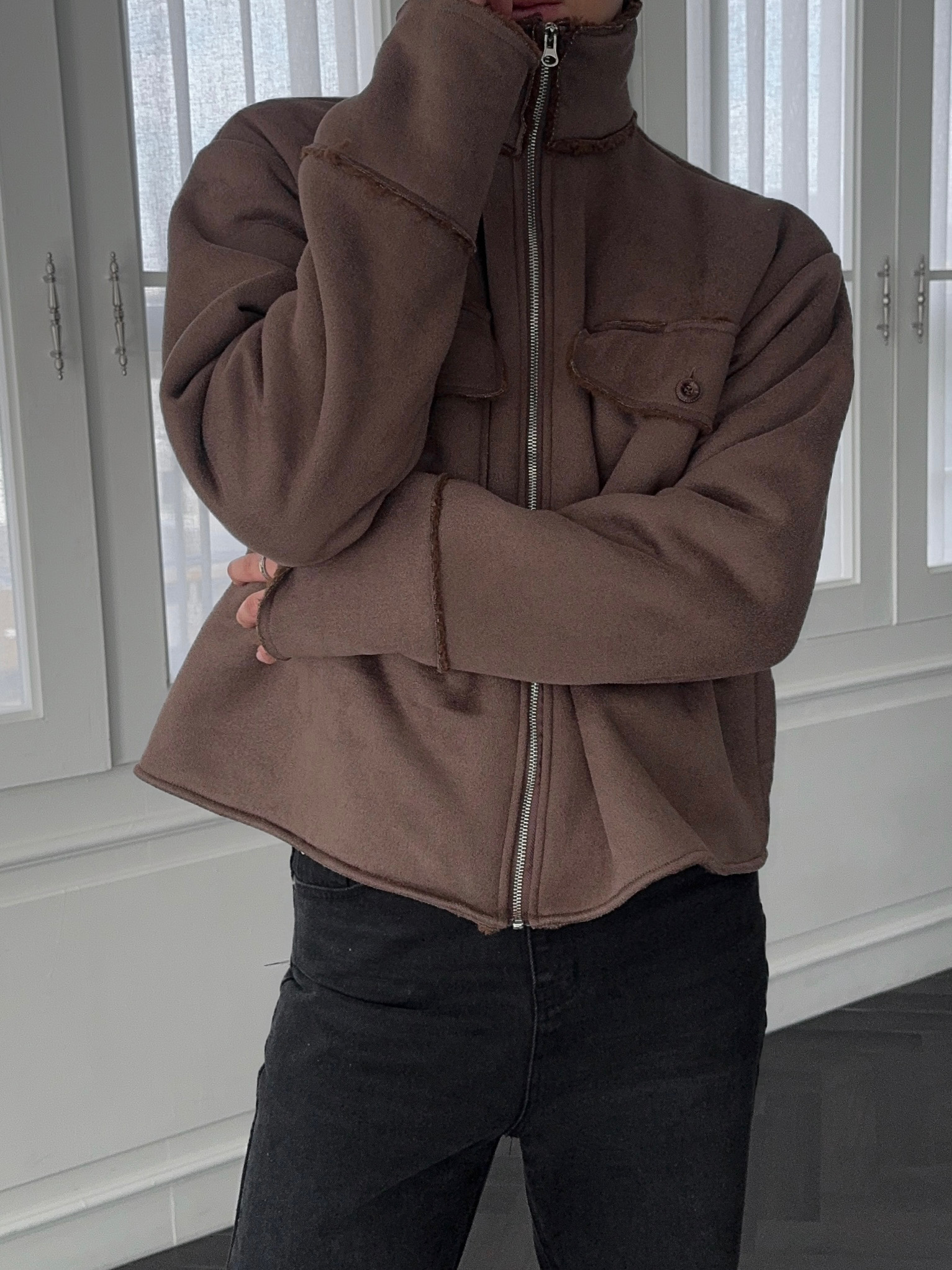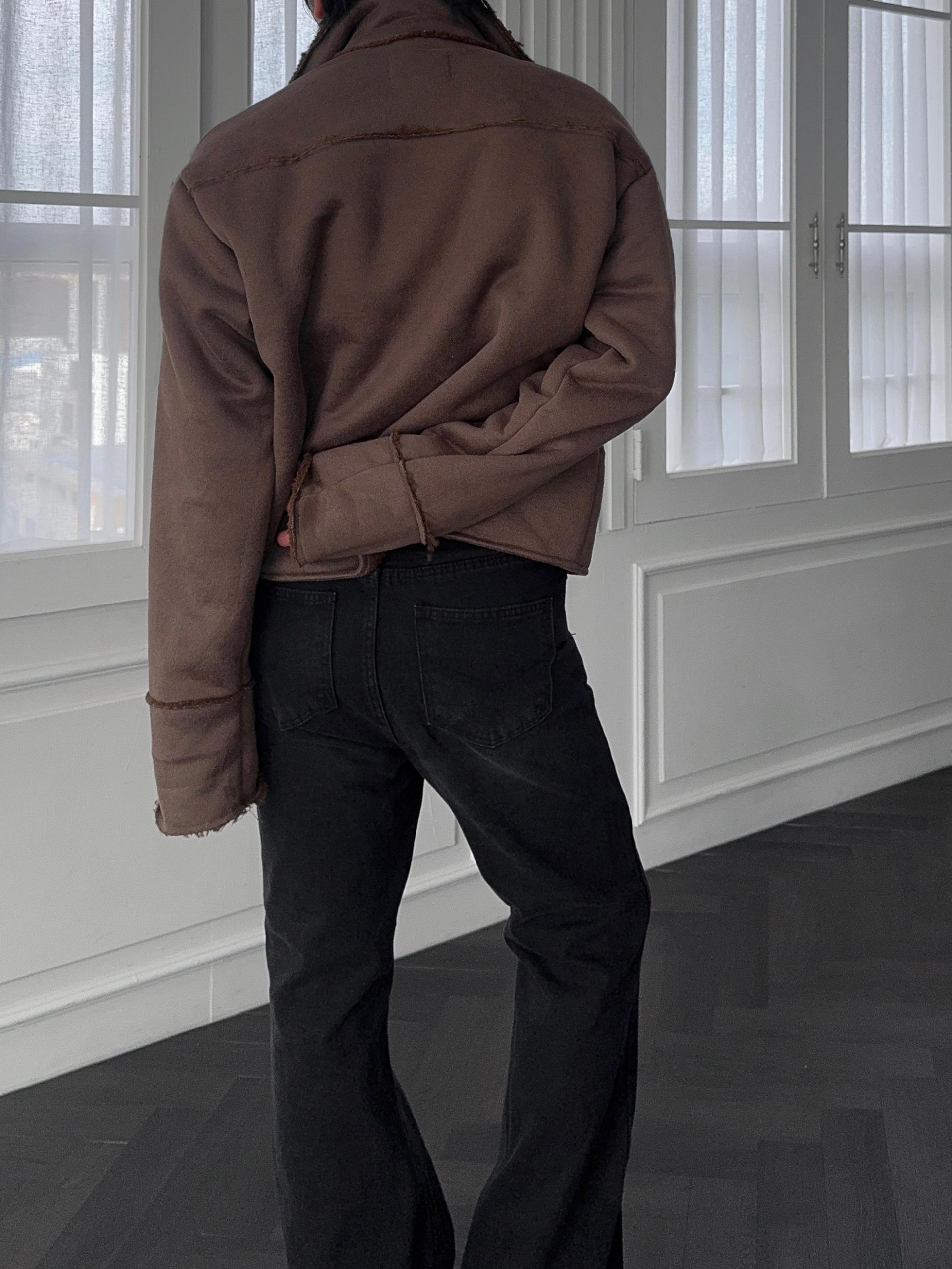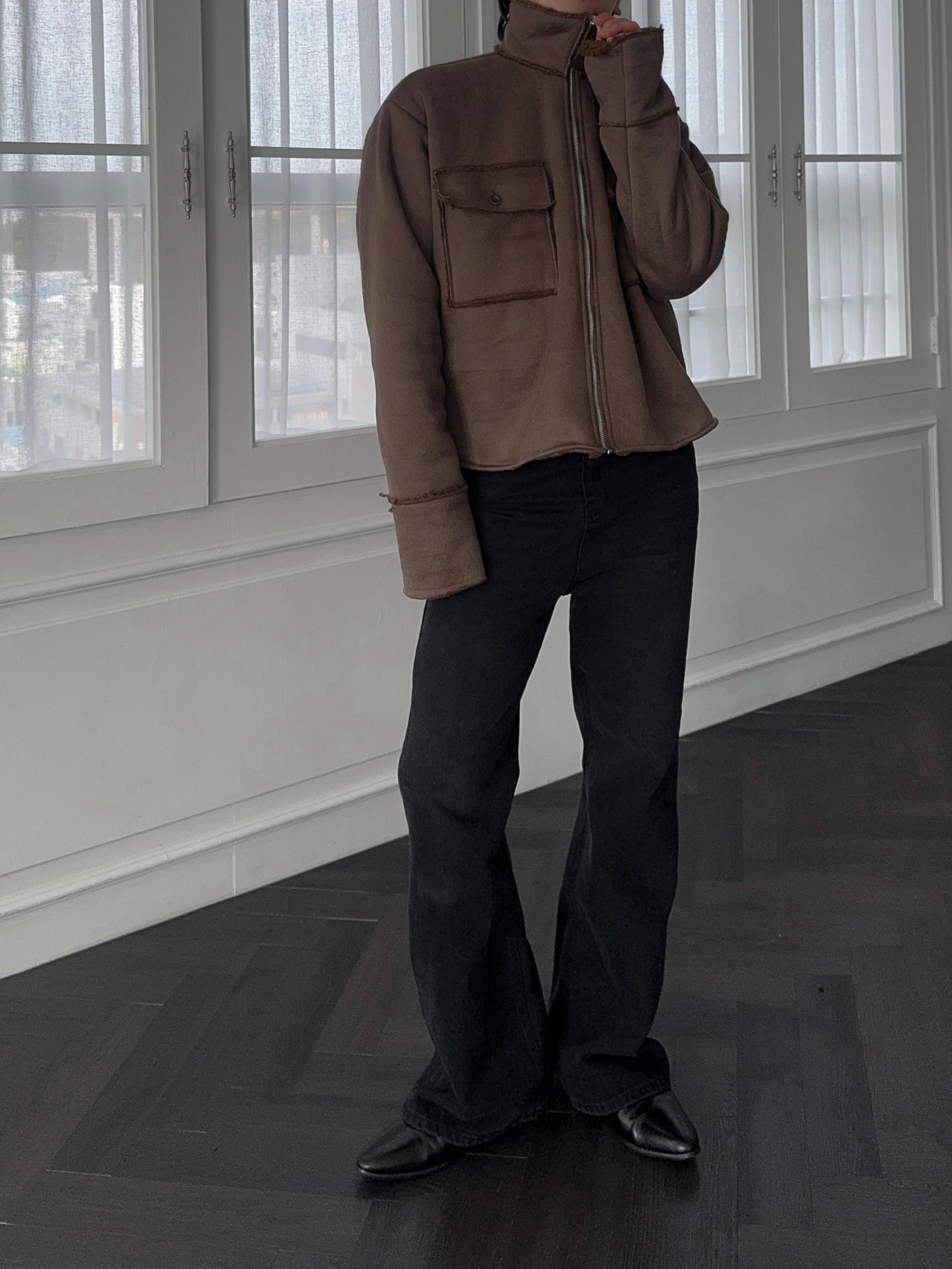 -부드러운 스웨이드 소재로 제작된 무스탕 자켓