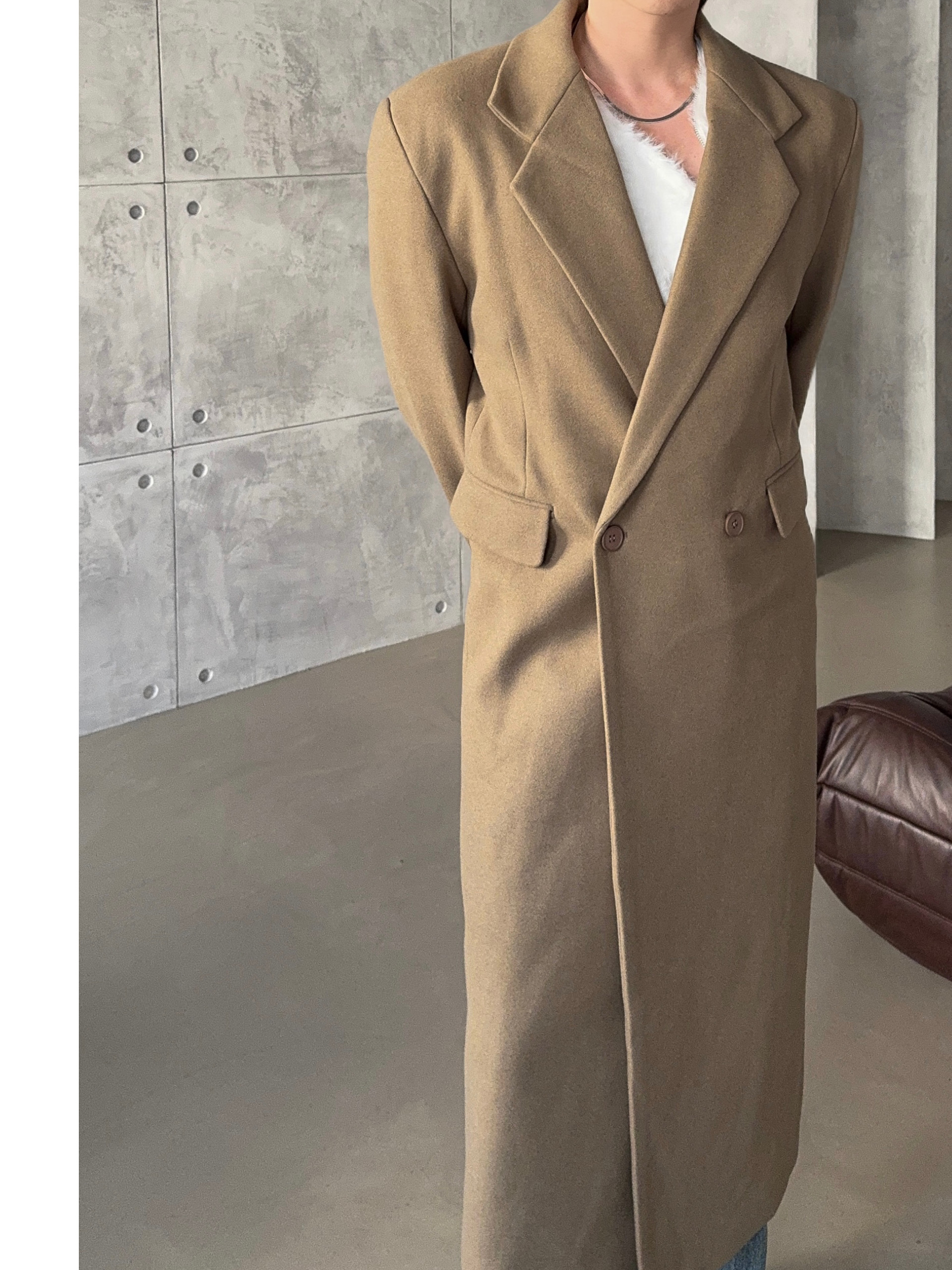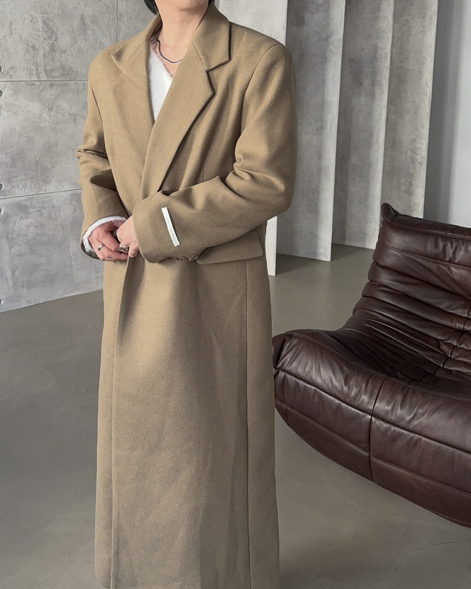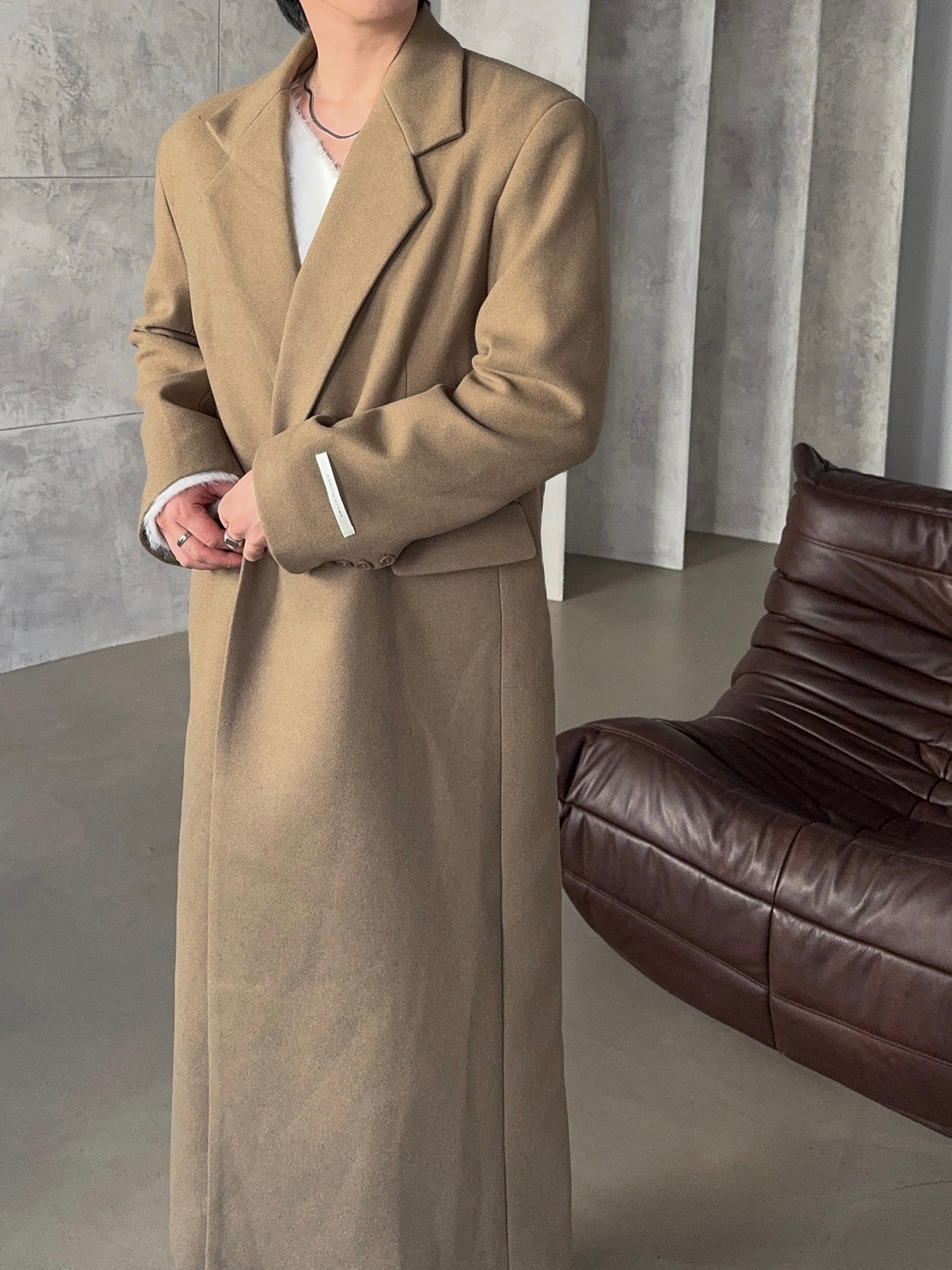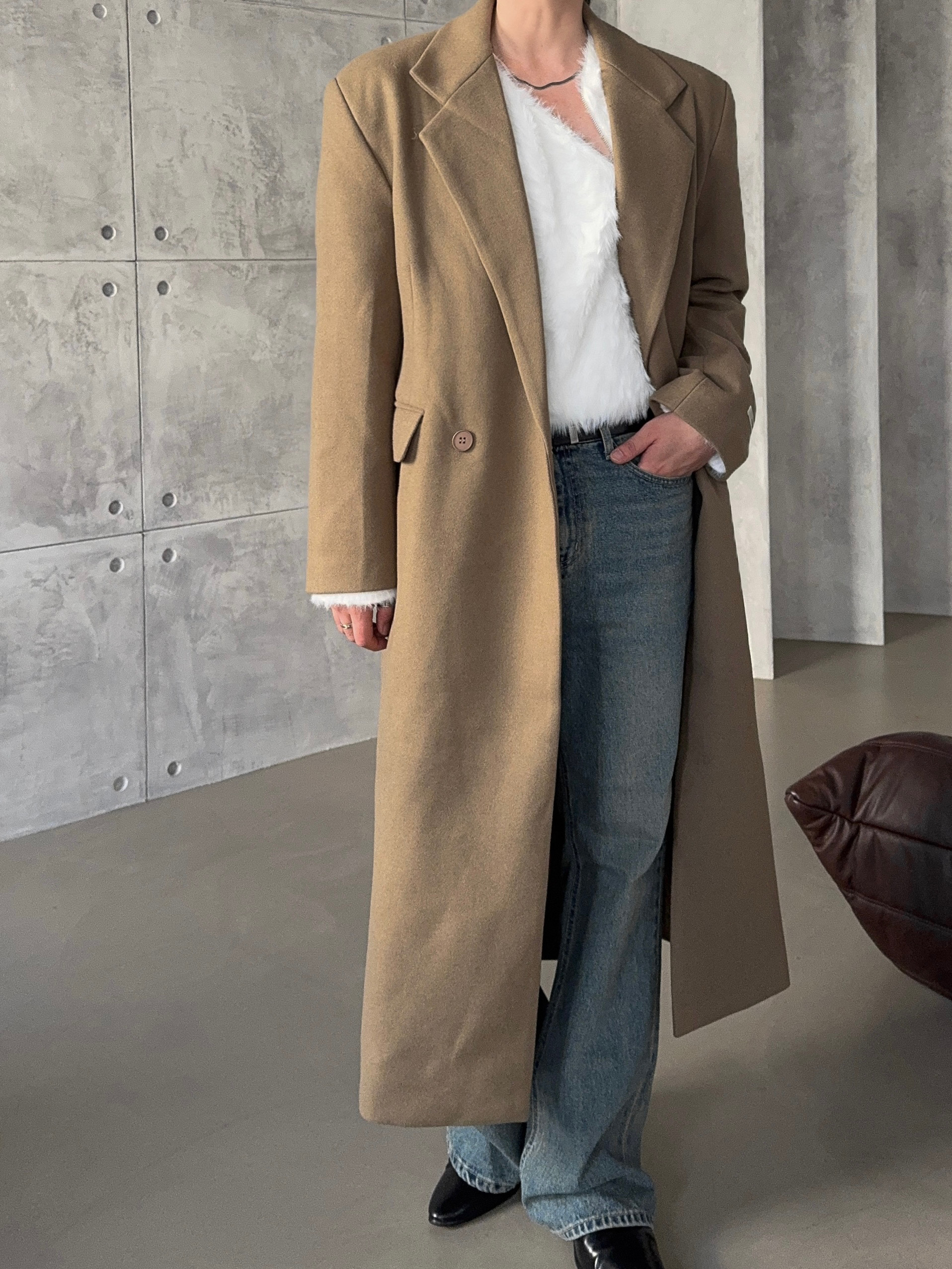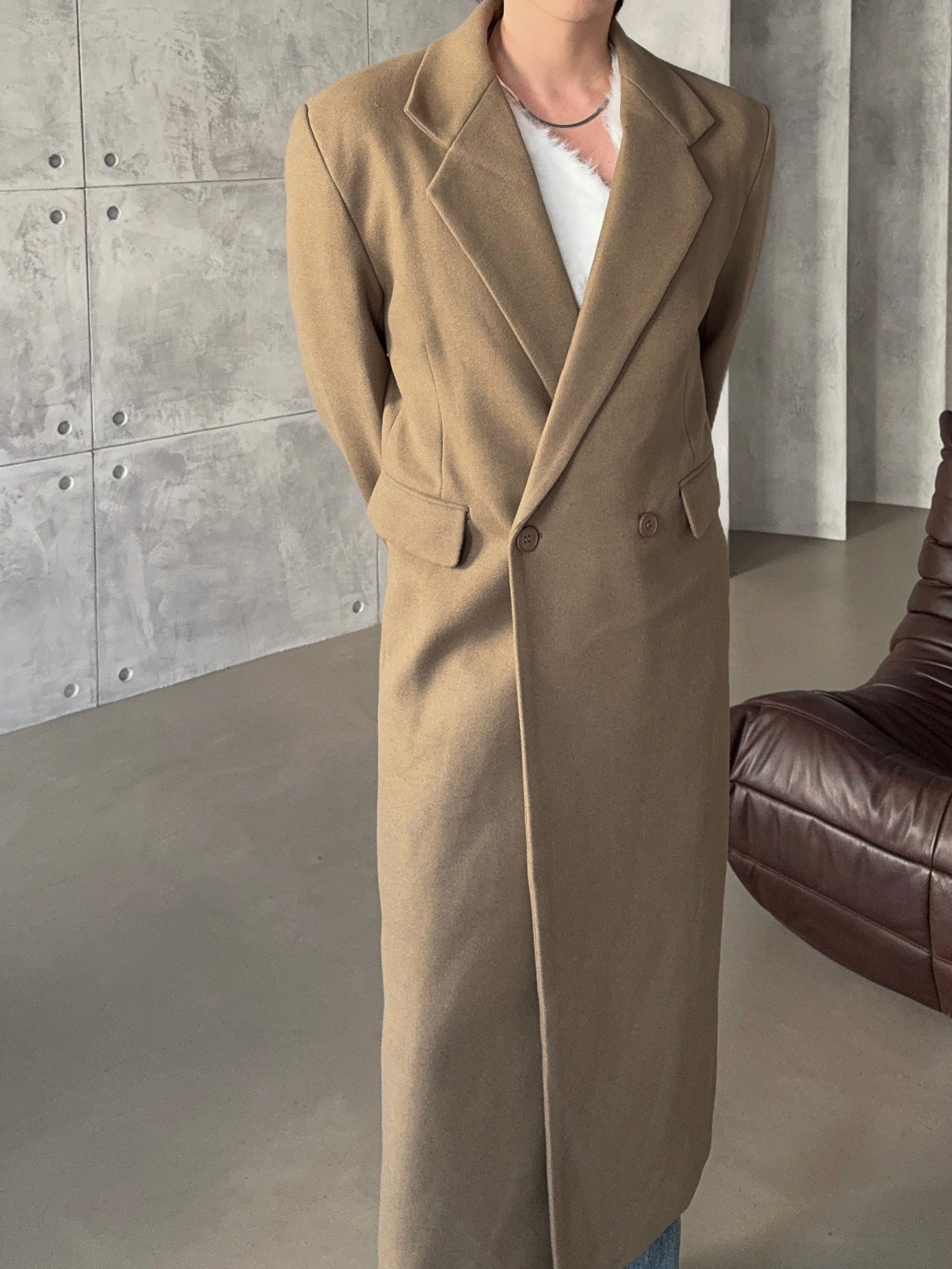-부드러운 소제로 제작된 맥시한 코트