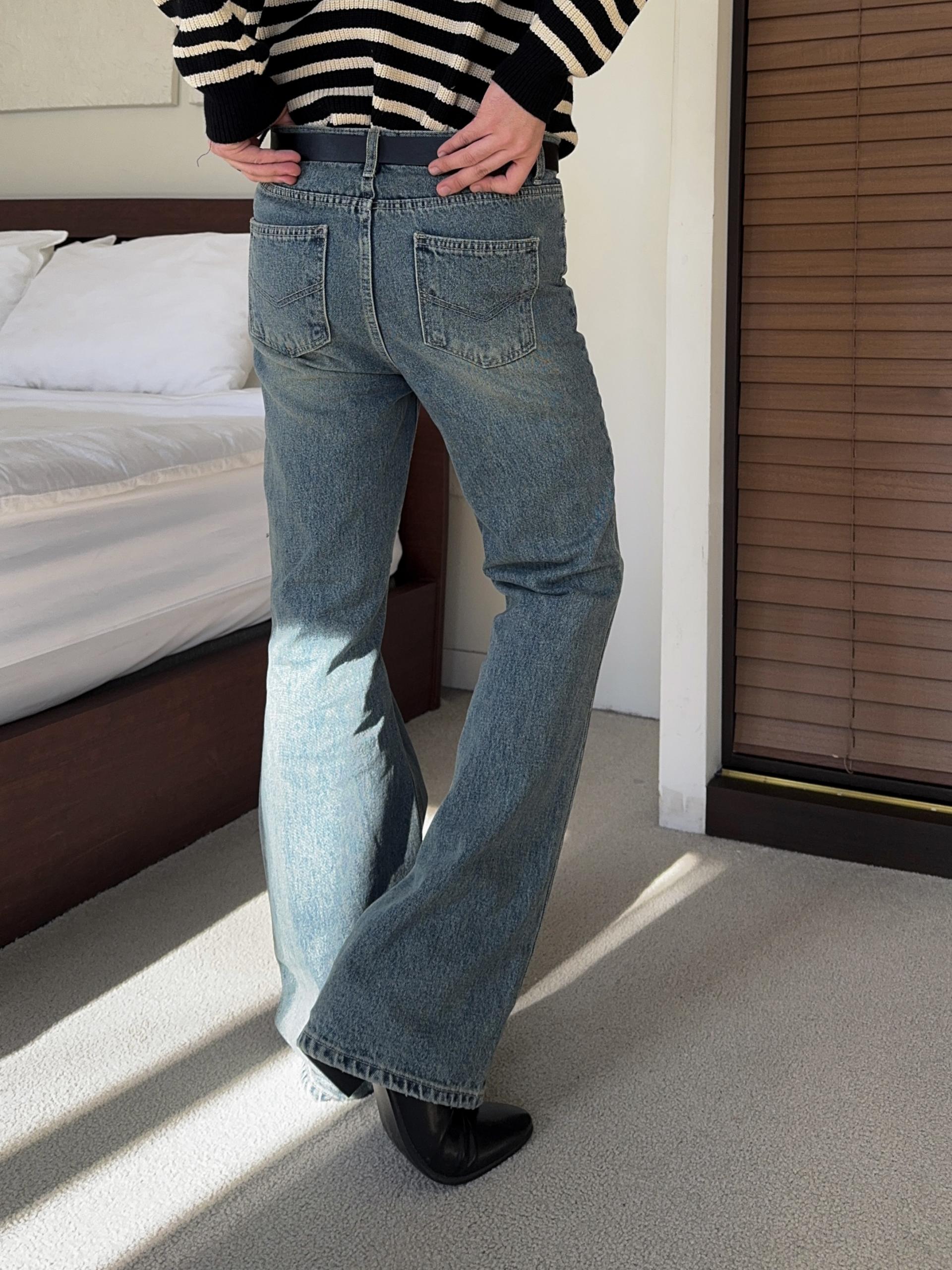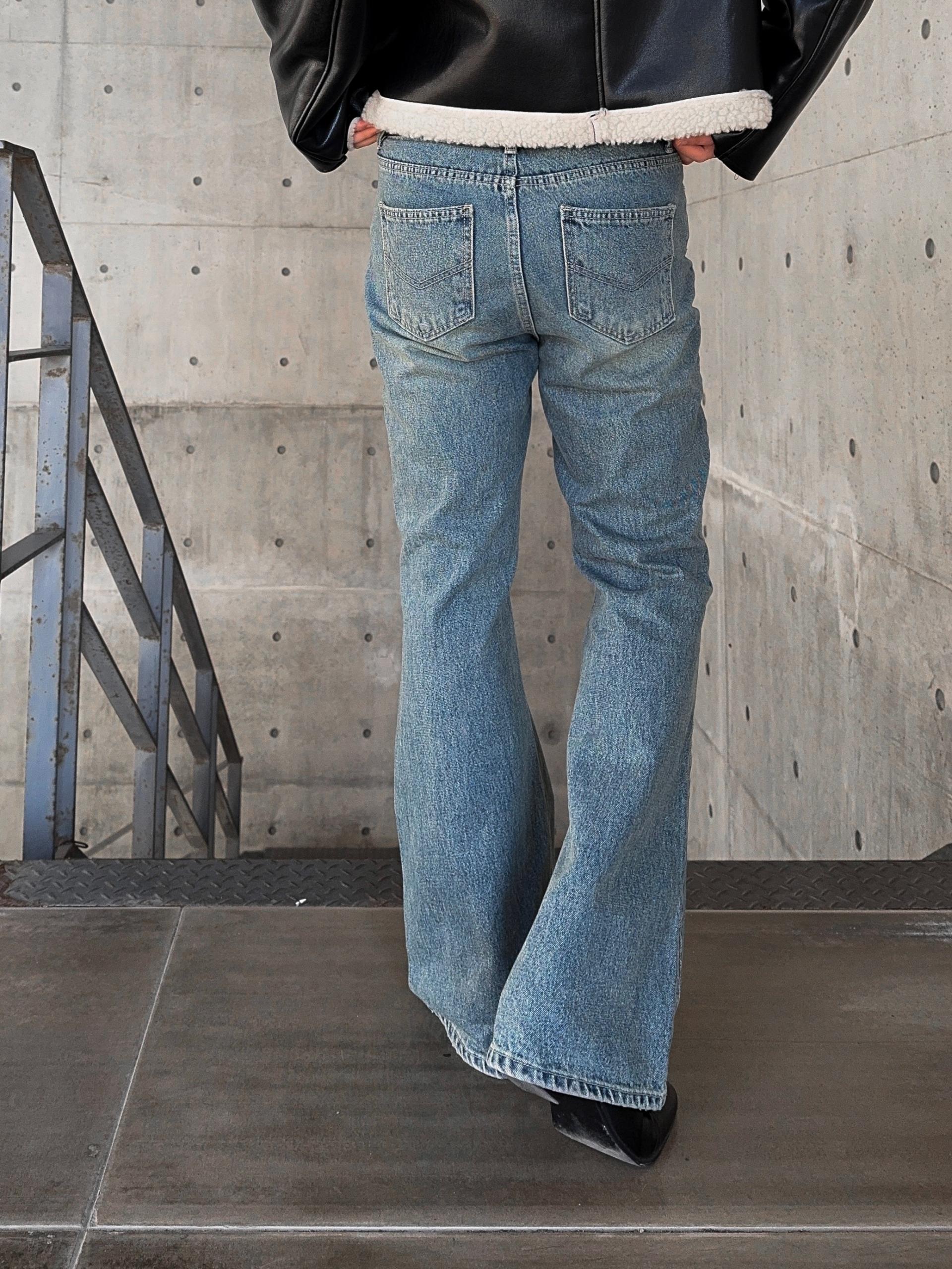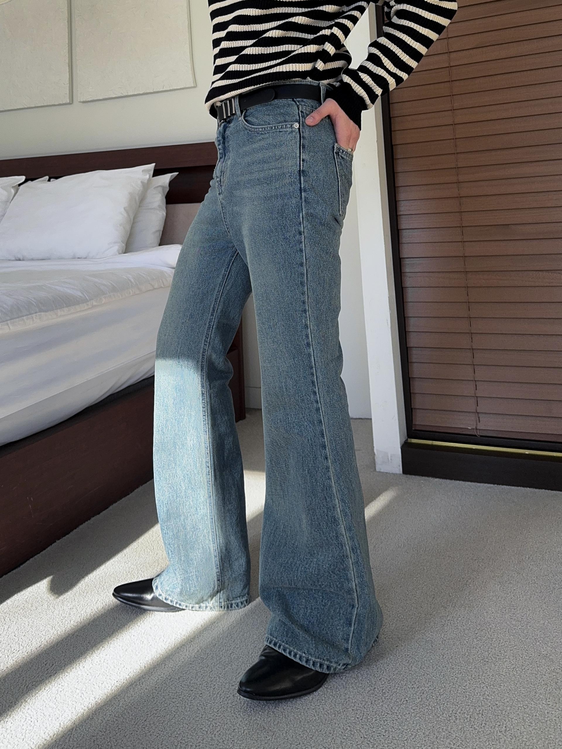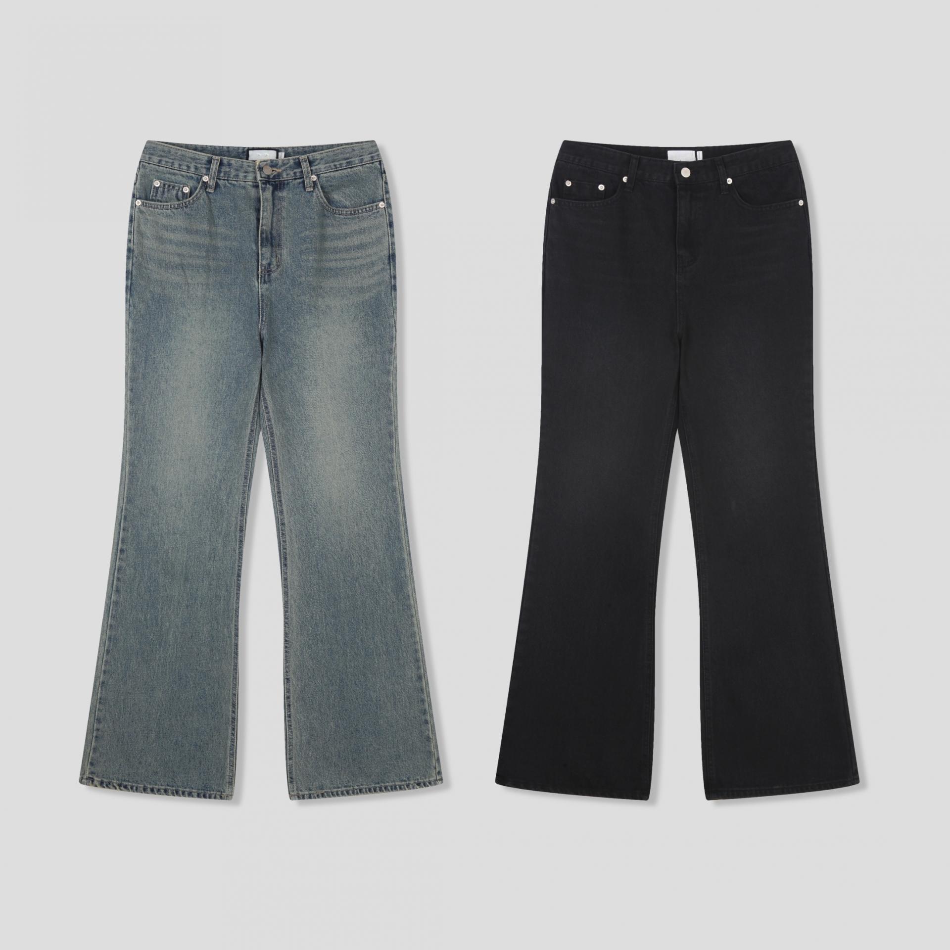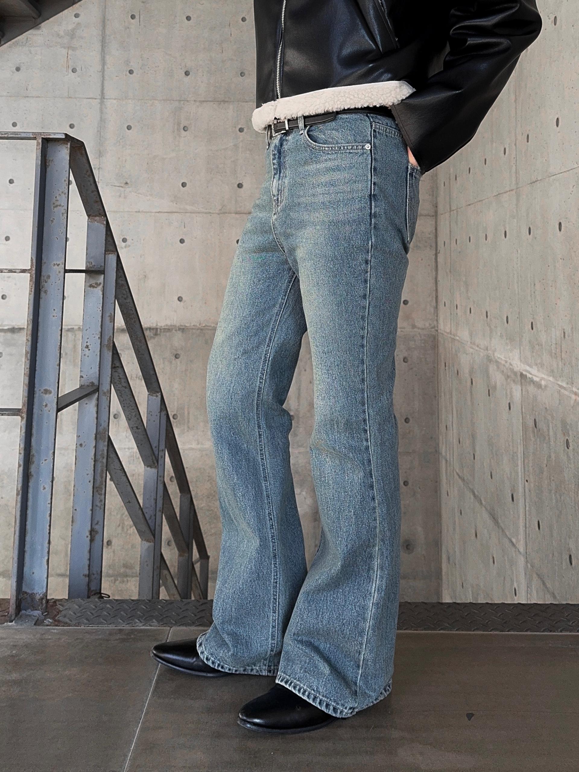 -탄탄한 데님 원단으로 제작된 플레어 팬츠