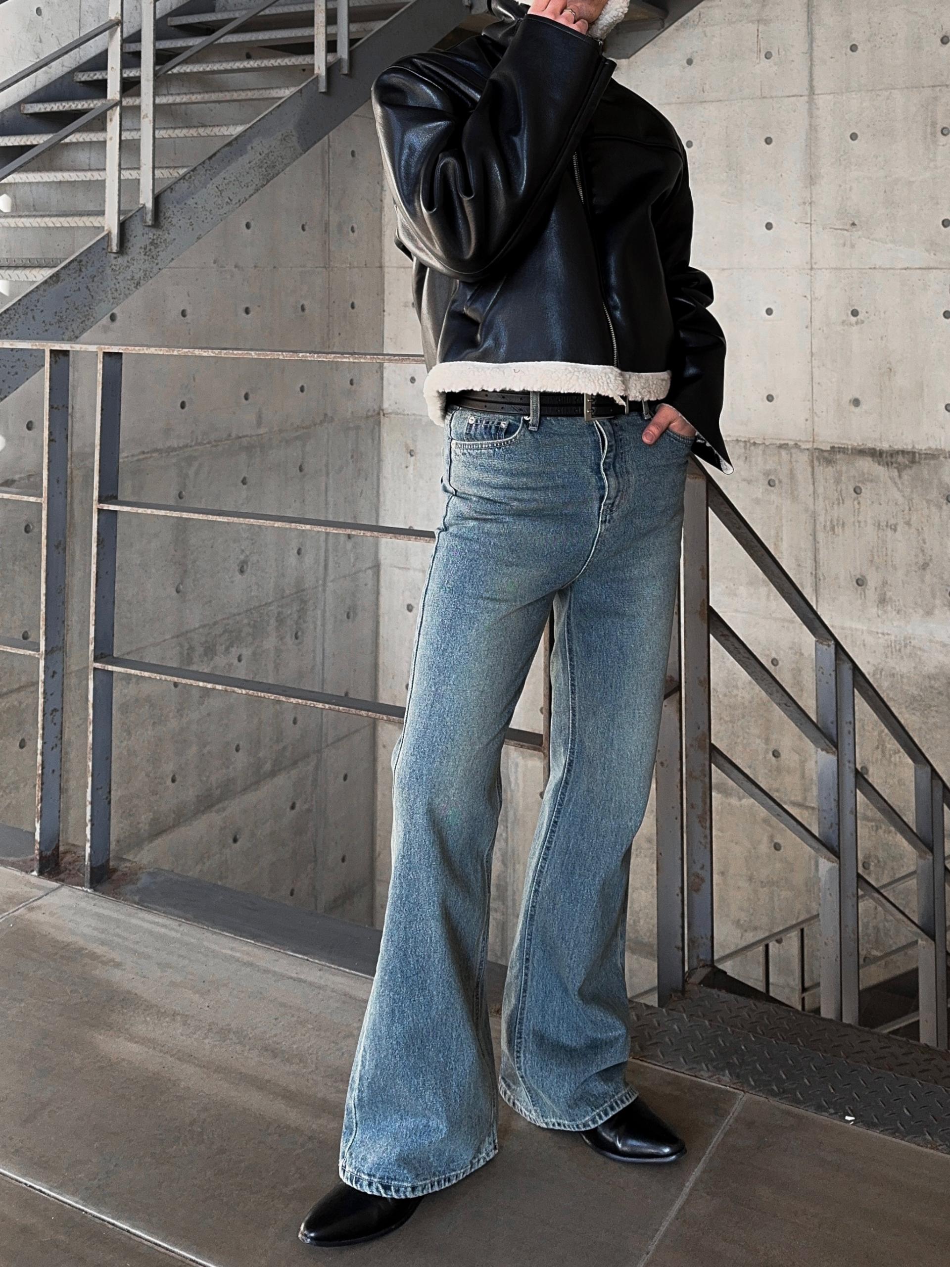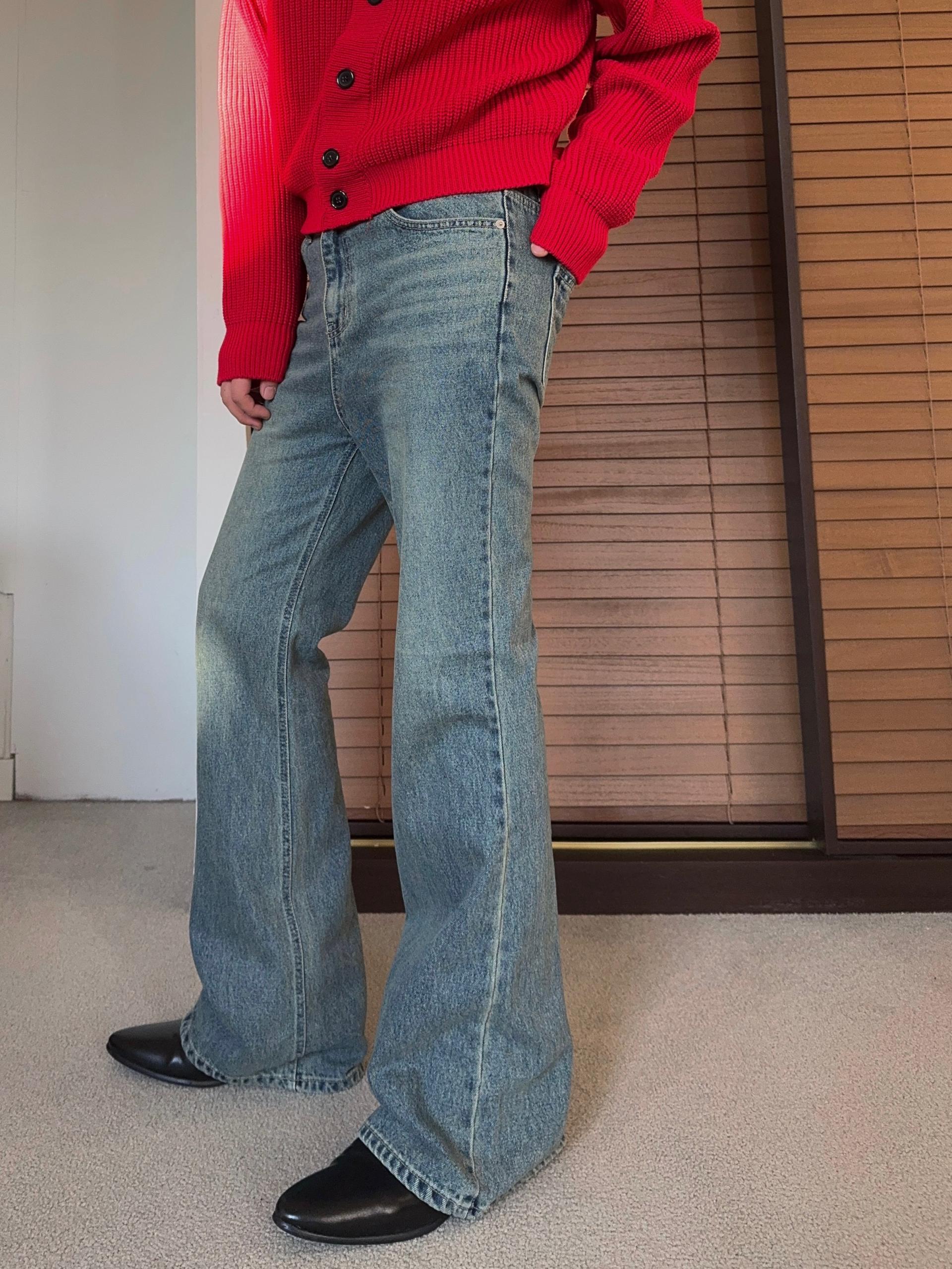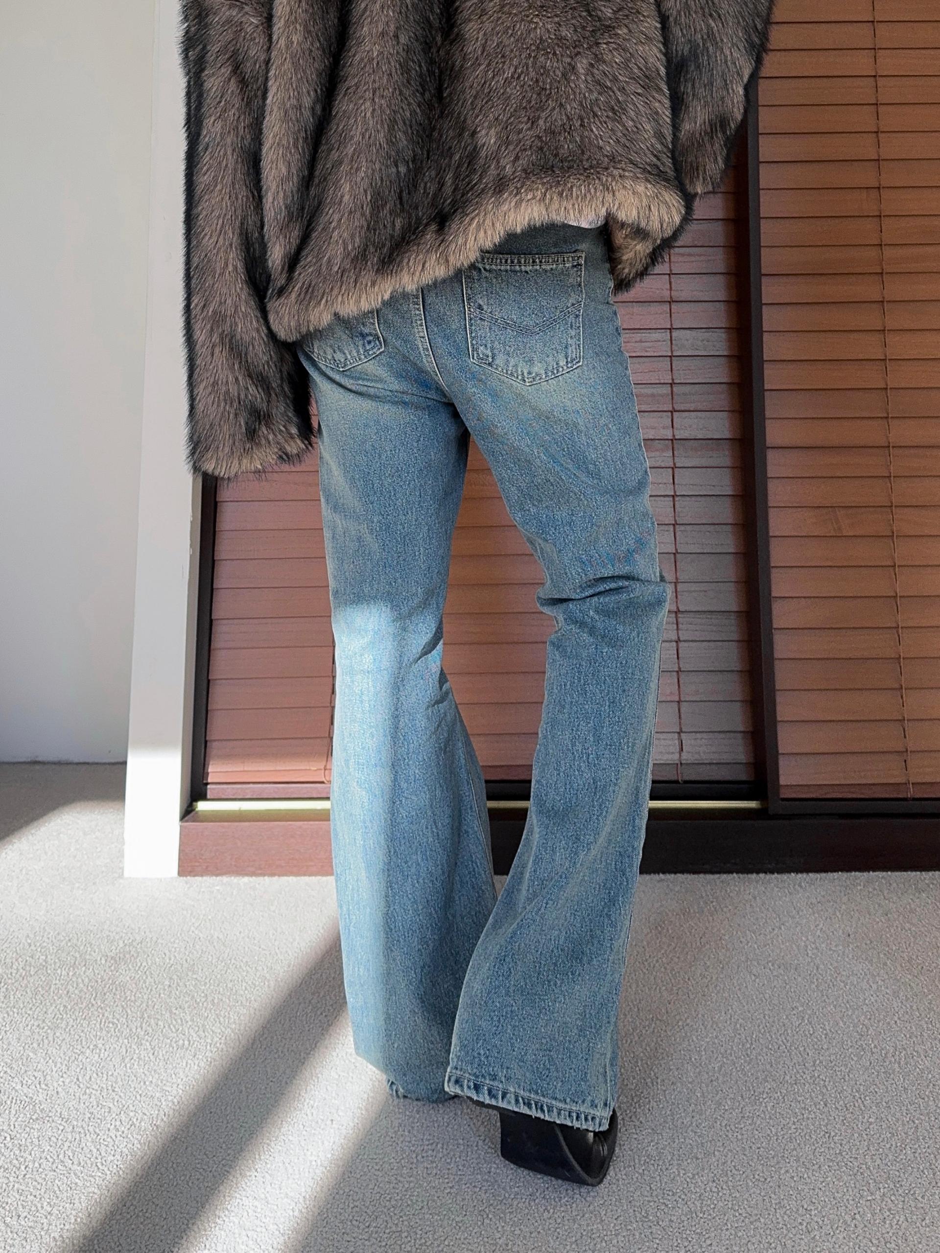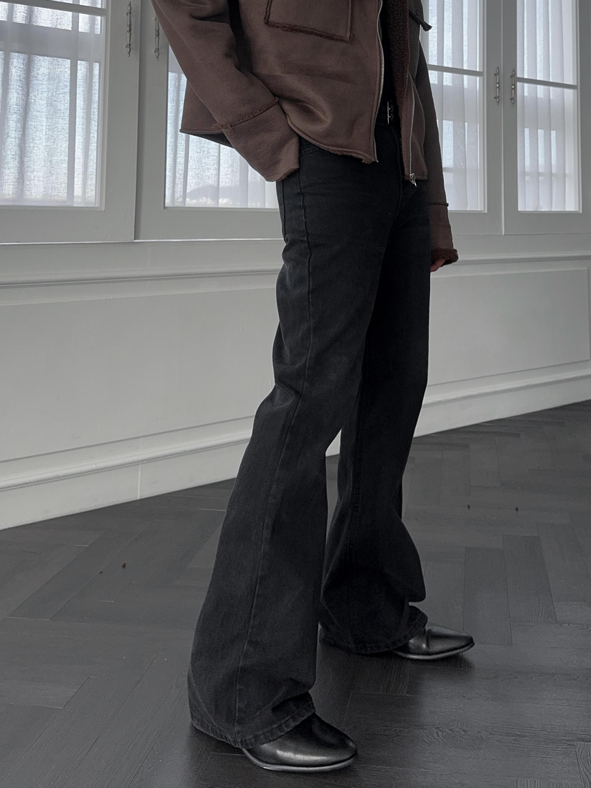 -탄탄한 데님 원단으로 제작된 플레어 팬츠