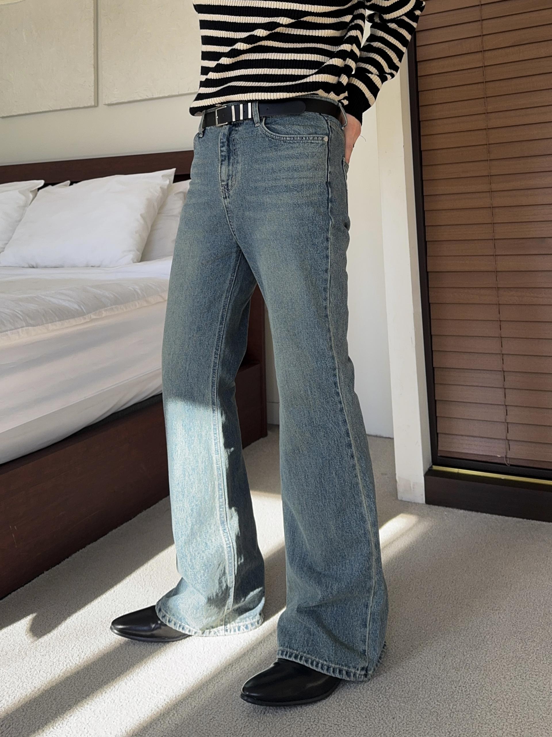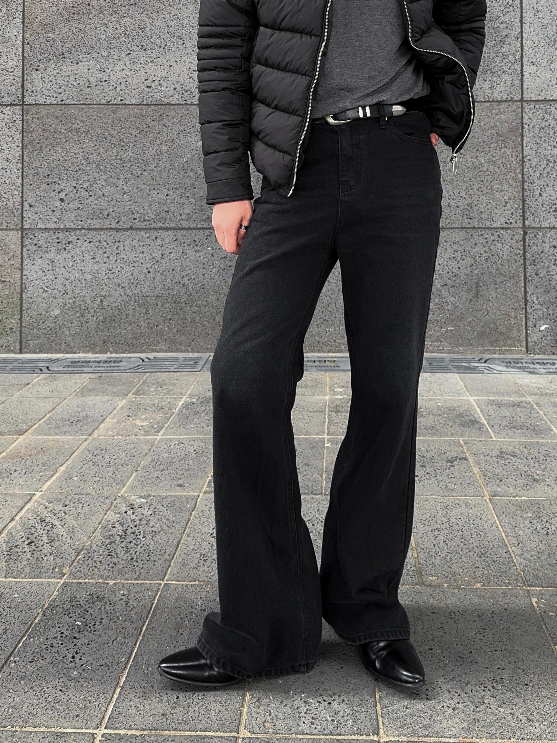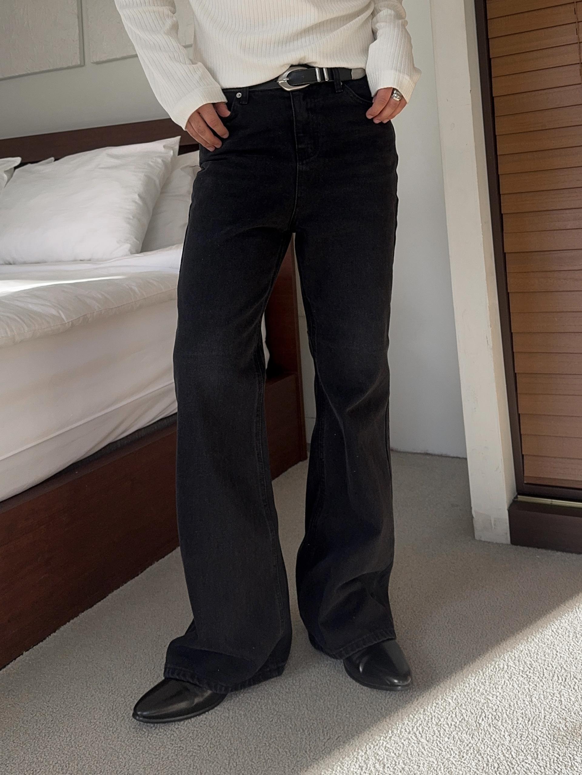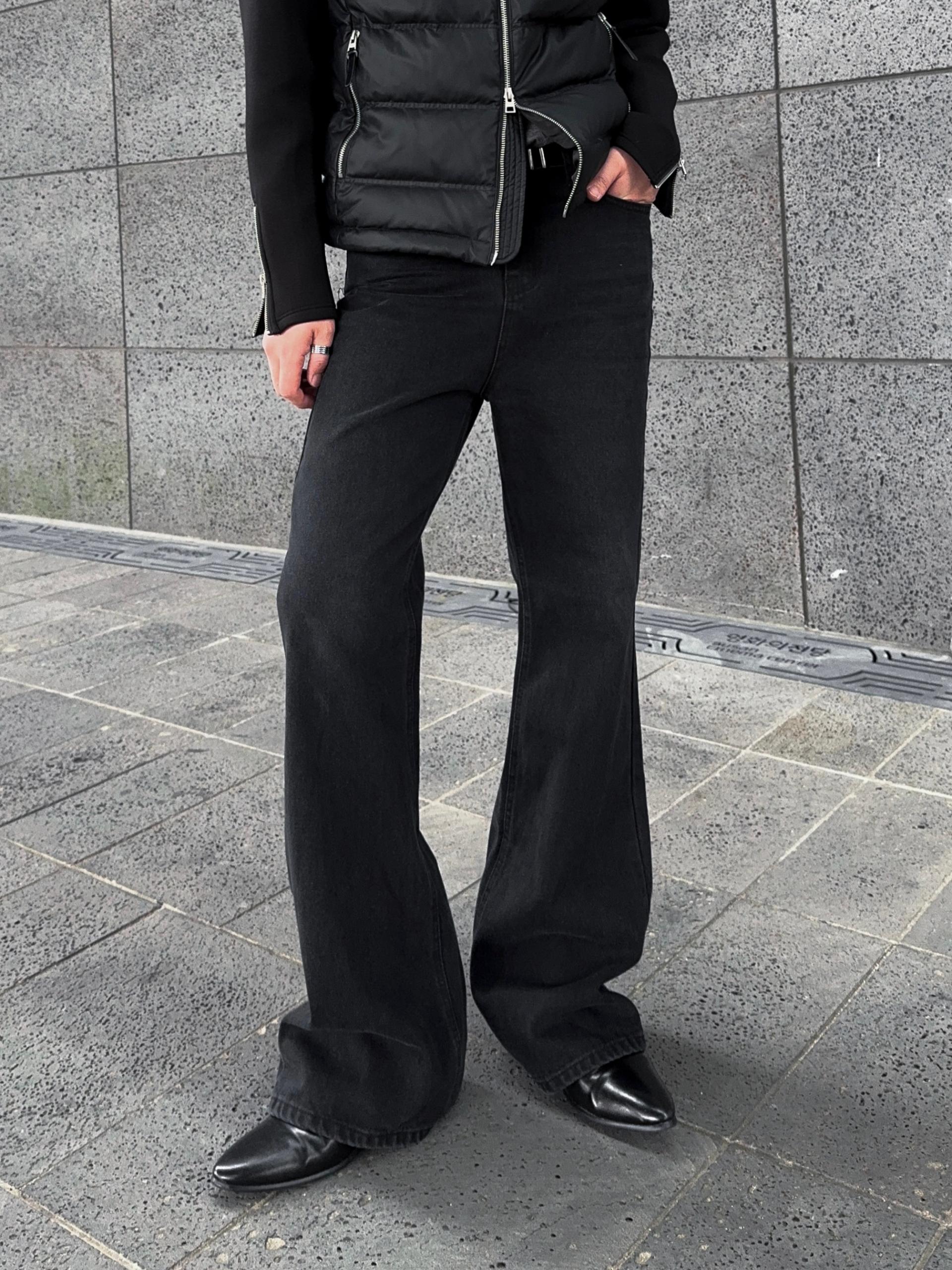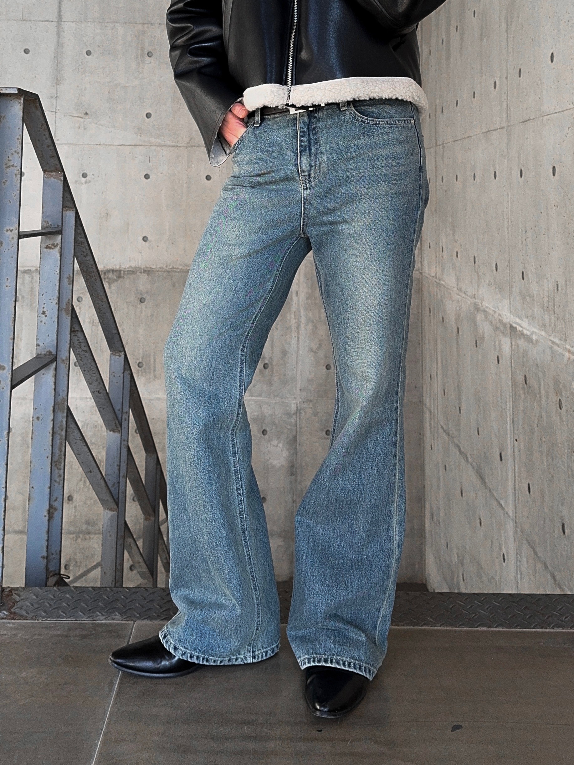 -탄탄한 데님 원단으로 제작된 플레어 팬츠