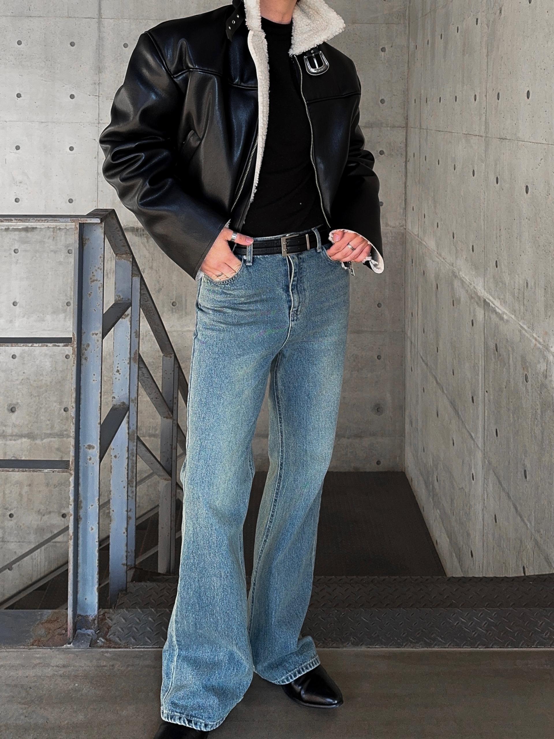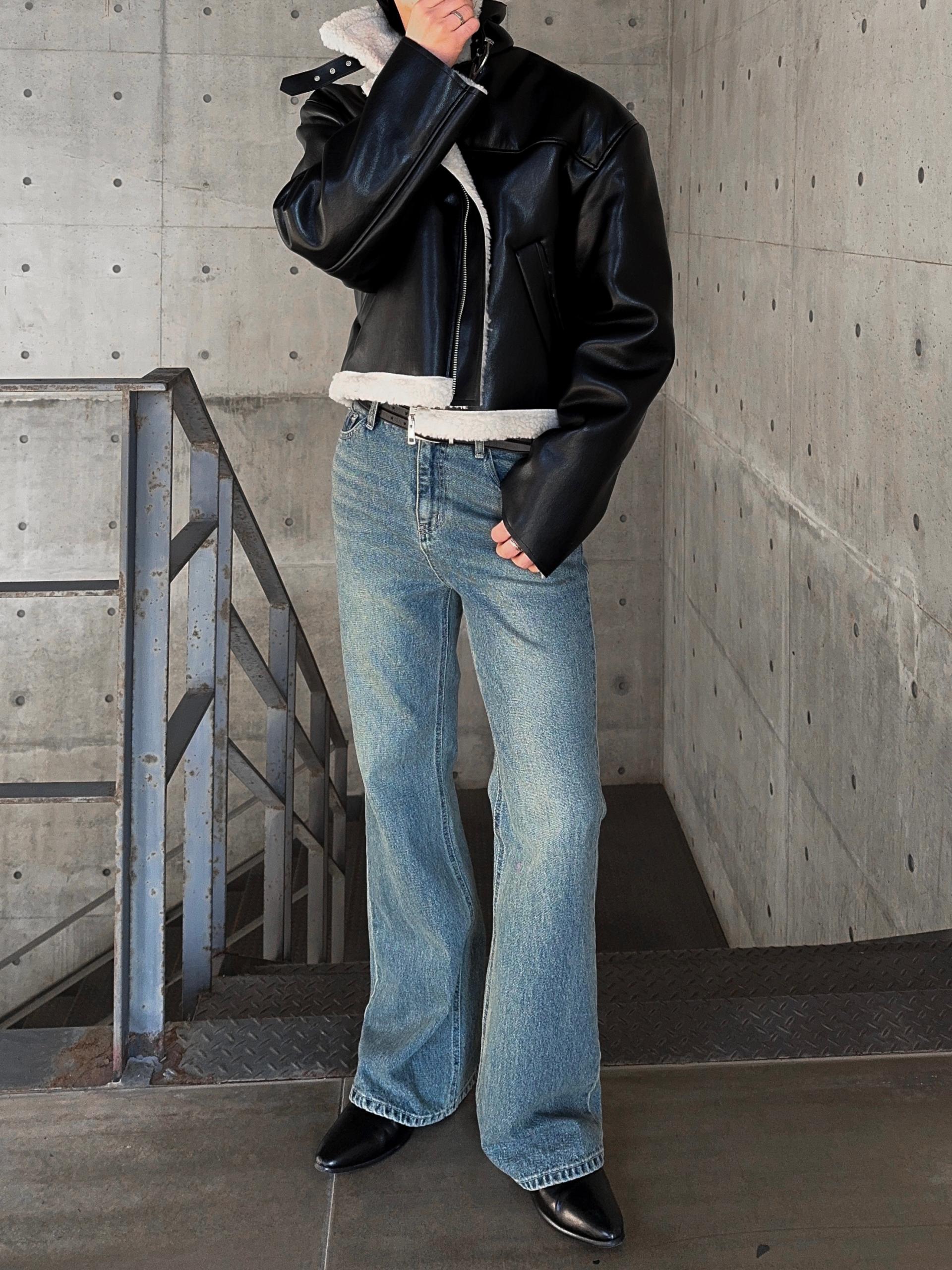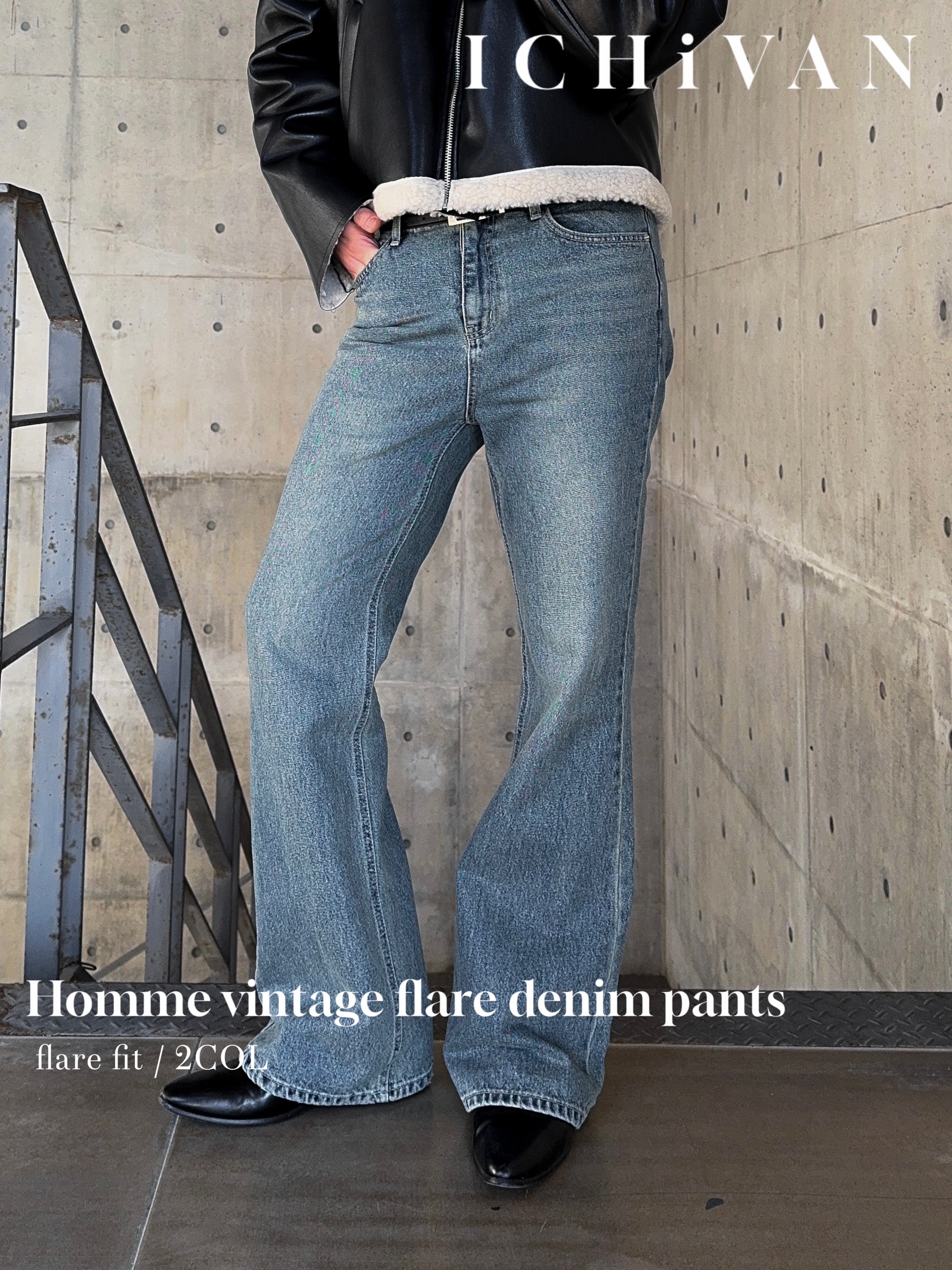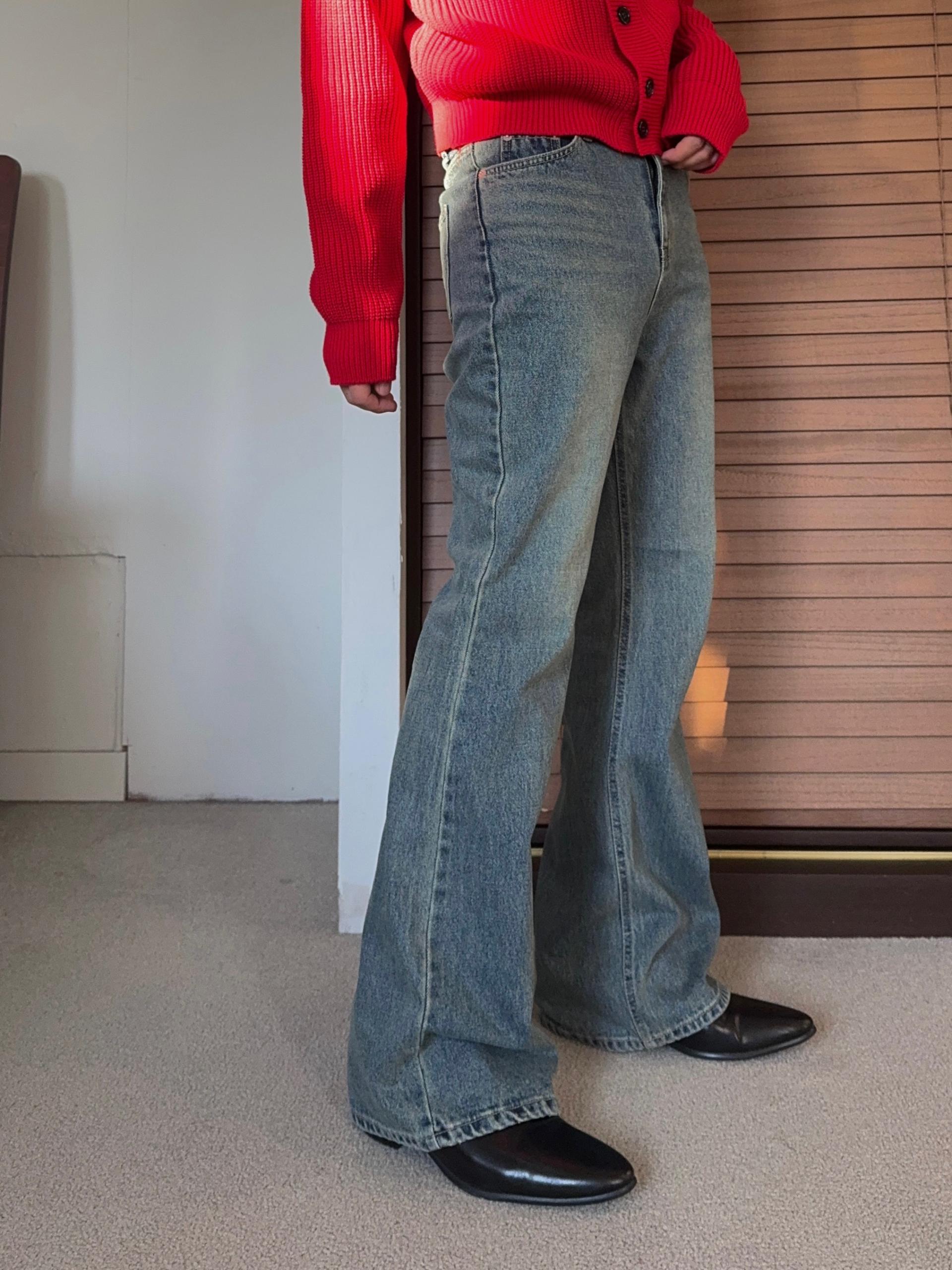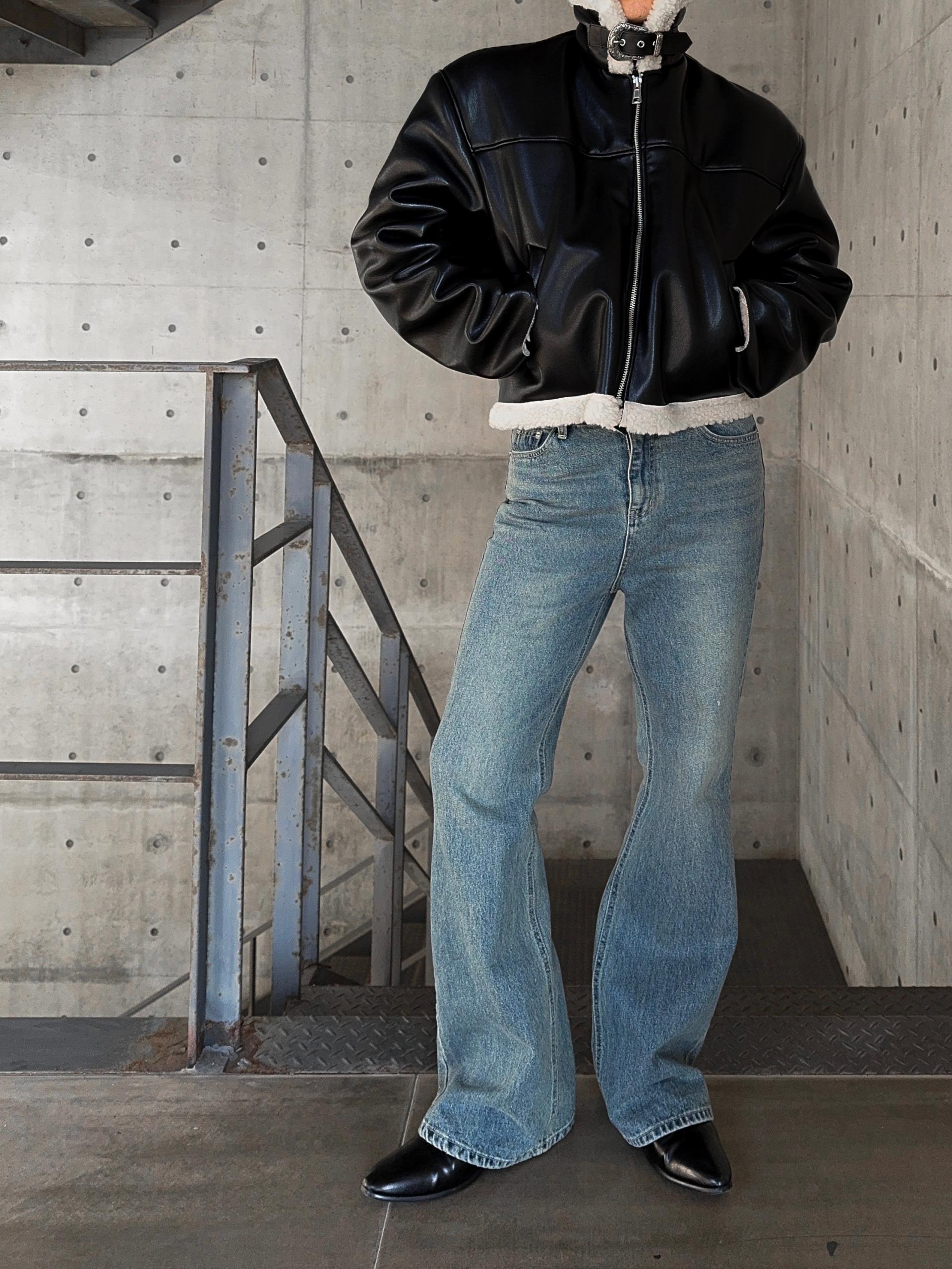 -탄탄한 데님 원단으로 제작된 플레어 팬츠