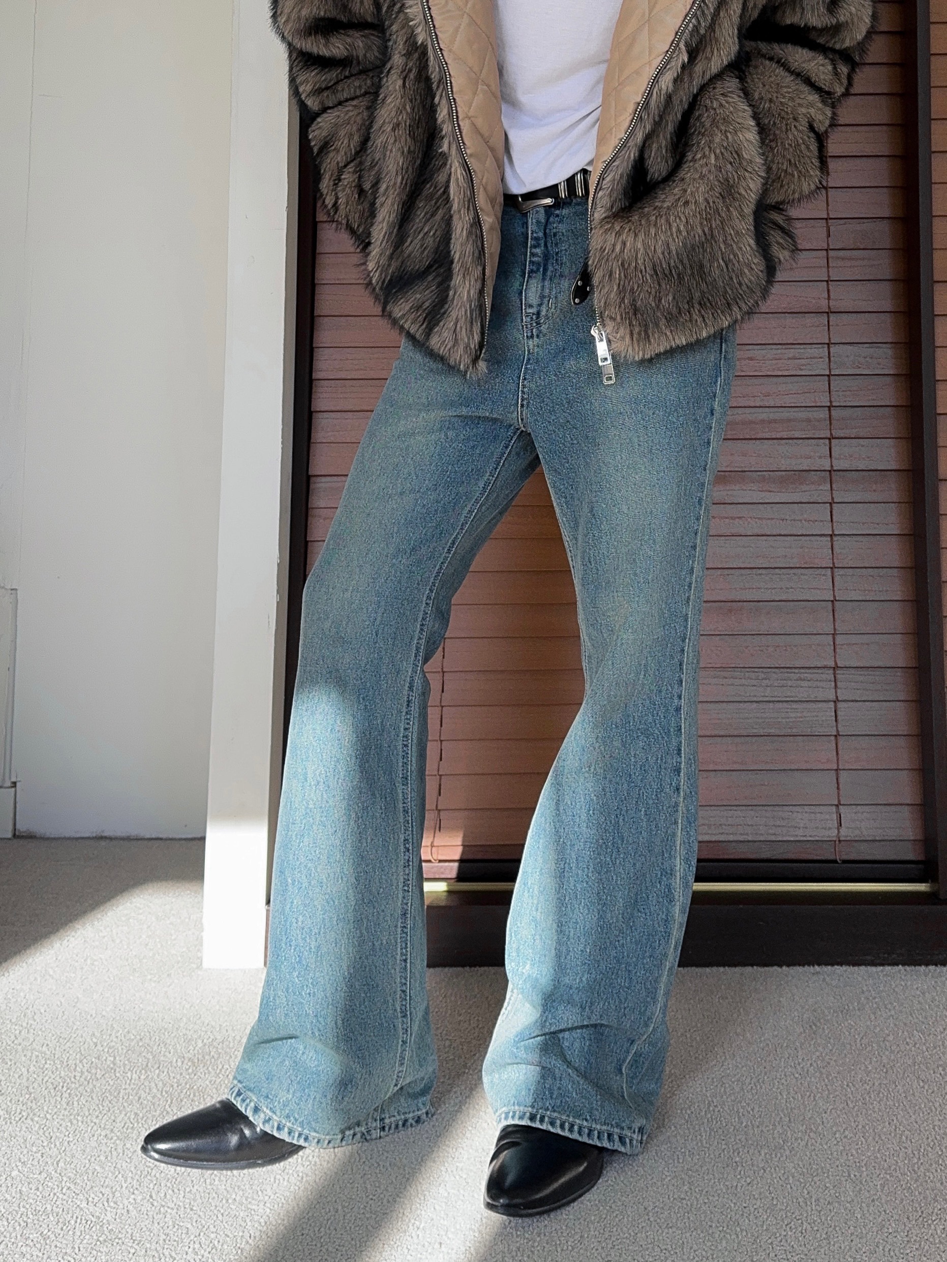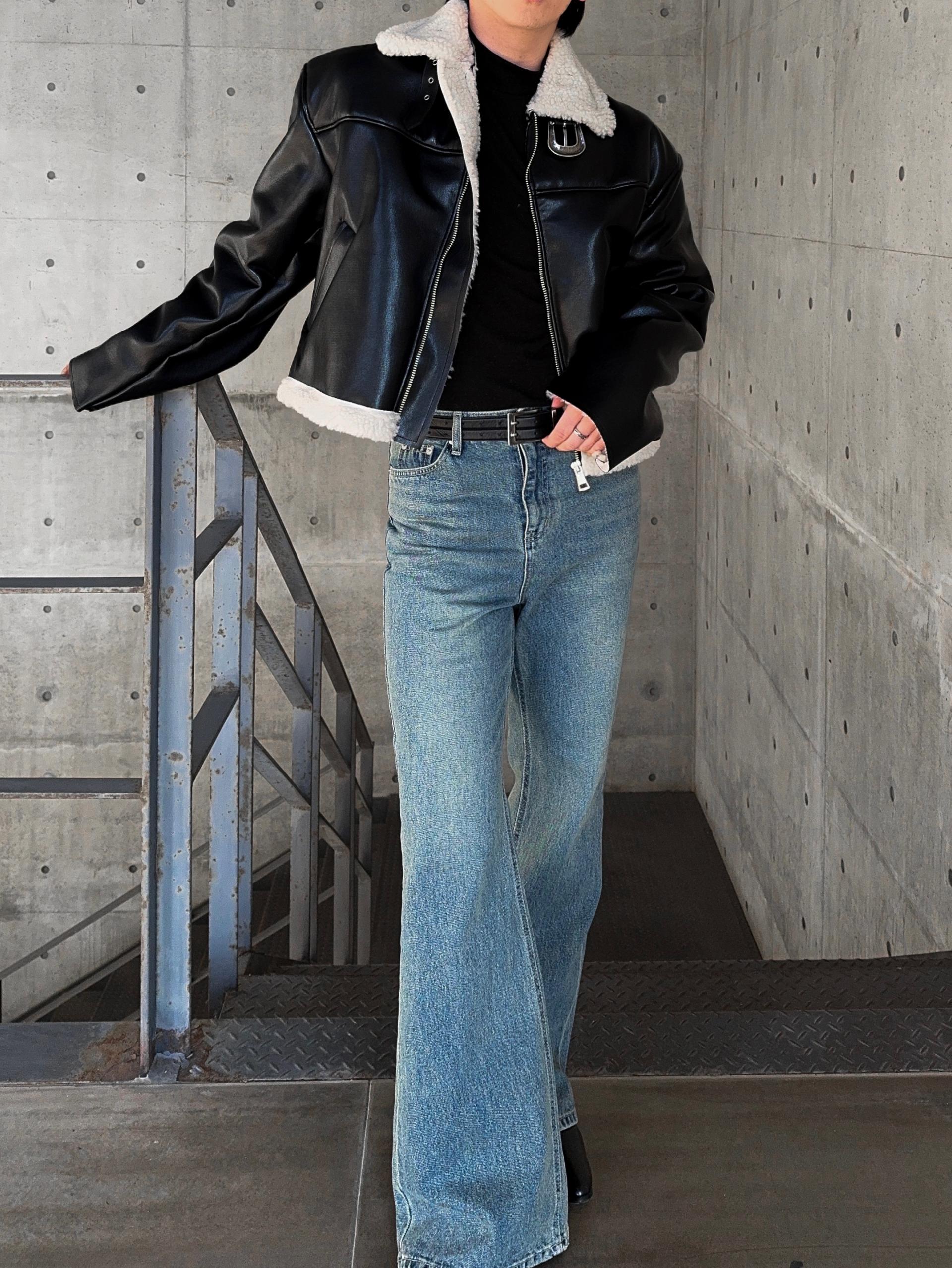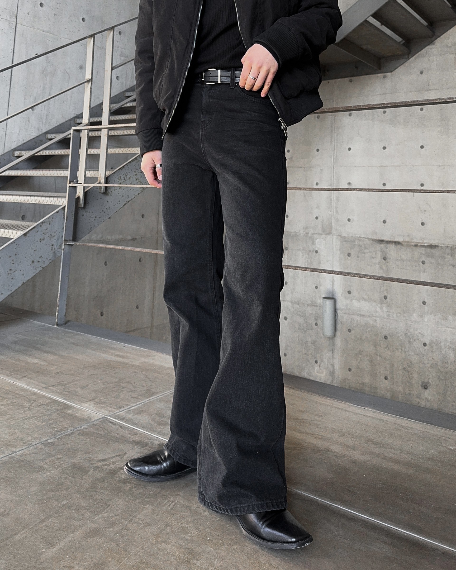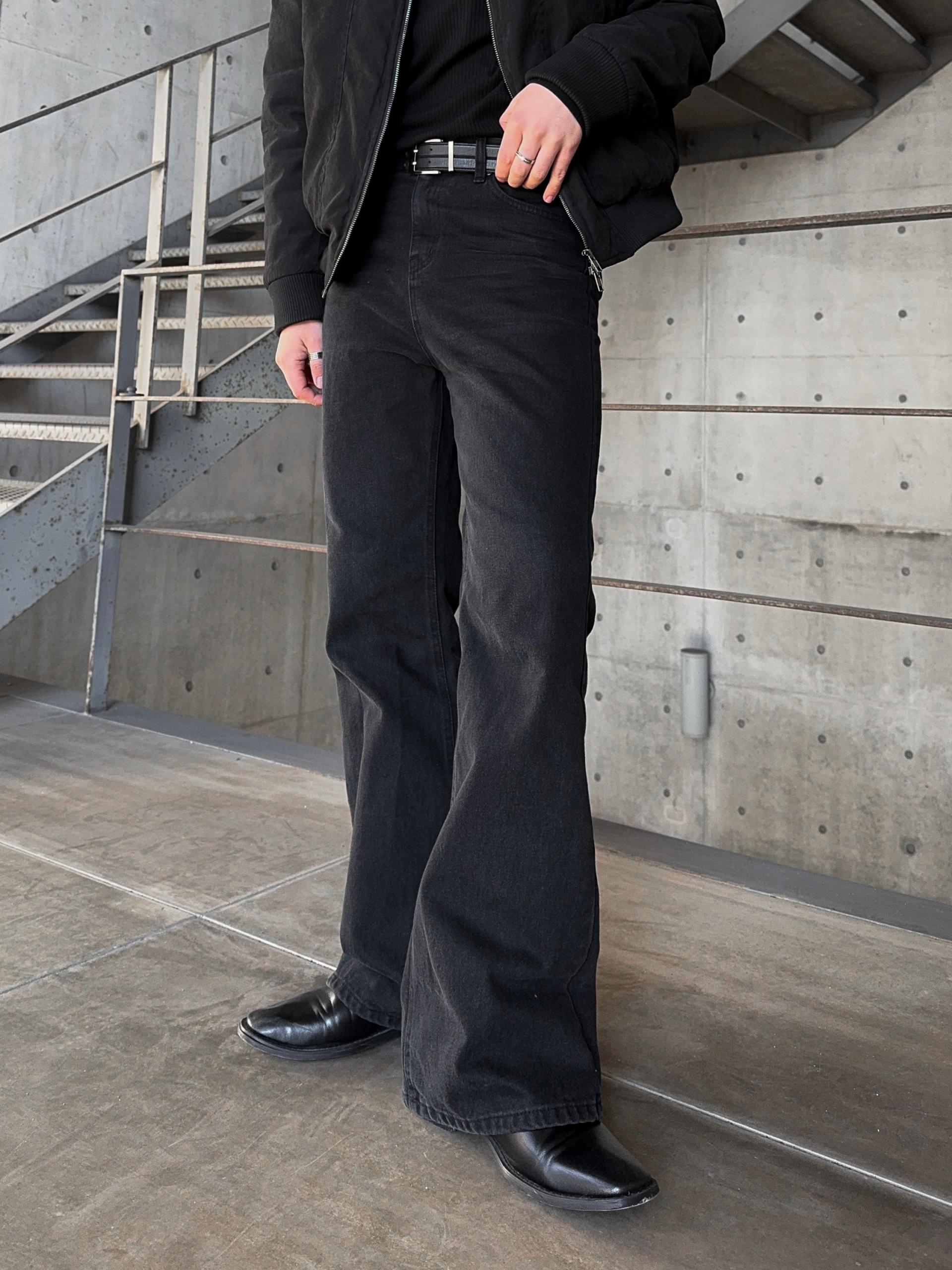 -탄탄한 데님 원단으로 제작된 플레어 팬츠