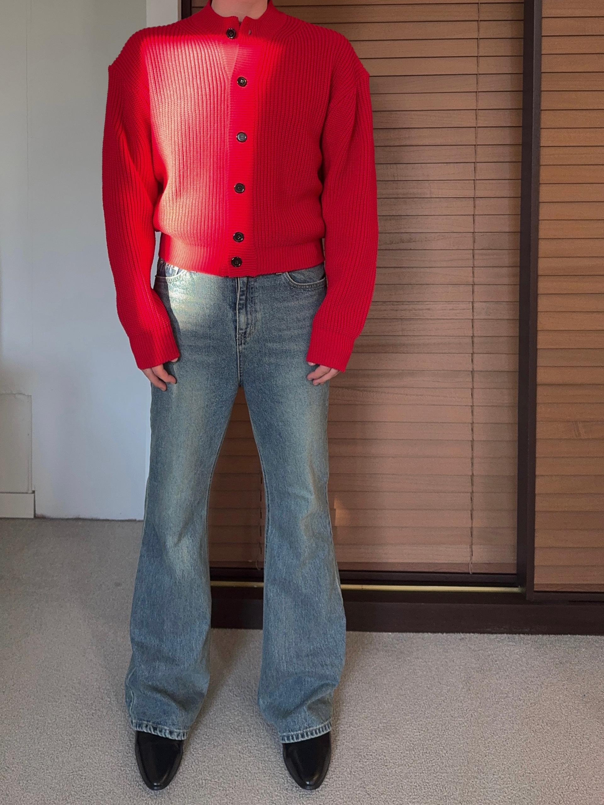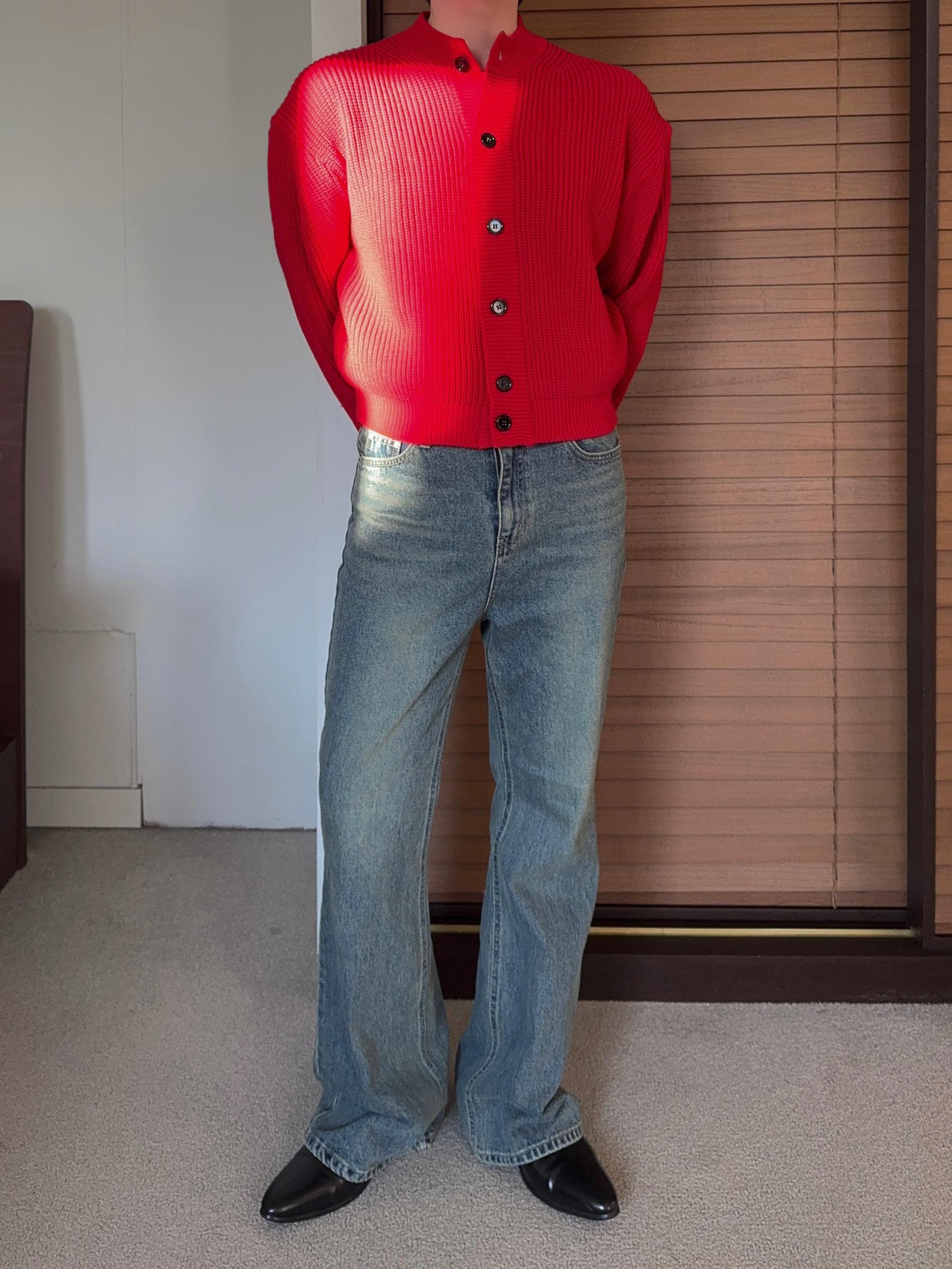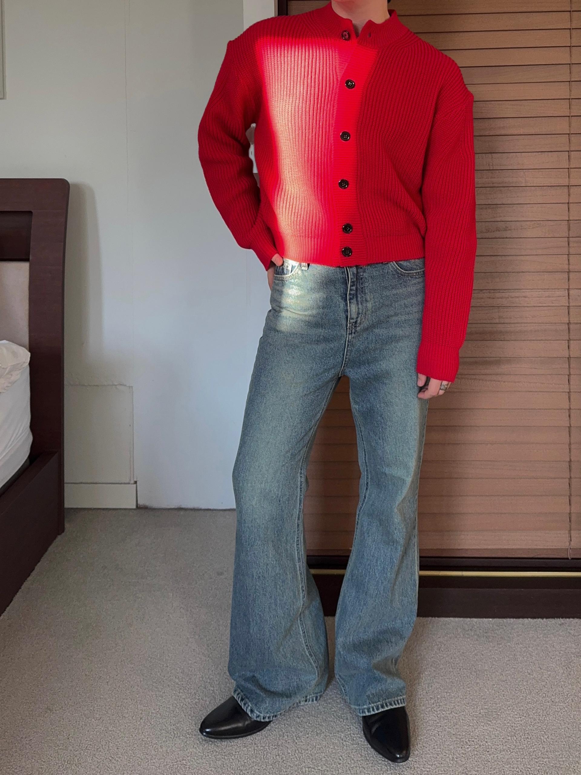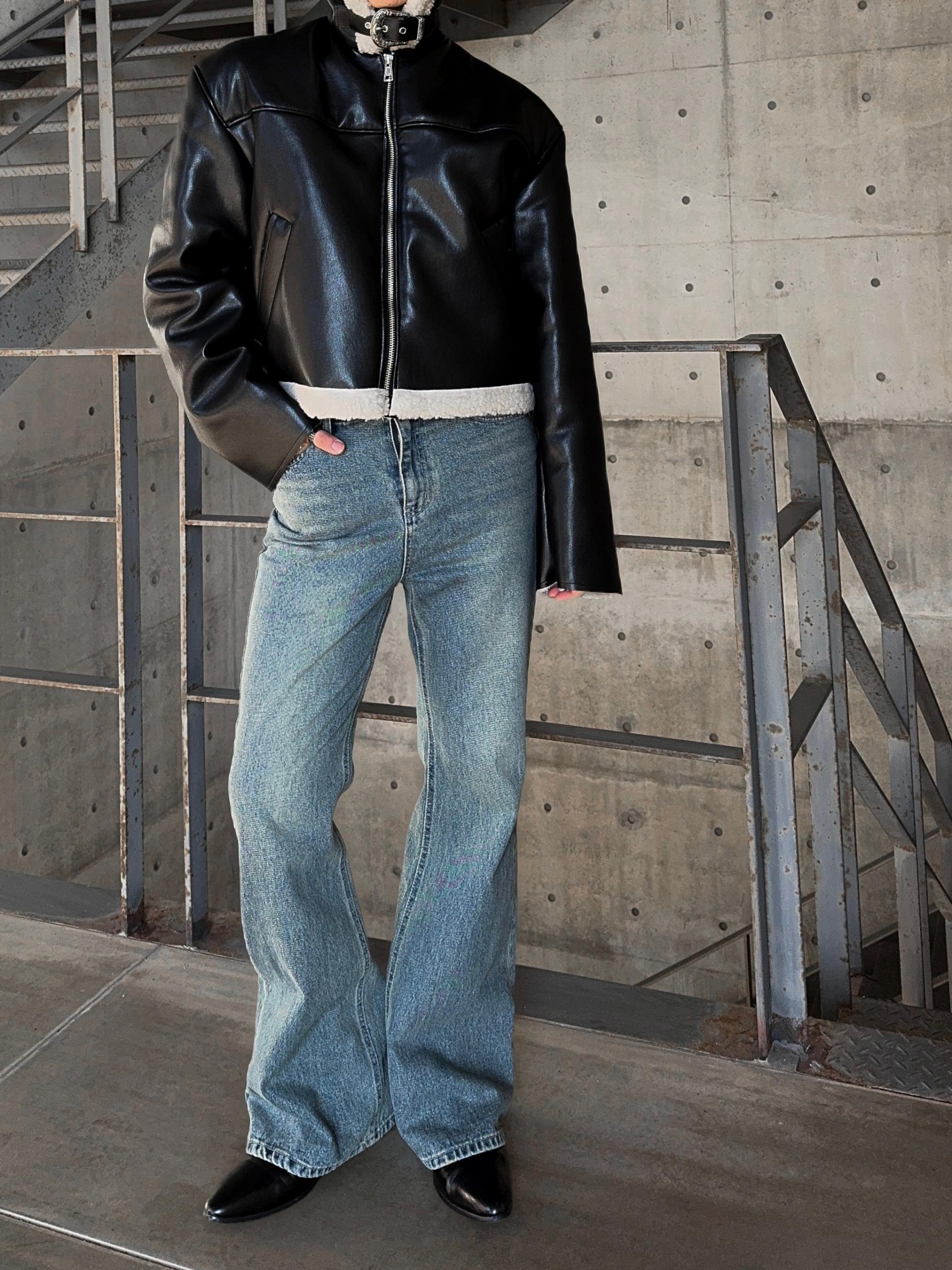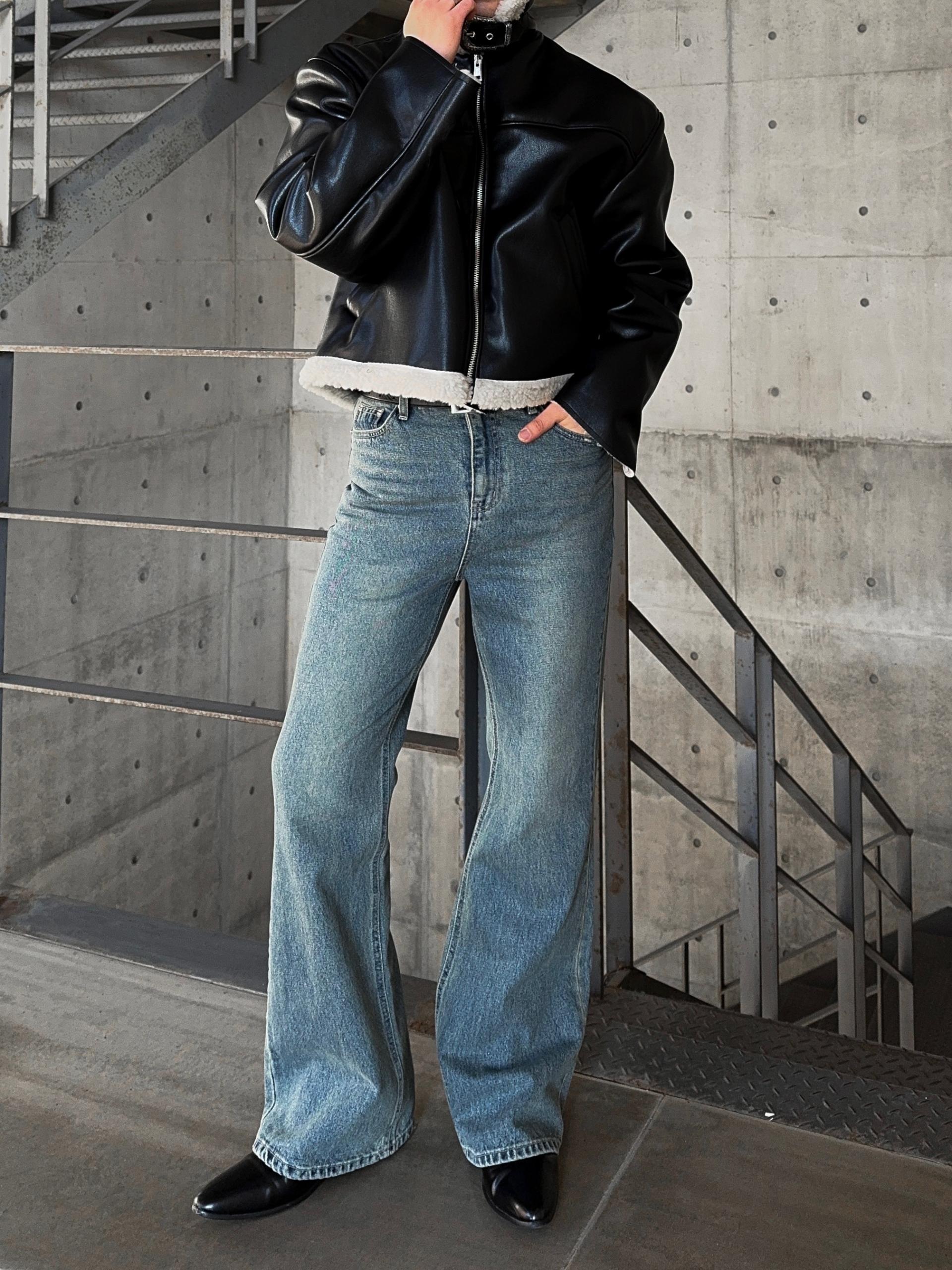 -탄탄한 데님 원단으로 제작된 플레어 팬츠
