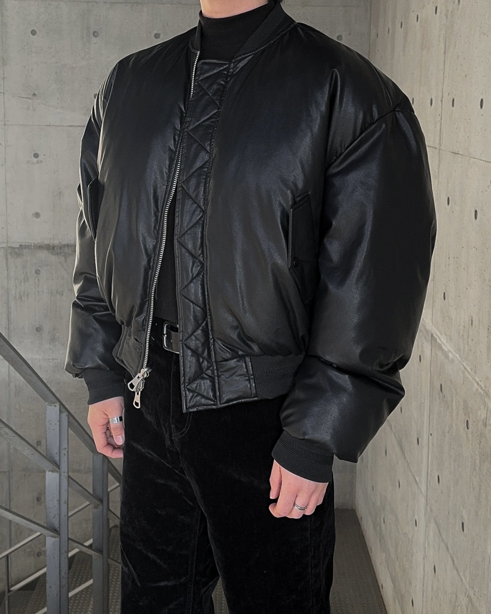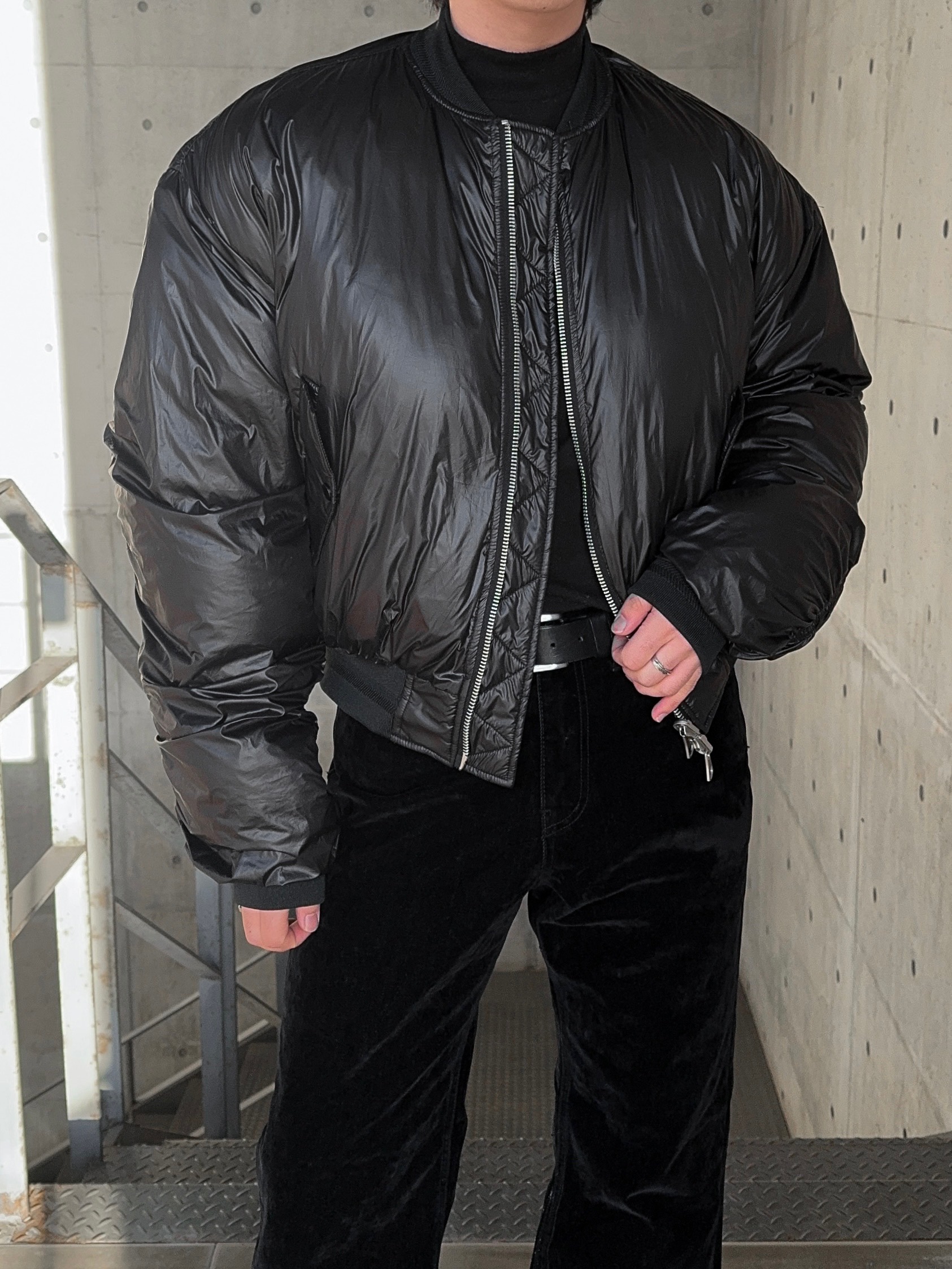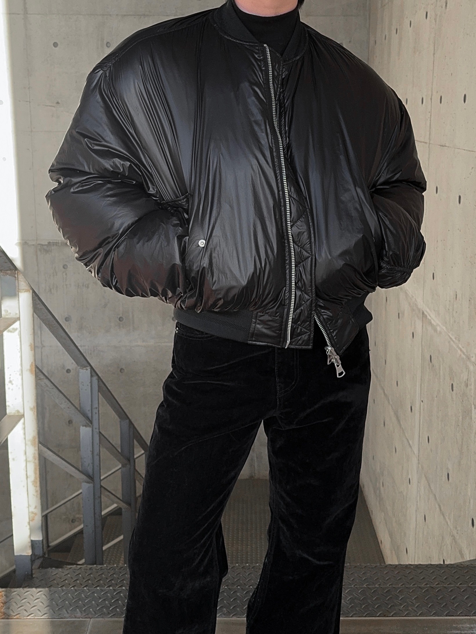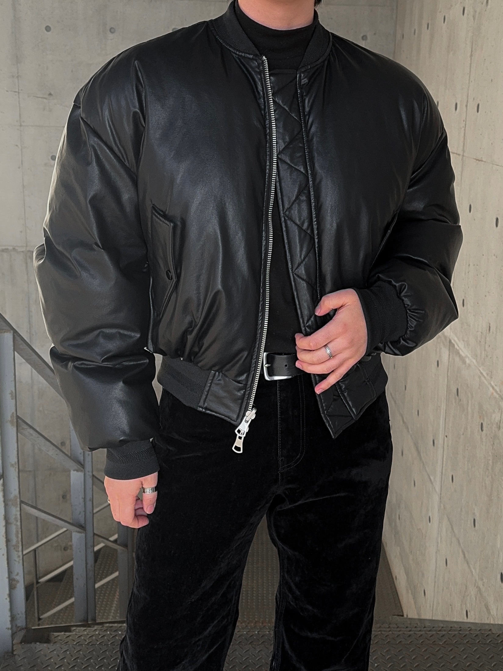 -양면으로 착용 가능한 리버시블 디자인으로 제작된 봄버 패딩