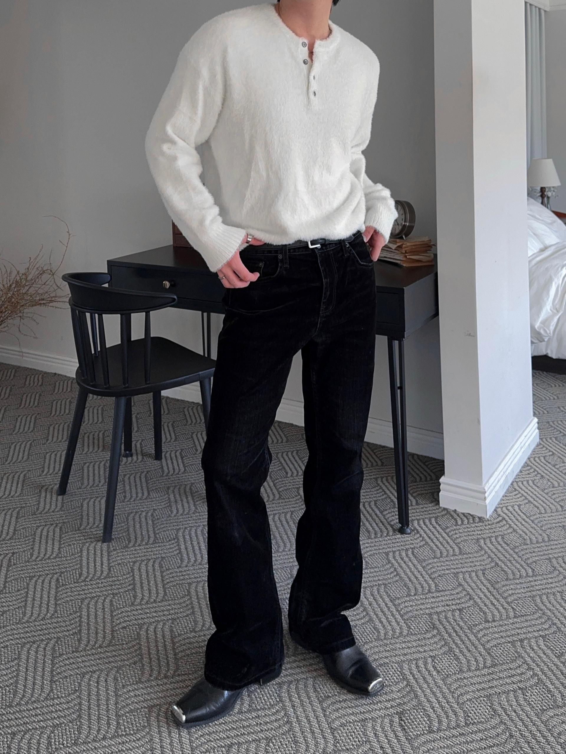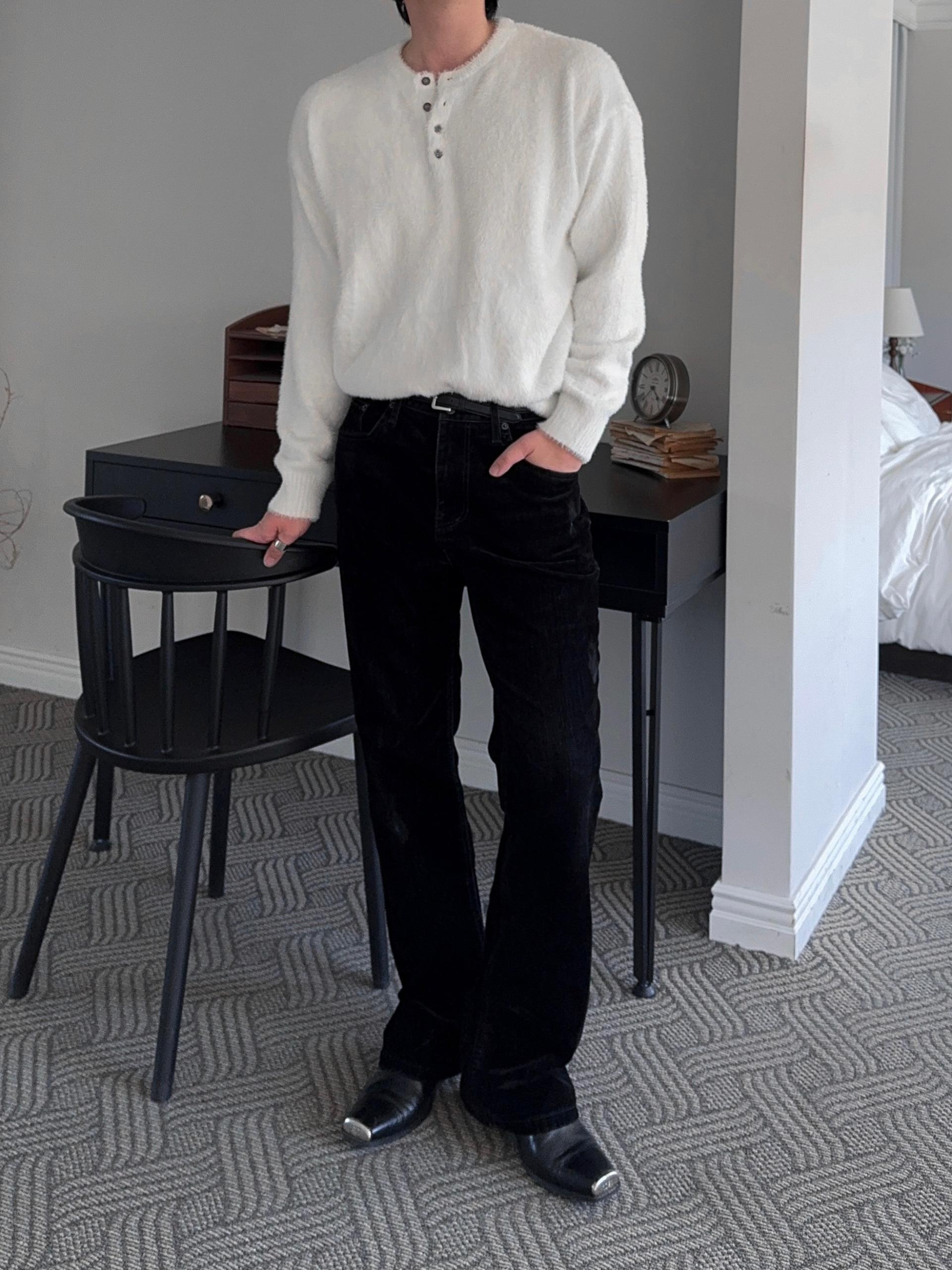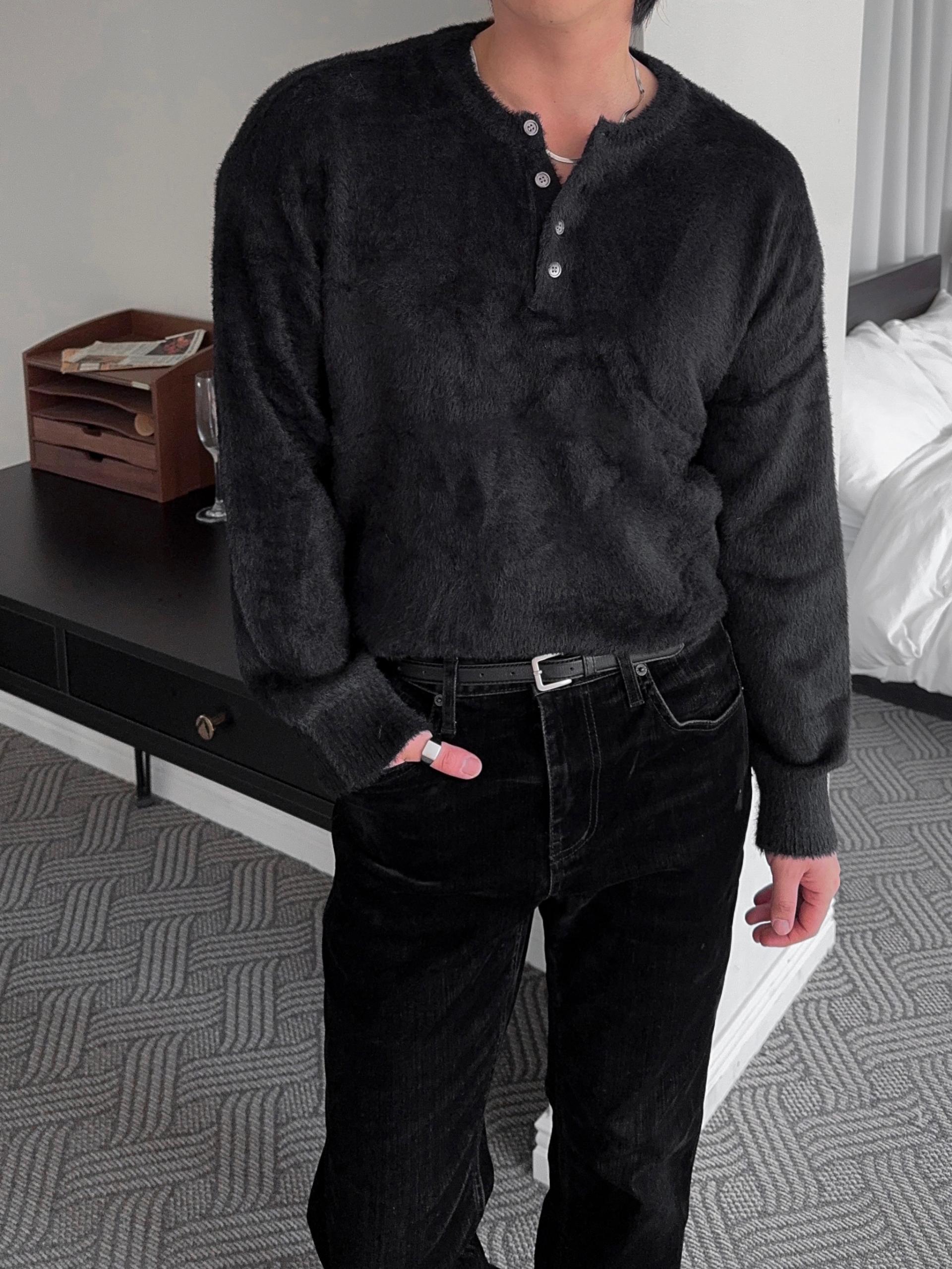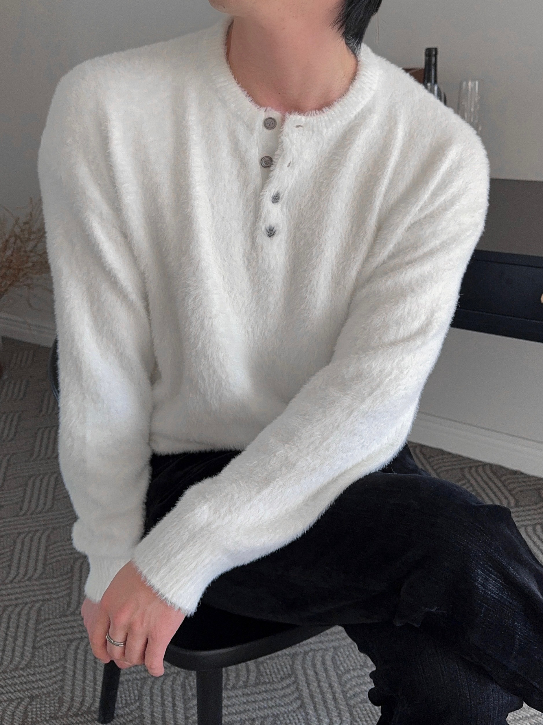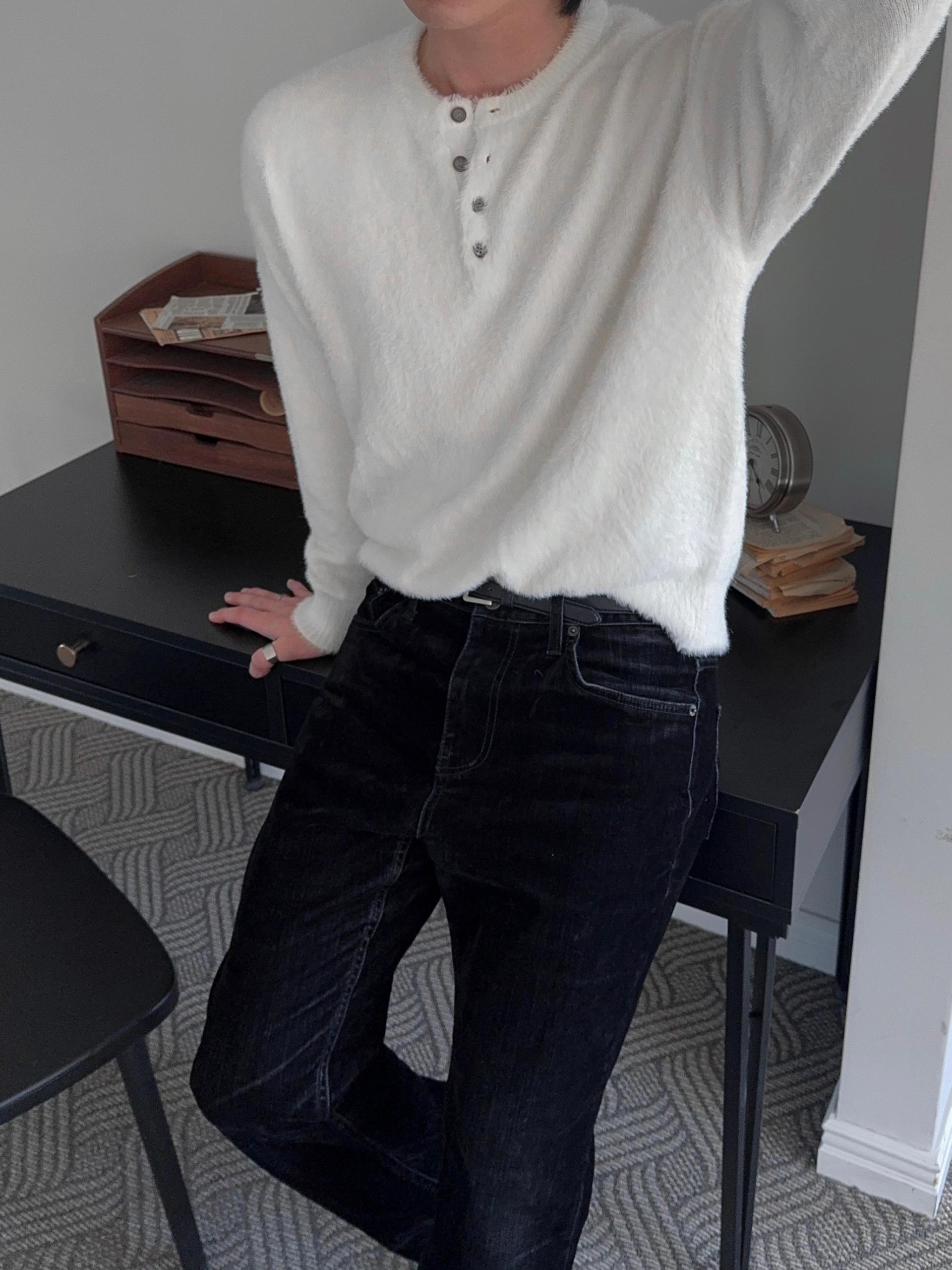 -부드러운 앙고라 소재로 제작된 헨리넥 니트