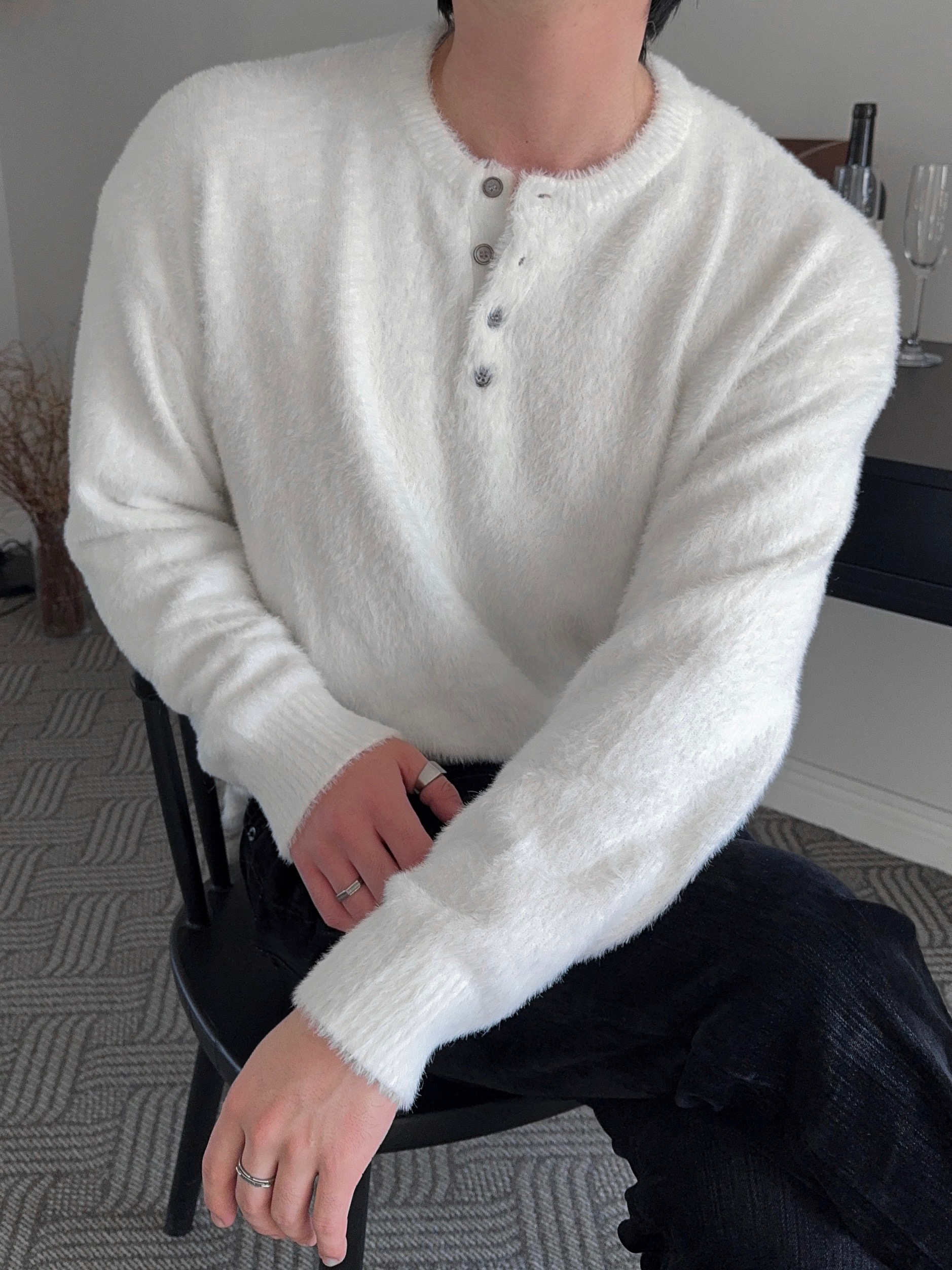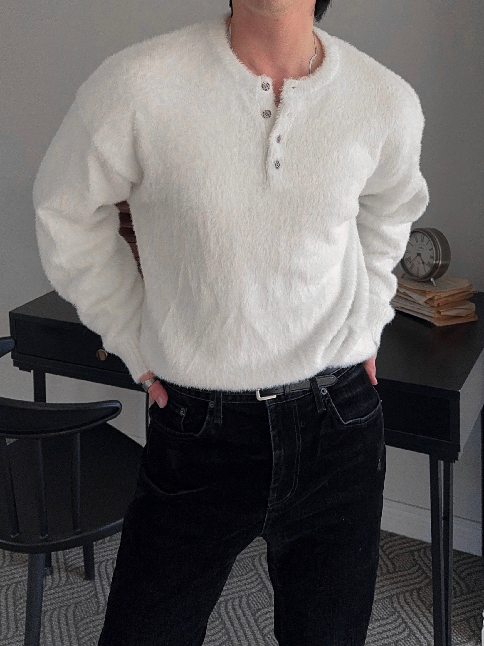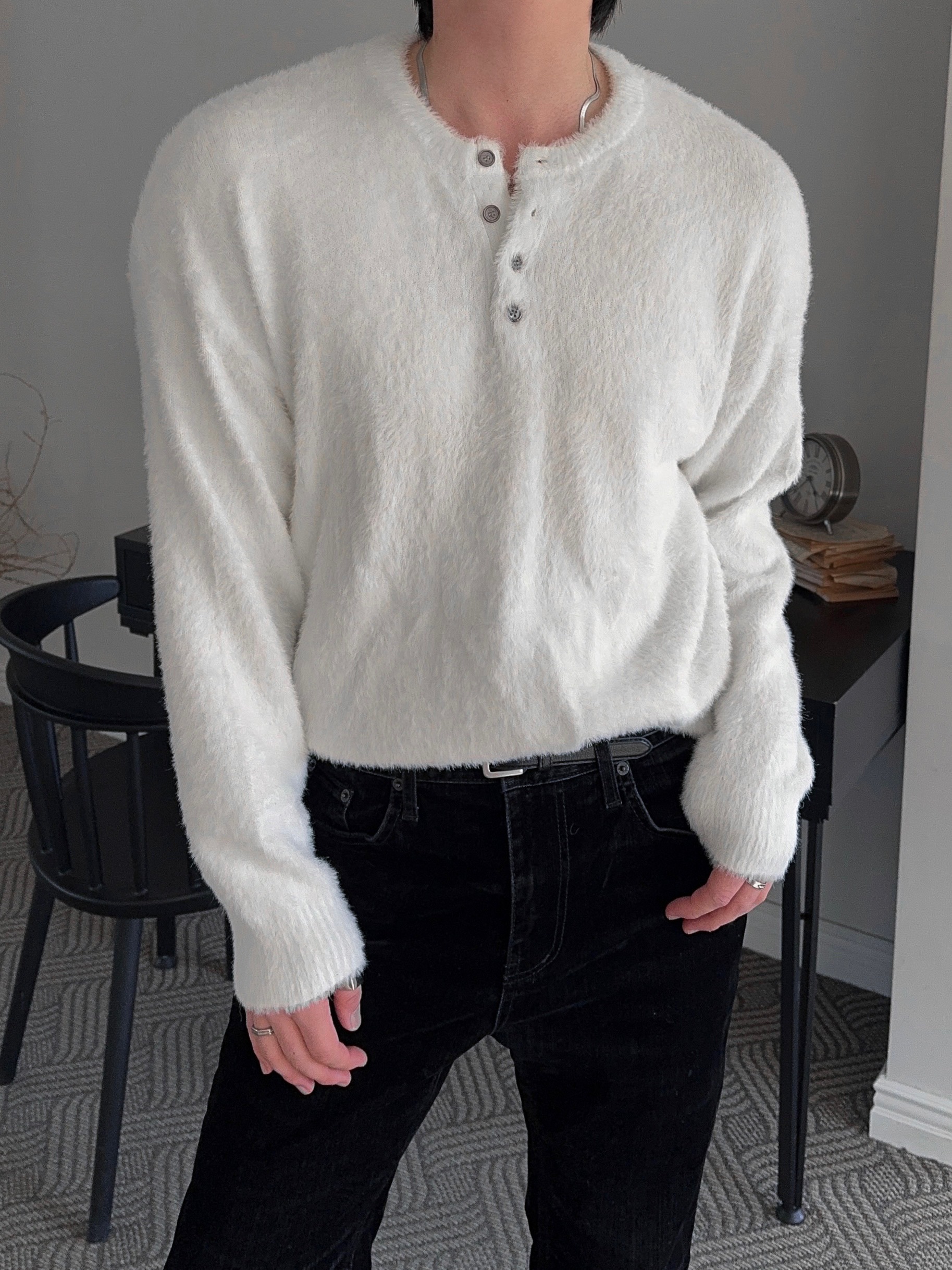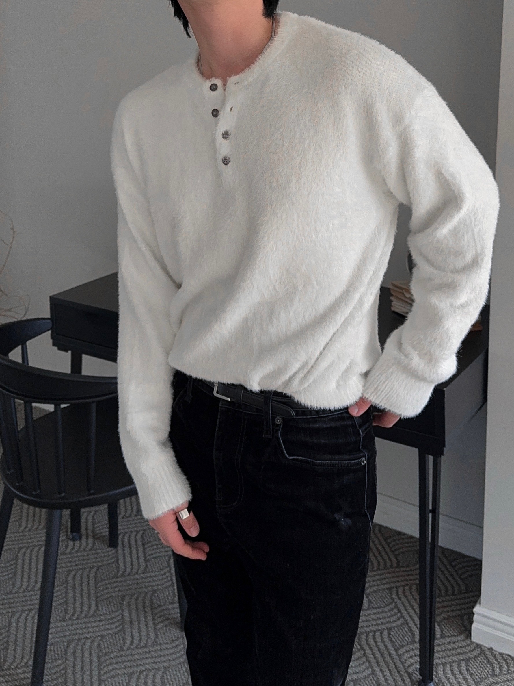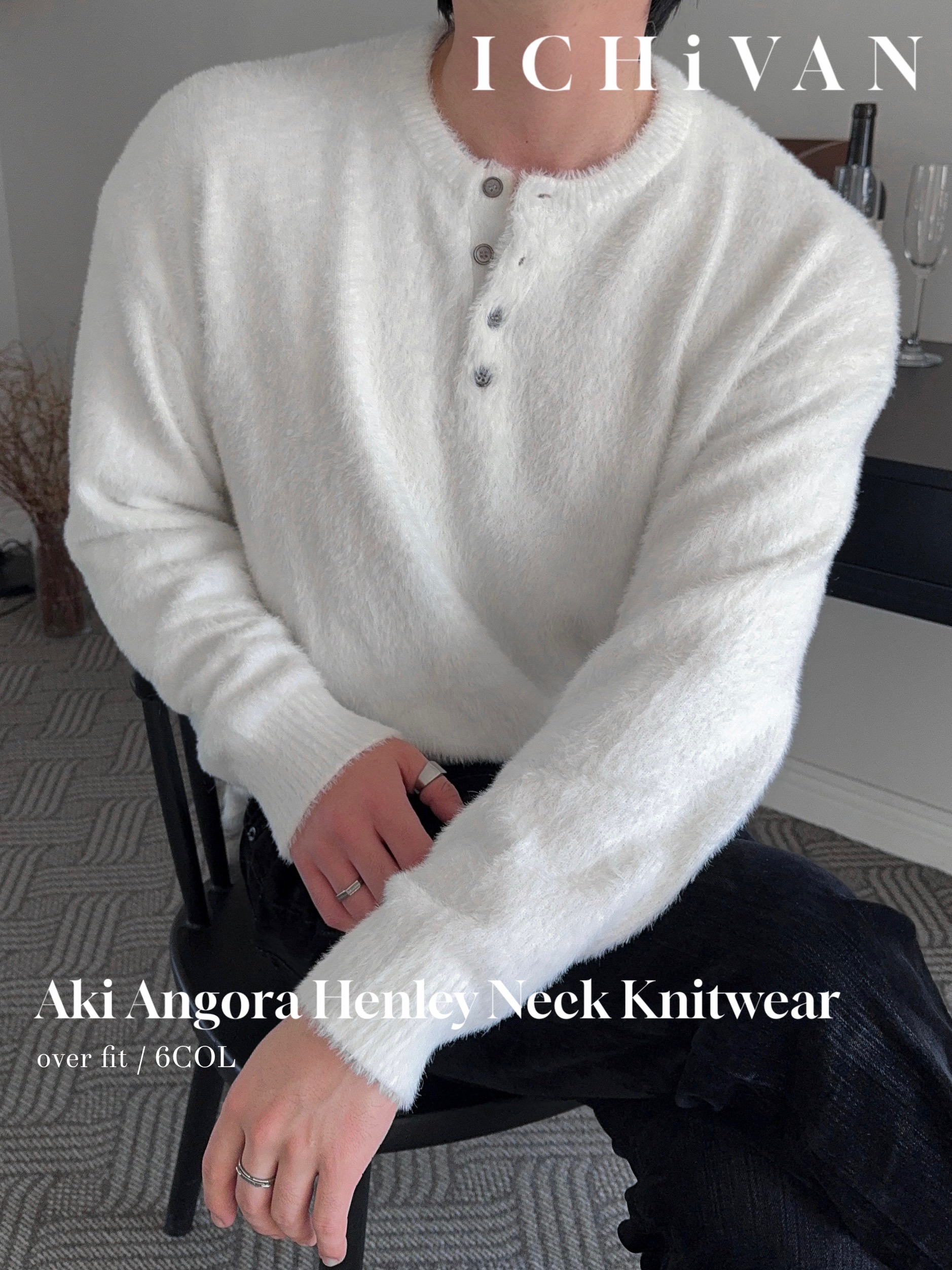 -부드러운 앙고라 소재로 제작된 헨리넥 니트