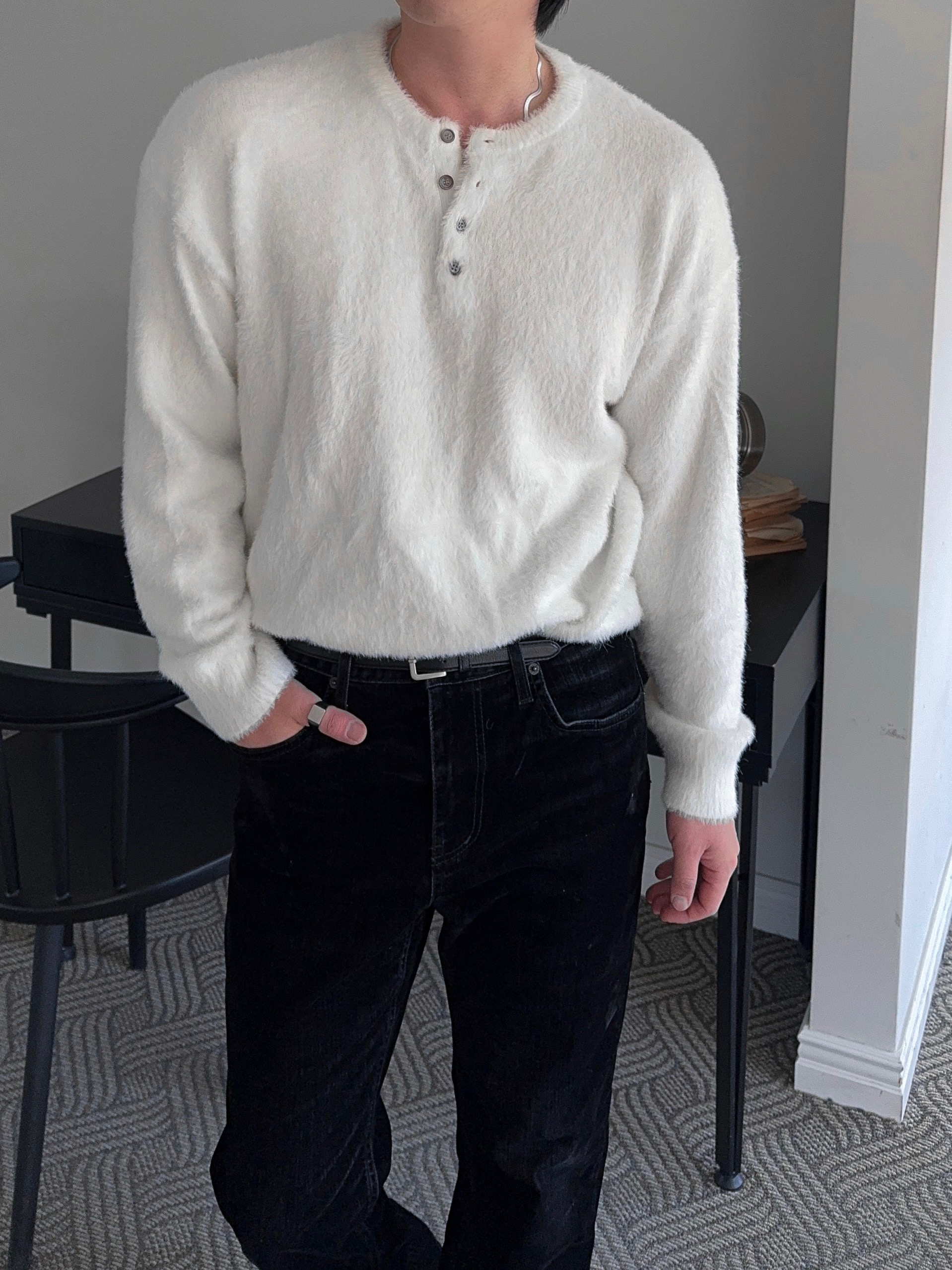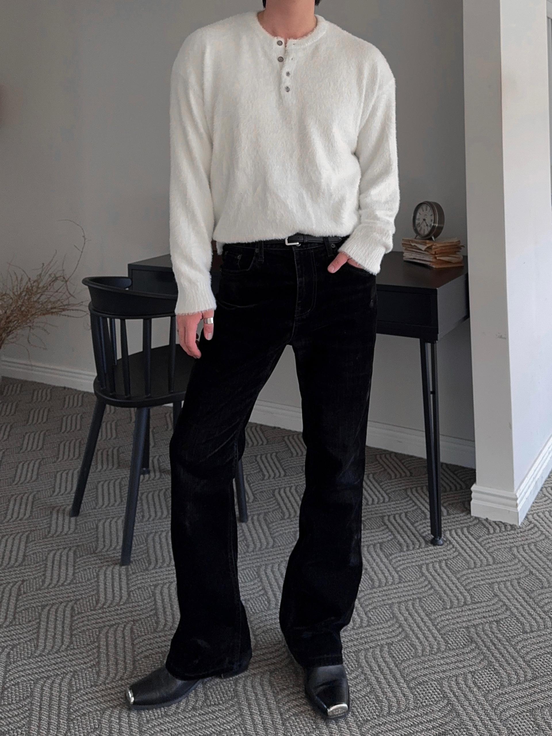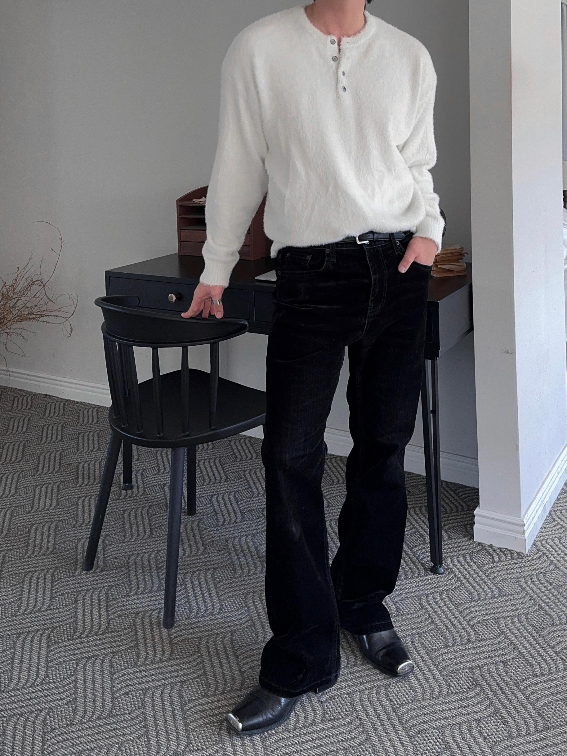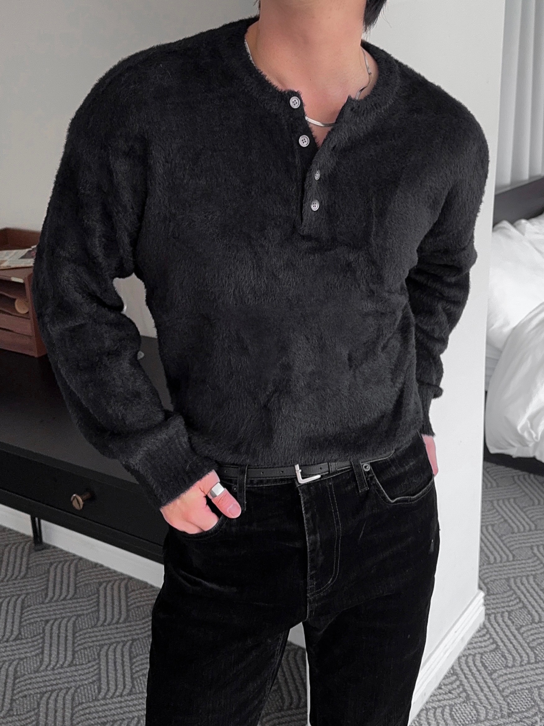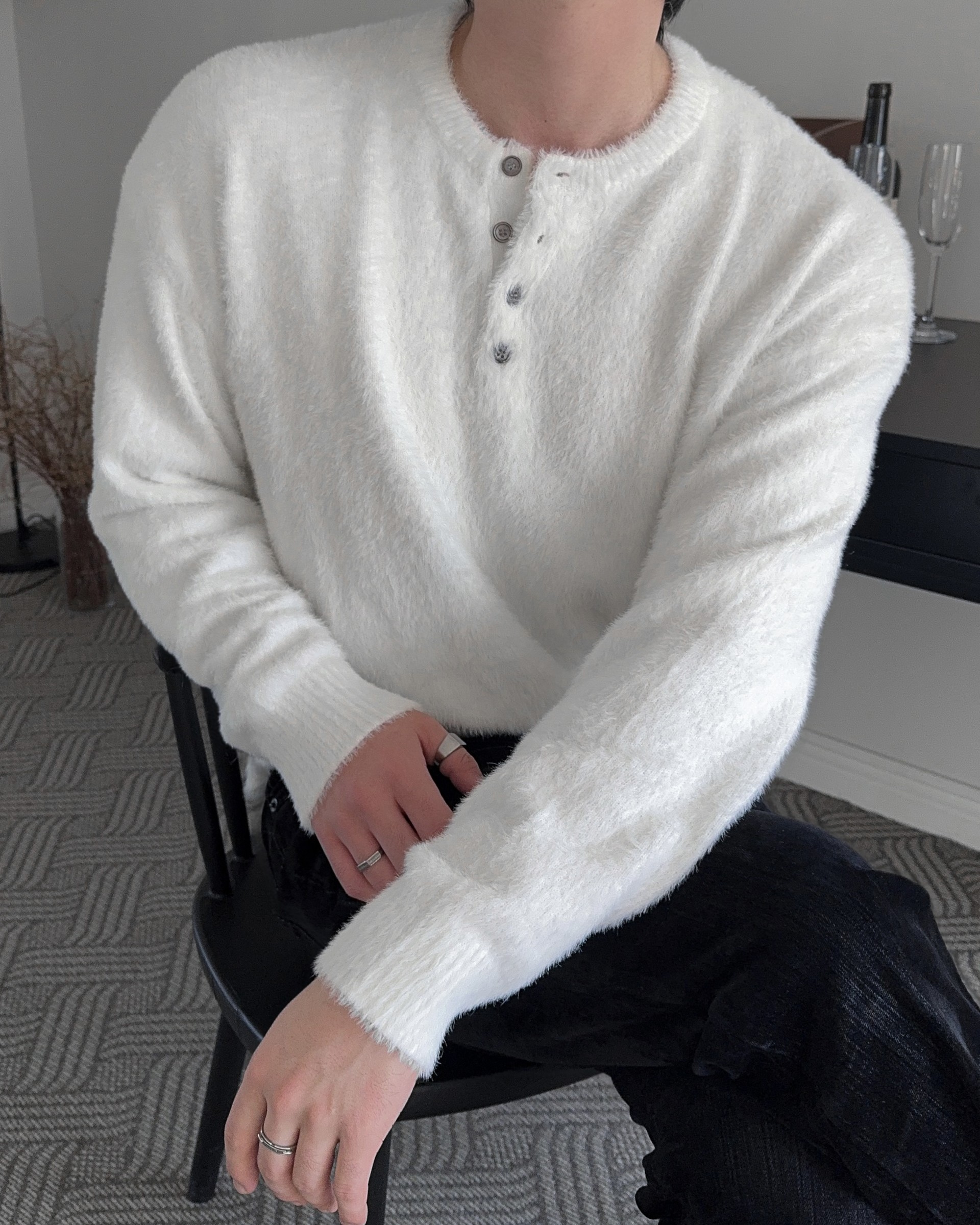 -부드러운 앙고라 소재로 제작된 헨리넥 니트