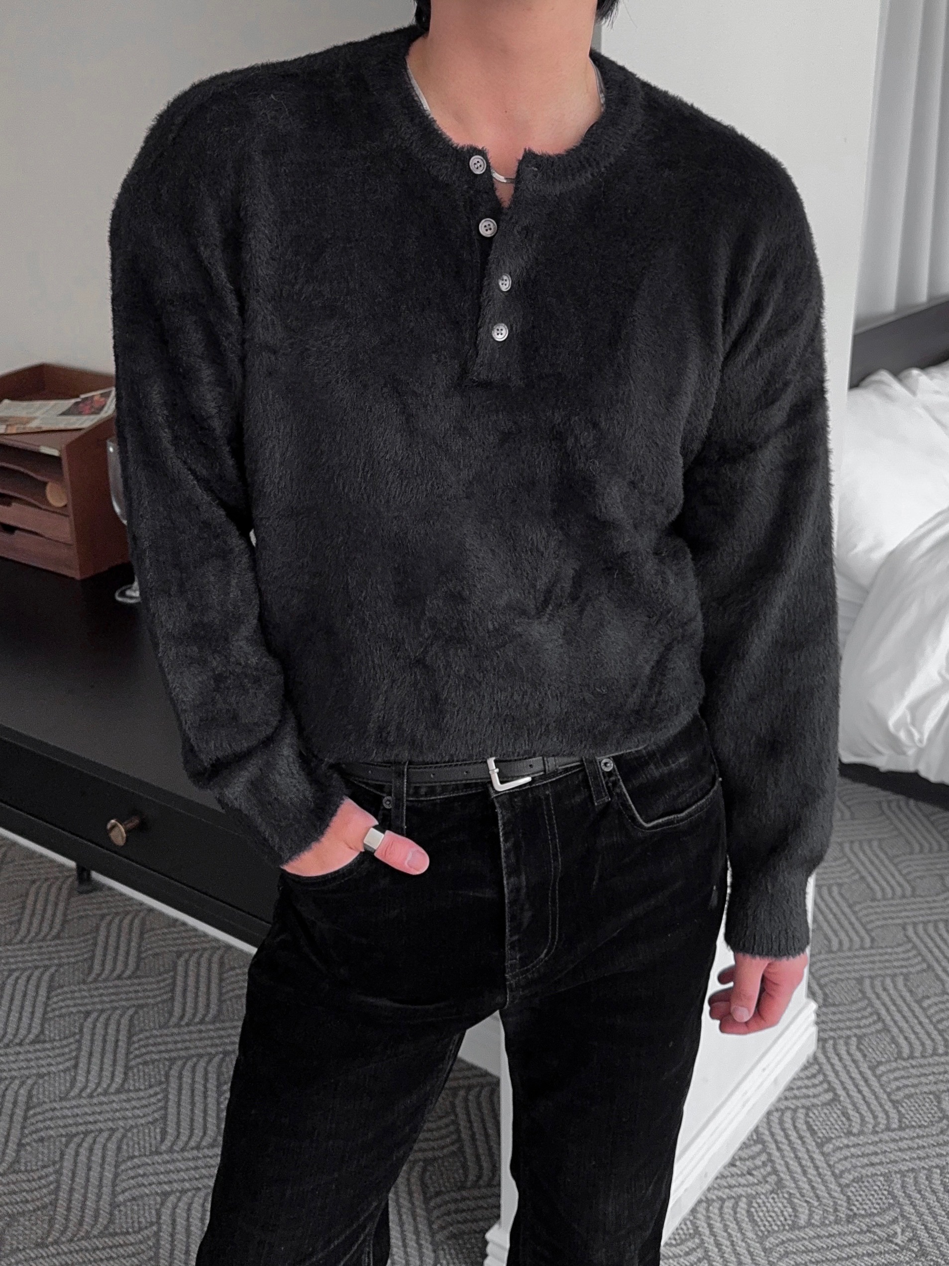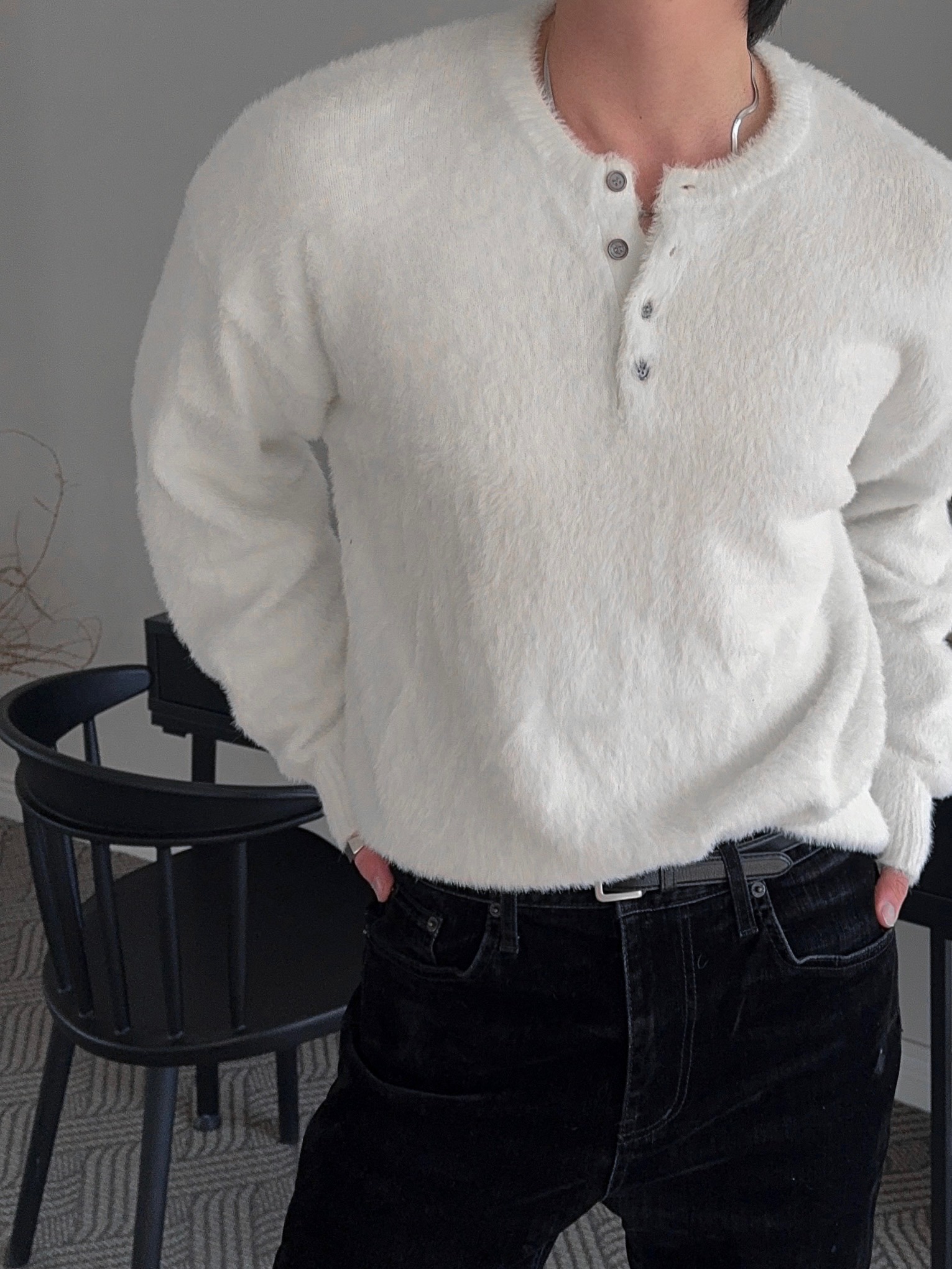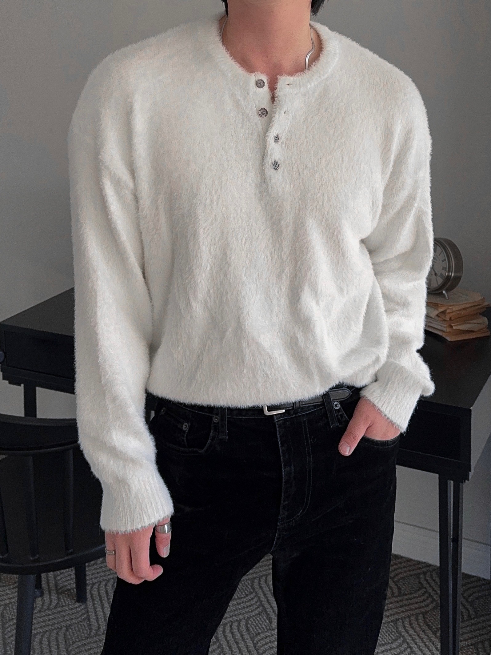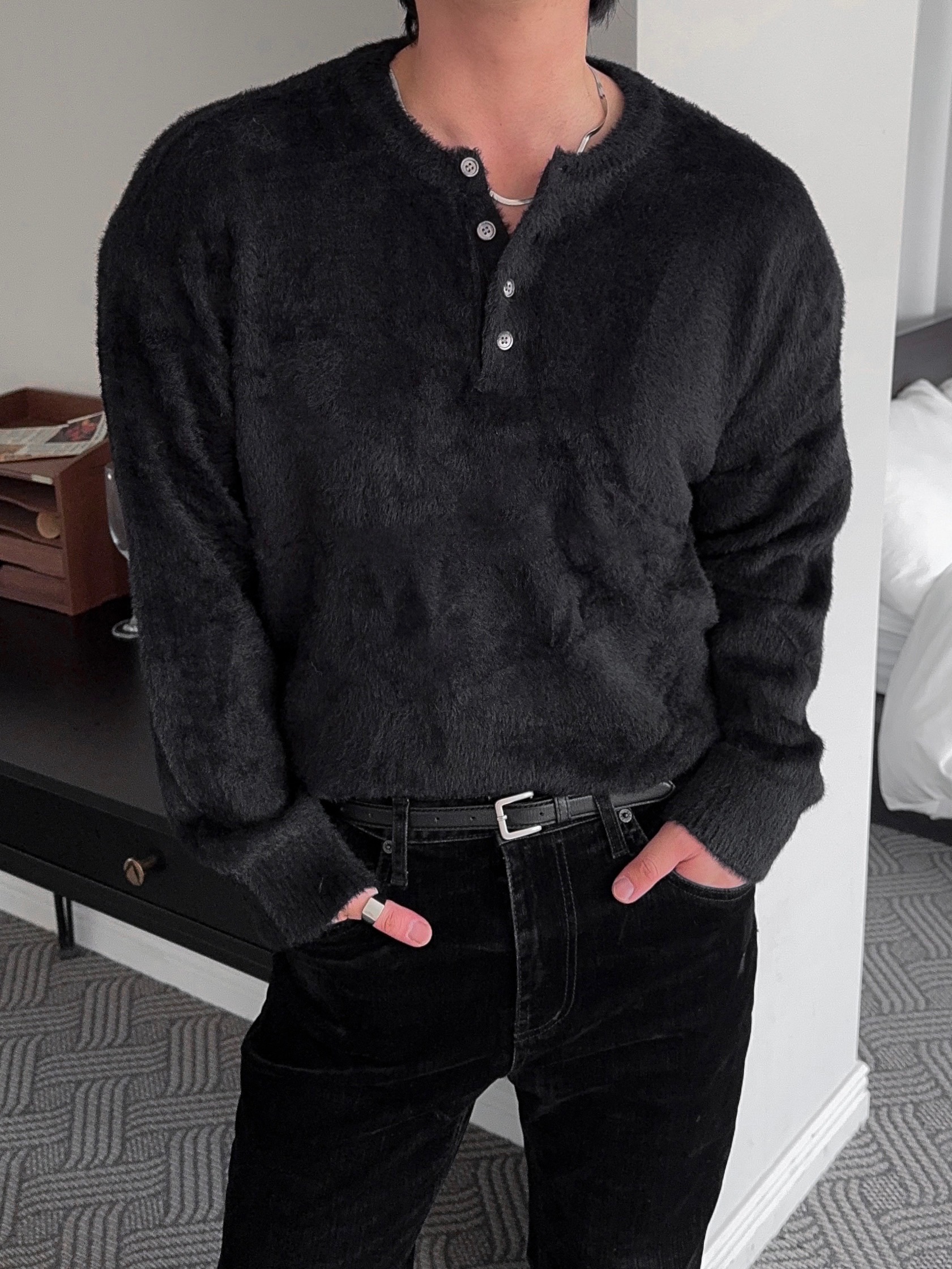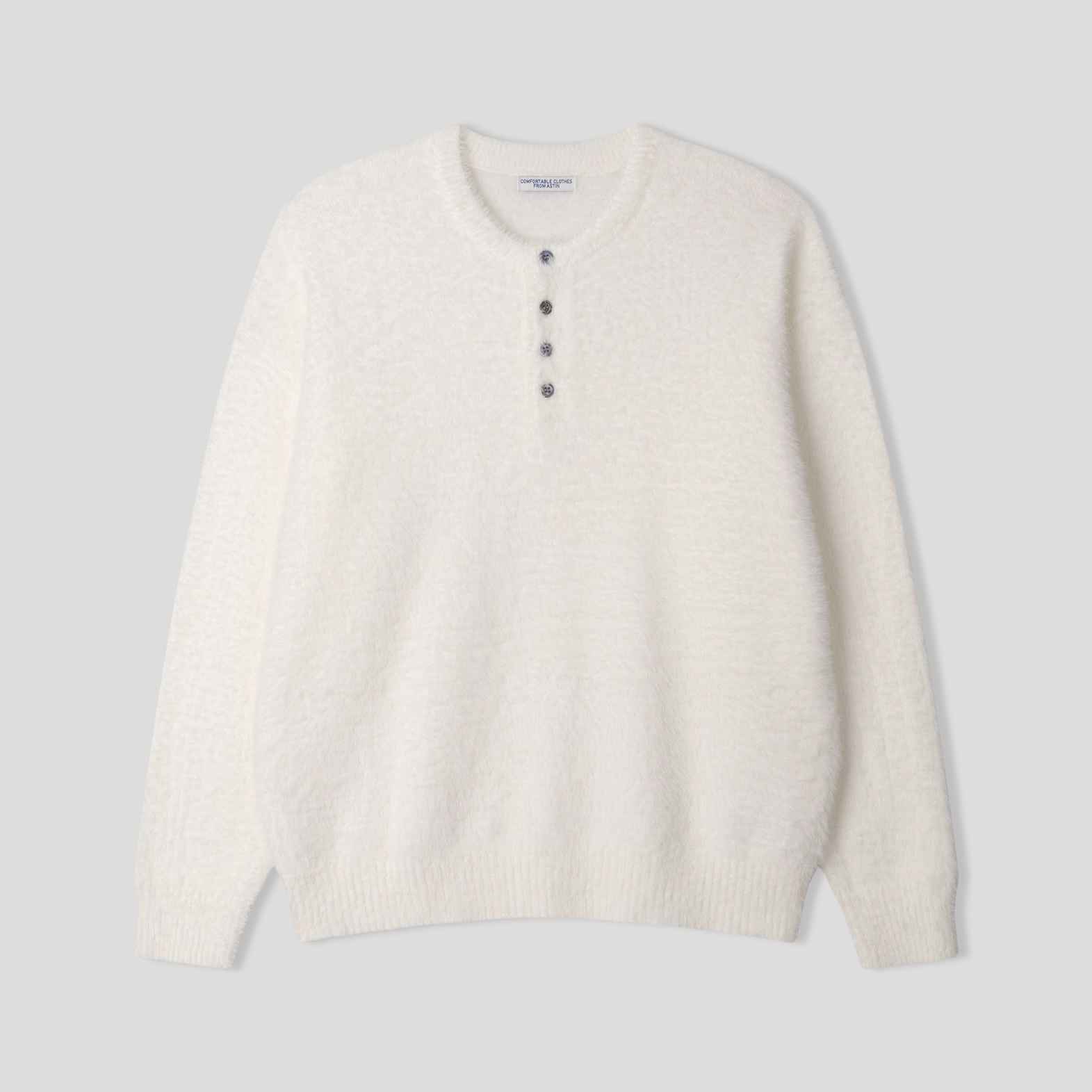 -부드러운 앙고라 소재로 제작된 헨리넥 니트