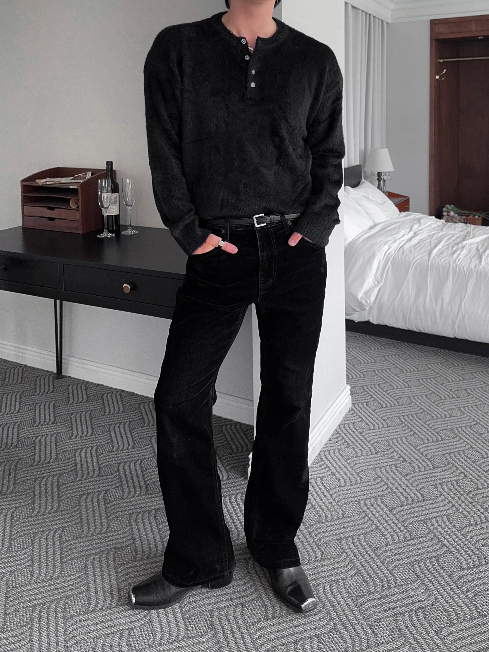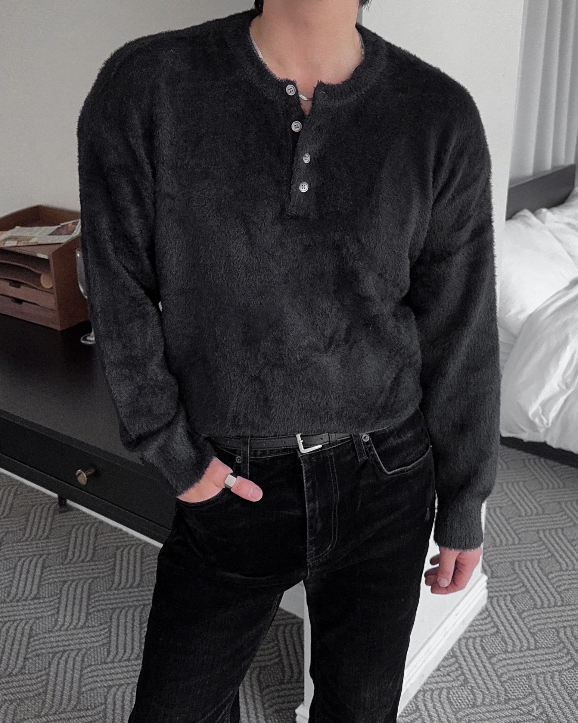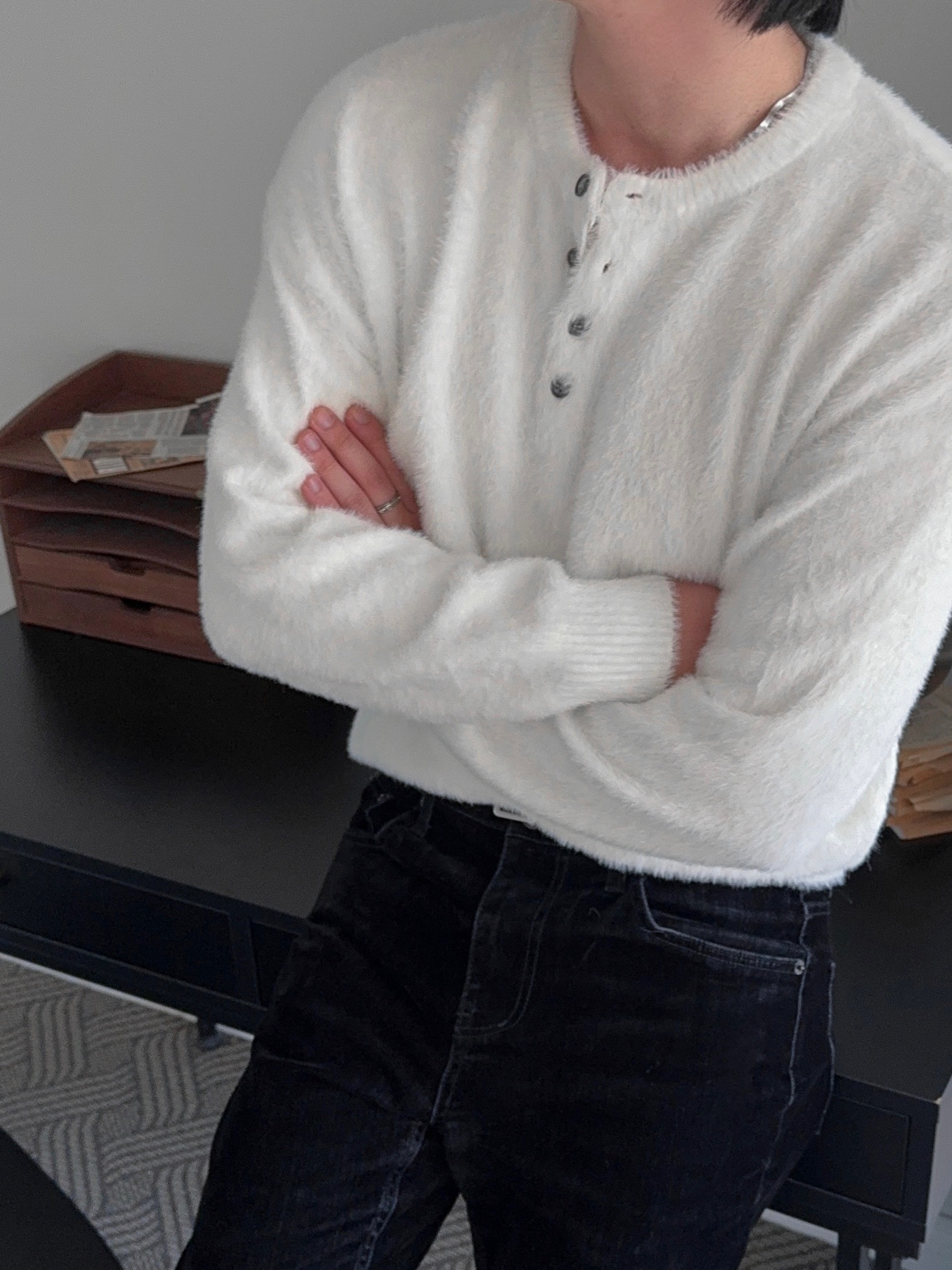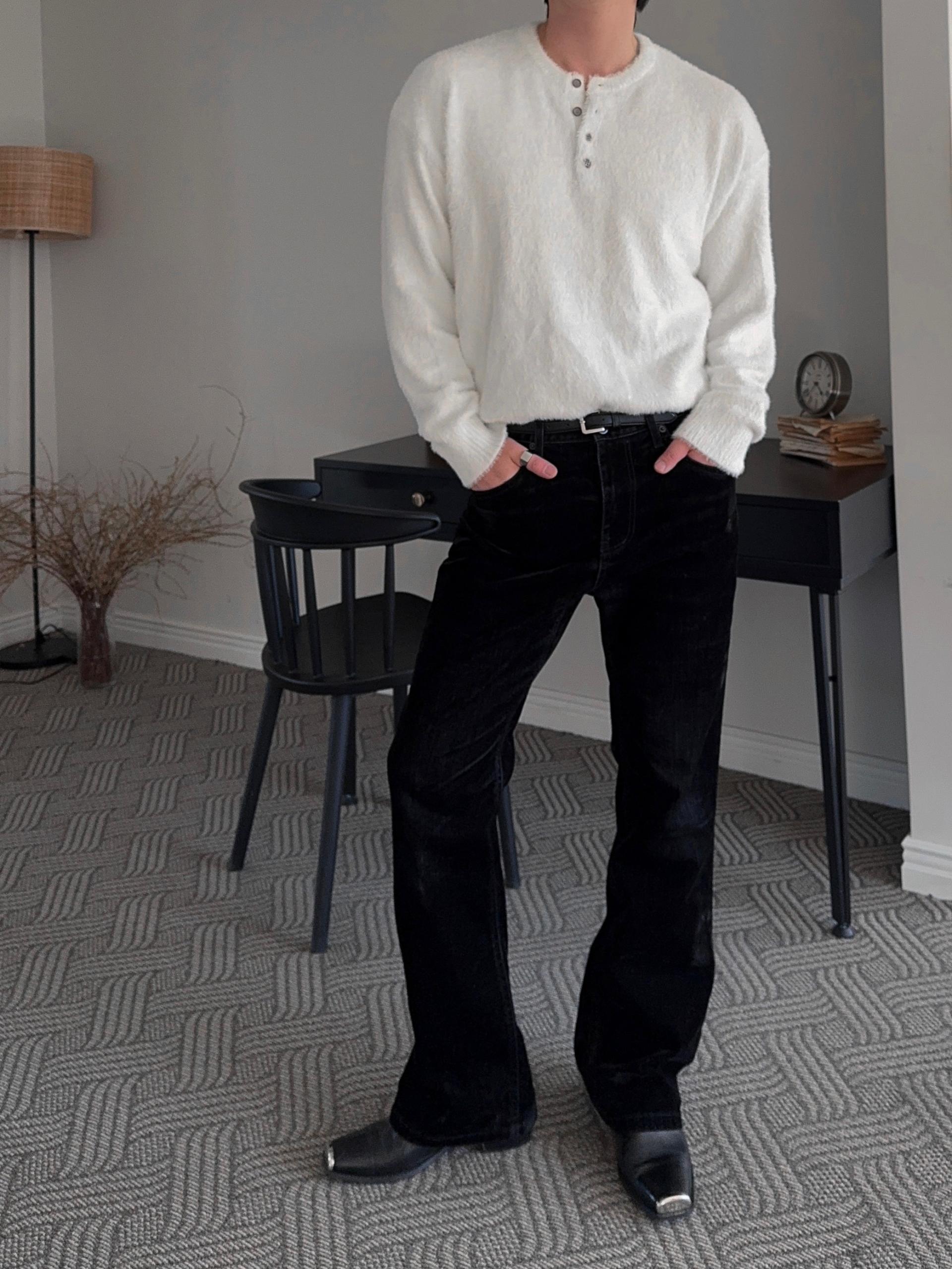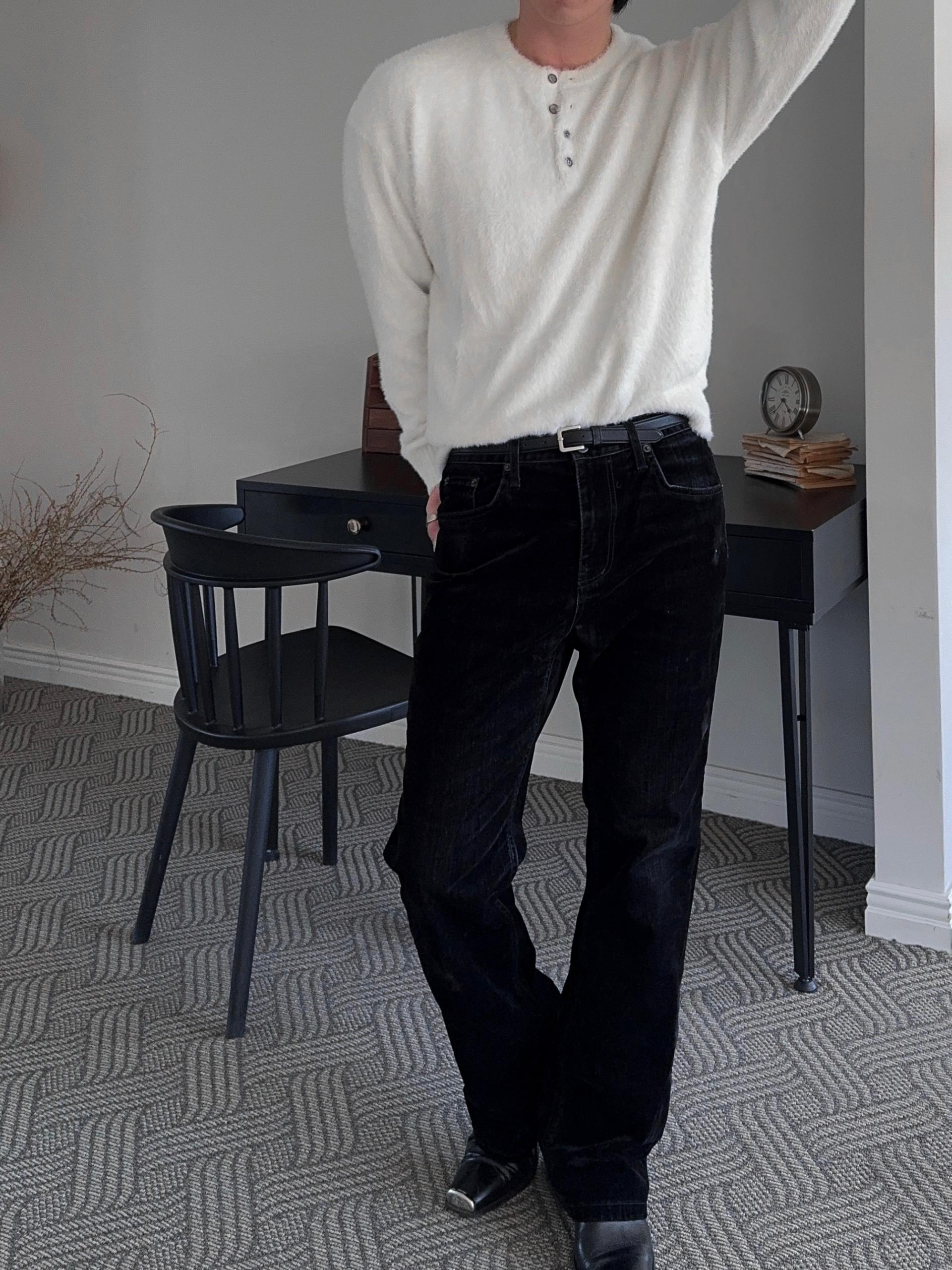 -부드러운 앙고라 소재로 제작된 헨리넥 니트