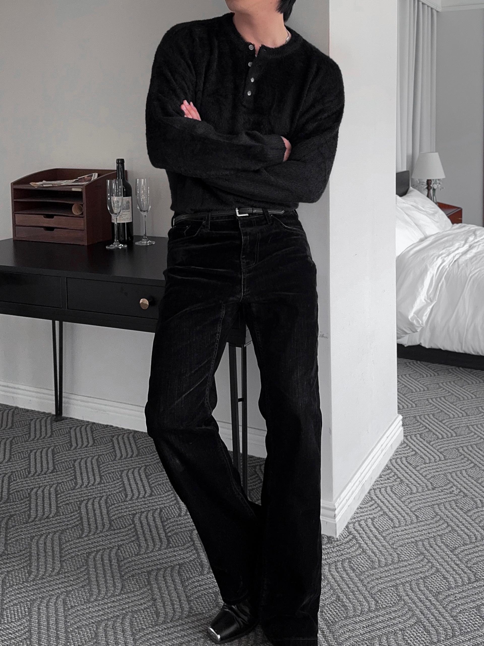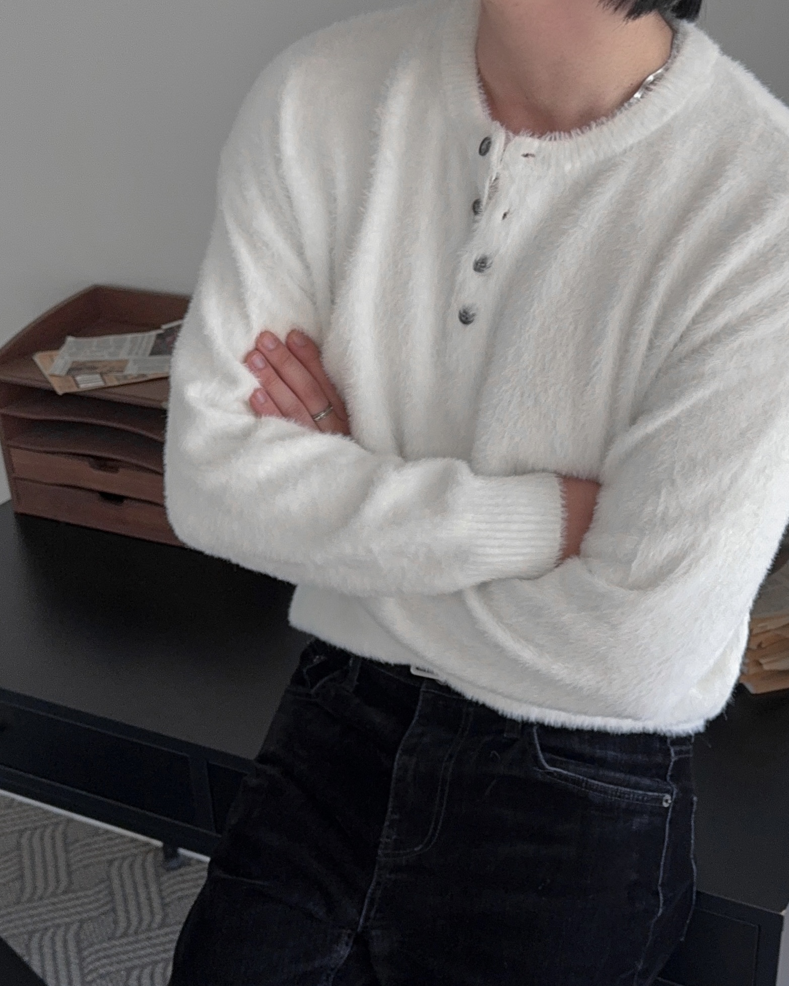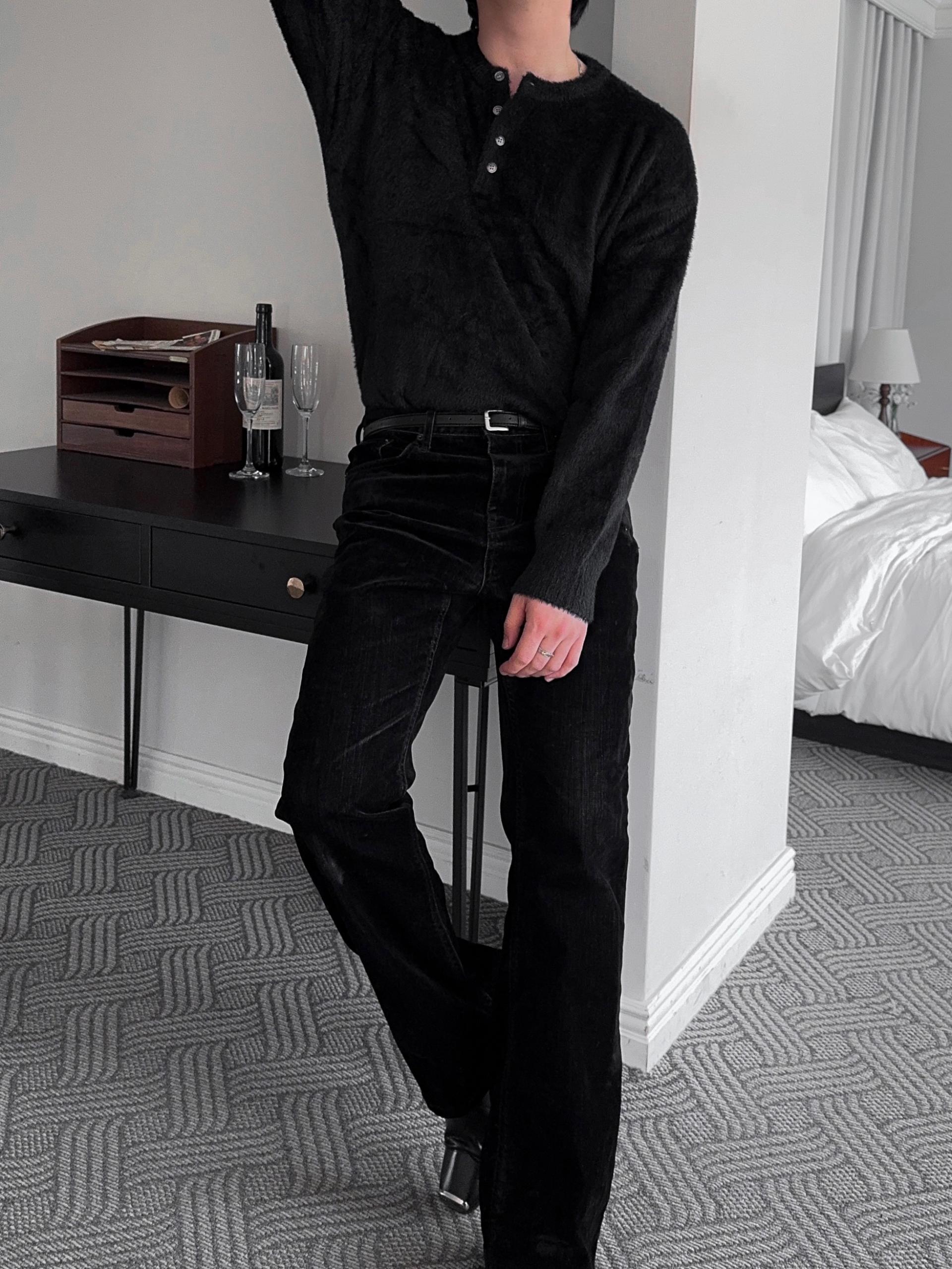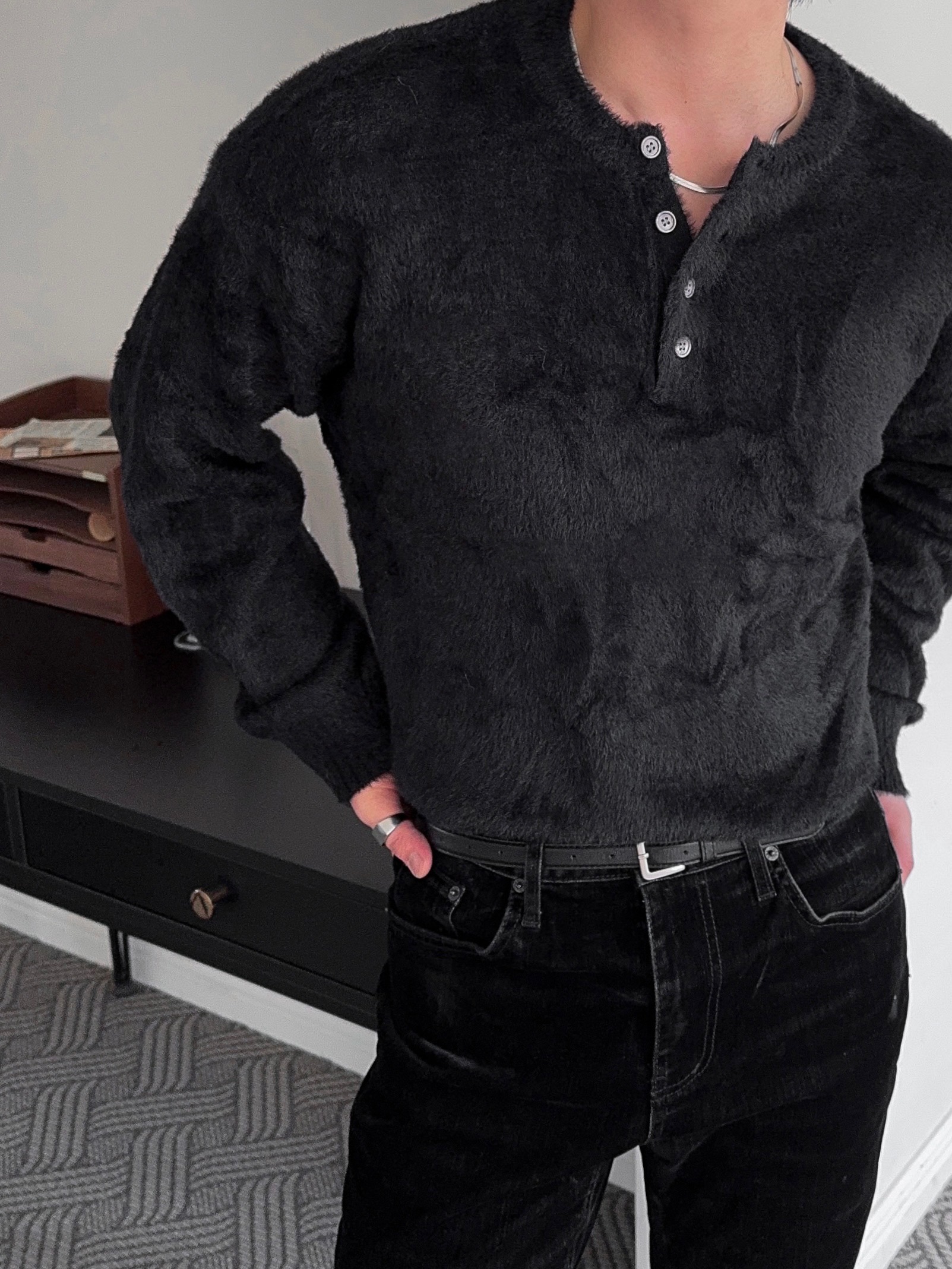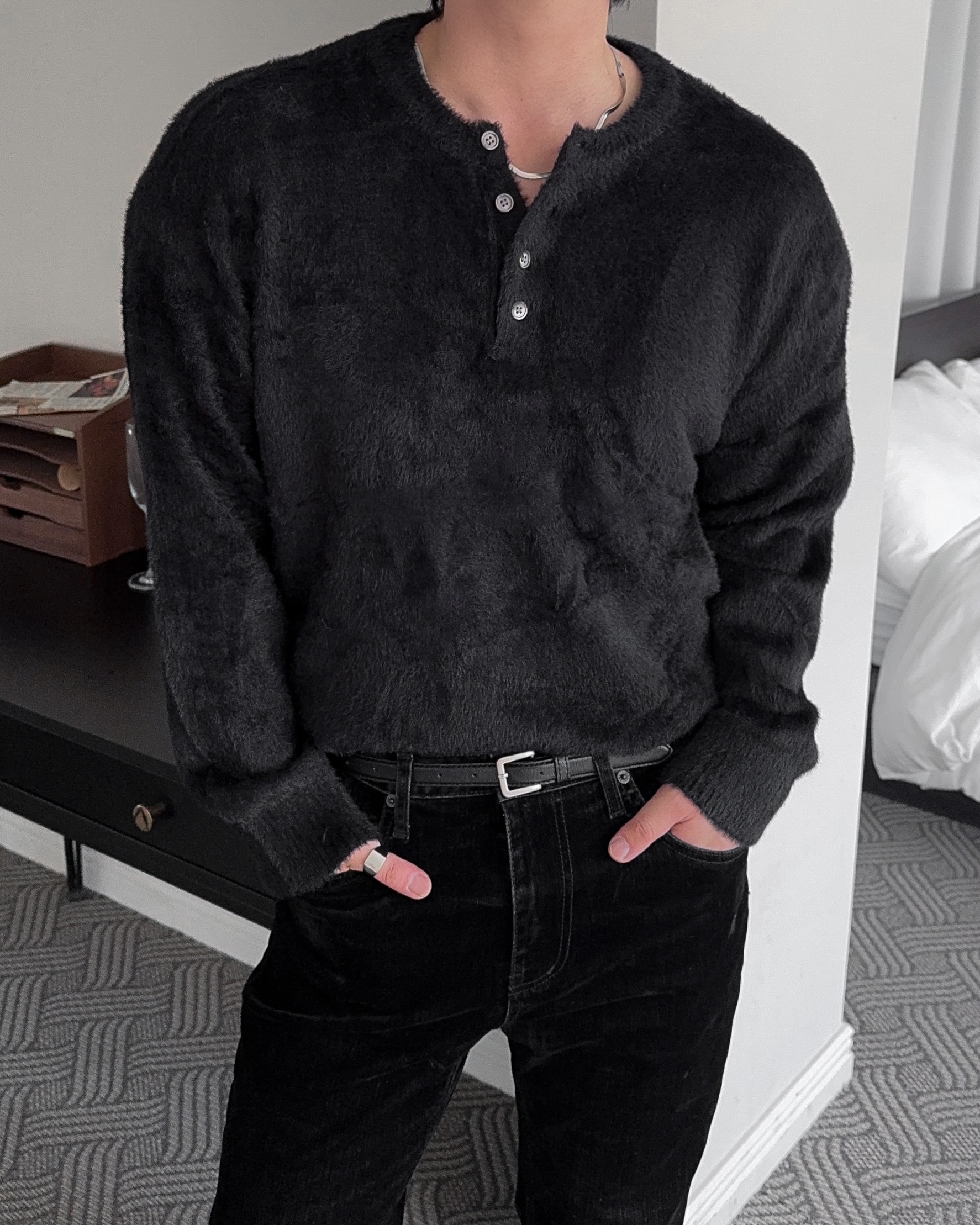 -부드러운 앙고라 소재로 제작된 헨리넥 니트