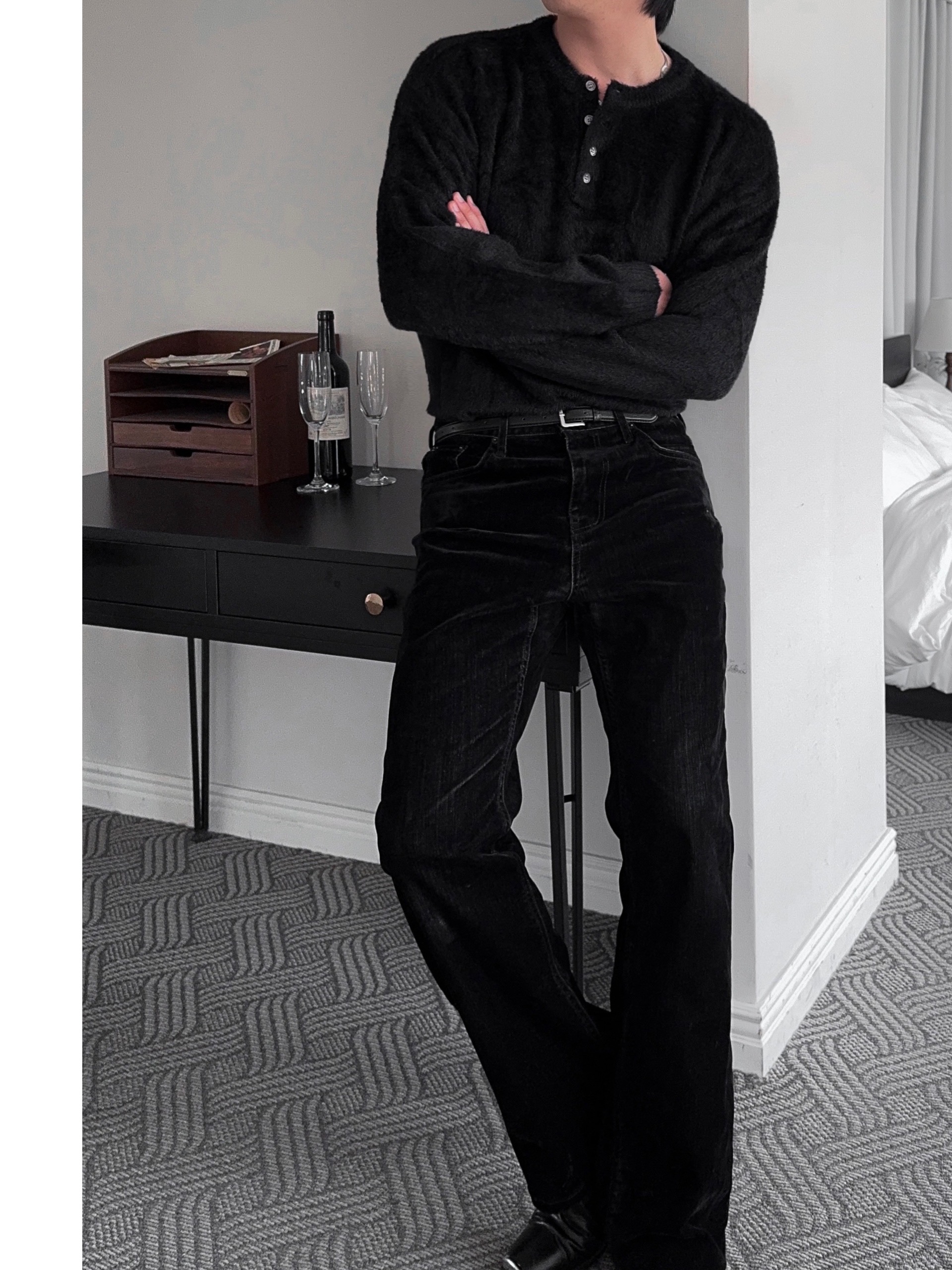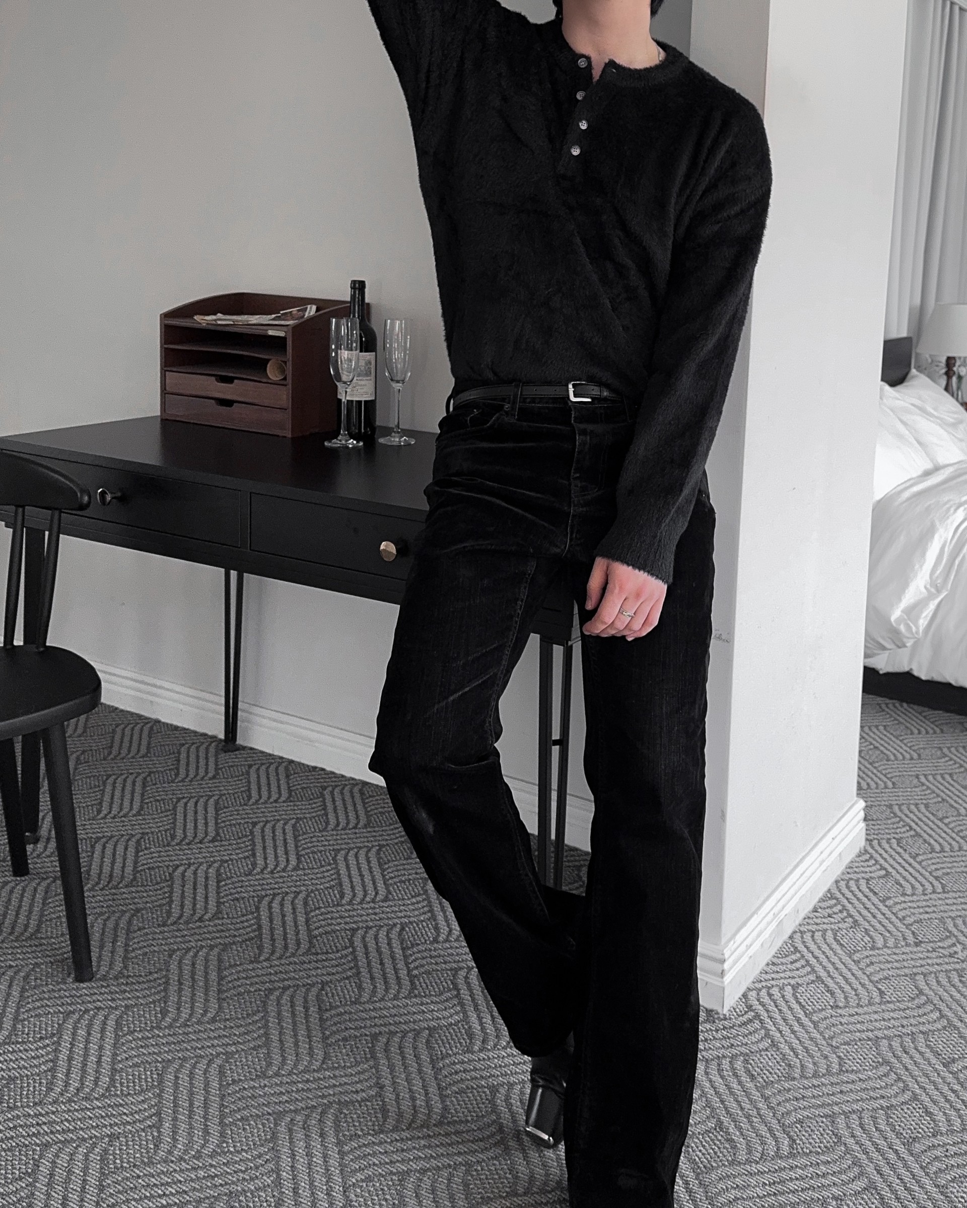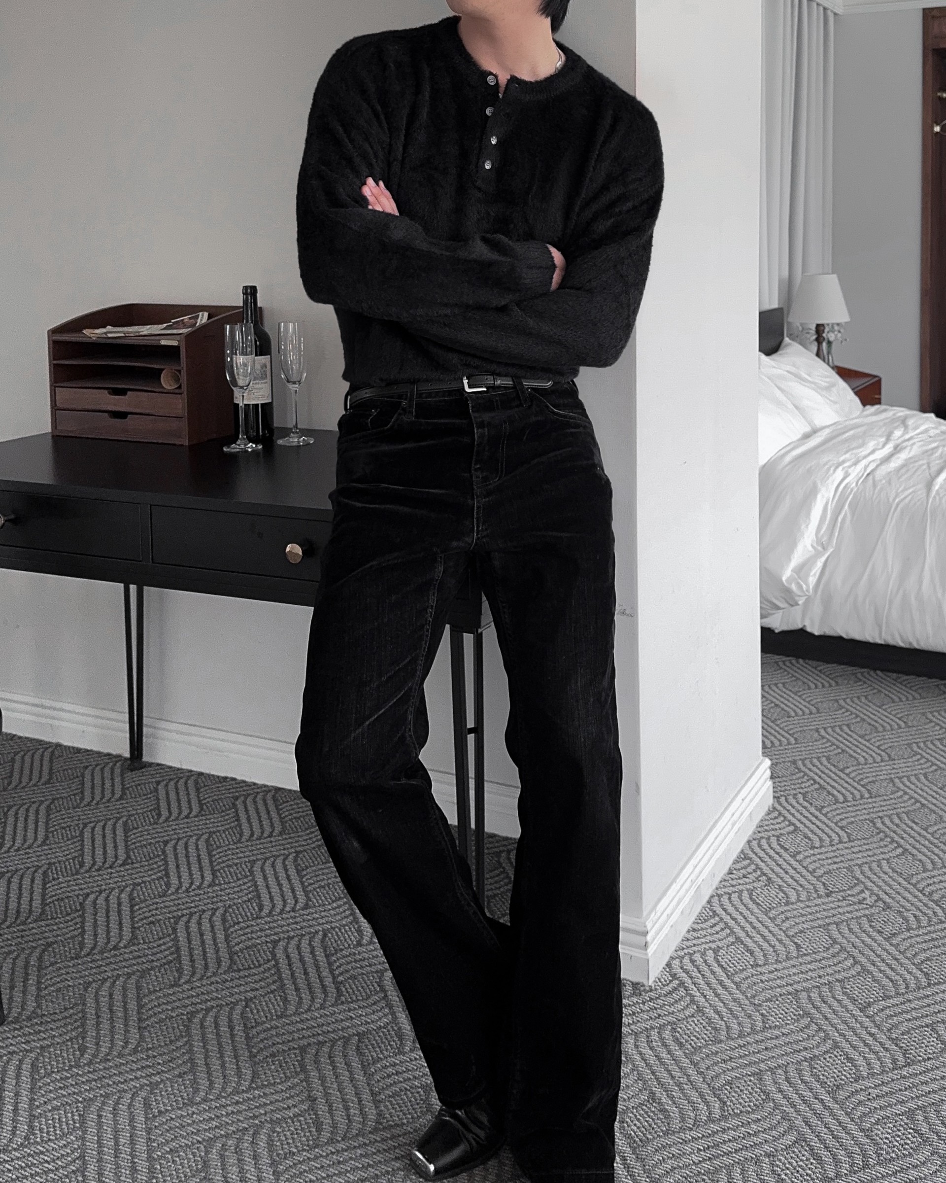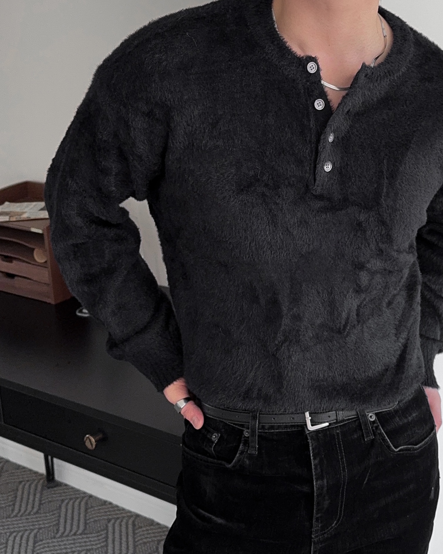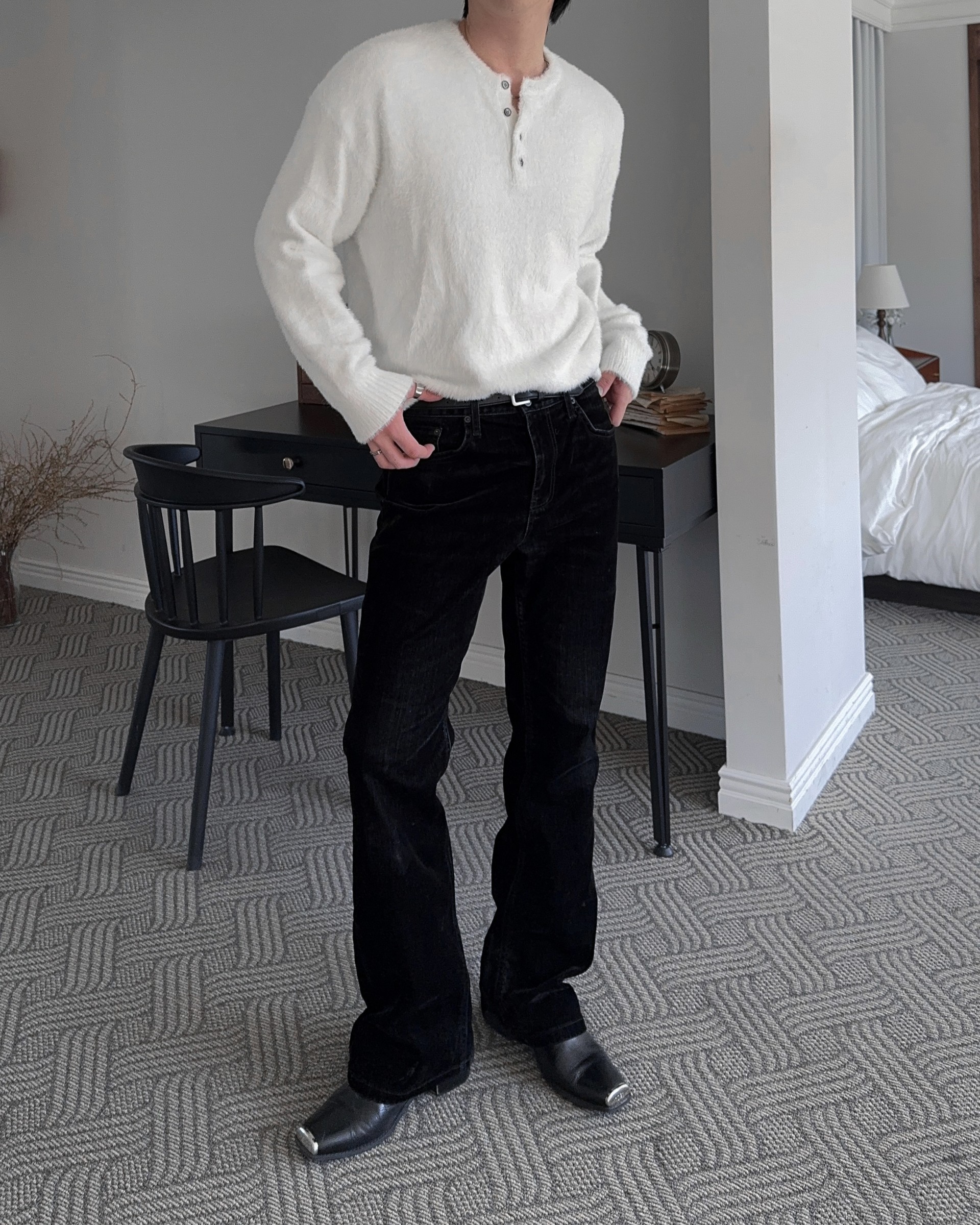 -부드러운 앙고라 소재로 제작된 헨리넥 니트